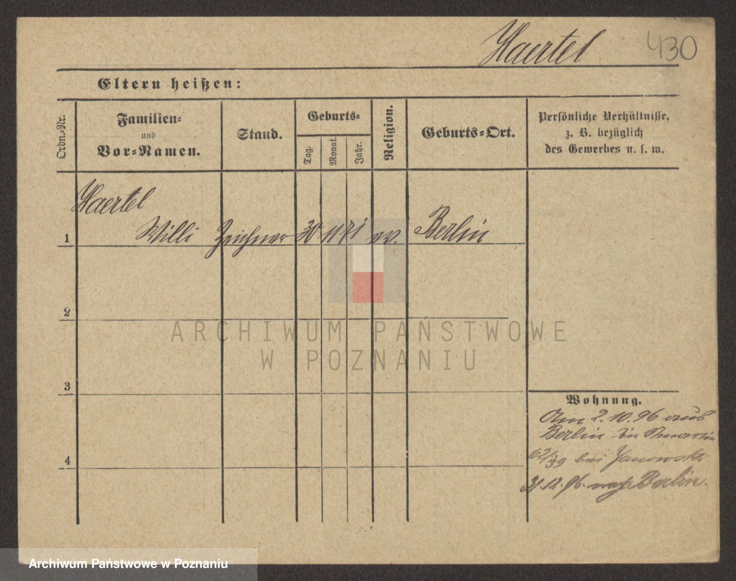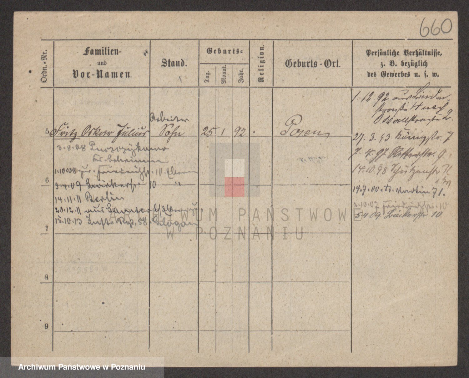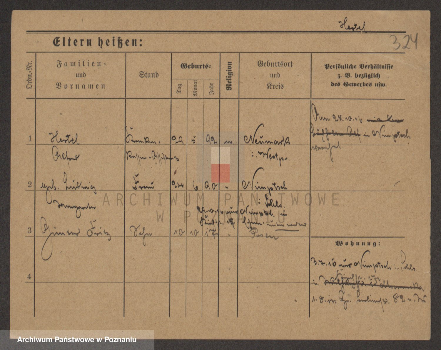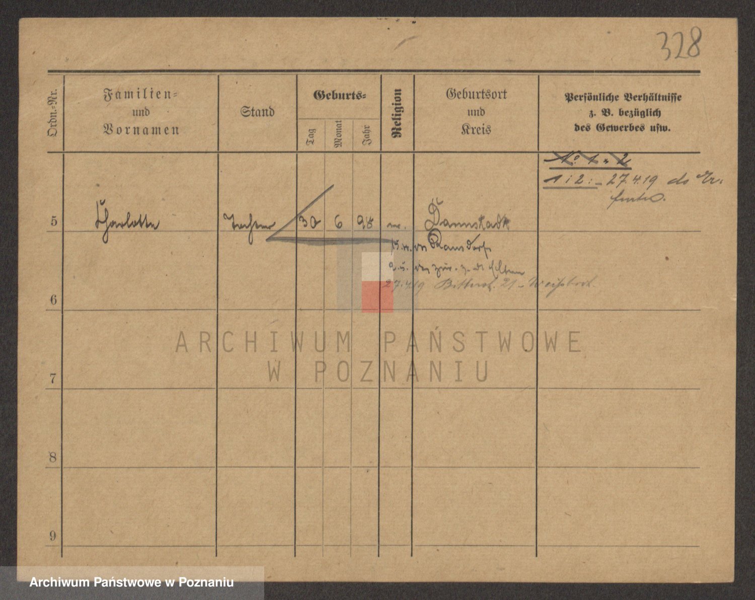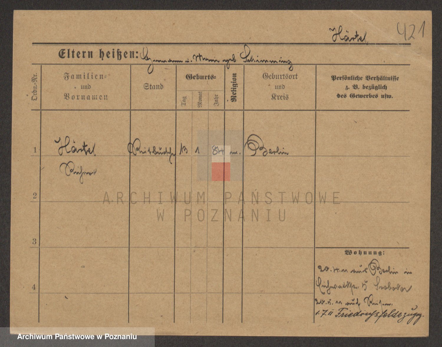 Podgląd karty osobowej dostępny jest po kliknięciu na nazwisko lub ikonkę karty. Można dokonywać powiększenia (ikony na górze) lub przechodzić między kolejnymi skanami (strzałki po bokach).
