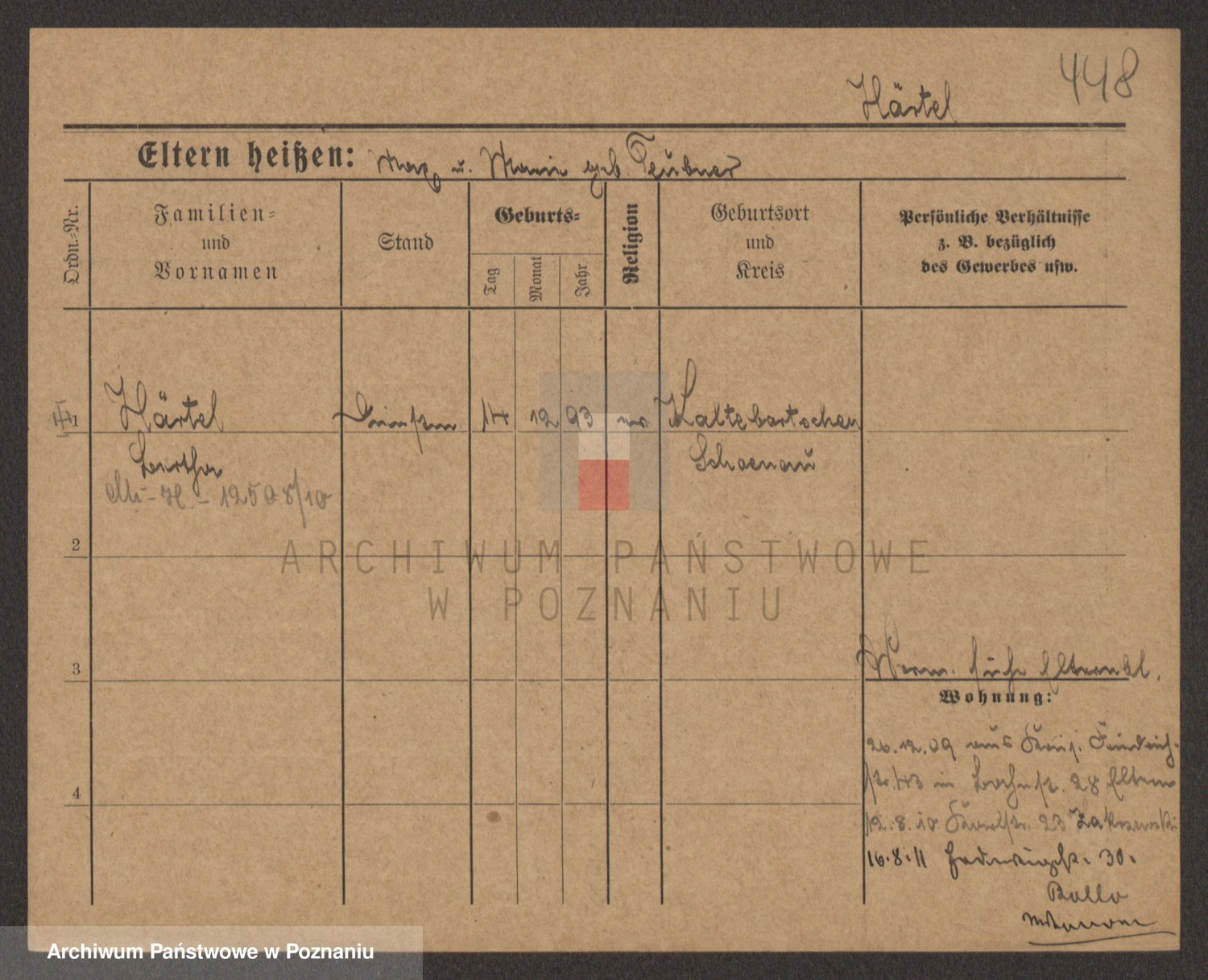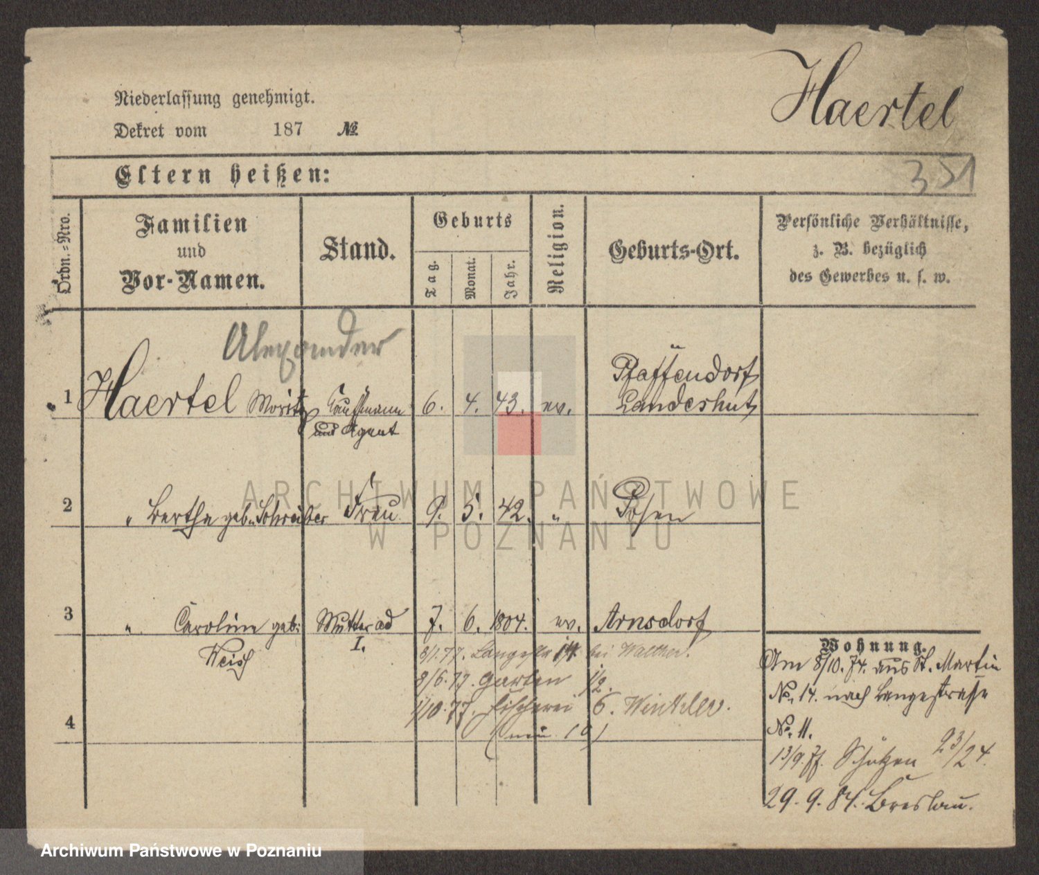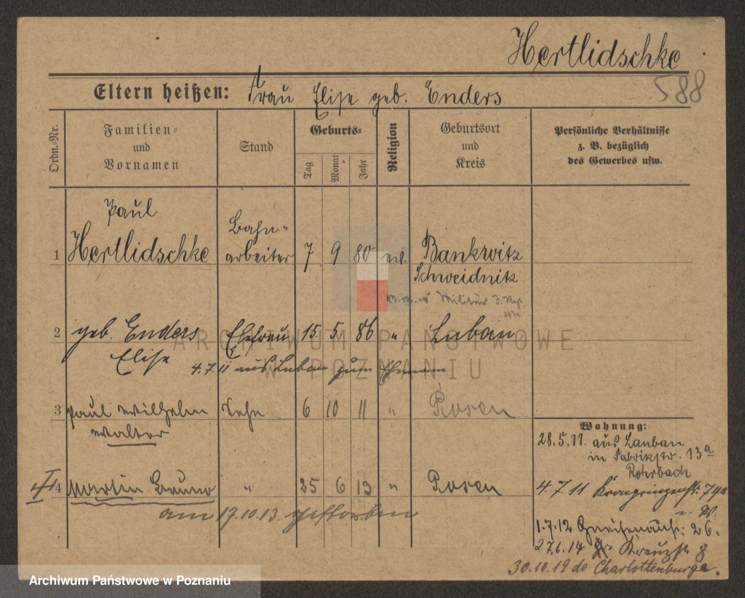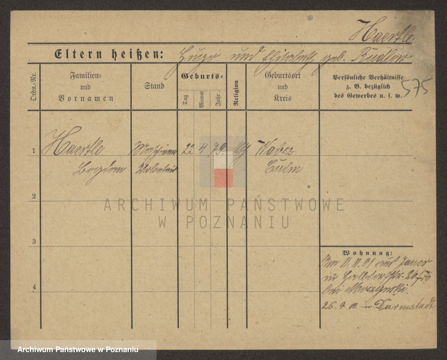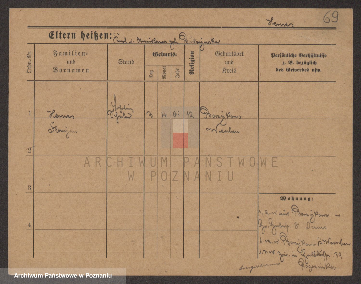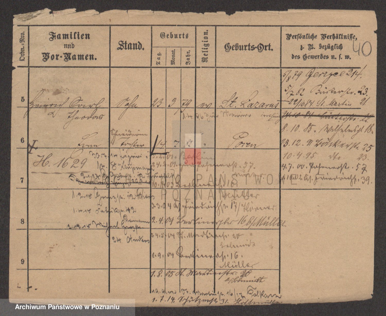 Podgląd karty osobowej dostępny jest po kliknięciu na nazwisko lub ikonkę karty. Można dokonywać powiększenia (ikony na górze) lub przechodzić między kolejnymi skanami (strzałki po bokach).