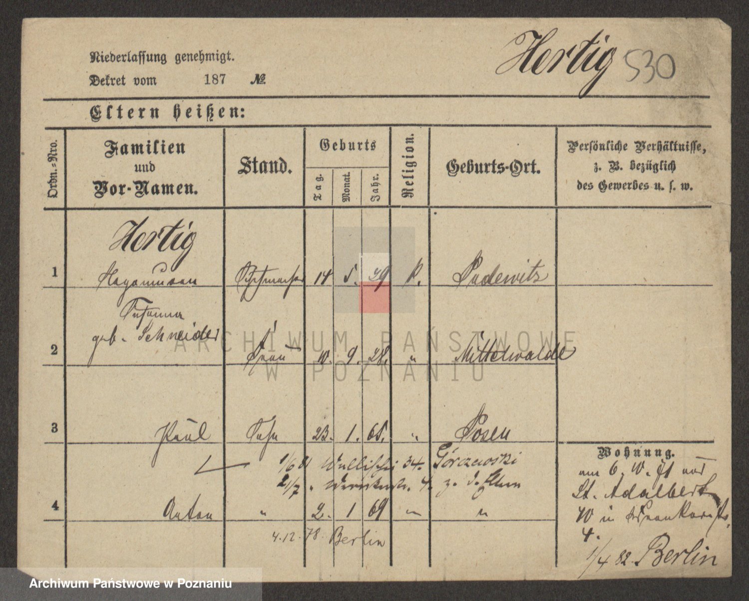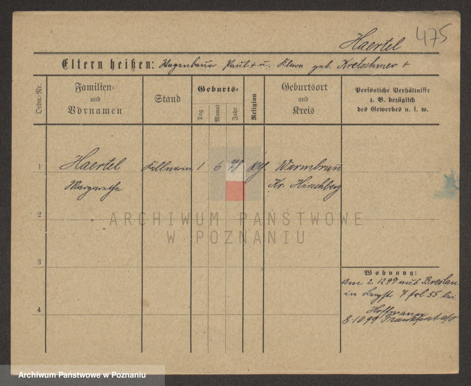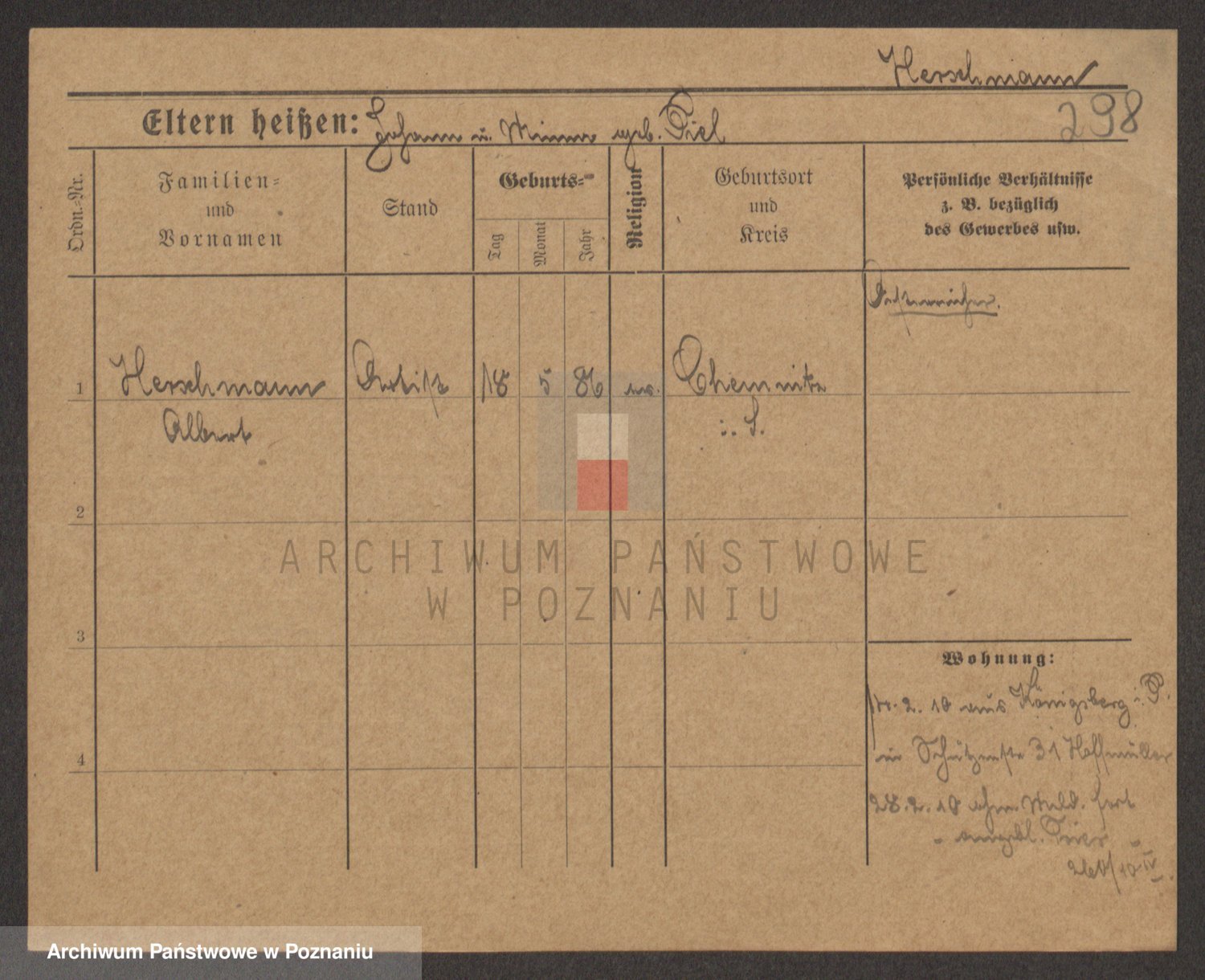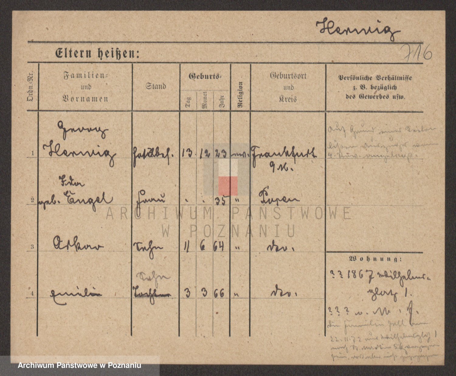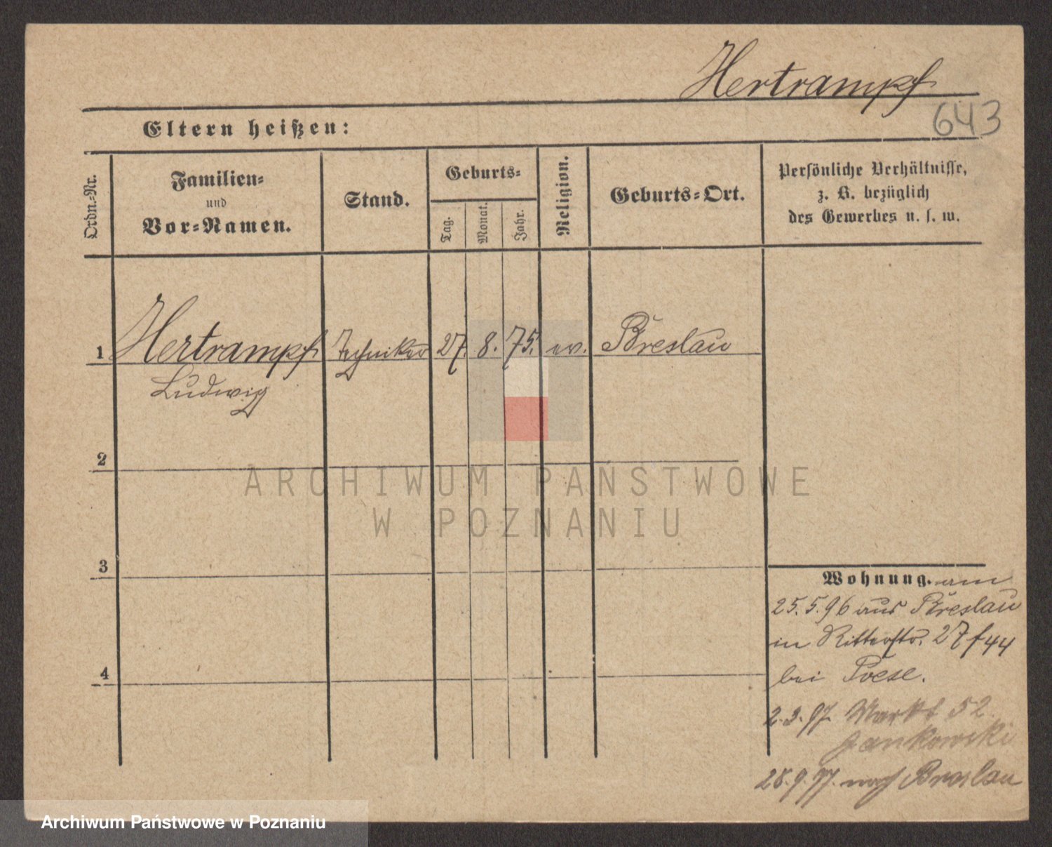 Podgląd karty osobowej dostępny jest po kliknięciu na nazwisko lub ikonkę karty. Można dokonywać powiększenia (ikony na górze) lub przechodzić między kolejnymi skanami (strzałki po bokach).