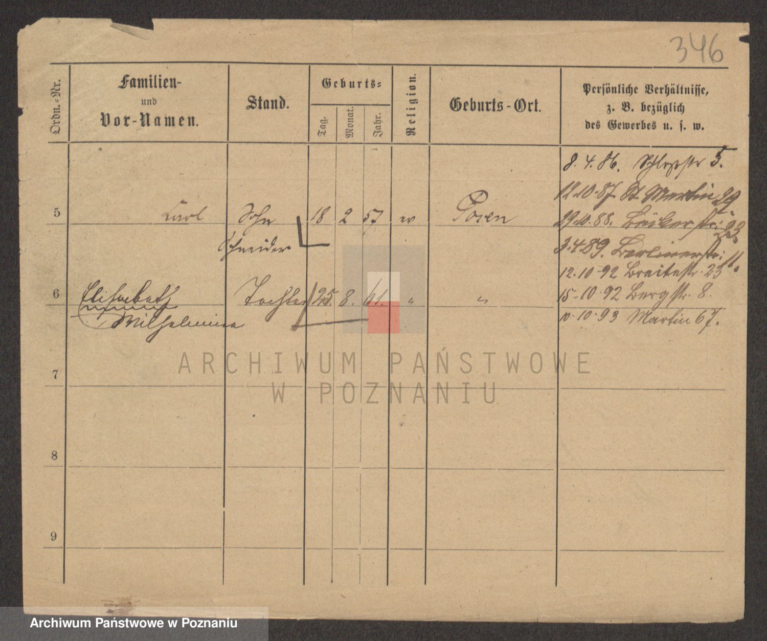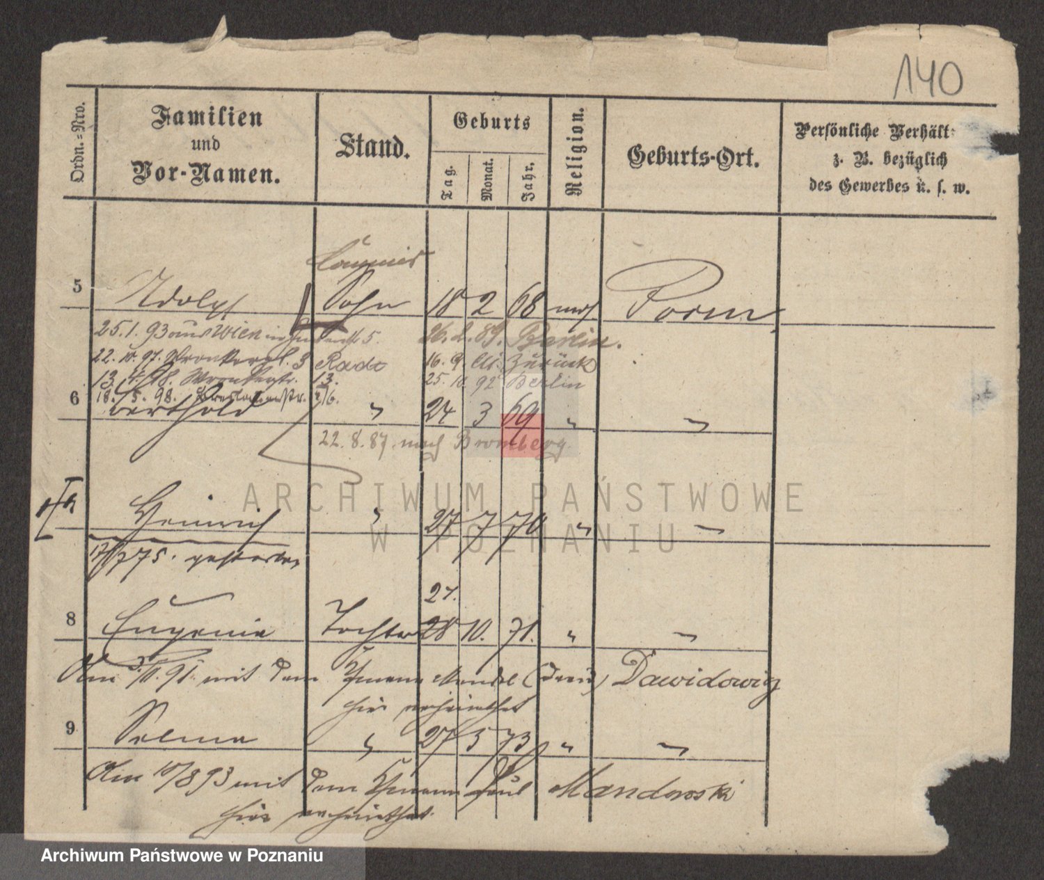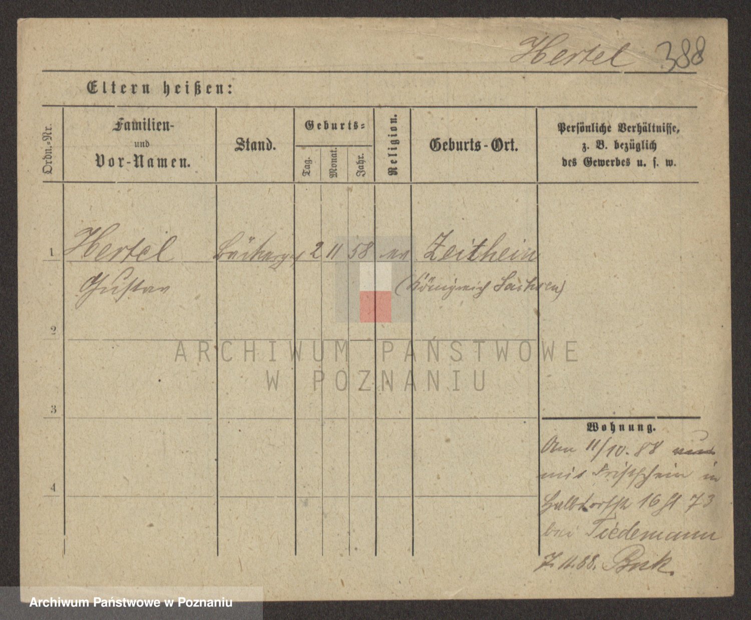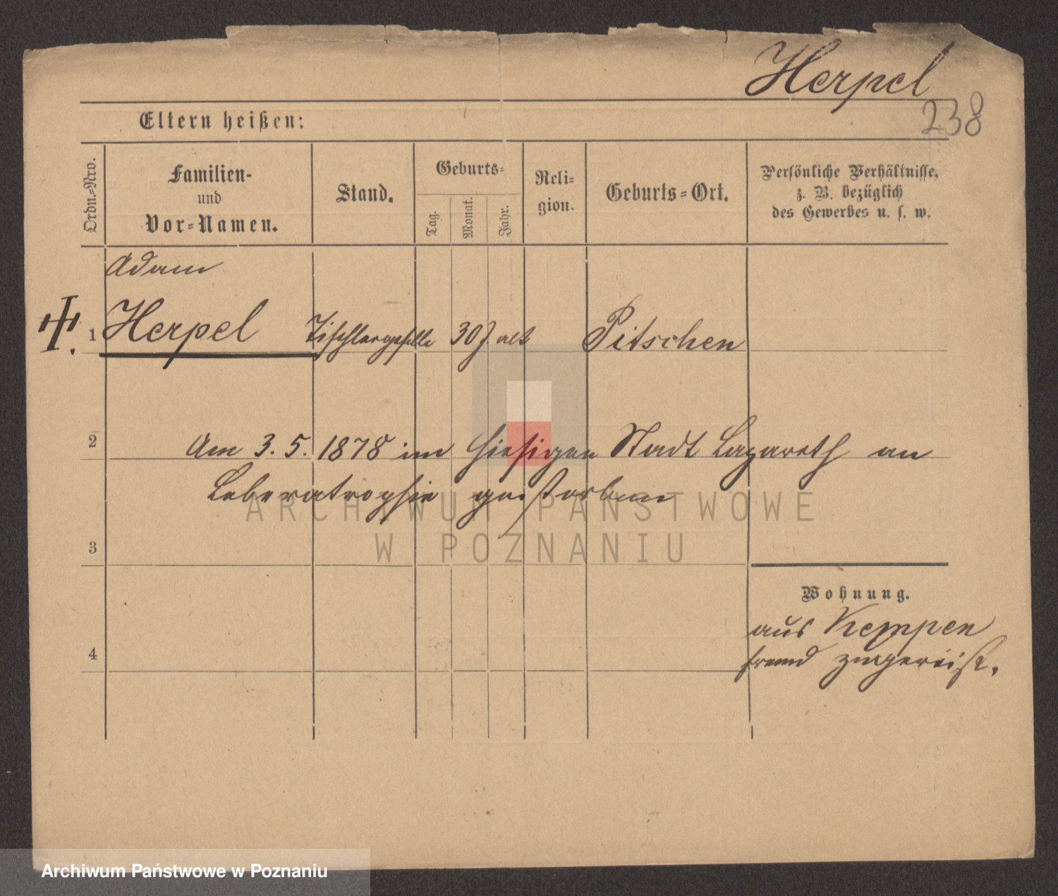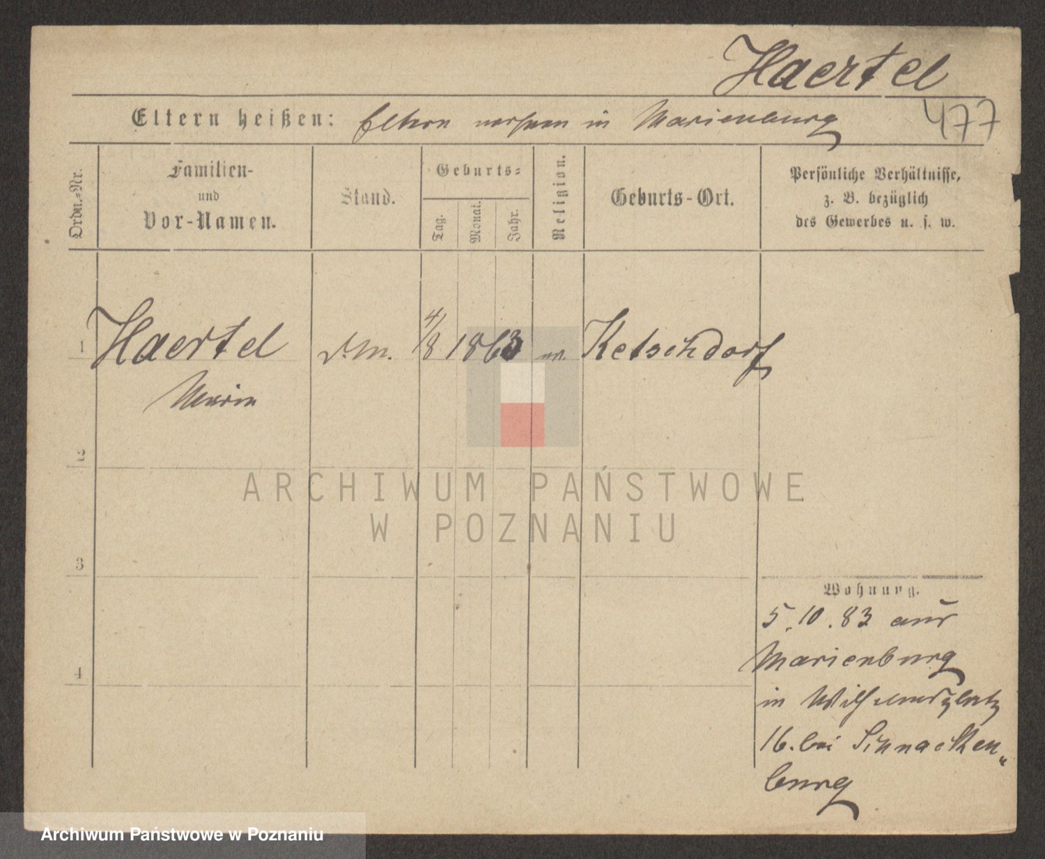 Podgląd karty osobowej dostępny jest po kliknięciu na nazwisko lub ikonkę karty. Można dokonywać powiększenia (ikony na górze) lub przechodzić między kolejnymi skanami (strzałki po bokach).