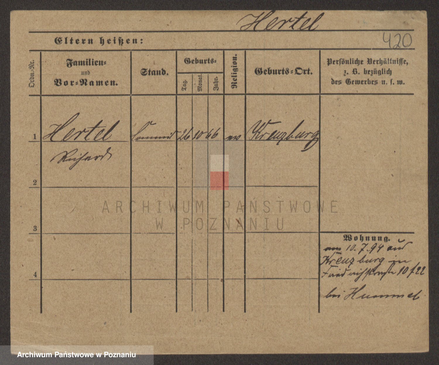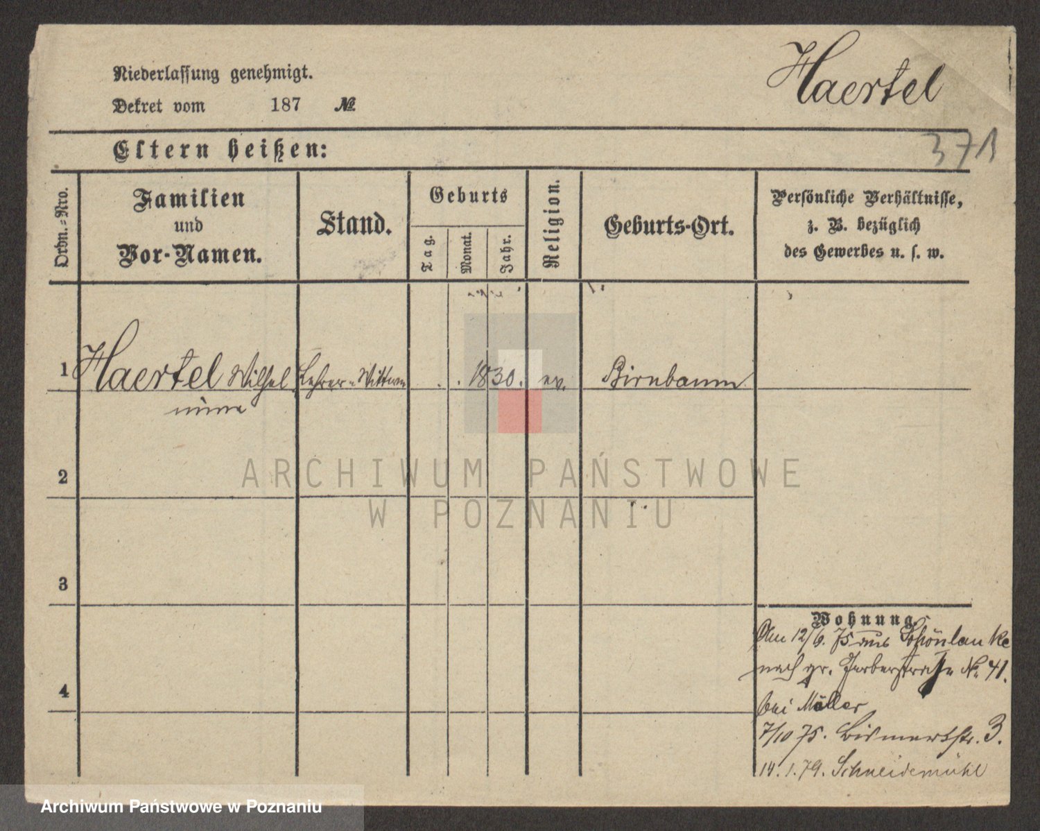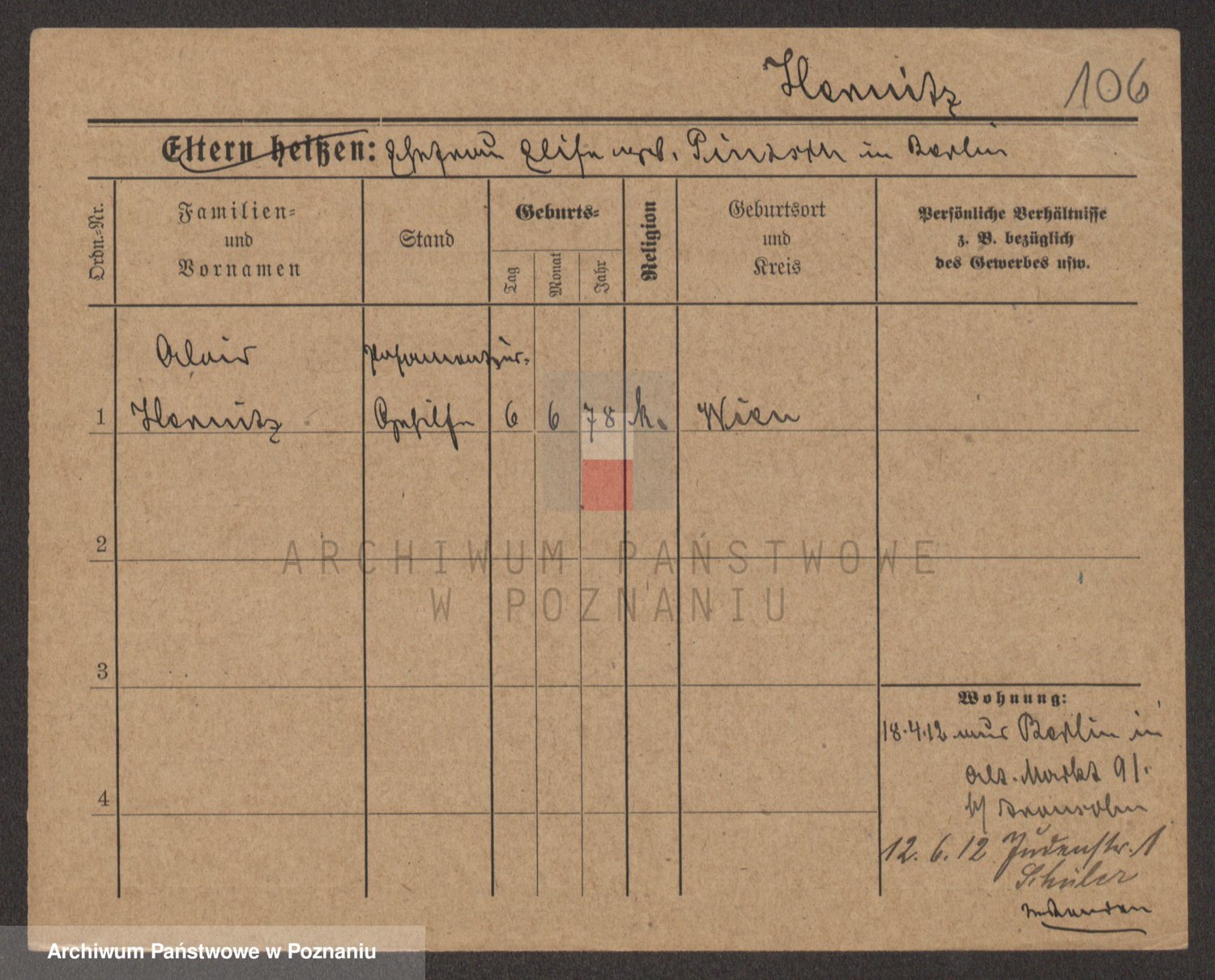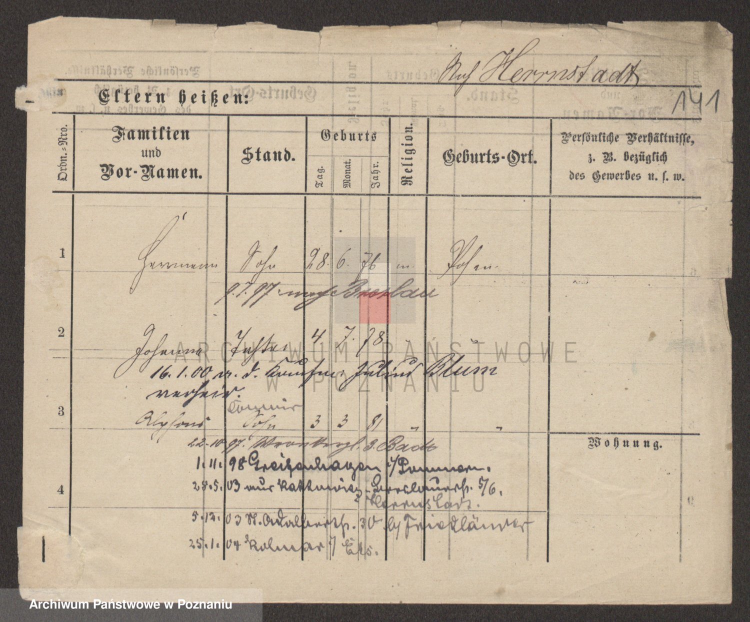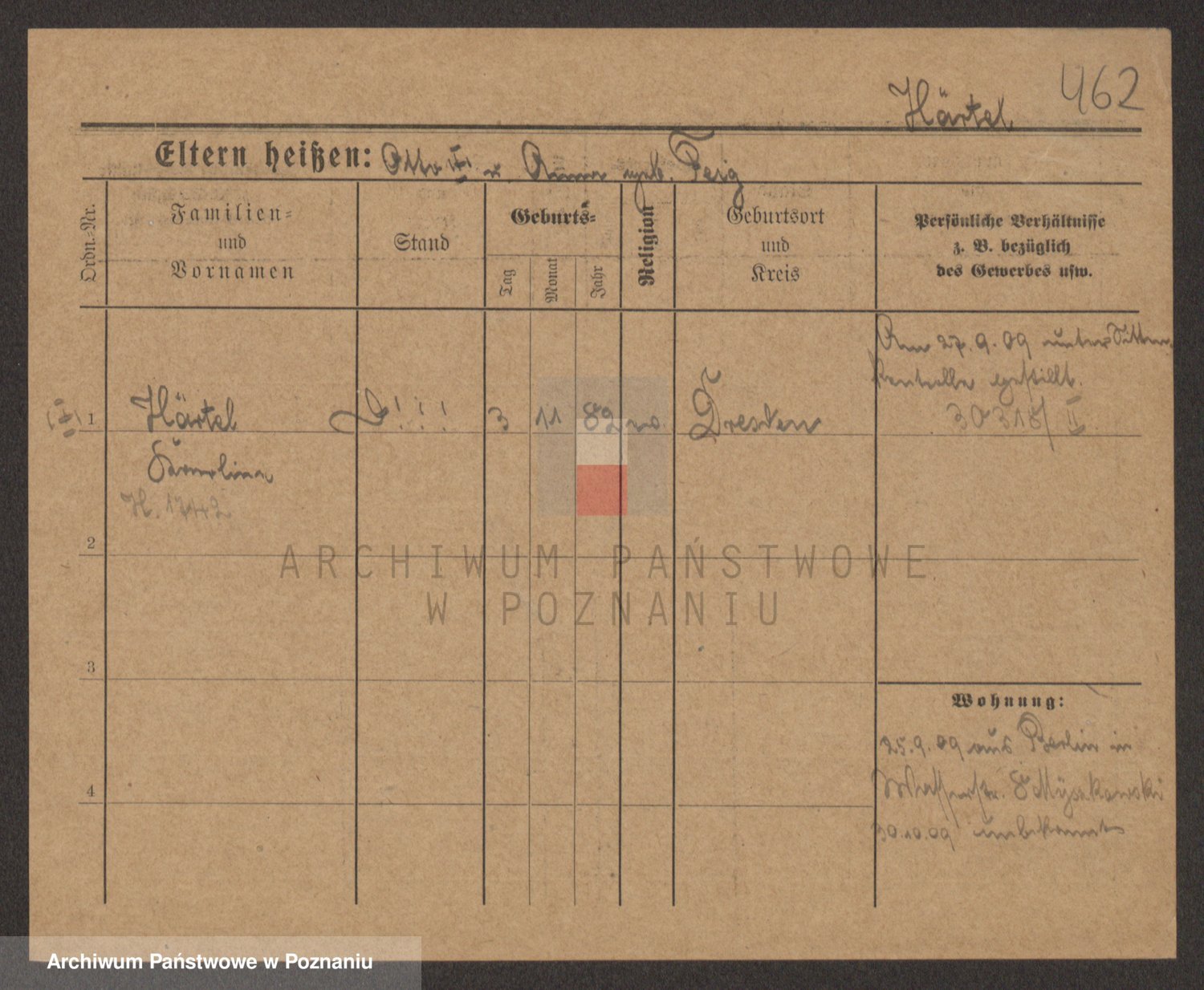 Podgląd karty osobowej dostępny jest po kliknięciu na nazwisko lub ikonkę karty. Można dokonywać powiększenia (ikony na górze) lub przechodzić między kolejnymi skanami (strzałki po bokach).