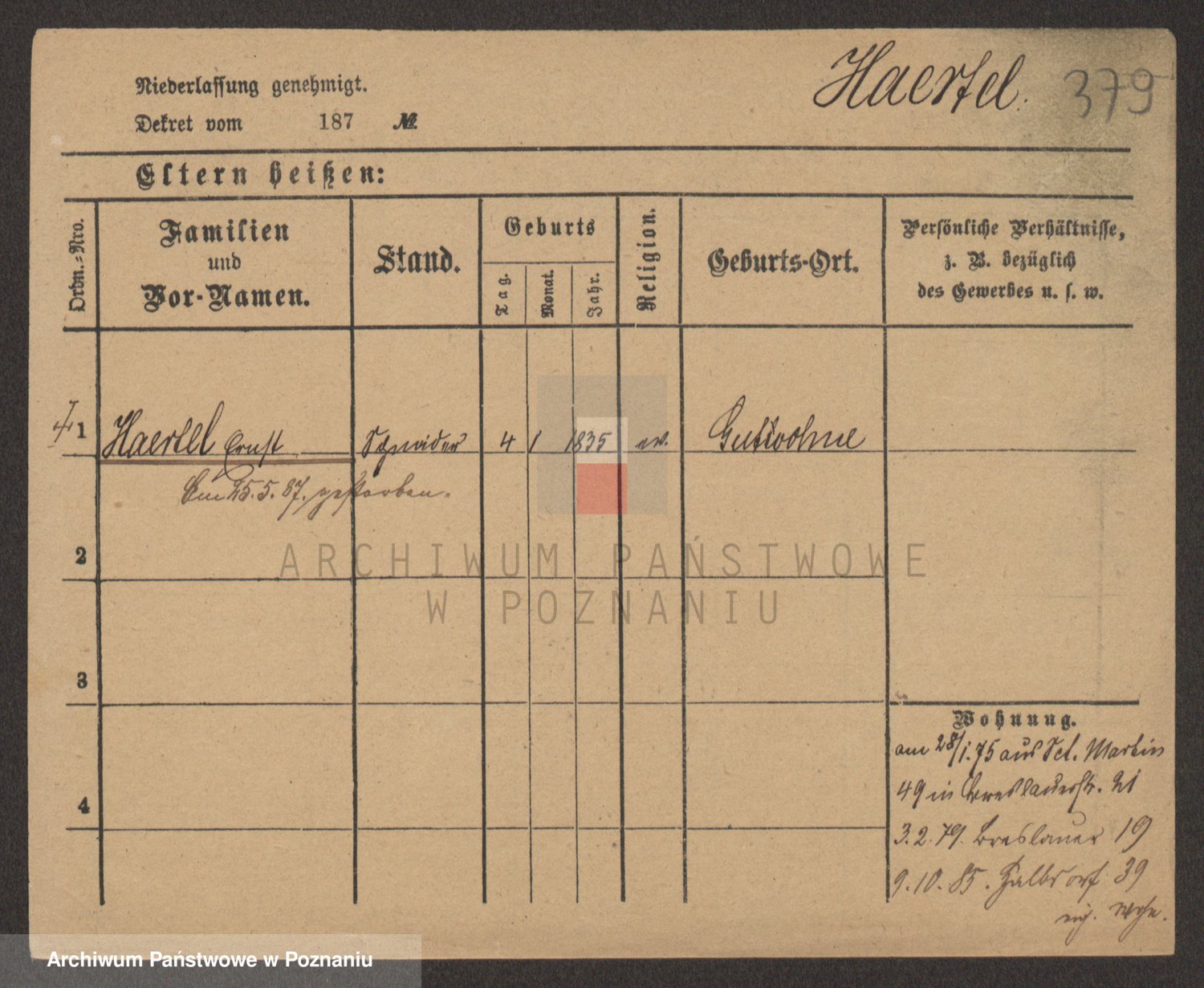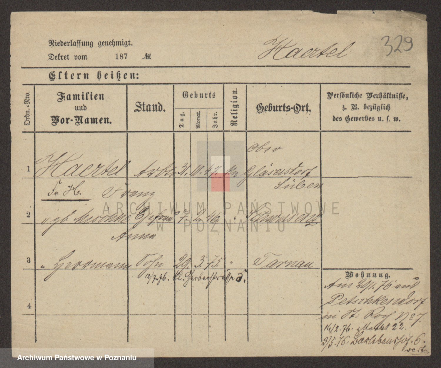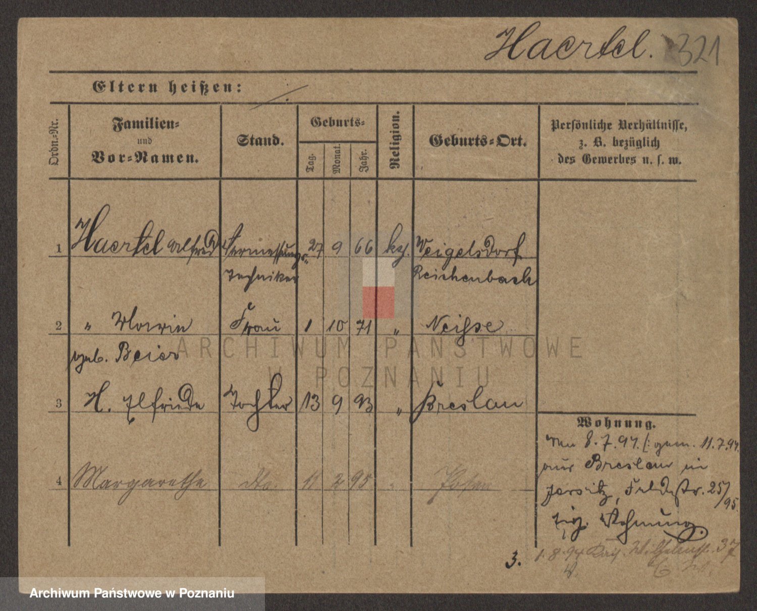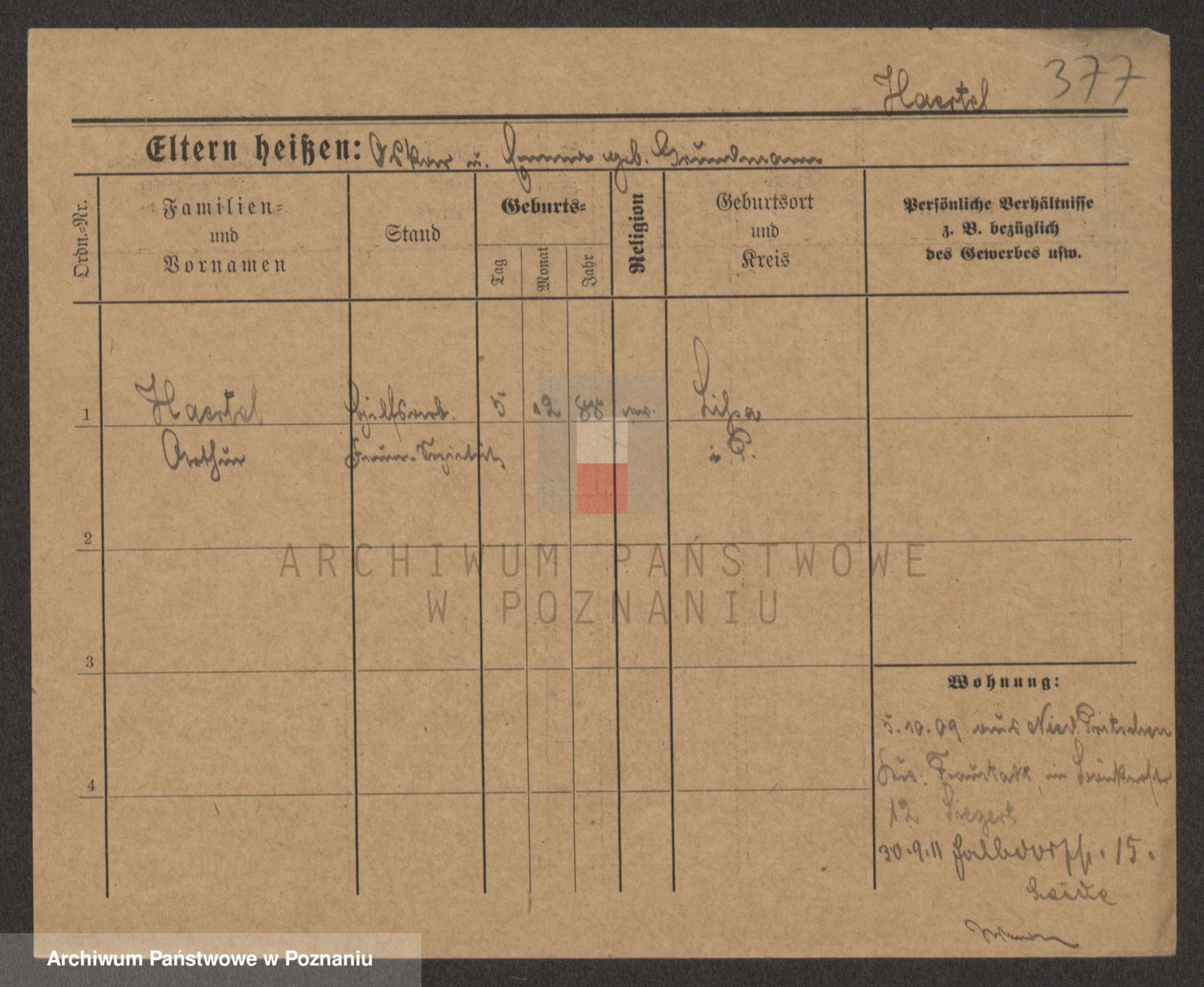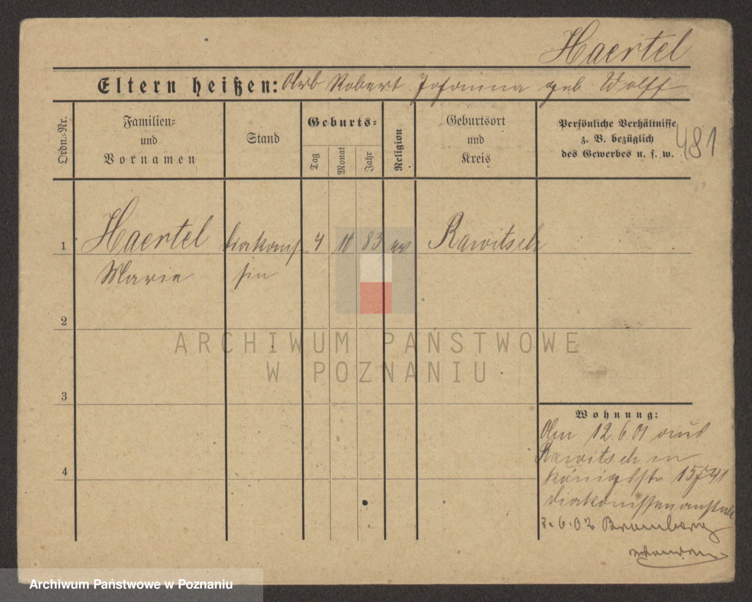 Podgląd karty osobowej dostępny jest po kliknięciu na nazwisko lub ikonkę karty. Można dokonywać powiększenia (ikony na górze) lub przechodzić między kolejnymi skanami (strzałki po bokach).