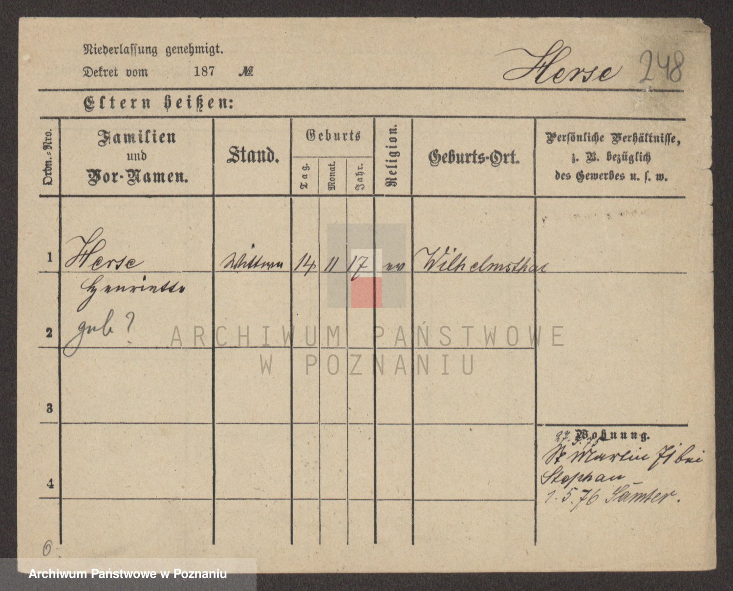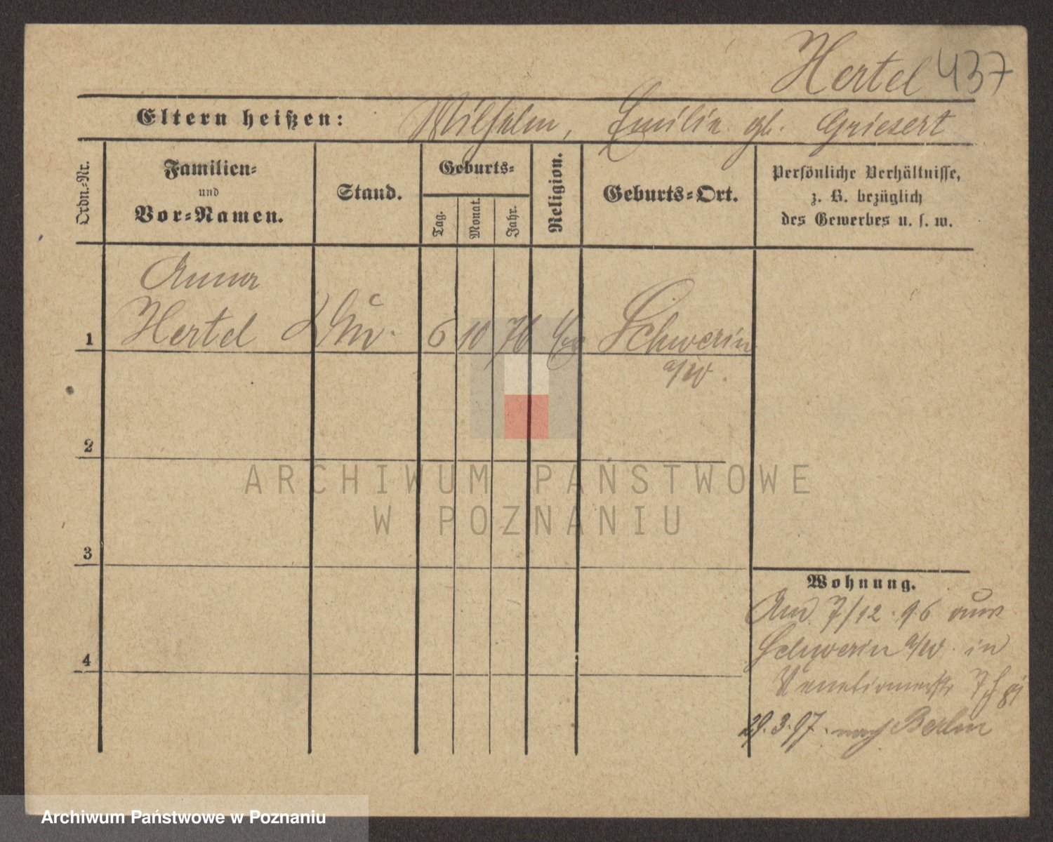 Hörner z d. Schlieper, Hersilie Wilhelmine Friederike