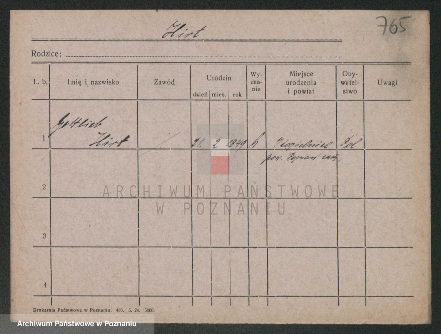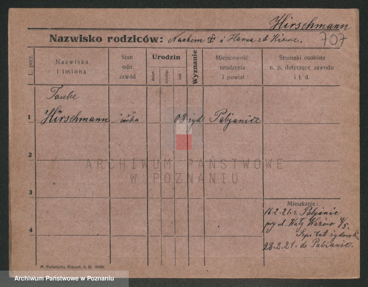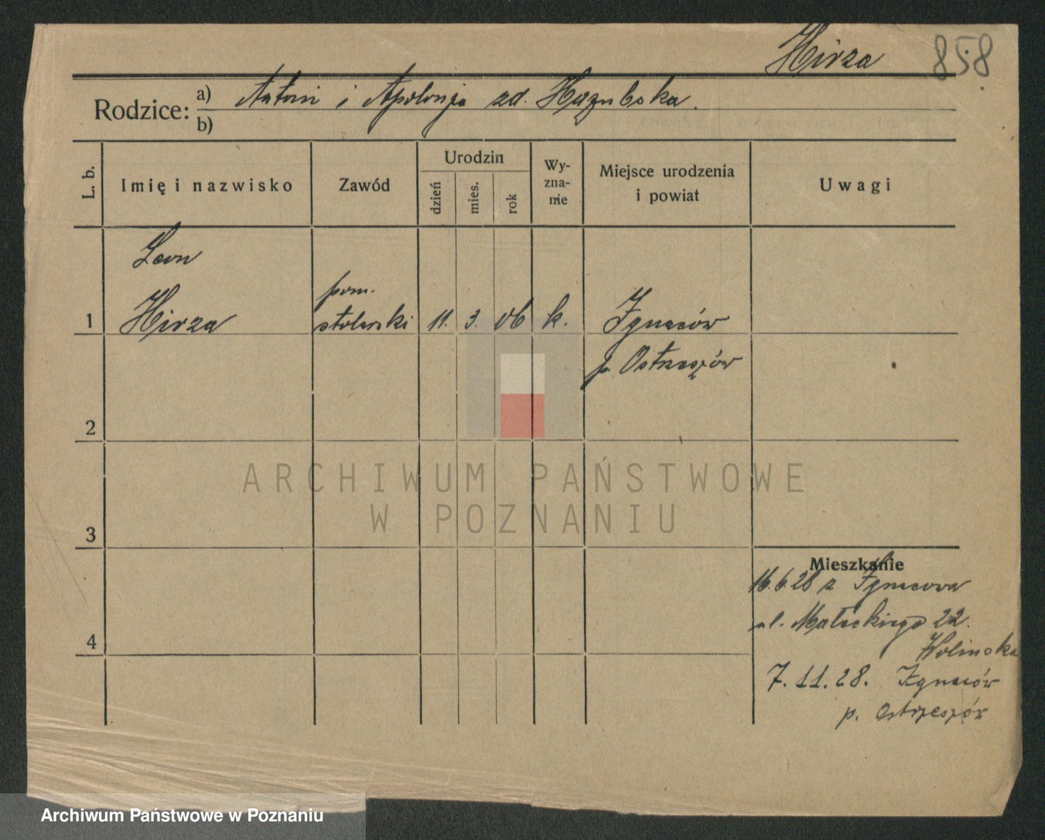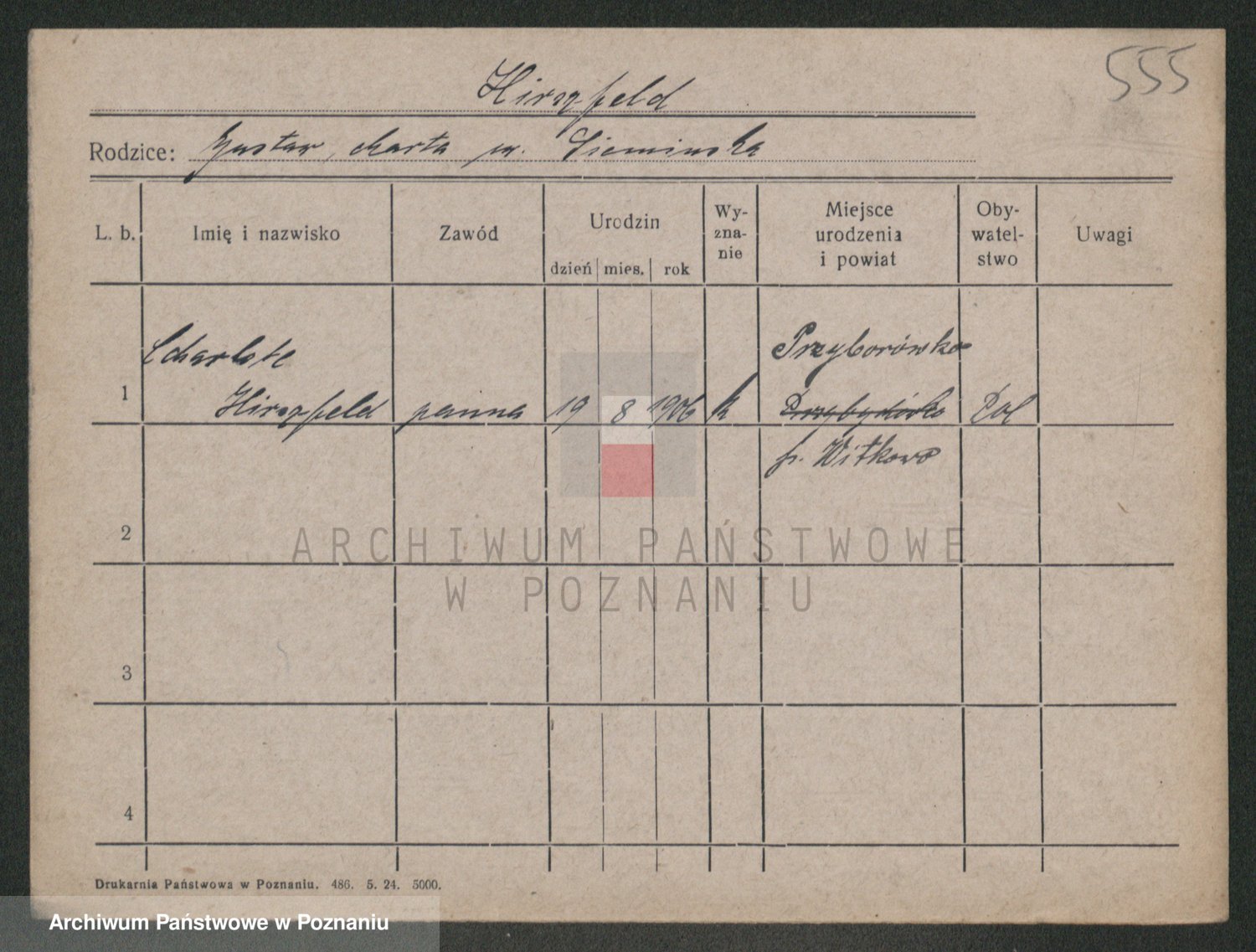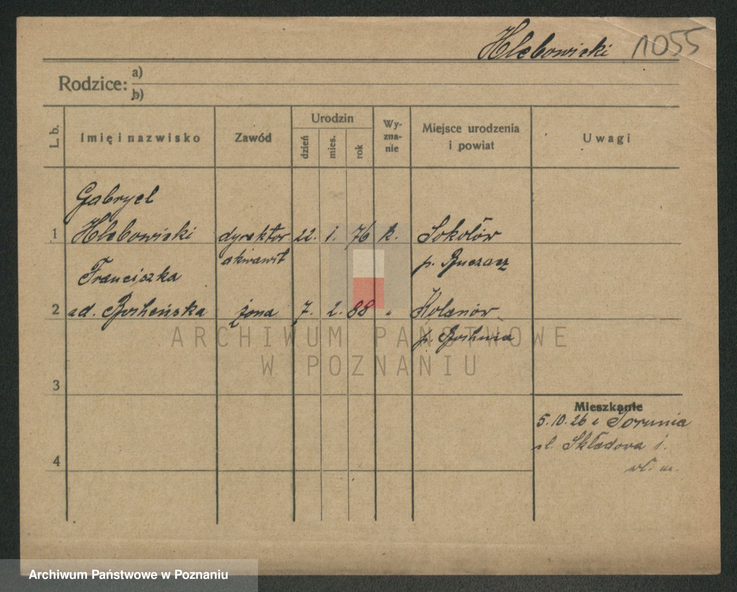 Podgląd karty osobowej dostępny jest po kliknięciu na nazwisko lub ikonkę karty. Można dokonywać powiększenia (ikony na górze) lub przechodzić między kolejnymi skanami (strzałki po bokach).