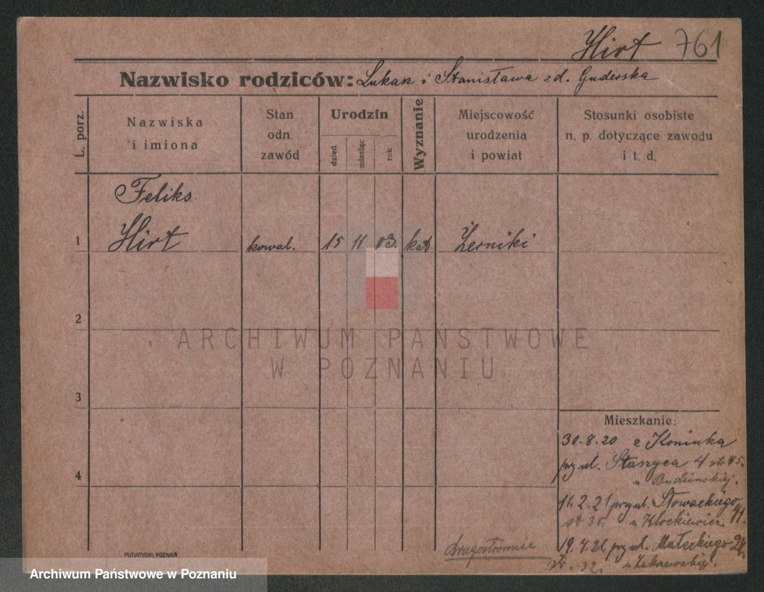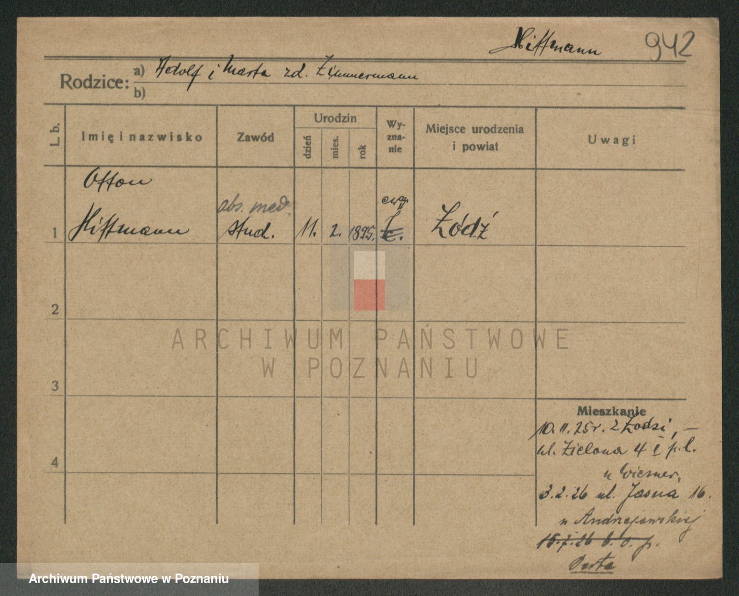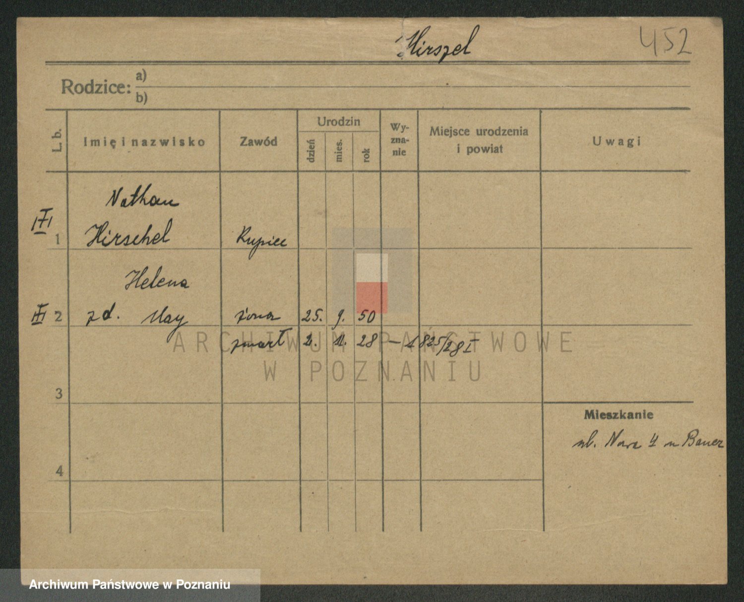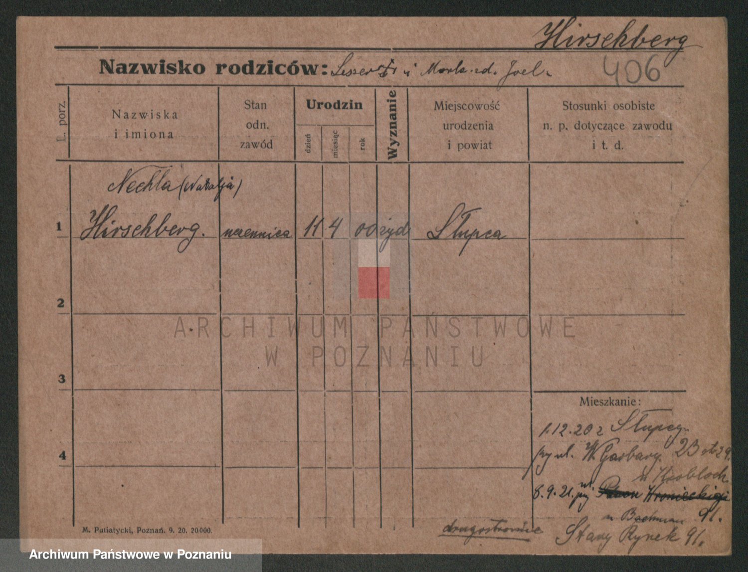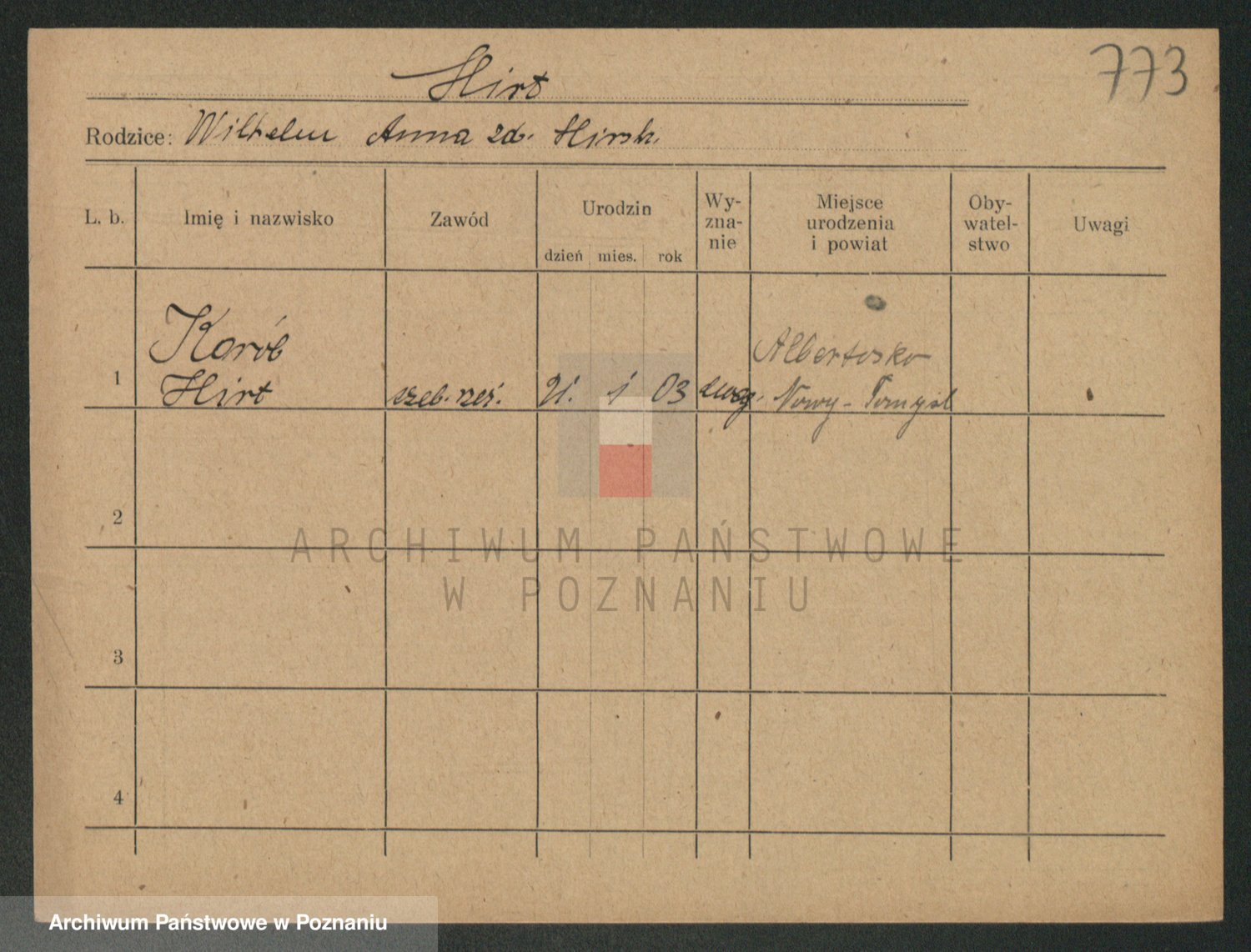 Podgląd karty osobowej dostępny jest po kliknięciu na nazwisko lub ikonkę karty. Można dokonywać powiększenia (ikony na górze) lub przechodzić między kolejnymi skanami (strzałki po bokach).
