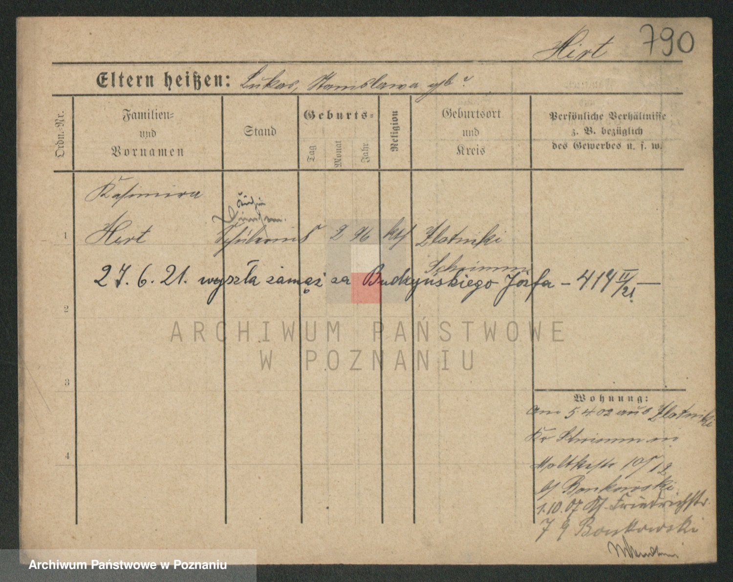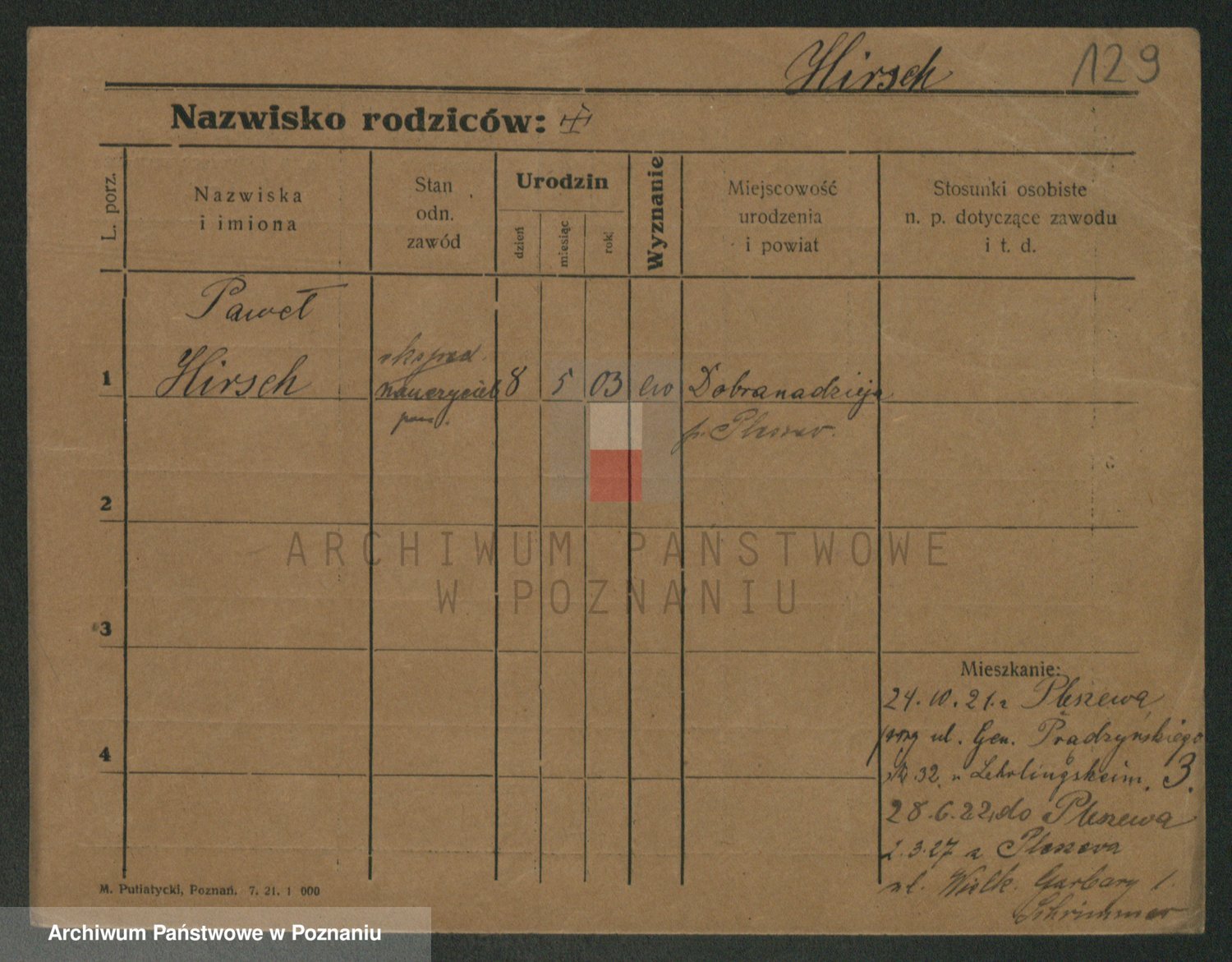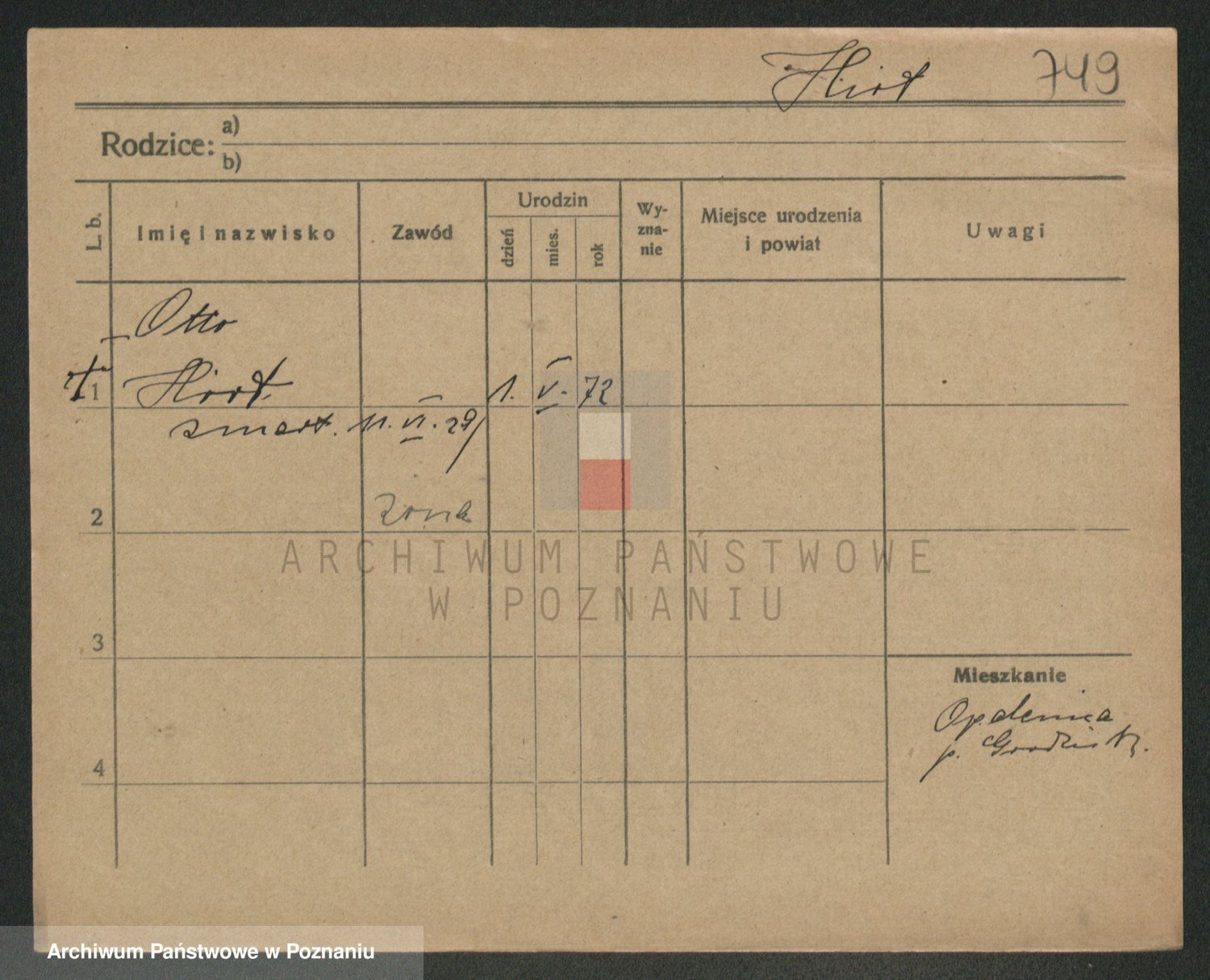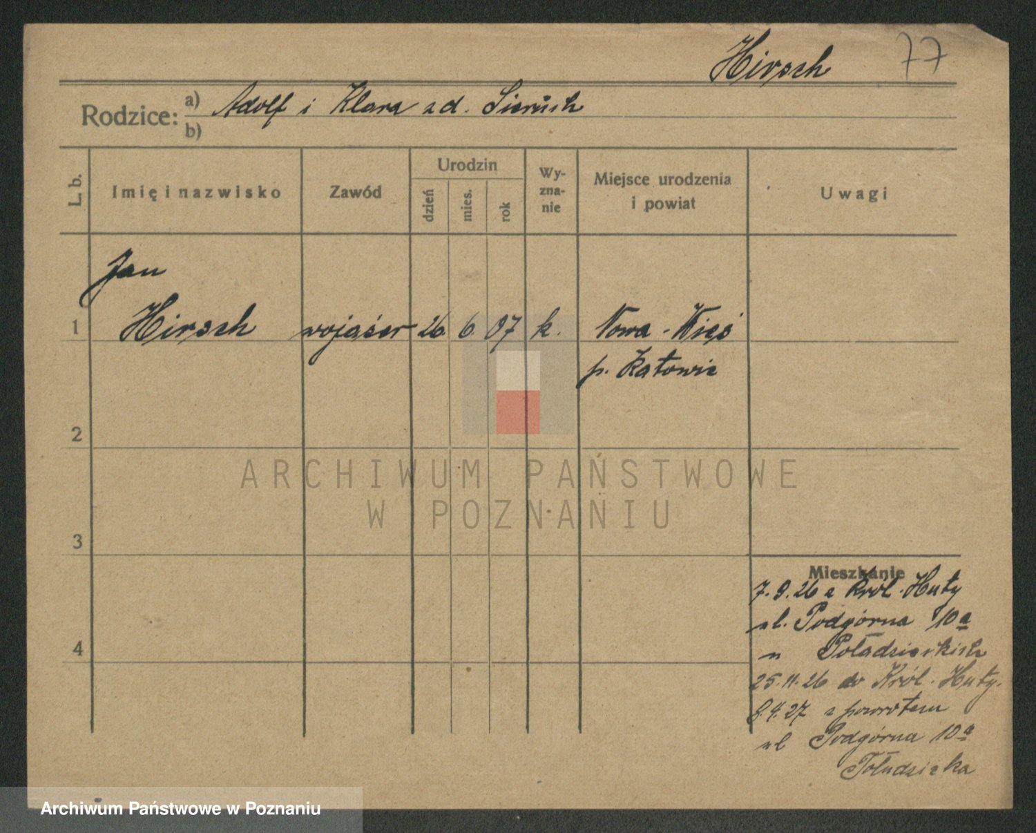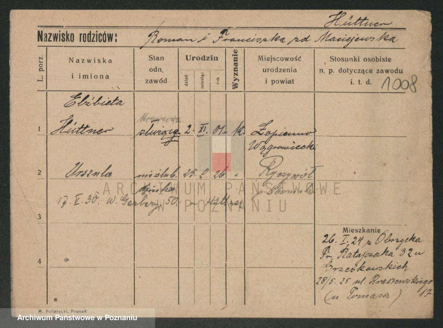 Podgląd karty osobowej dostępny jest po kliknięciu na nazwisko lub ikonkę karty. Można dokonywać powiększenia (ikony na górze) lub przechodzić między kolejnymi skanami (strzałki po bokach).