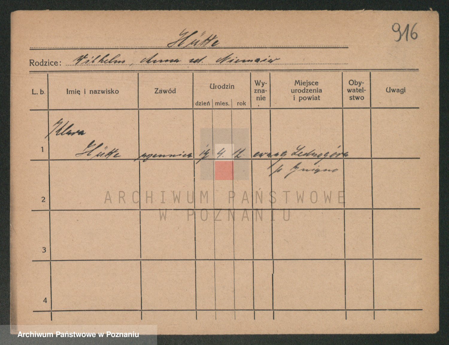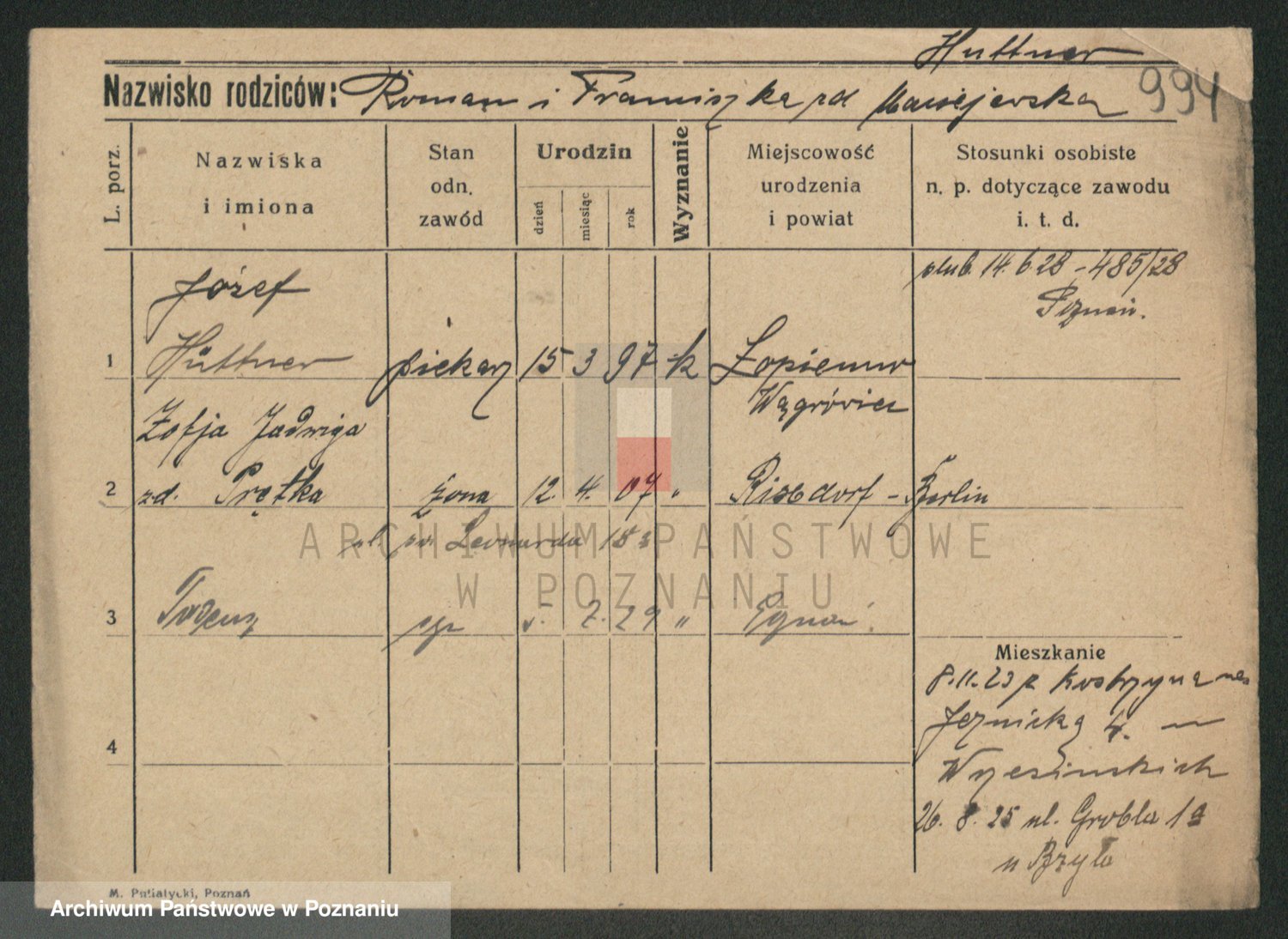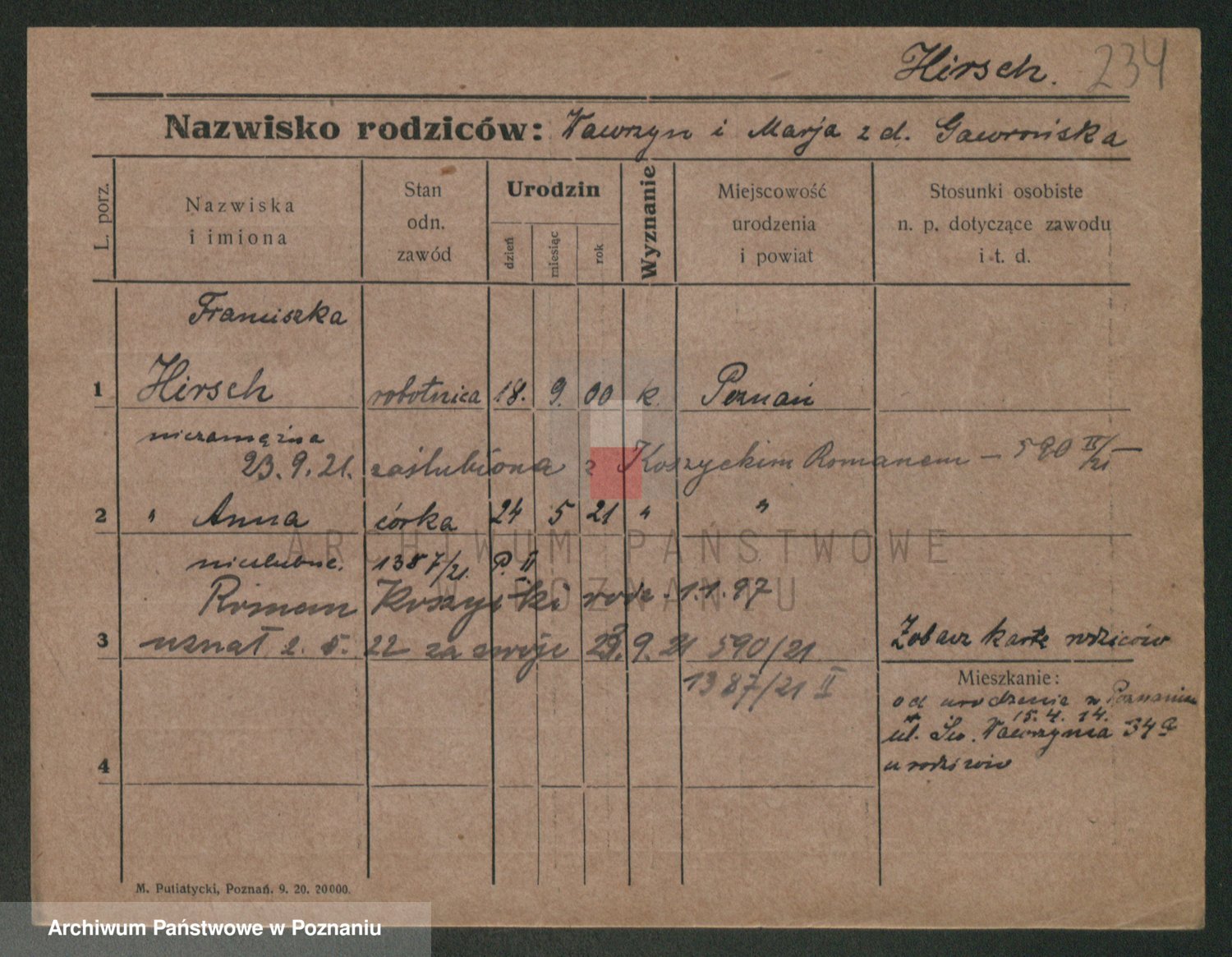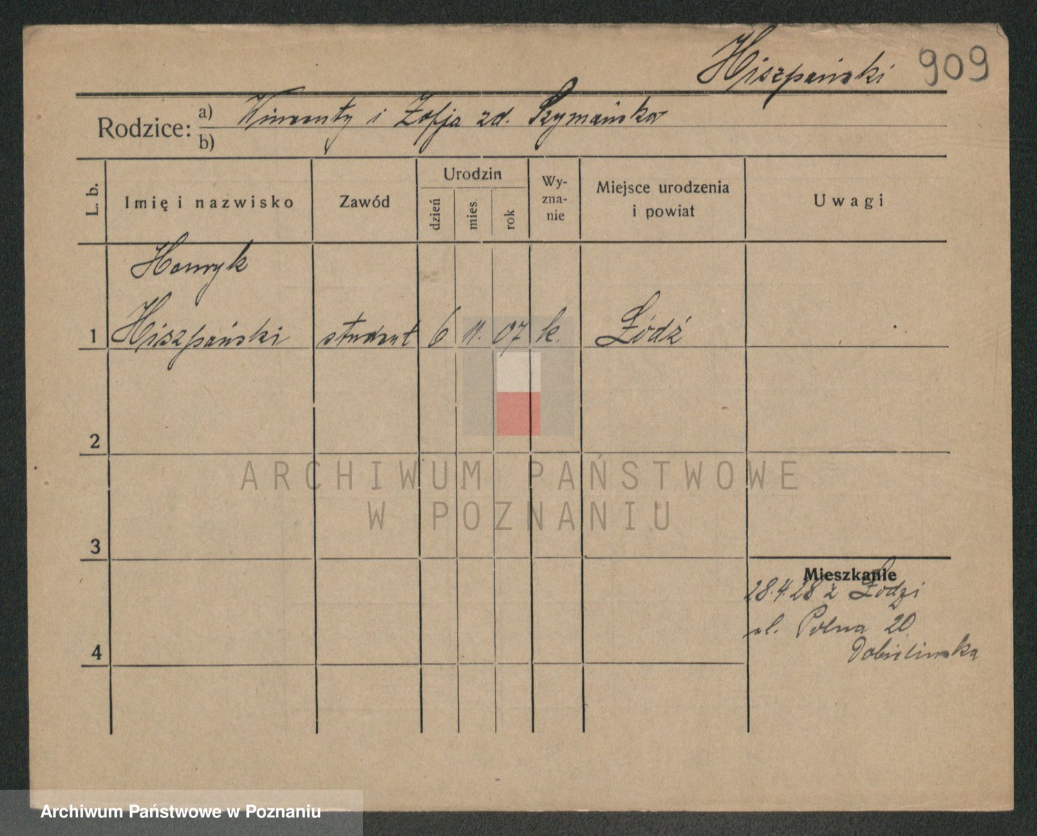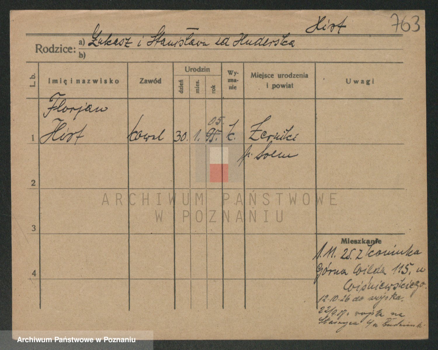 Podgląd karty osobowej dostępny jest po kliknięciu na nazwisko lub ikonkę karty. Można dokonywać powiększenia (ikony na górze) lub przechodzić między kolejnymi skanami (strzałki po bokach).