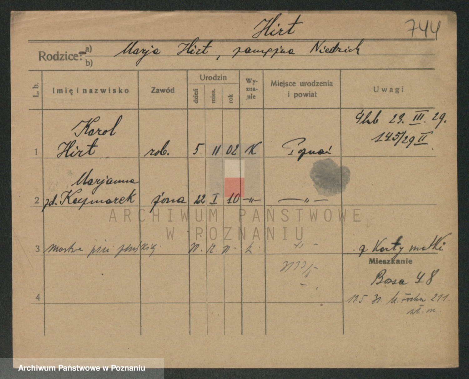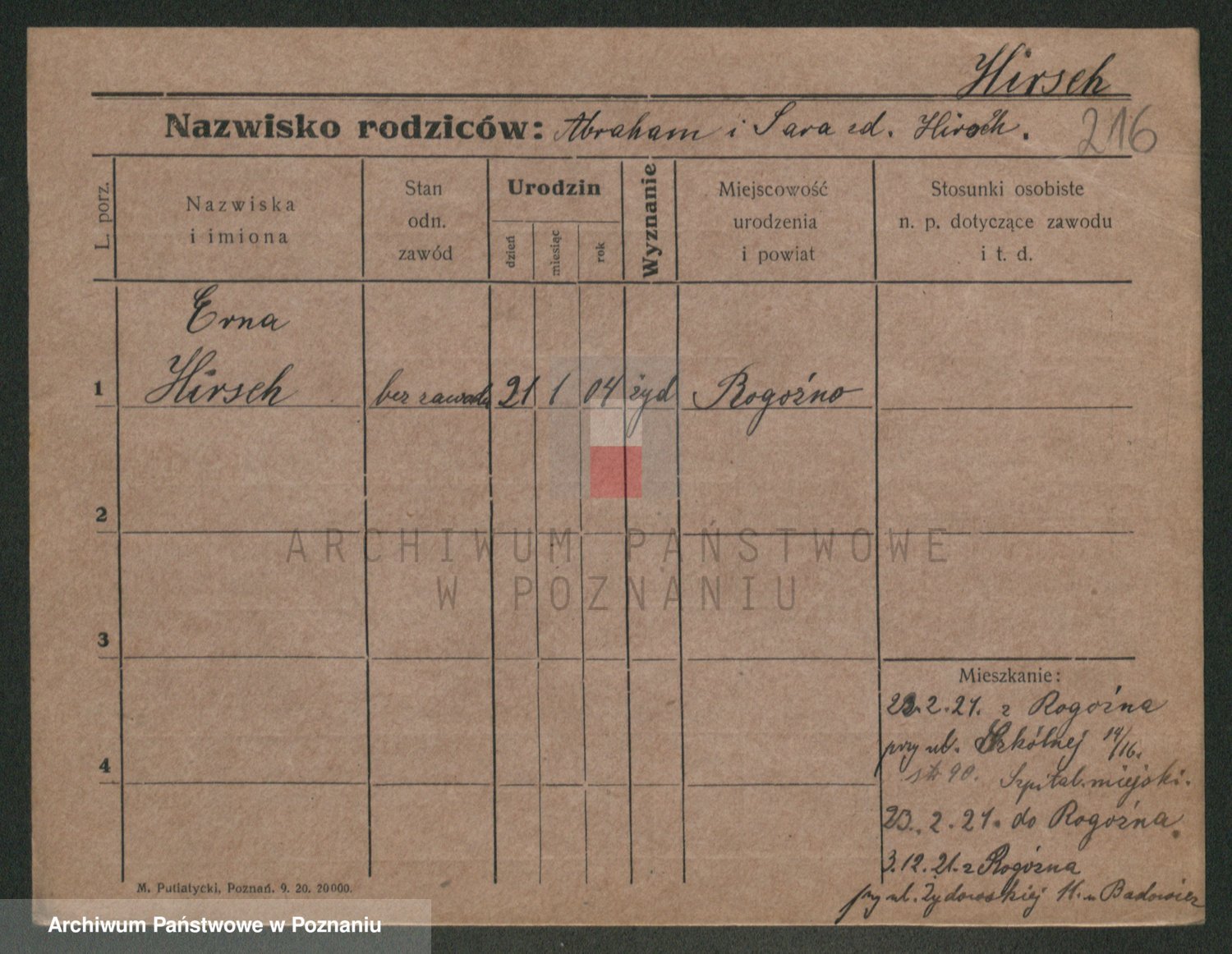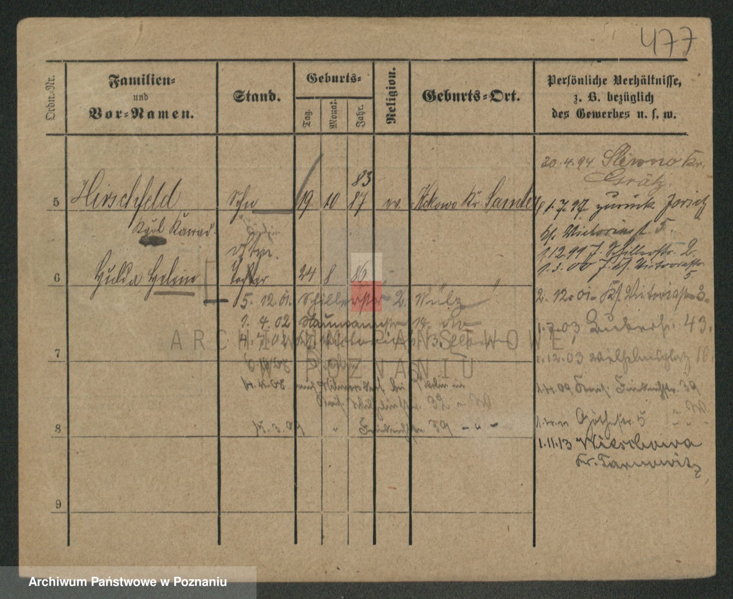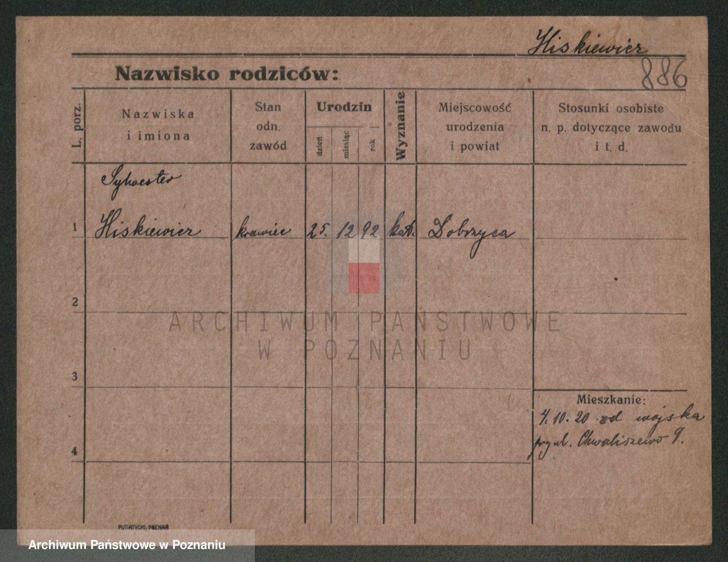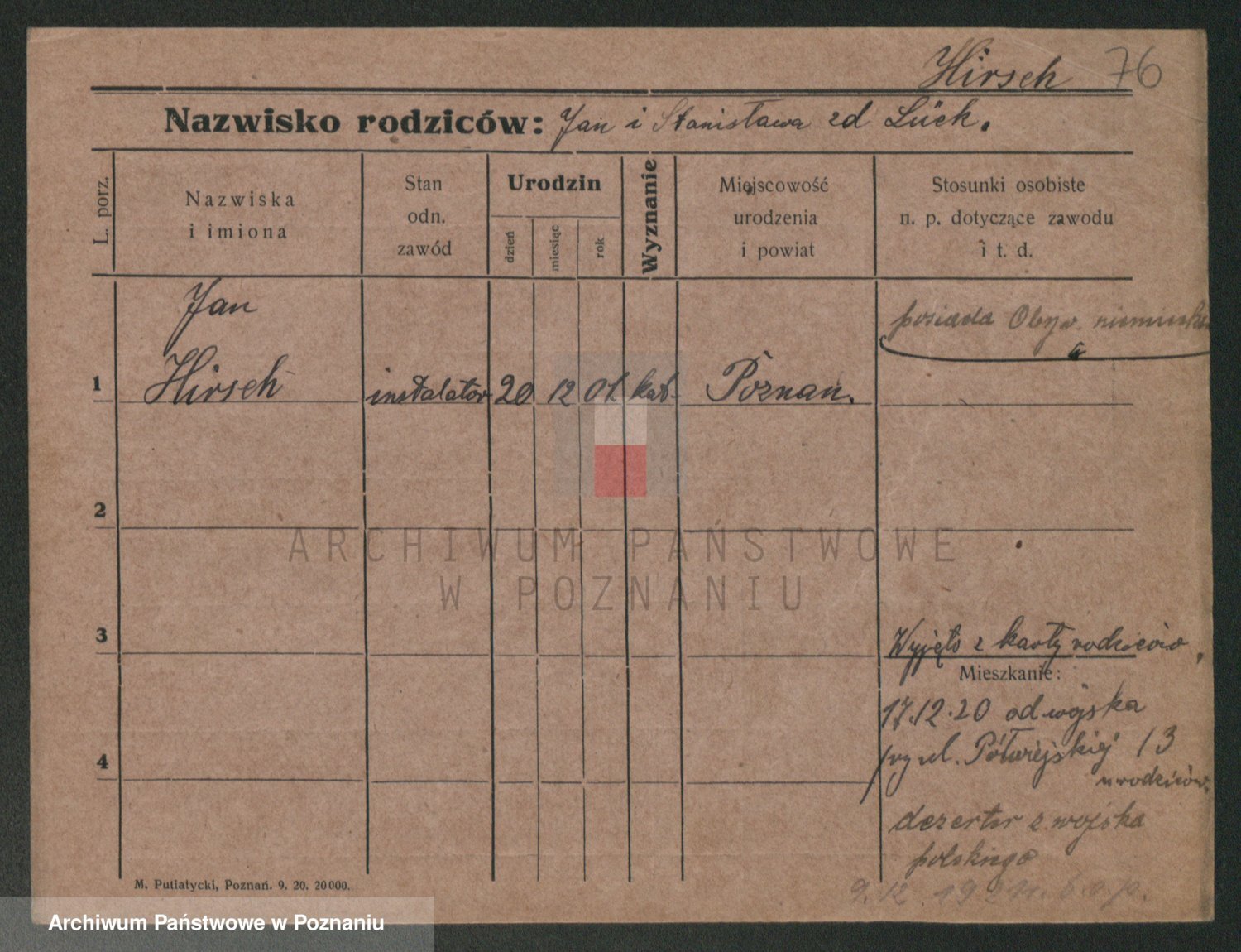 Podgląd karty osobowej dostępny jest po kliknięciu na nazwisko lub ikonkę karty. Można dokonywać powiększenia (ikony na górze) lub przechodzić między kolejnymi skanami (strzałki po bokach).