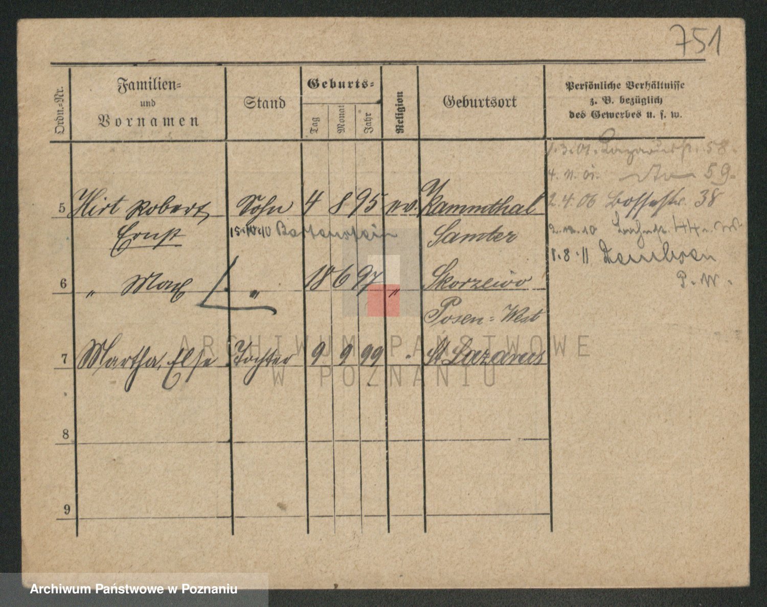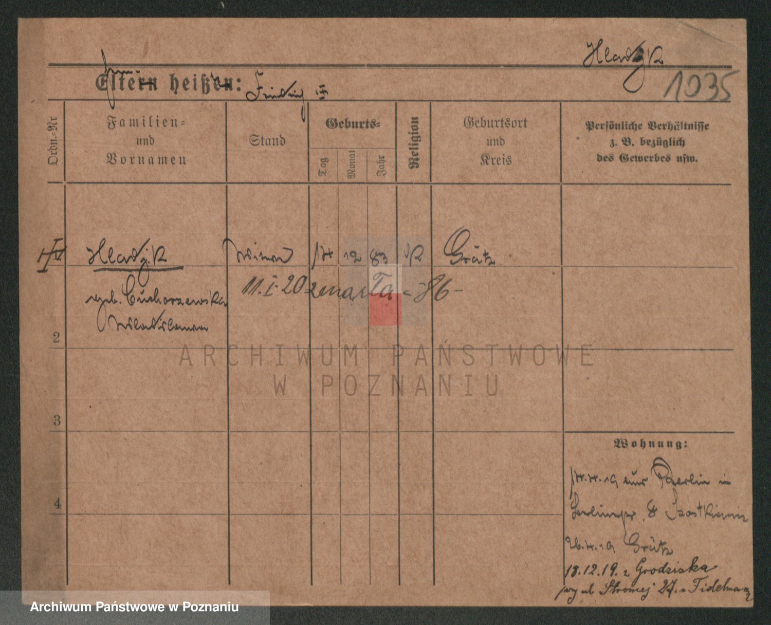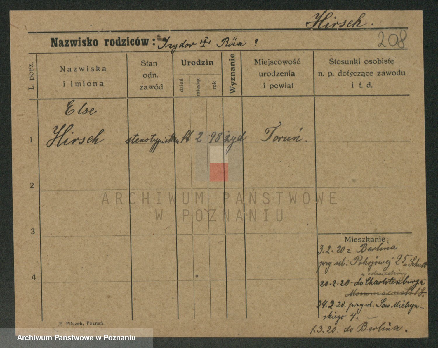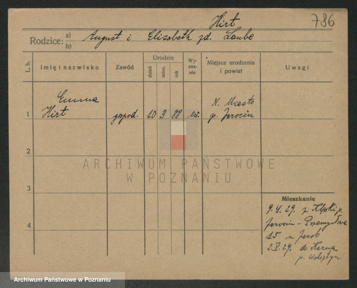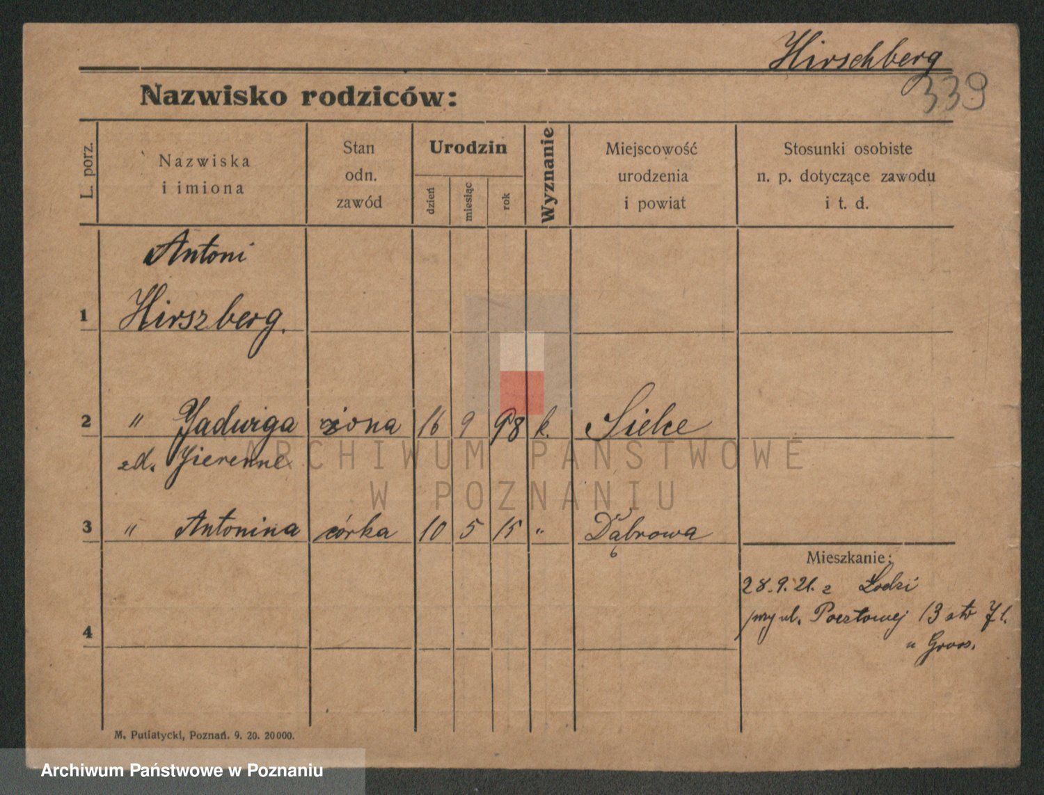 Podgląd karty osobowej dostępny jest po kliknięciu na nazwisko lub ikonkę karty. Można dokonywać powiększenia (ikony na górze) lub przechodzić między kolejnymi skanami (strzałki po bokach).