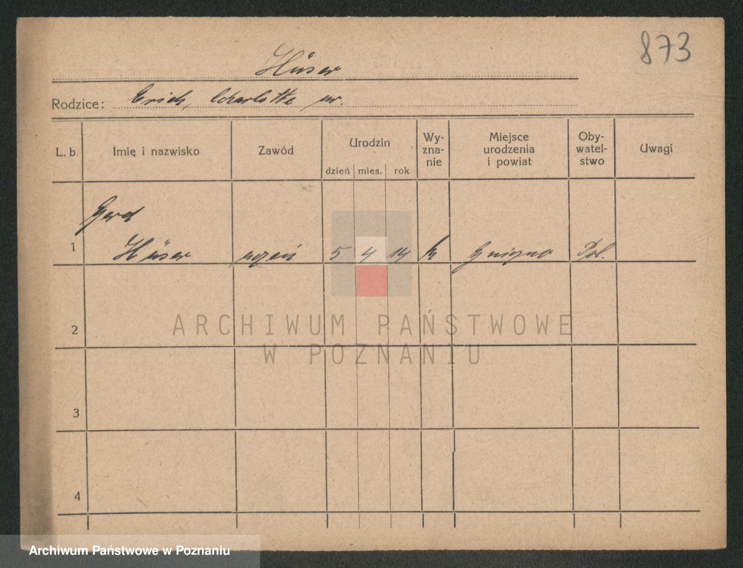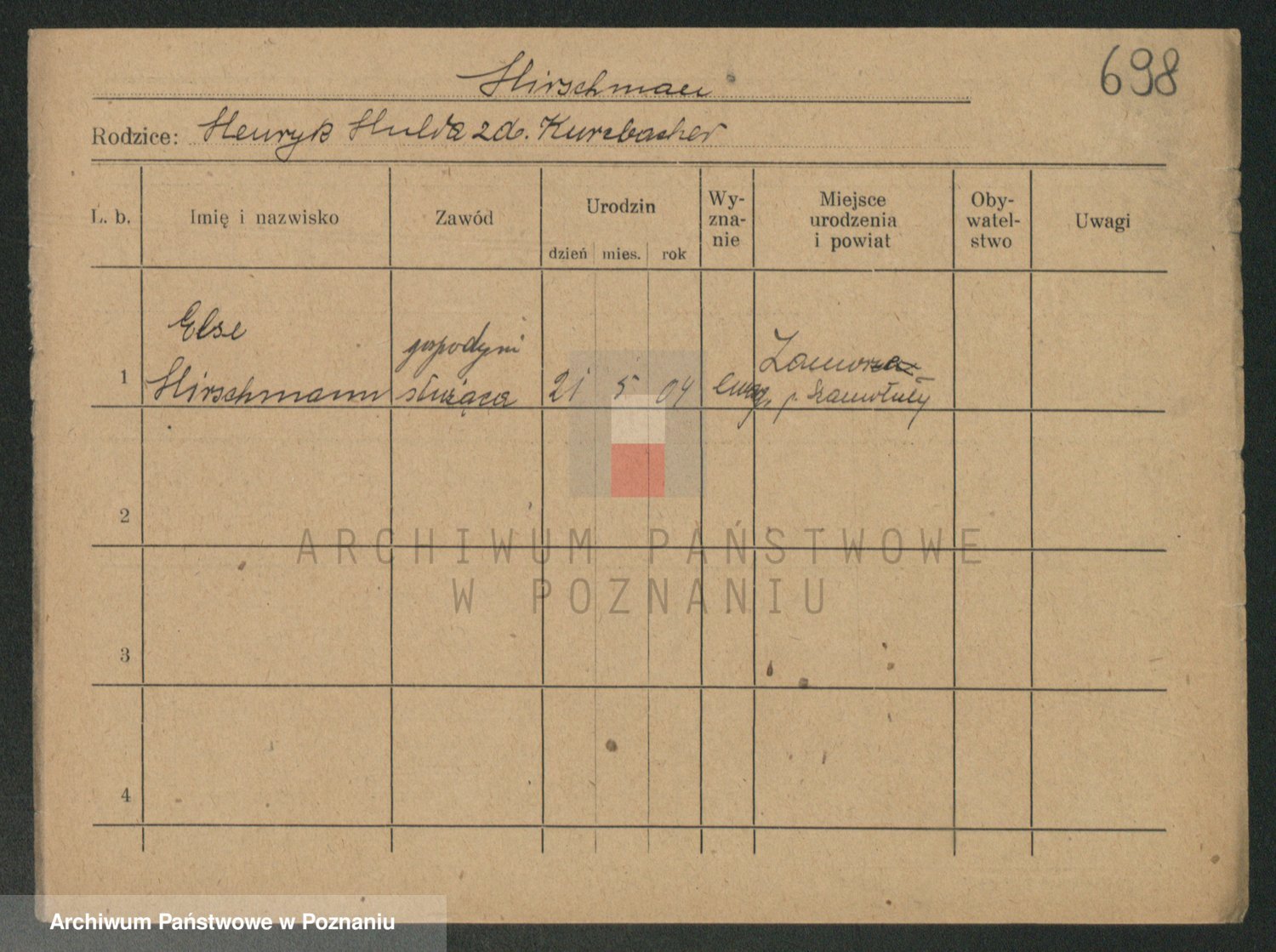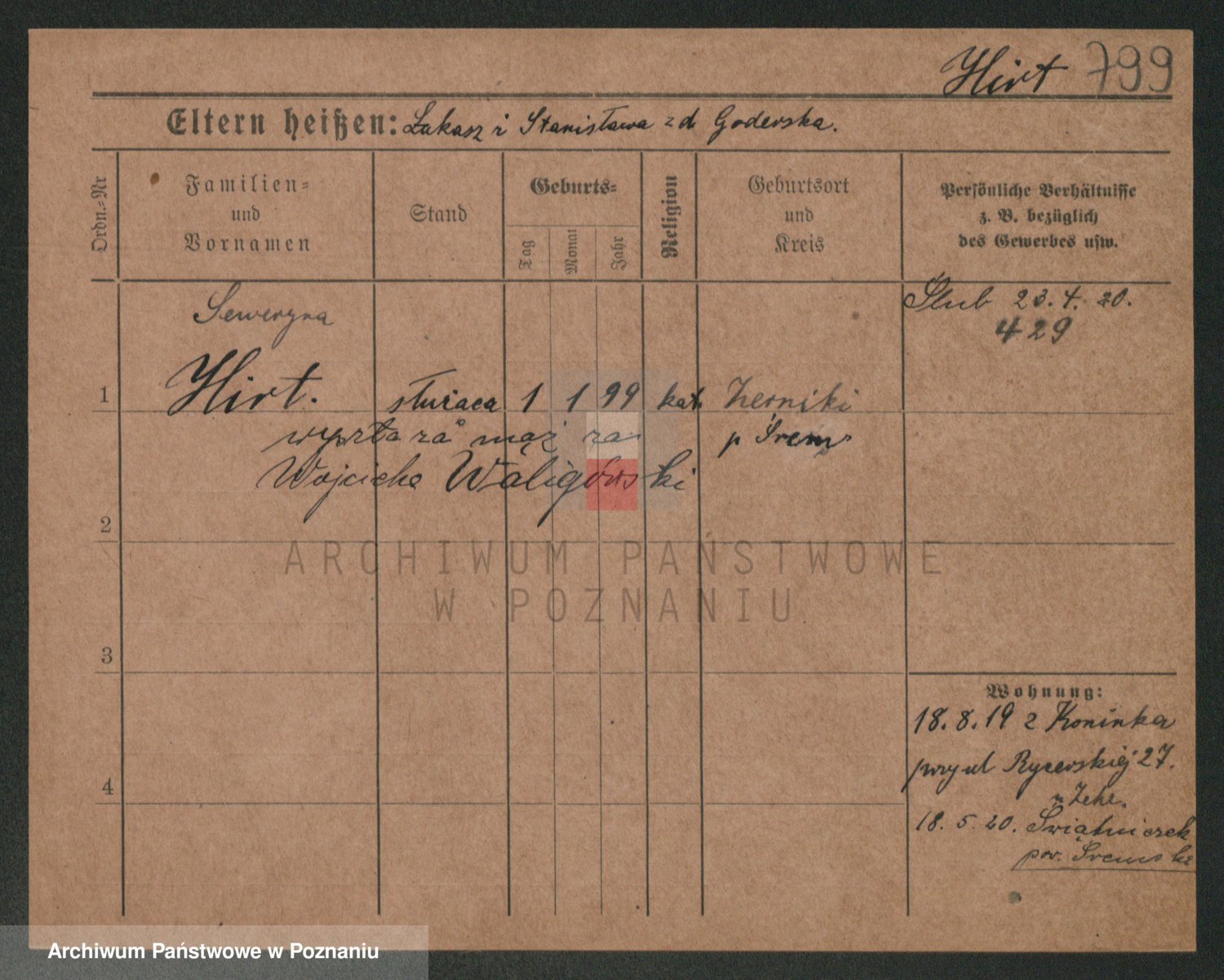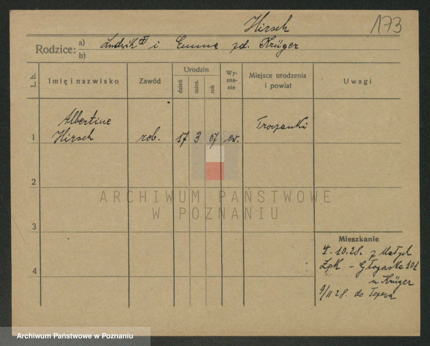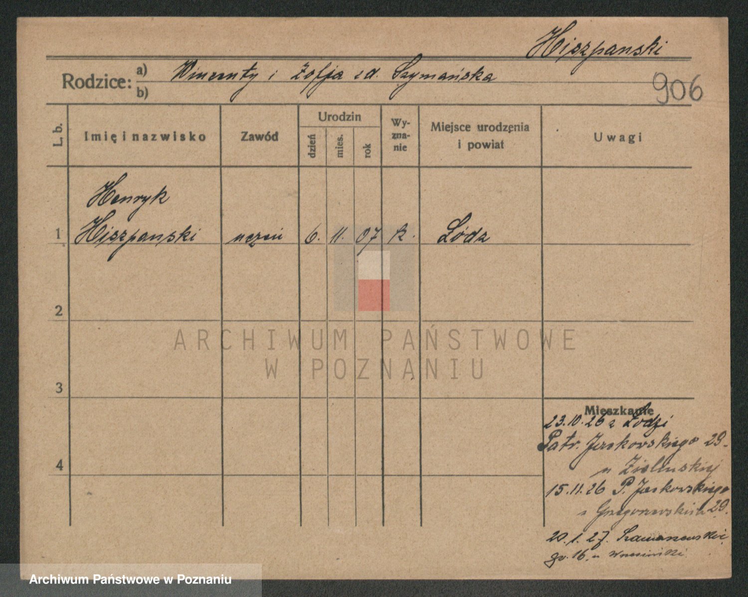 Podgląd karty osobowej dostępny jest po kliknięciu na nazwisko lub ikonkę karty. Można dokonywać powiększenia (ikony na górze) lub przechodzić między kolejnymi skanami (strzałki po bokach).