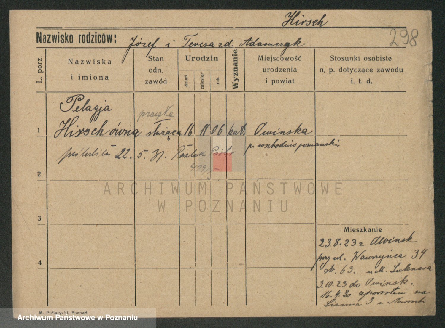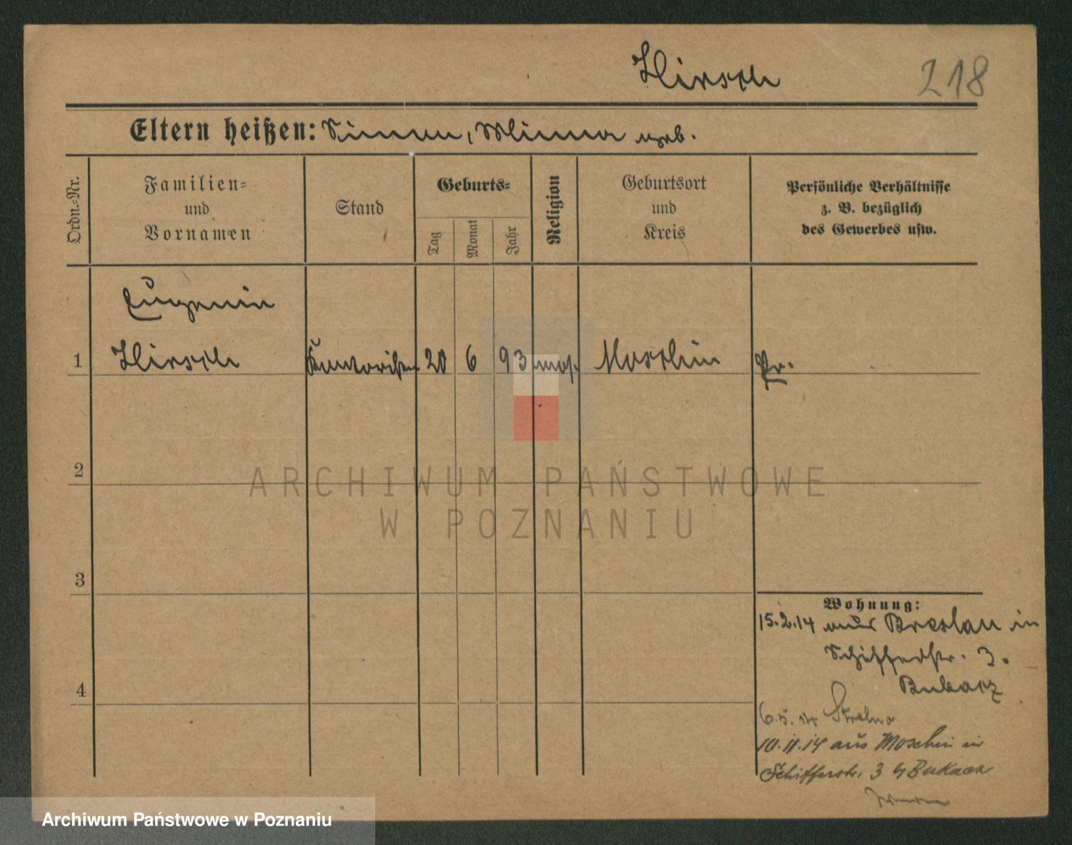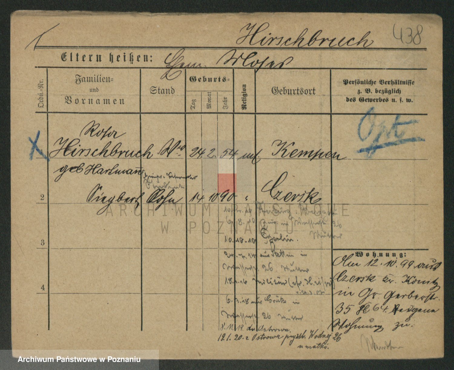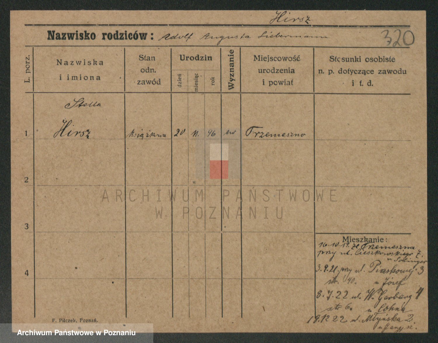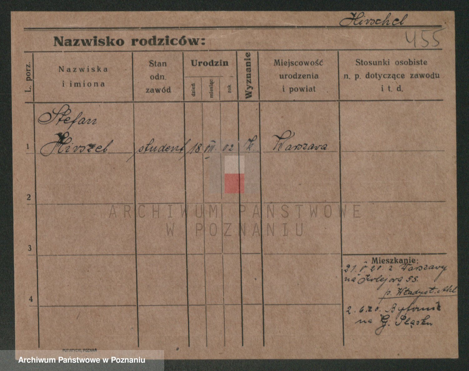 Podgląd karty osobowej dostępny jest po kliknięciu na nazwisko lub ikonkę karty. Można dokonywać powiększenia (ikony na górze) lub przechodzić między kolejnymi skanami (strzałki po bokach).