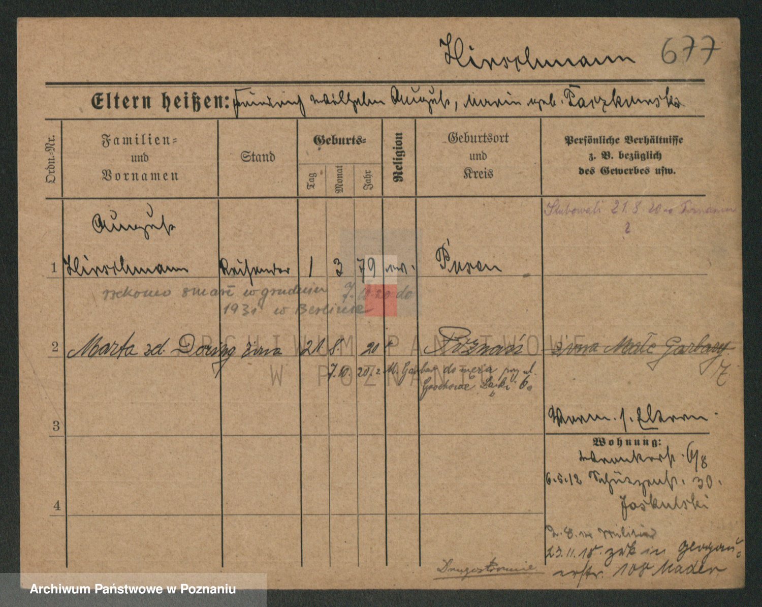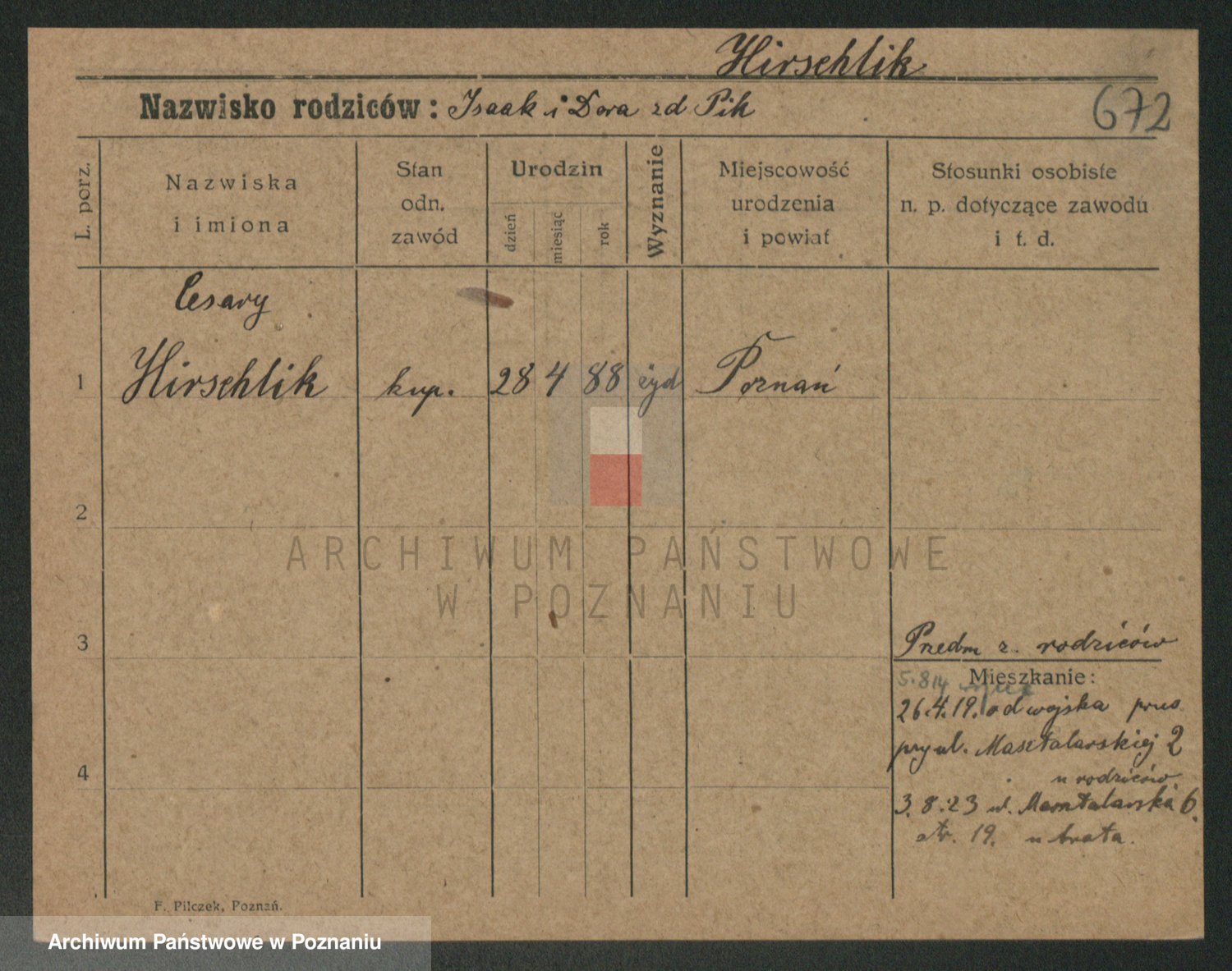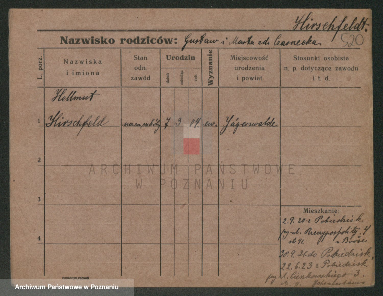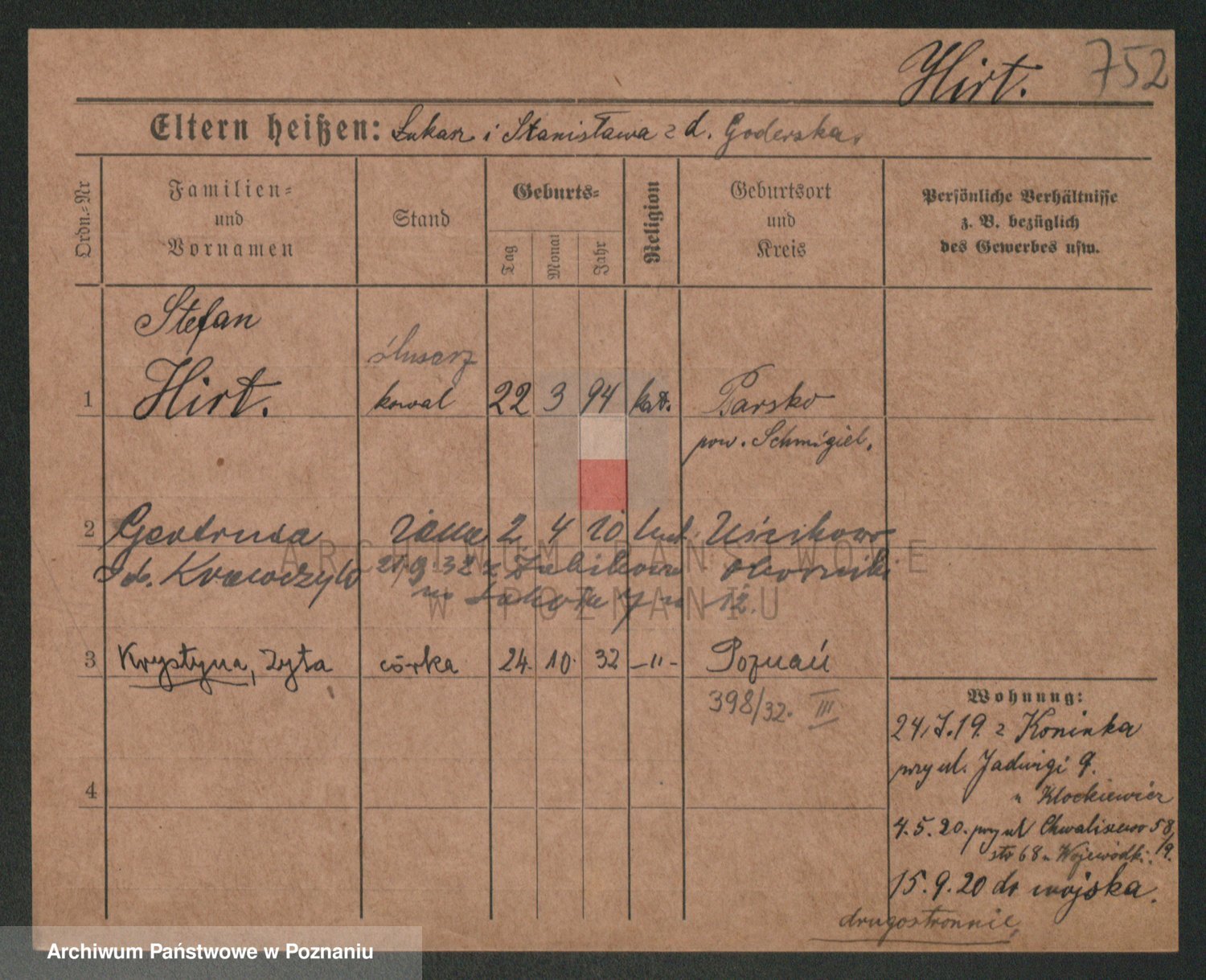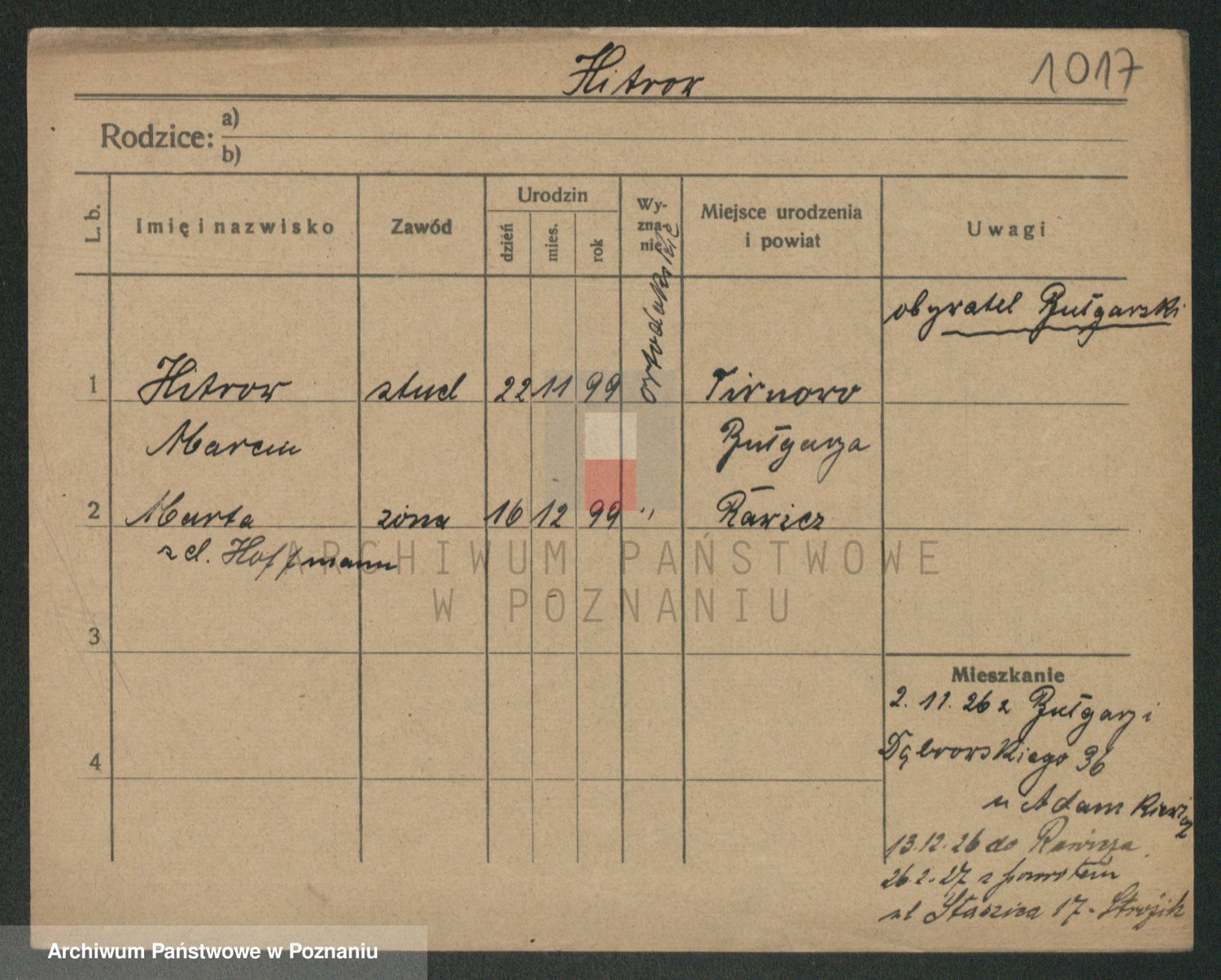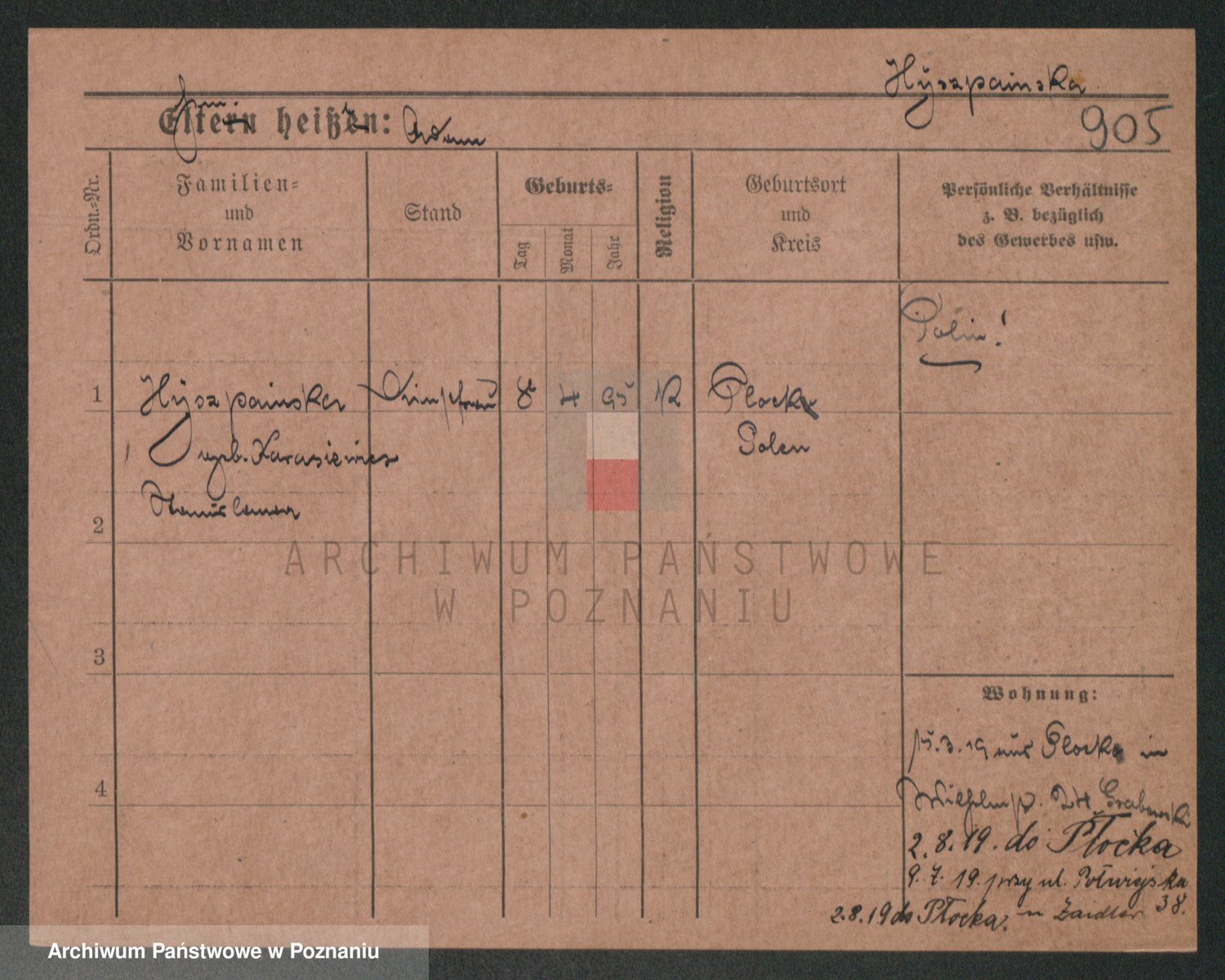 Podgląd karty osobowej dostępny jest po kliknięciu na nazwisko lub ikonkę karty. Można dokonywać powiększenia (ikony na górze) lub przechodzić między kolejnymi skanami (strzałki po bokach).