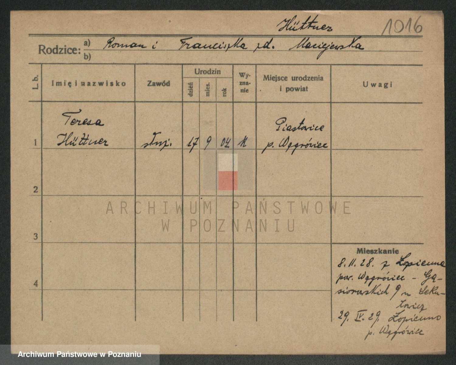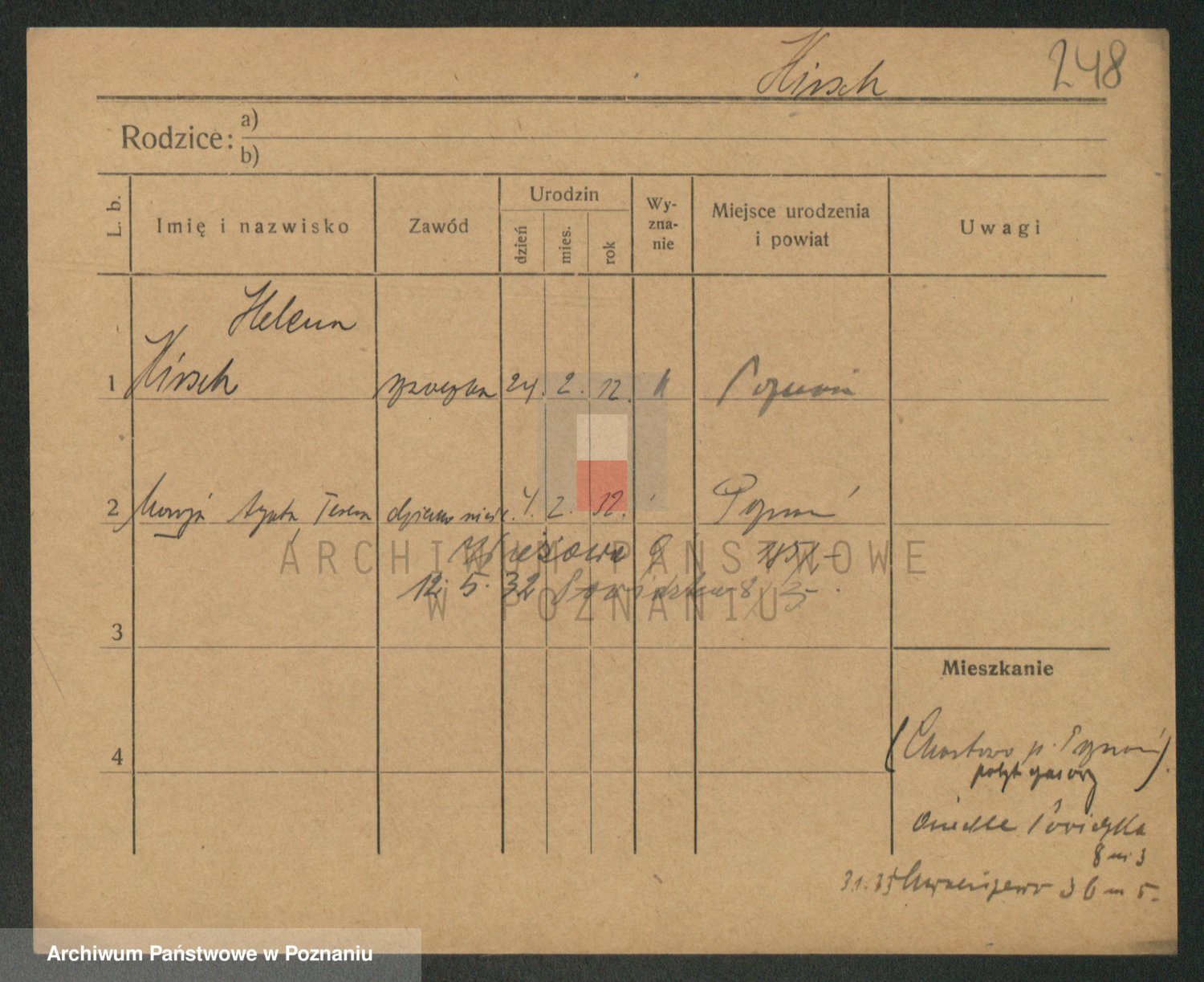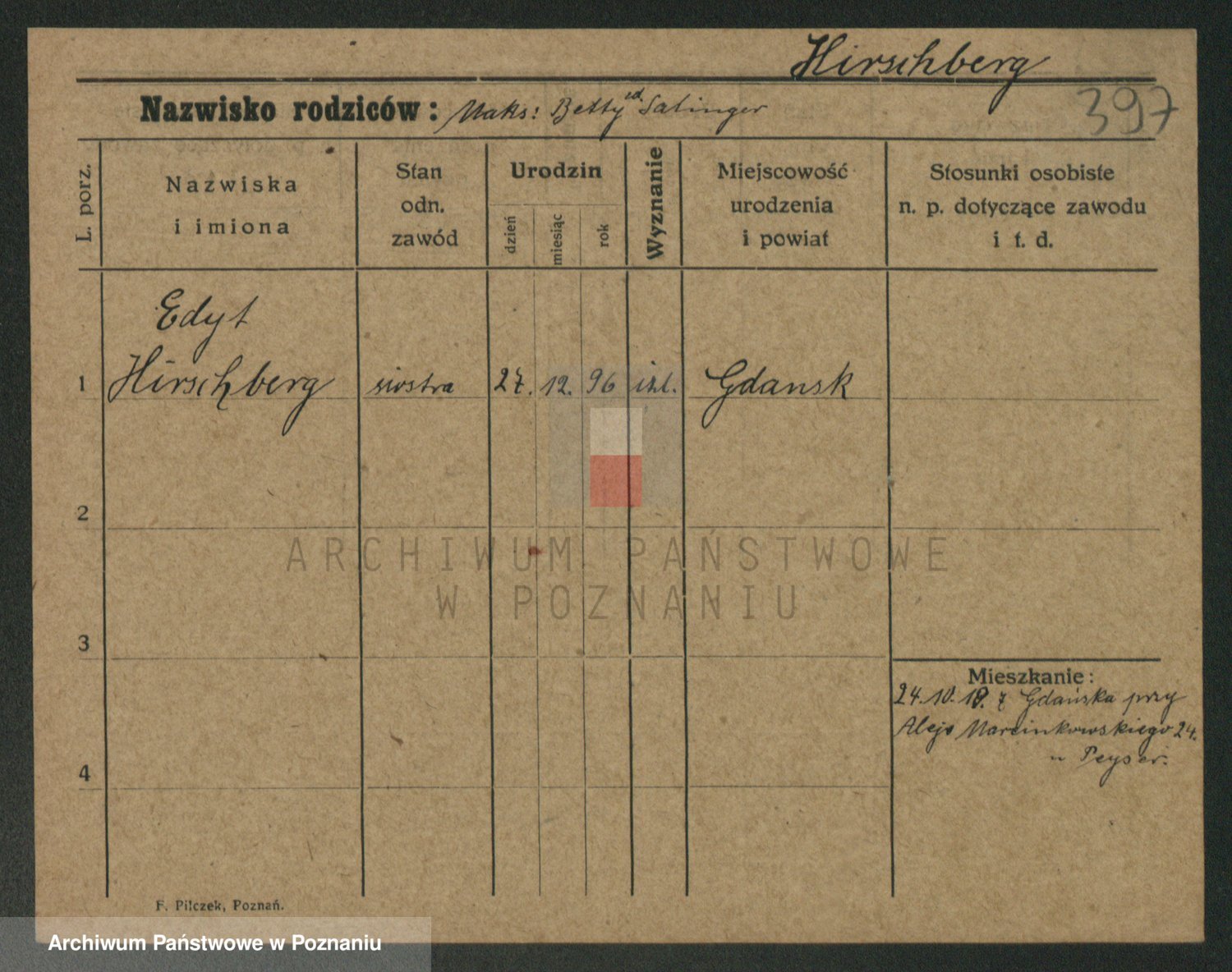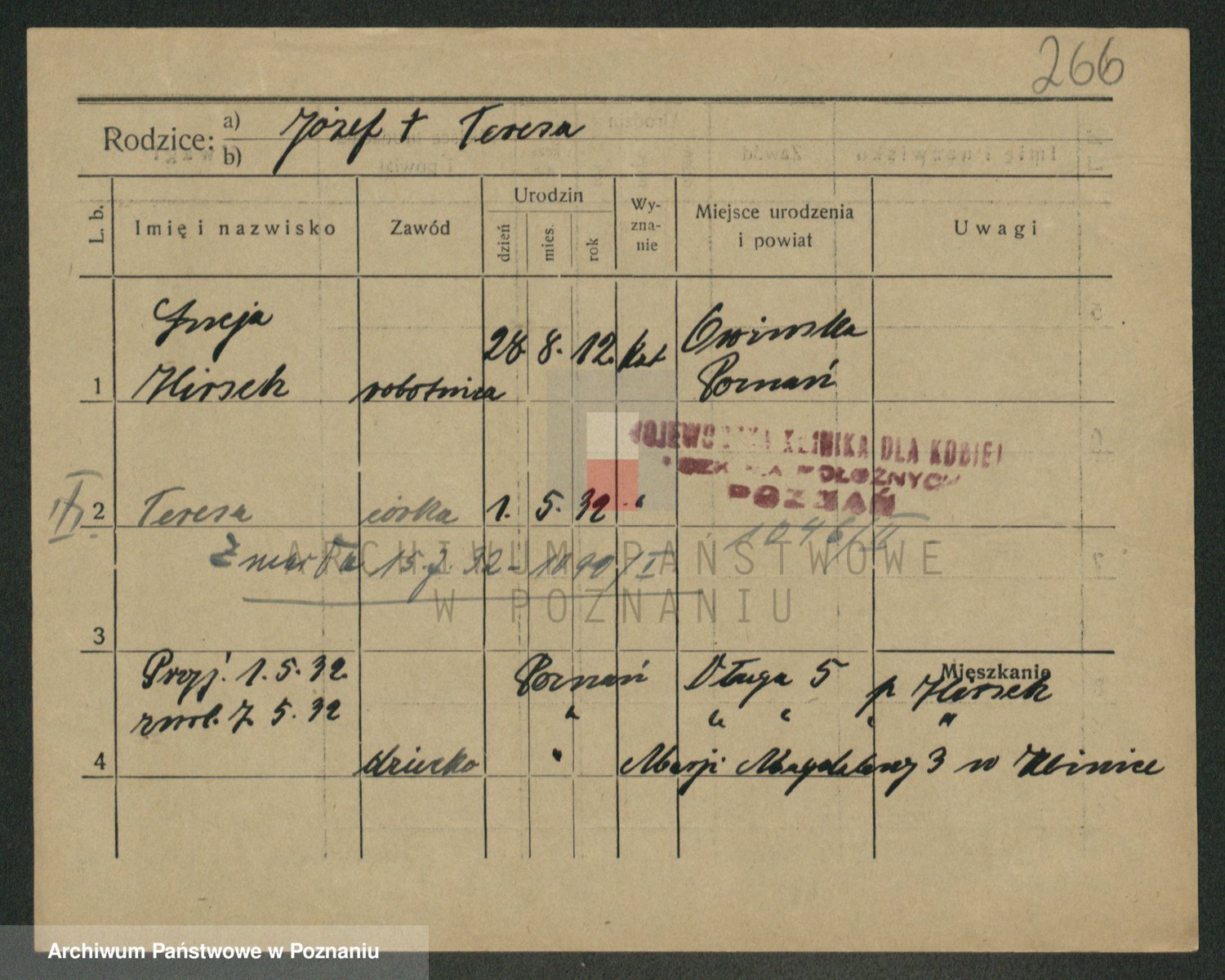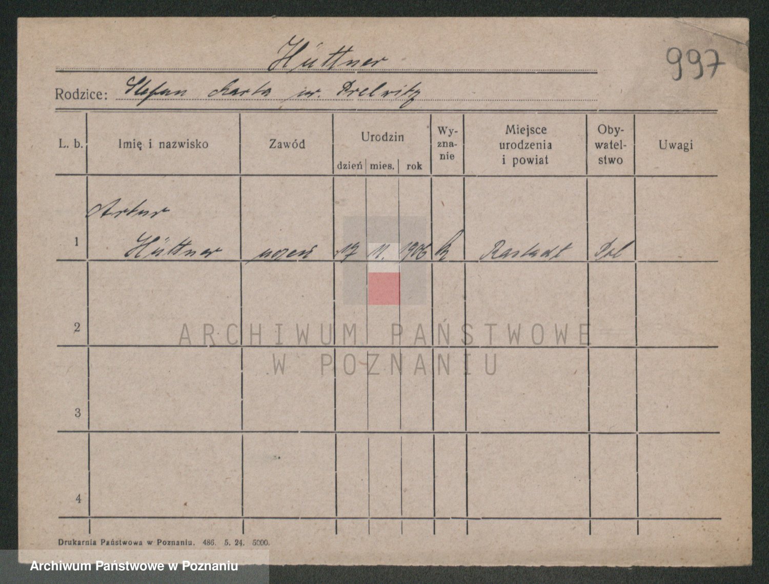 Podgląd karty osobowej dostępny jest po kliknięciu na nazwisko lub ikonkę karty. Można dokonywać powiększenia (ikony na górze) lub przechodzić między kolejnymi skanami (strzałki po bokach).