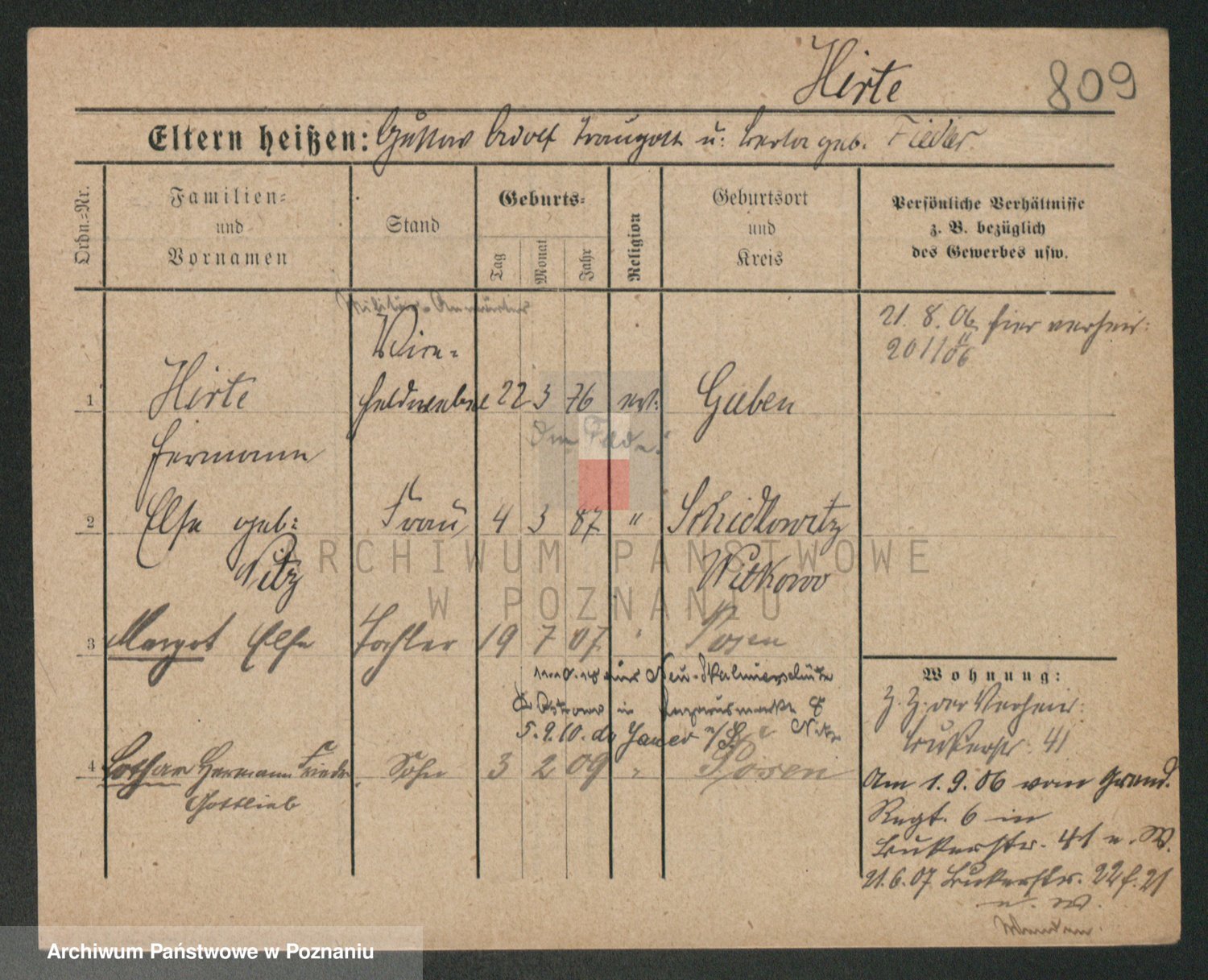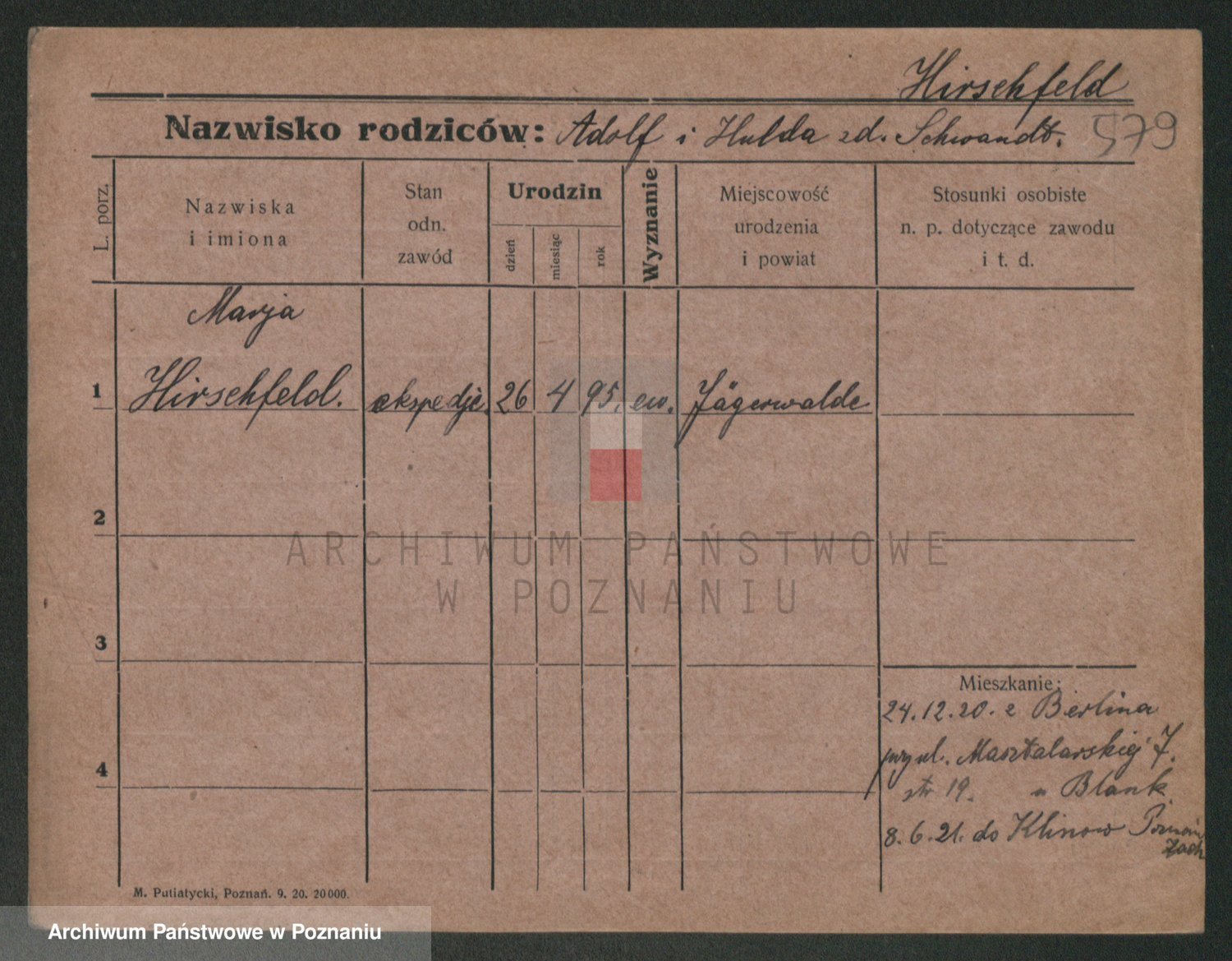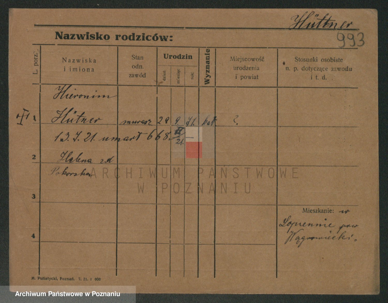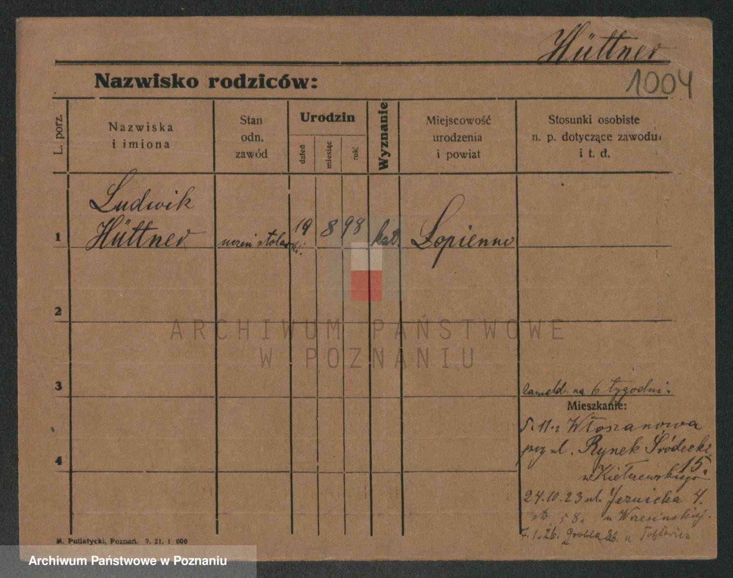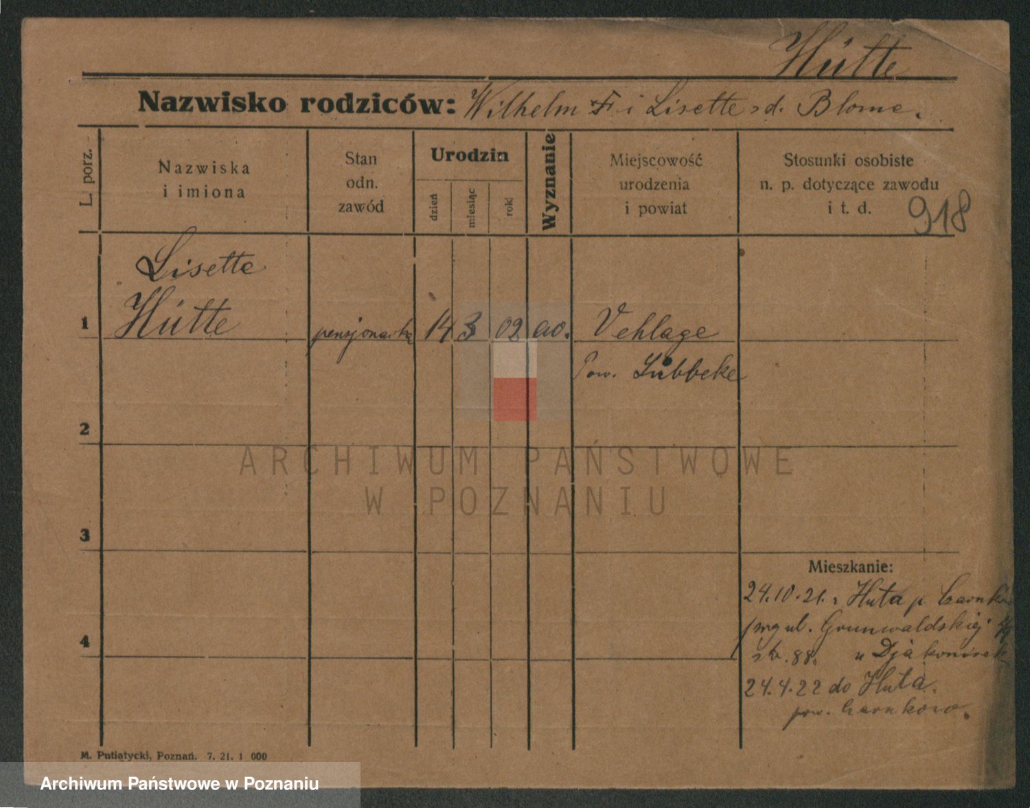 Podgląd karty osobowej dostępny jest po kliknięciu na nazwisko lub ikonkę karty. Można dokonywać powiększenia (ikony na górze) lub przechodzić między kolejnymi skanami (strzałki po bokach).