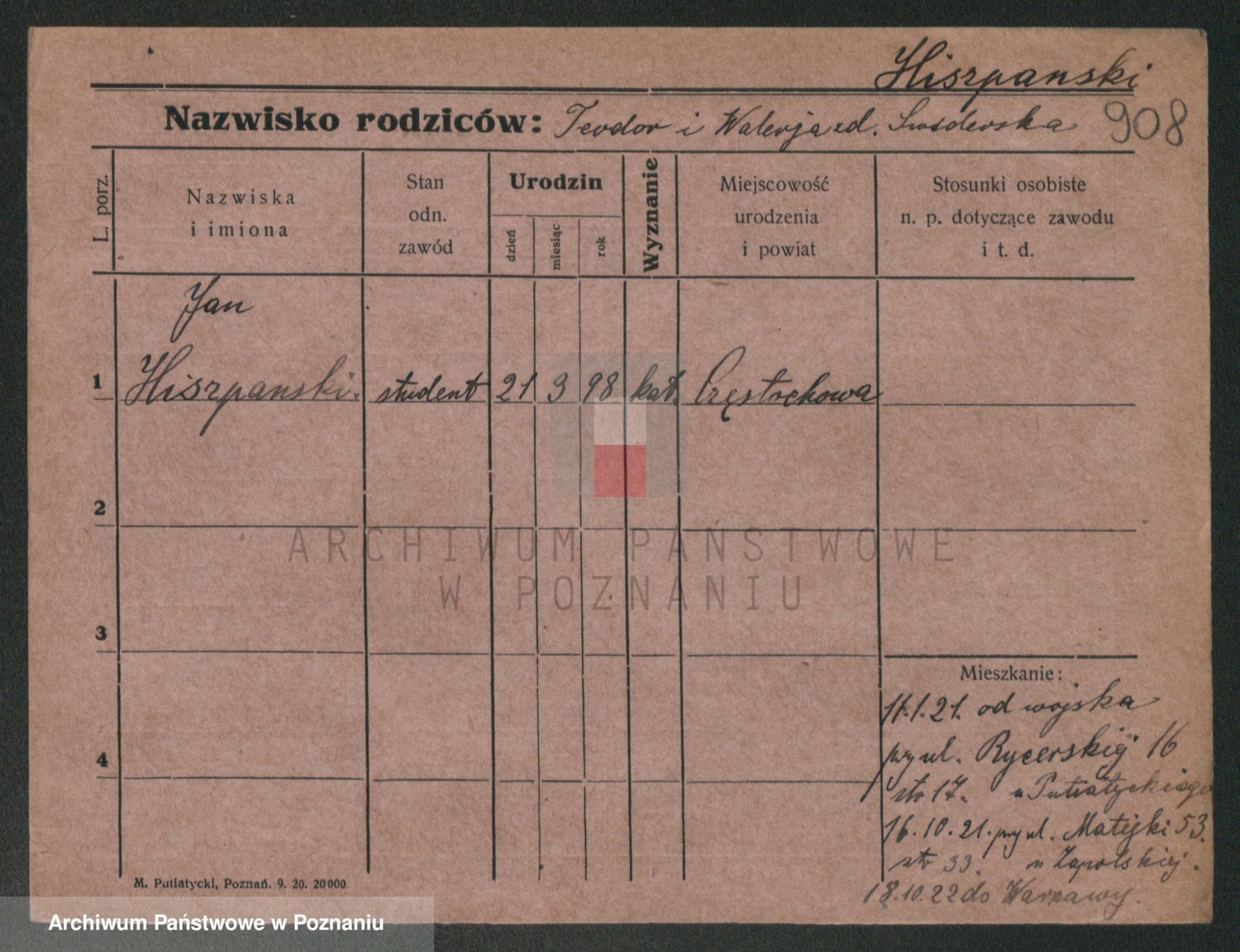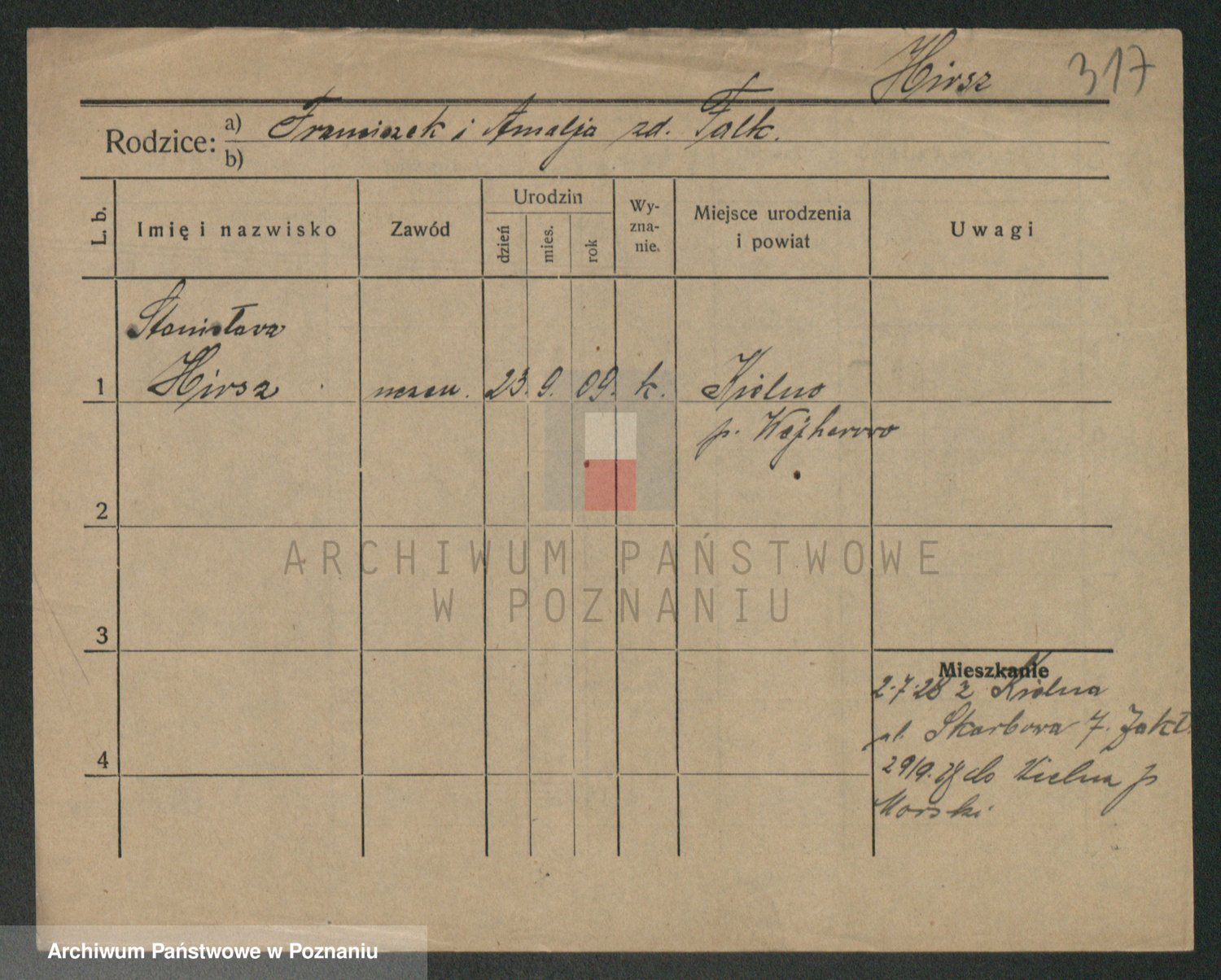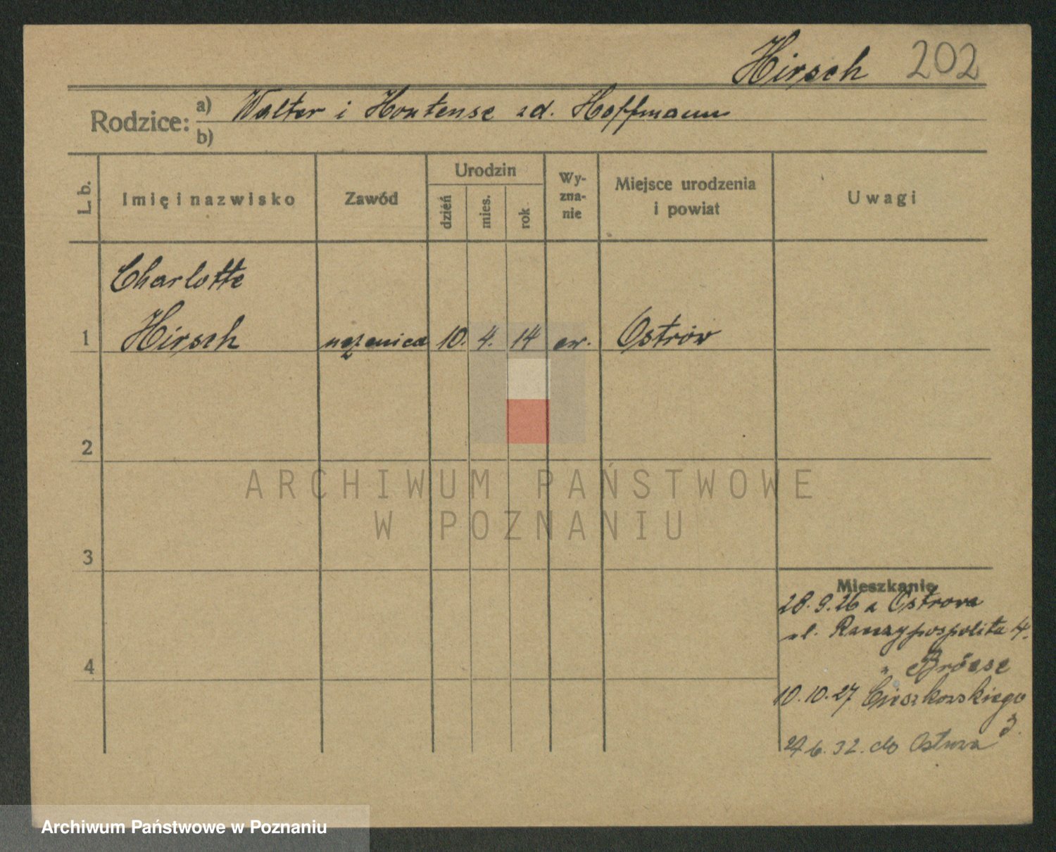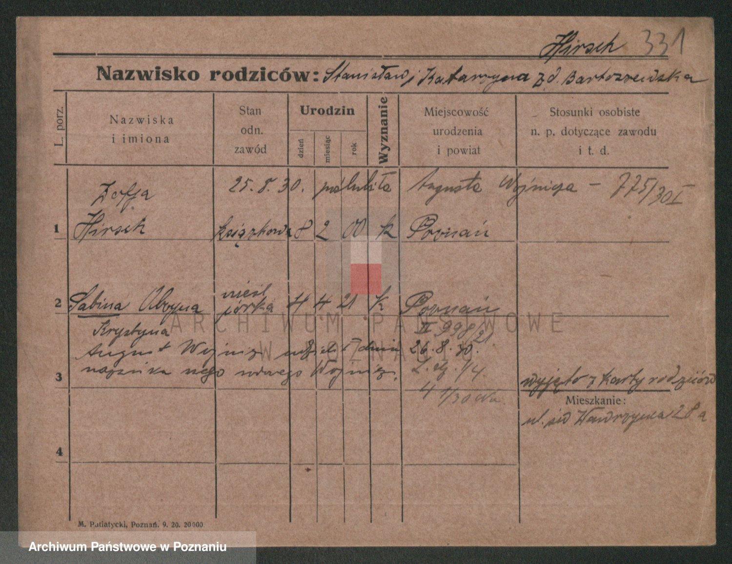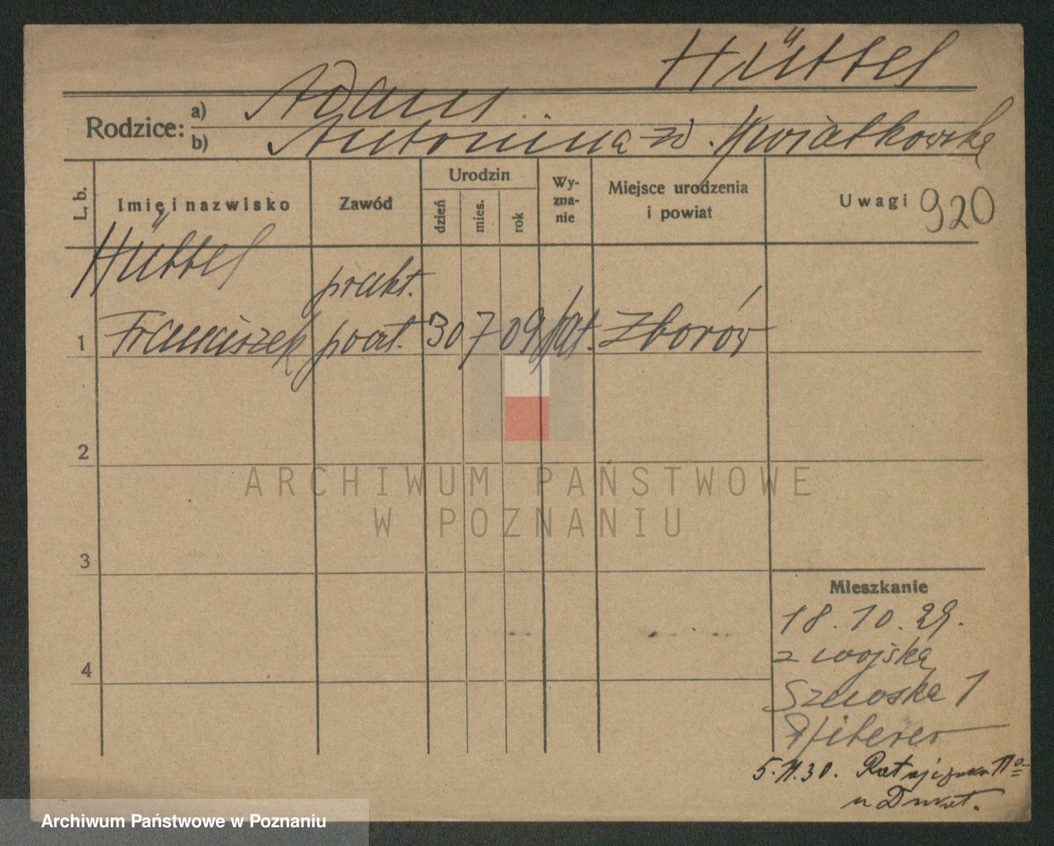 Podgląd karty osobowej dostępny jest po kliknięciu na nazwisko lub ikonkę karty. Można dokonywać powiększenia (ikony na górze) lub przechodzić między kolejnymi skanami (strzałki po bokach).