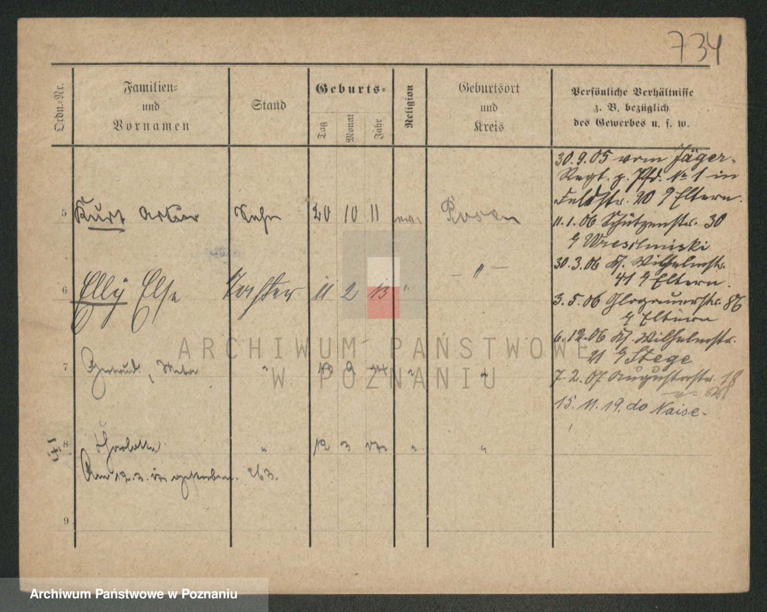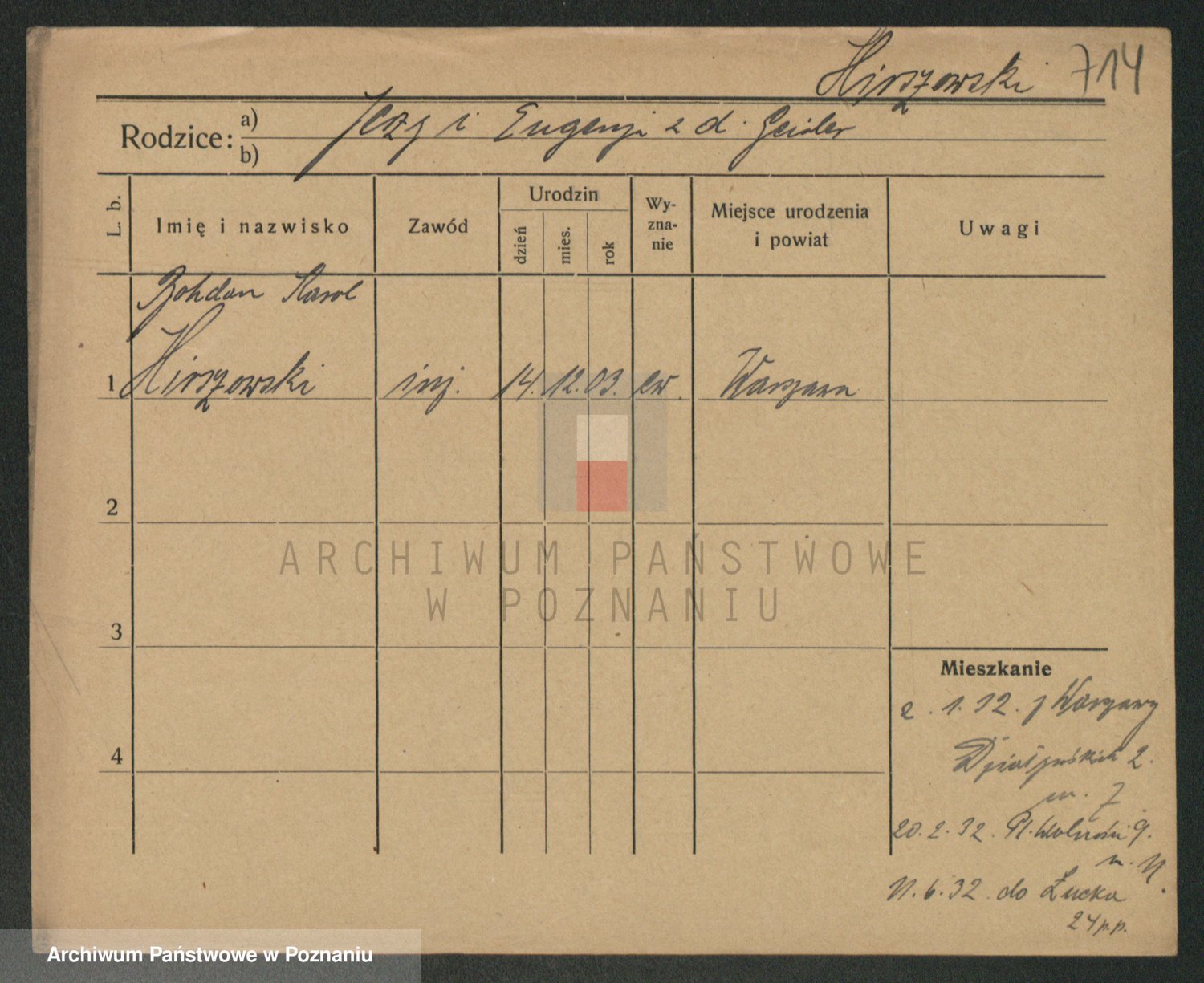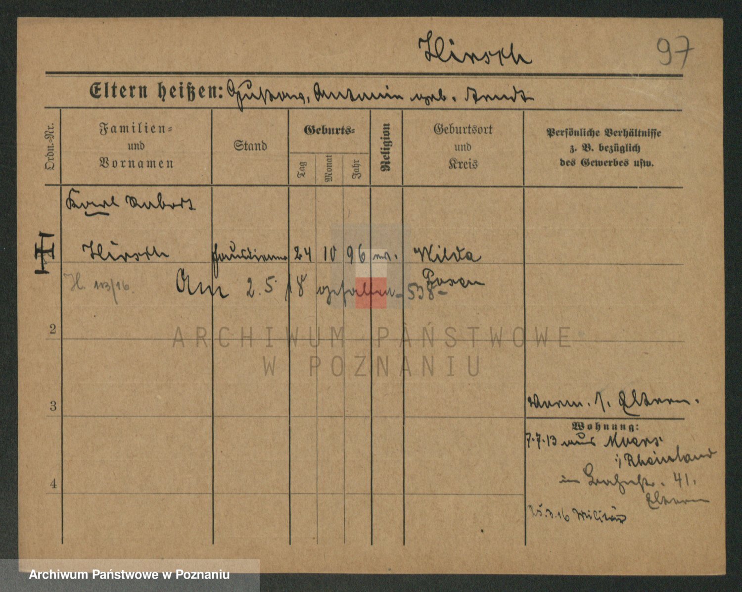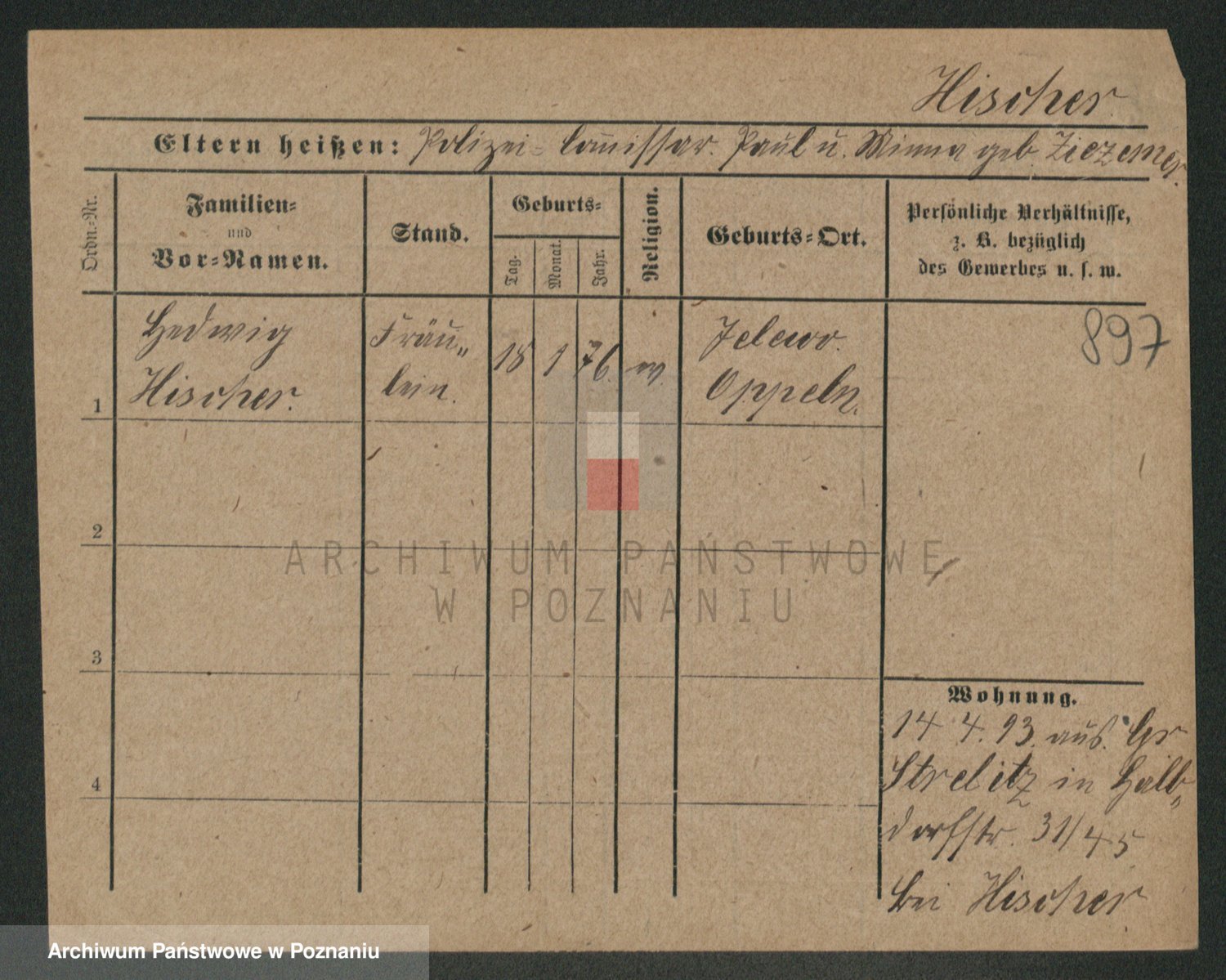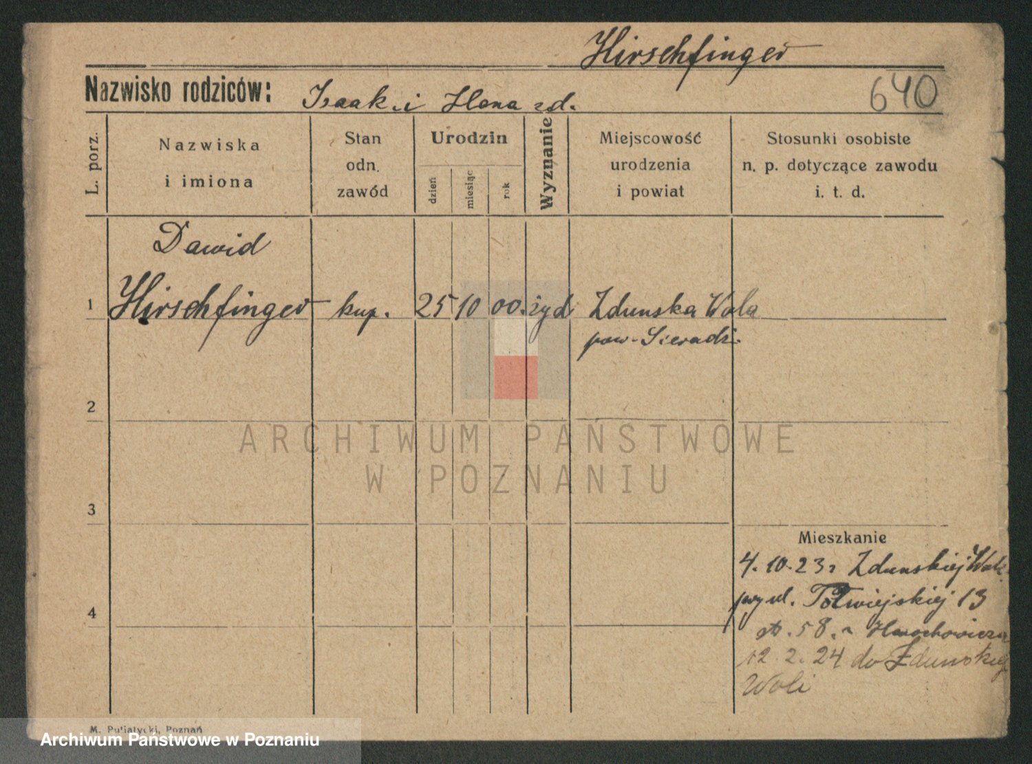 Podgląd karty osobowej dostępny jest po kliknięciu na nazwisko lub ikonkę karty. Można dokonywać powiększenia (ikony na górze) lub przechodzić między kolejnymi skanami (strzałki po bokach).