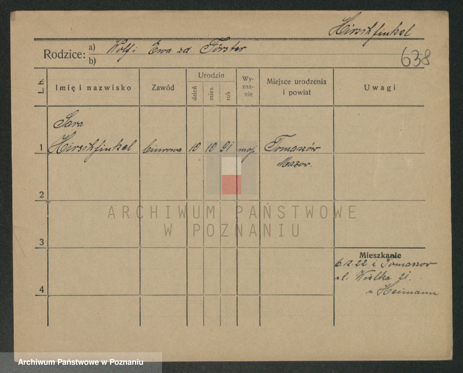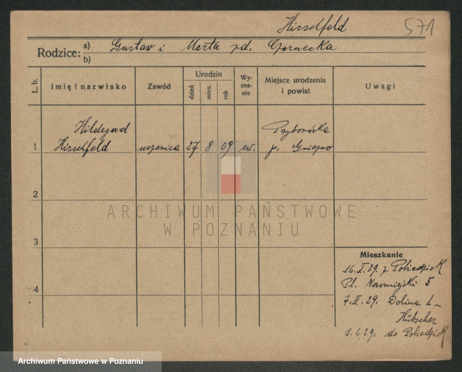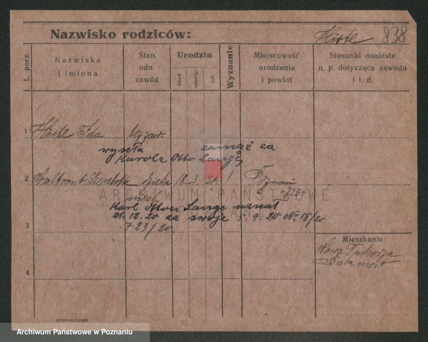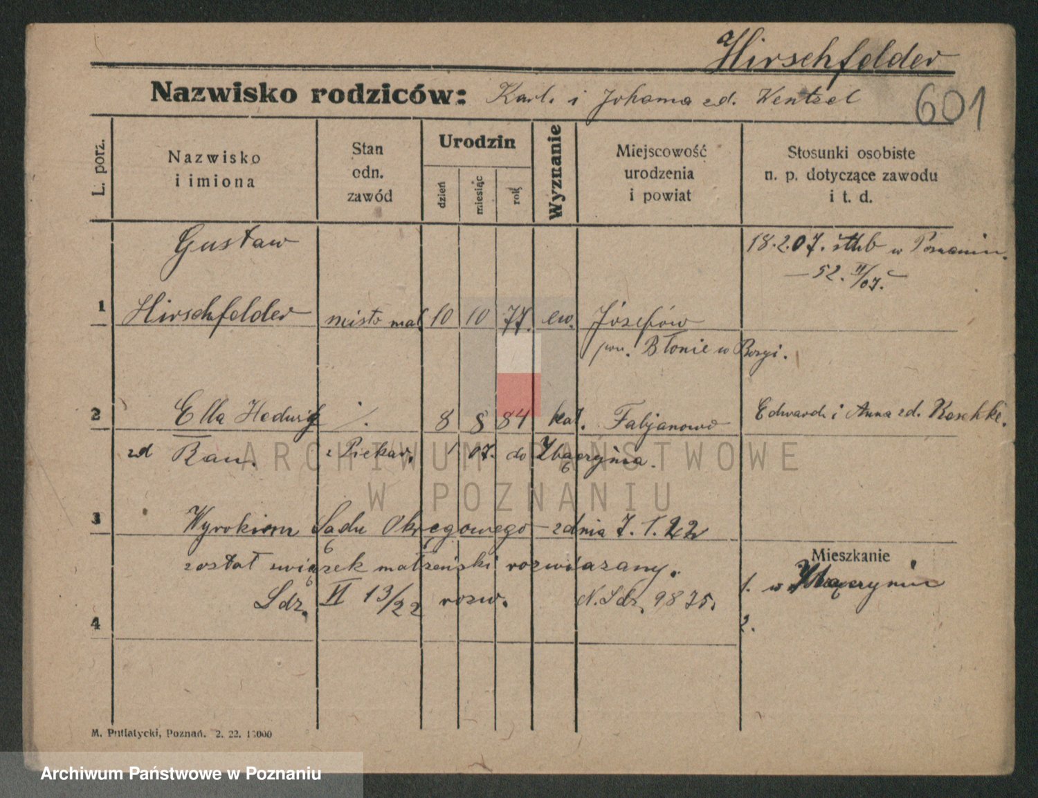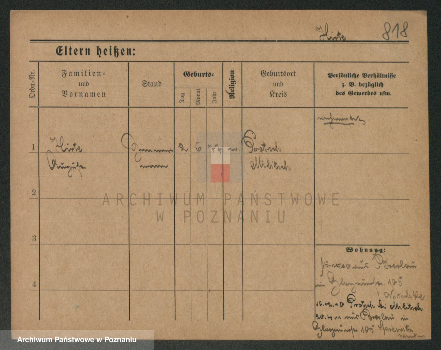 Podgląd karty osobowej dostępny jest po kliknięciu na nazwisko lub ikonkę karty. Można dokonywać powiększenia (ikony na górze) lub przechodzić między kolejnymi skanami (strzałki po bokach).