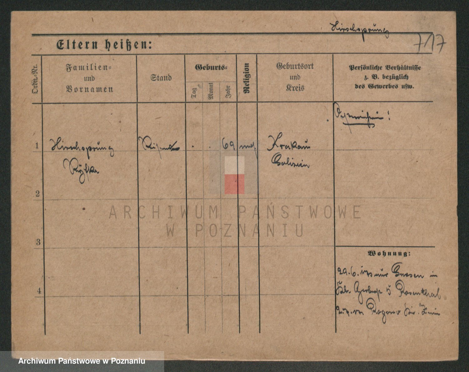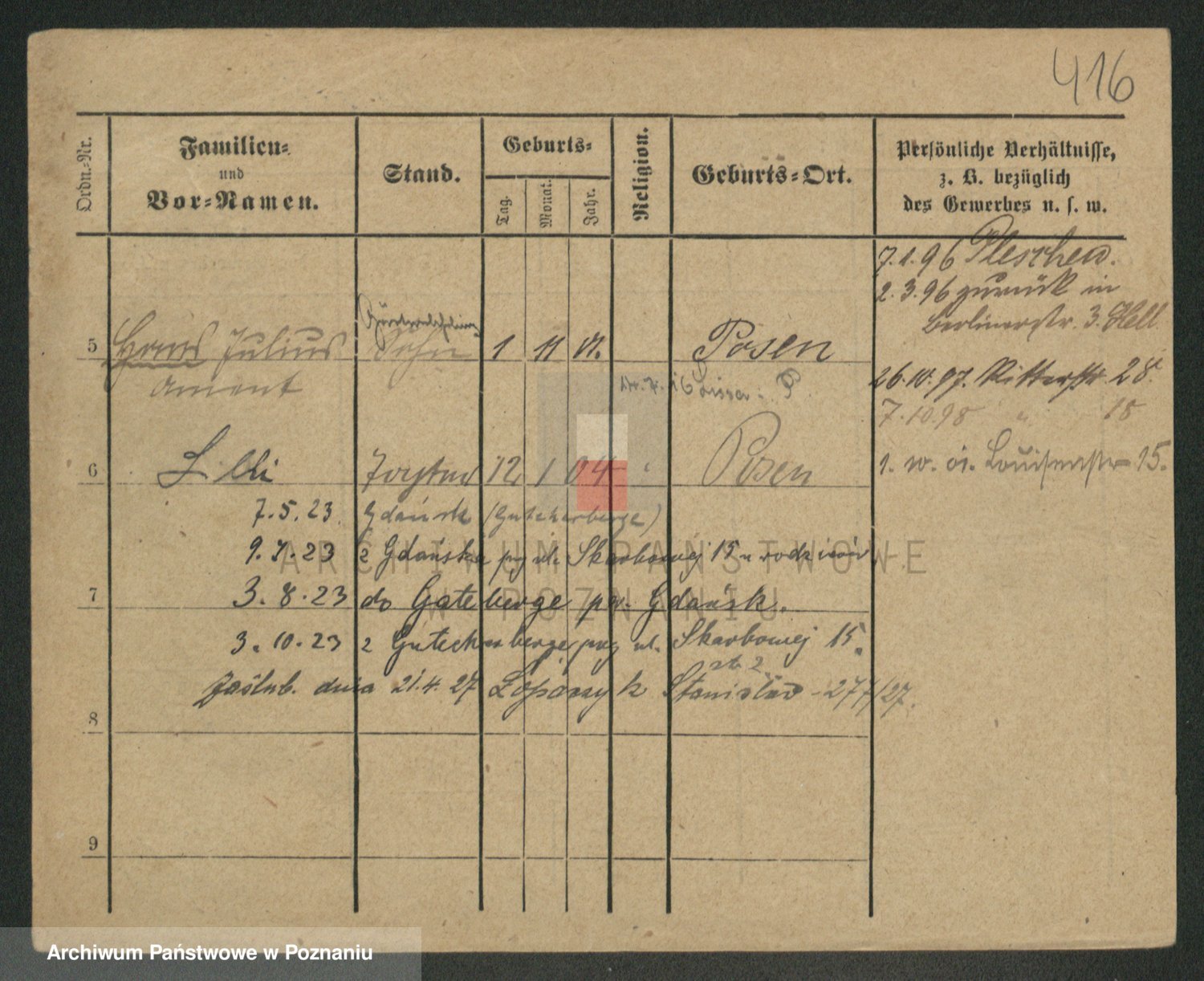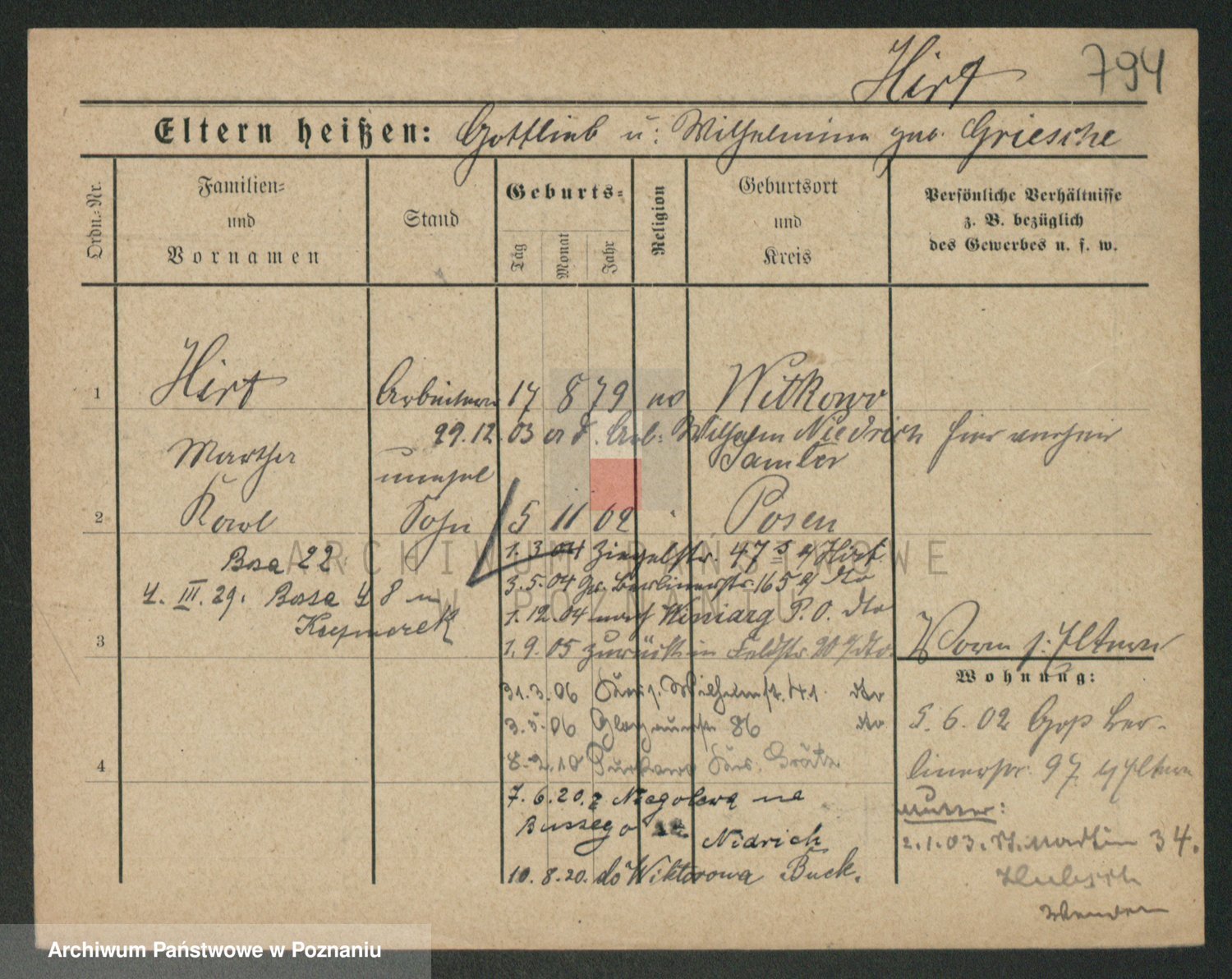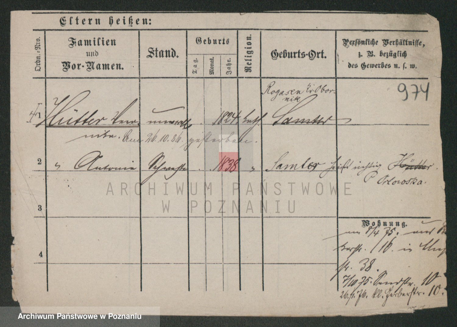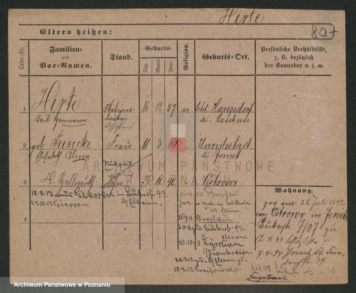 Podgląd karty osobowej dostępny jest po kliknięciu na nazwisko lub ikonkę karty. Można dokonywać powiększenia (ikony na górze) lub przechodzić między kolejnymi skanami (strzałki po bokach).