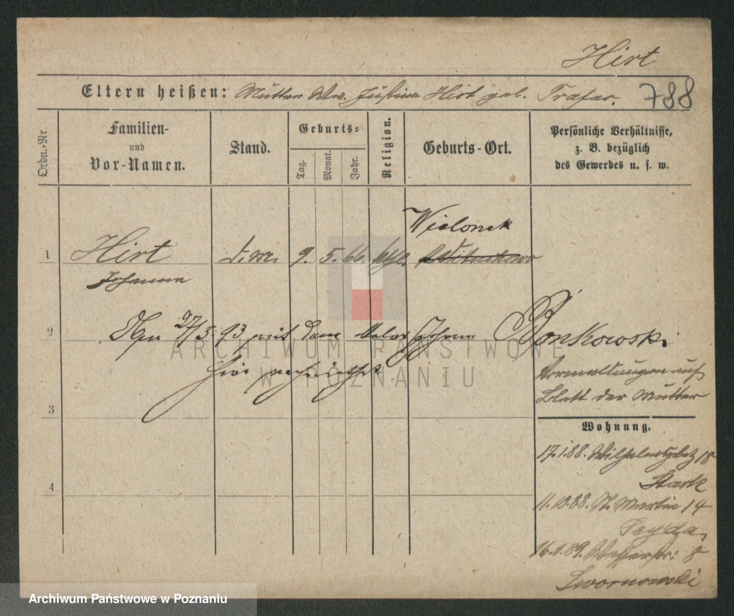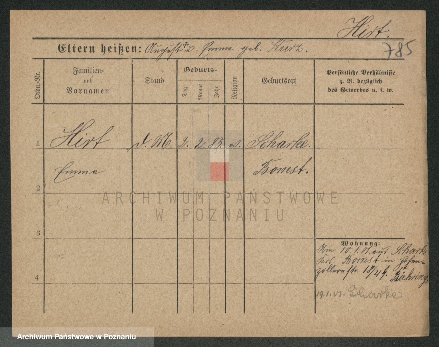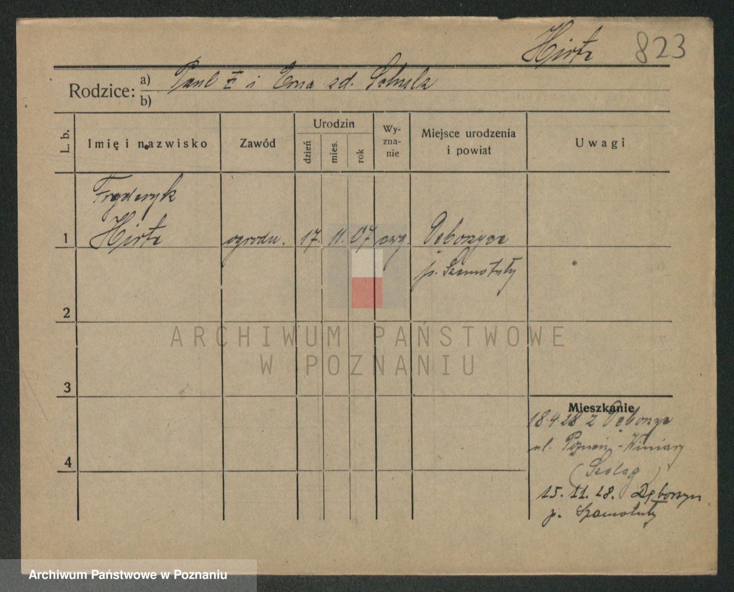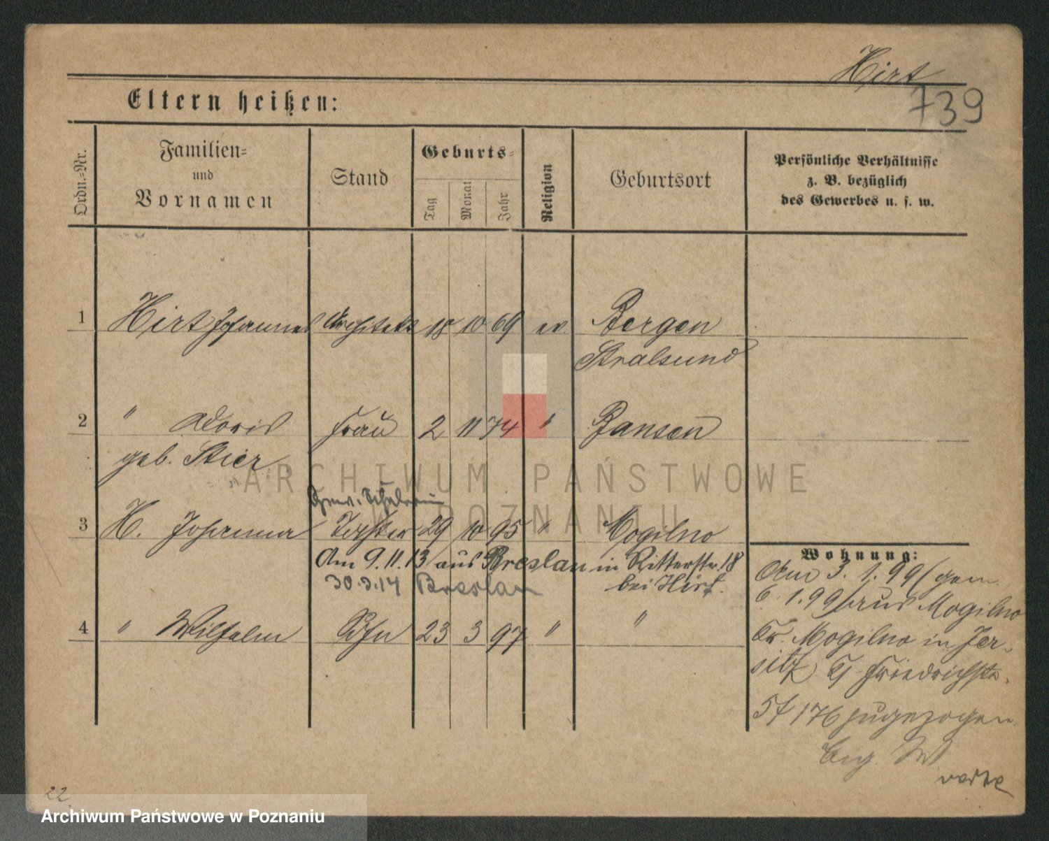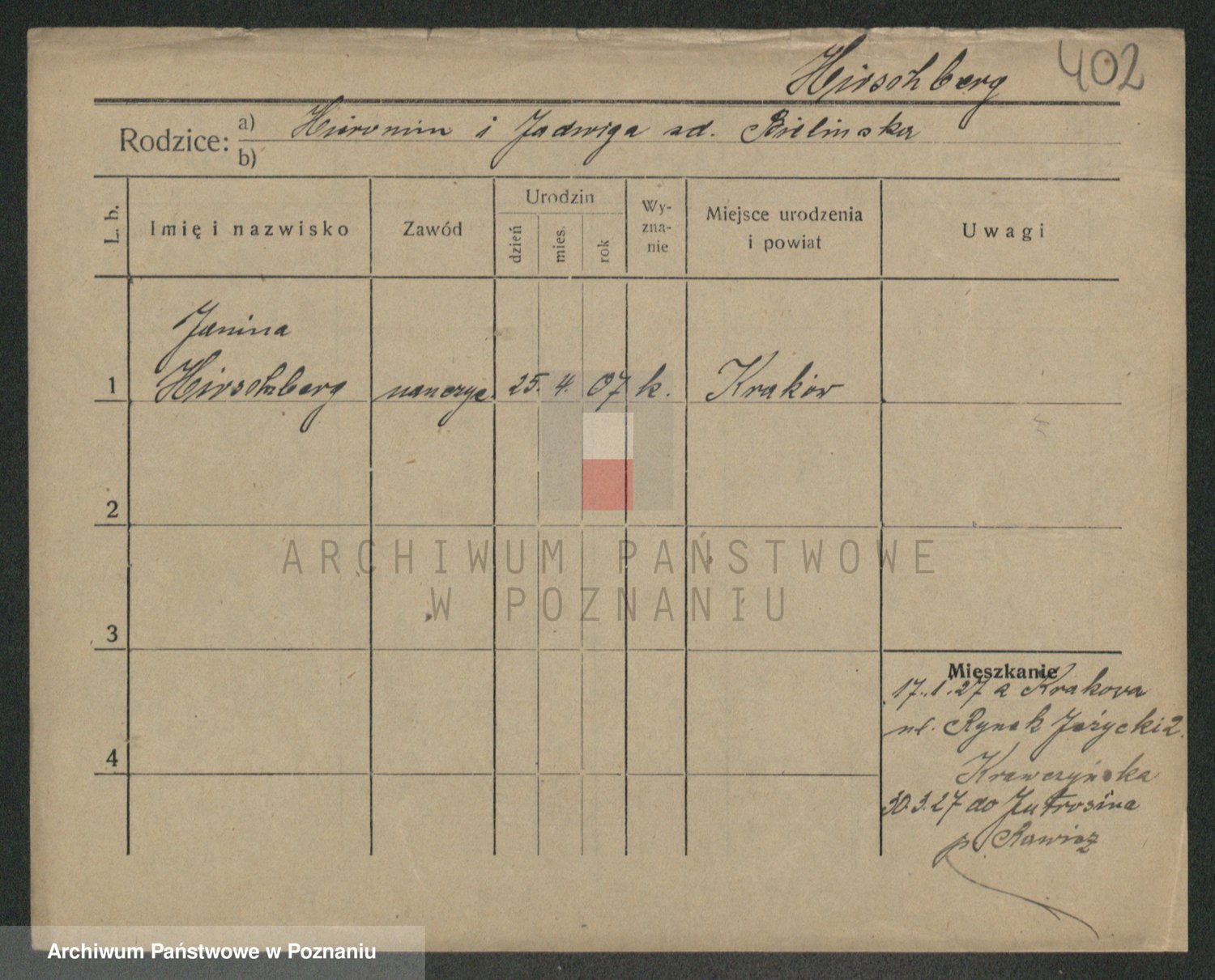 Podgląd karty osobowej dostępny jest po kliknięciu na nazwisko lub ikonkę karty. Można dokonywać powiększenia (ikony na górze) lub przechodzić między kolejnymi skanami (strzałki po bokach).