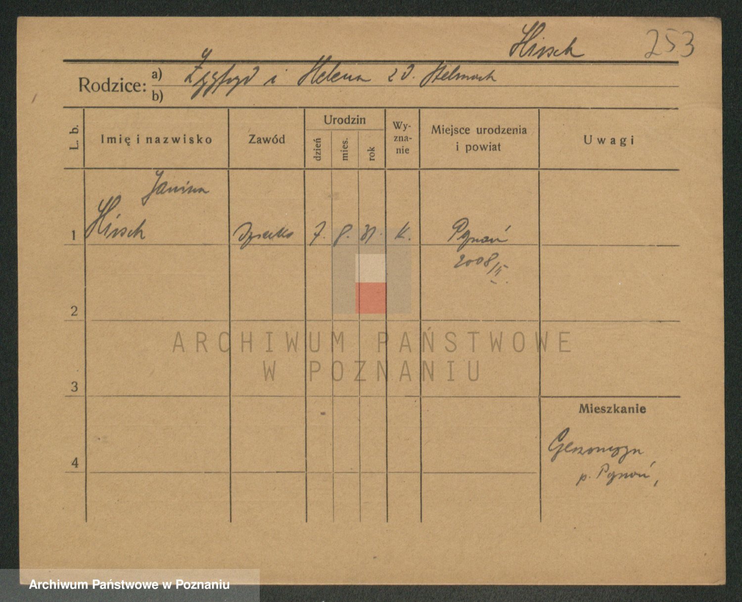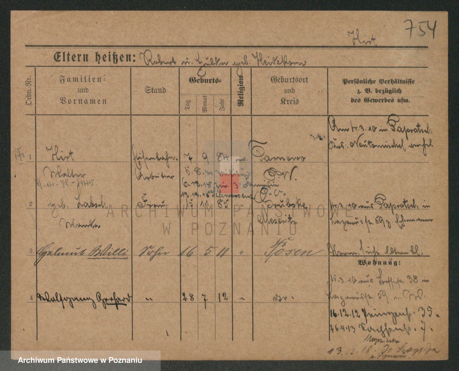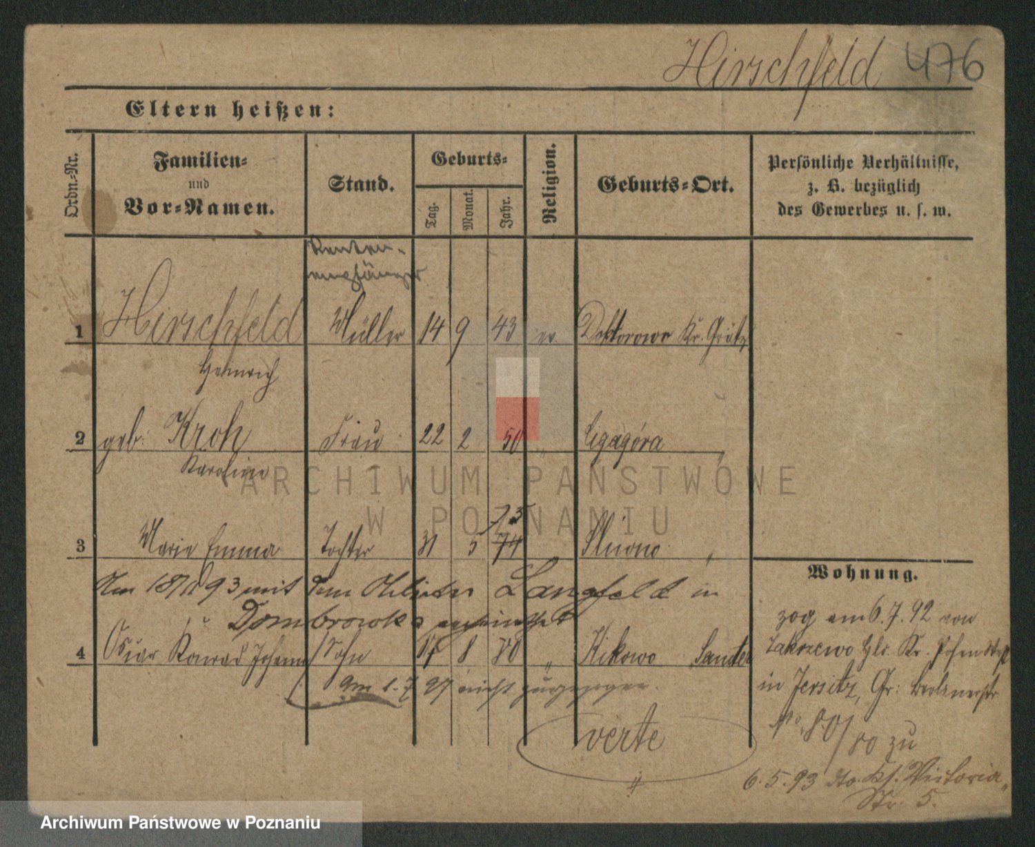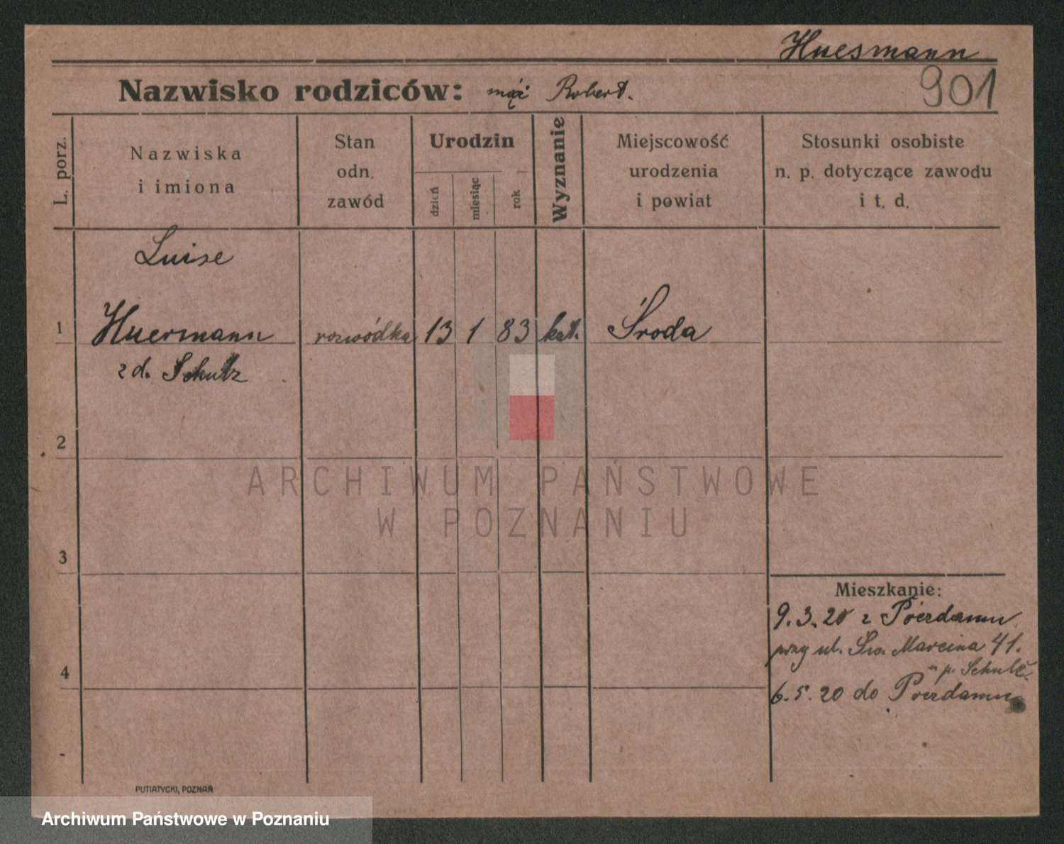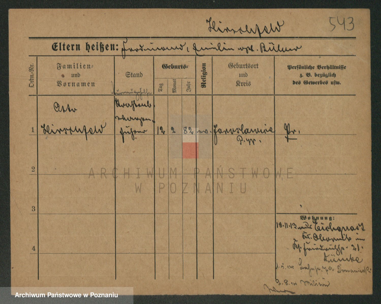 Podgląd karty osobowej dostępny jest po kliknięciu na nazwisko lub ikonkę karty. Można dokonywać powiększenia (ikony na górze) lub przechodzić między kolejnymi skanami (strzałki po bokach).