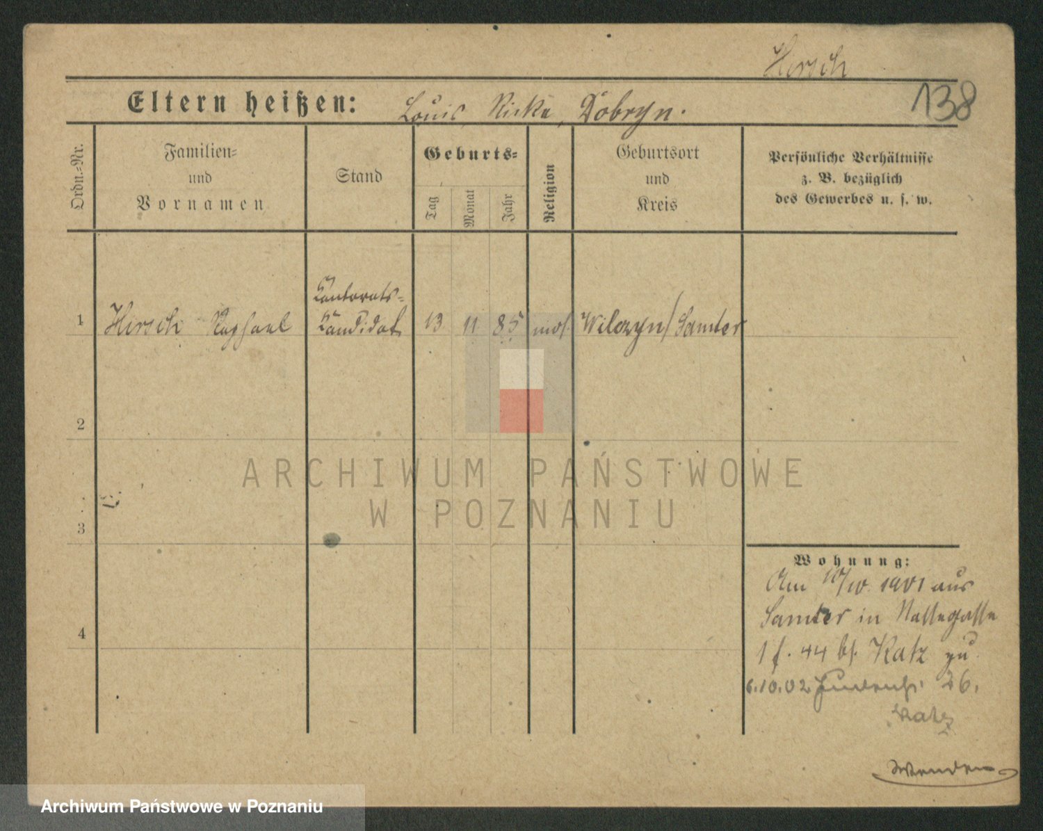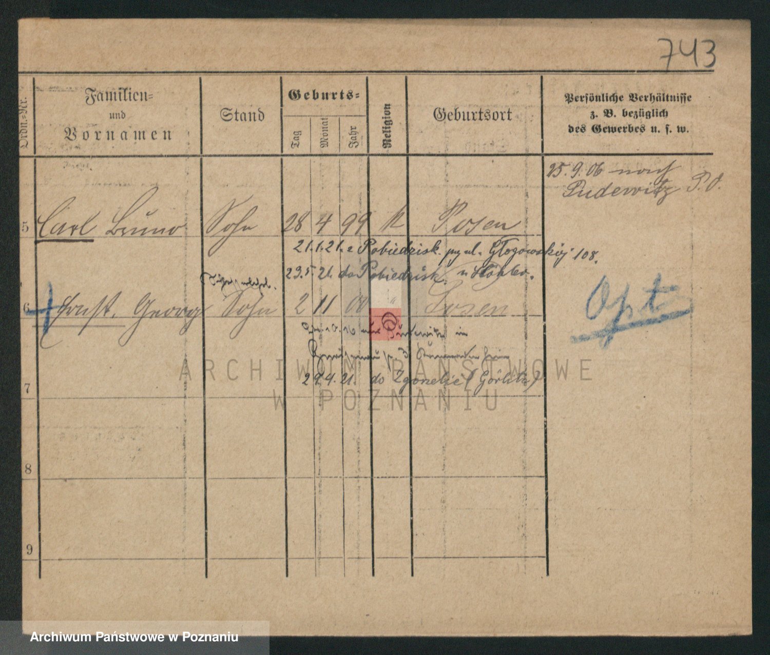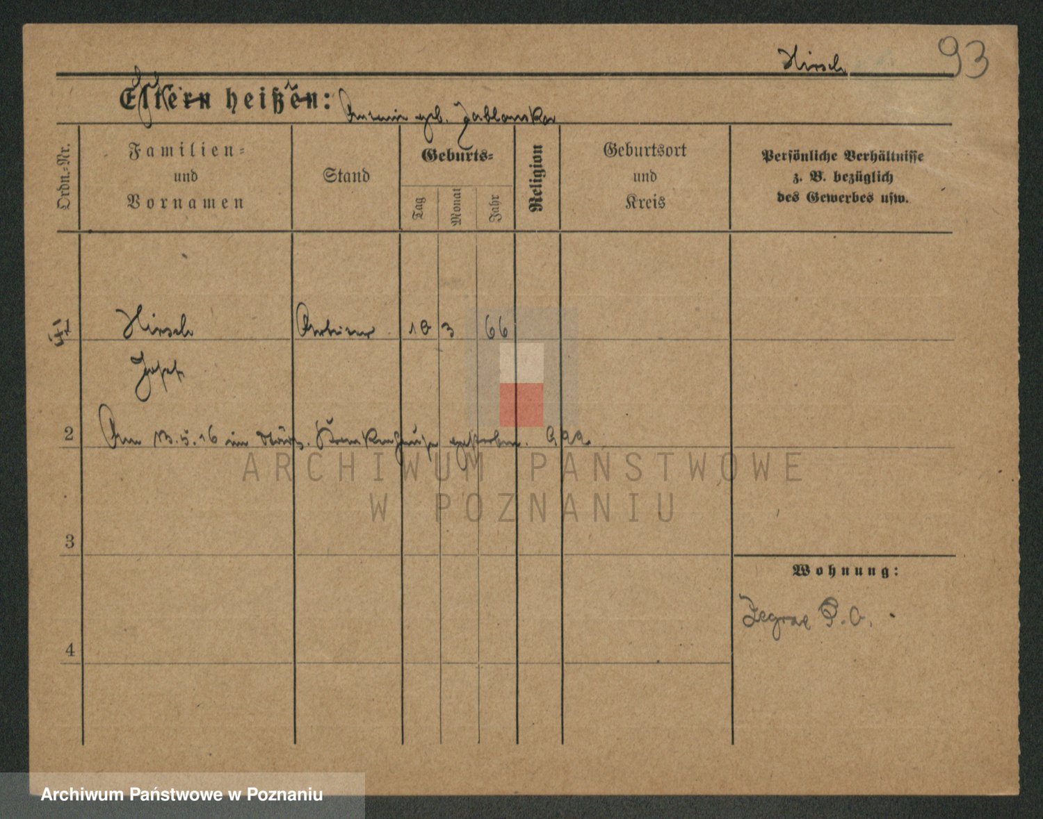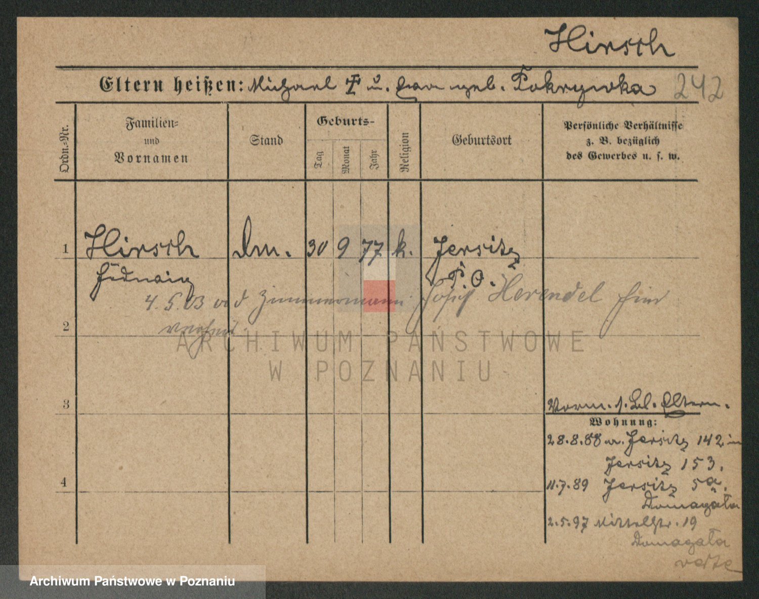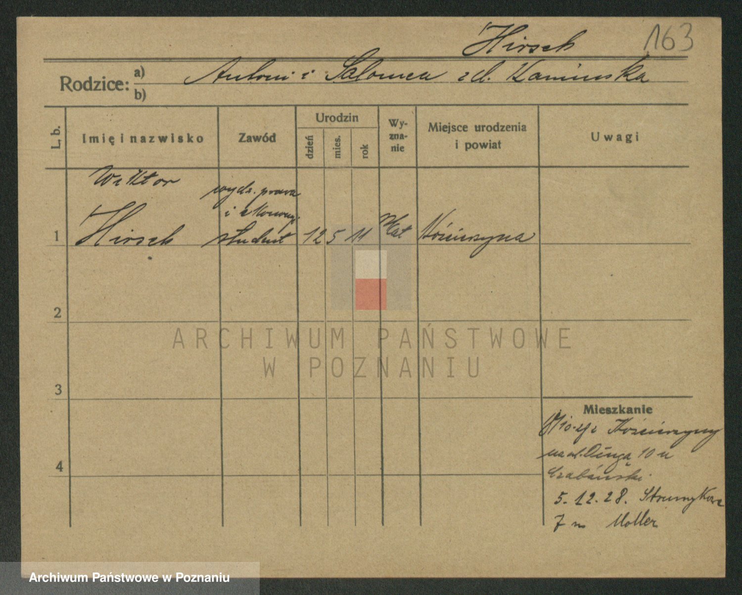 Podgląd karty osobowej dostępny jest po kliknięciu na nazwisko lub ikonkę karty. Można dokonywać powiększenia (ikony na górze) lub przechodzić między kolejnymi skanami (strzałki po bokach).