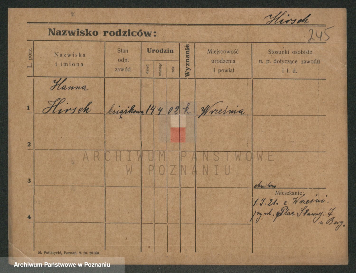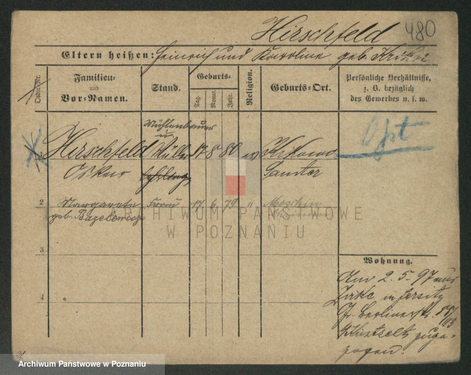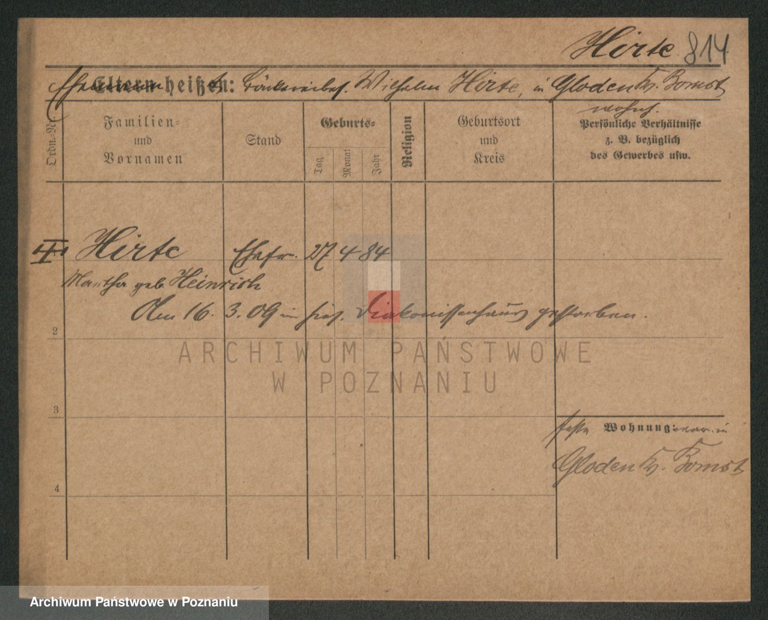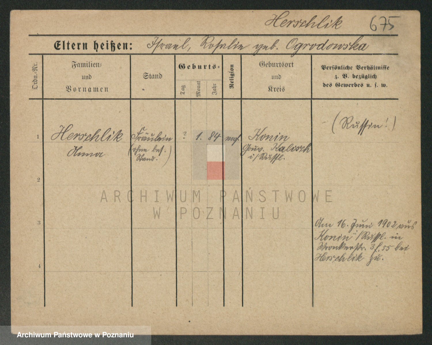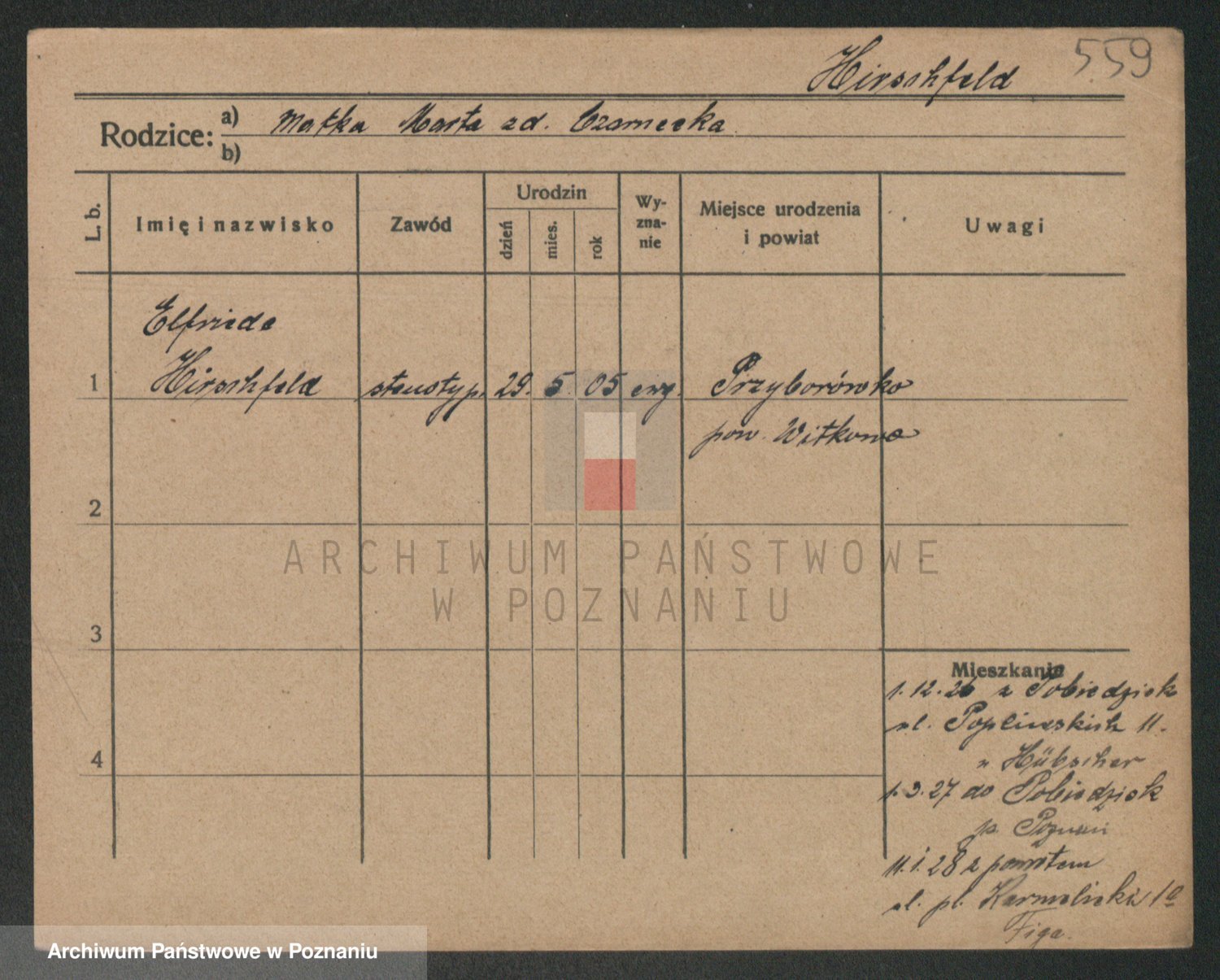 Podgląd karty osobowej dostępny jest po kliknięciu na nazwisko lub ikonkę karty. Można dokonywać powiększenia (ikony na górze) lub przechodzić między kolejnymi skanami (strzałki po bokach).