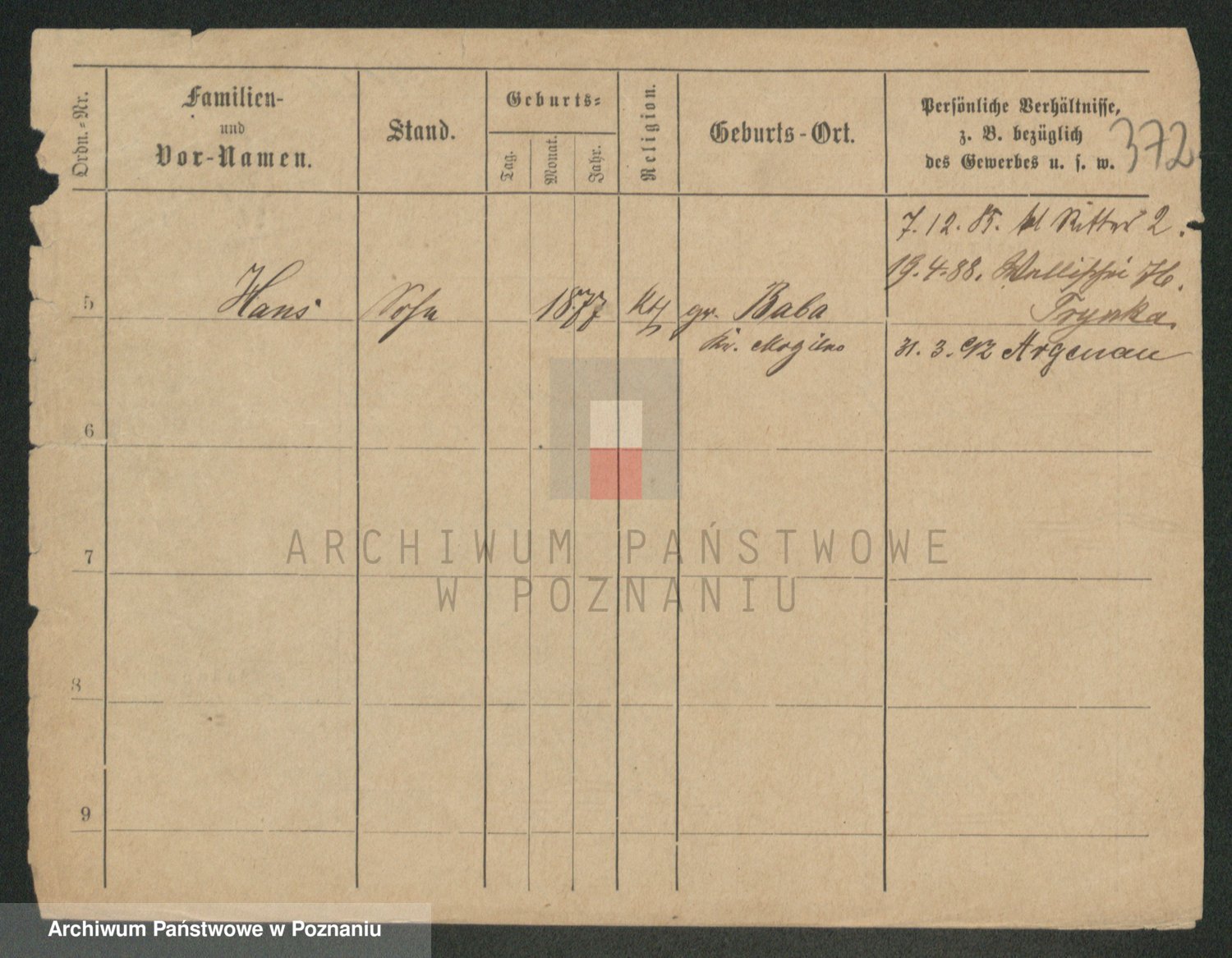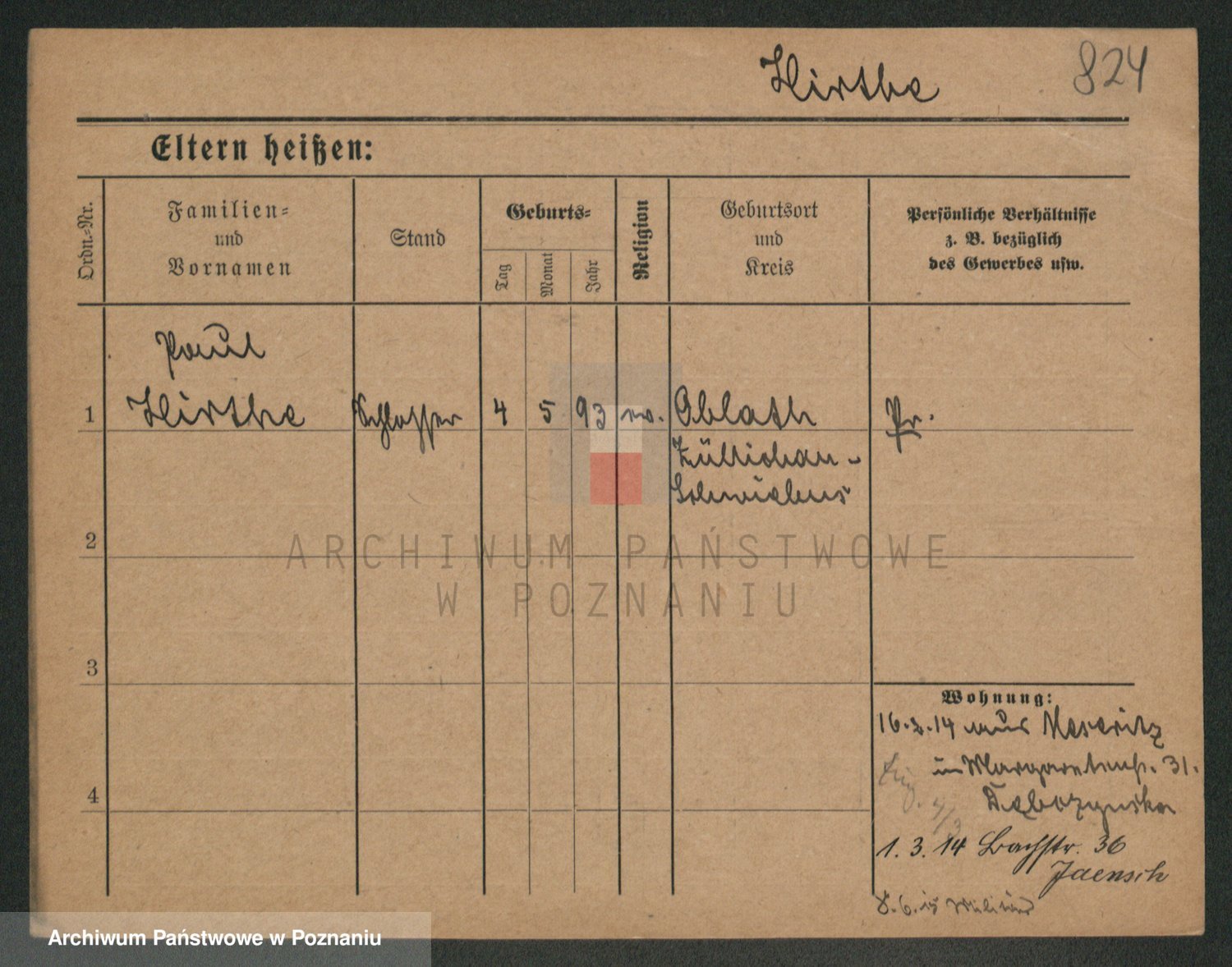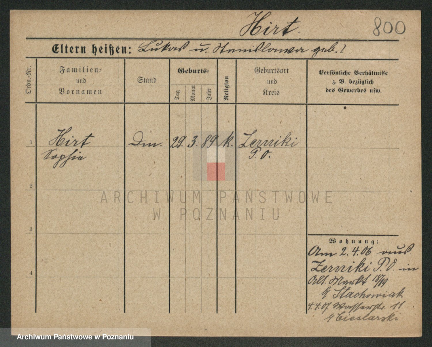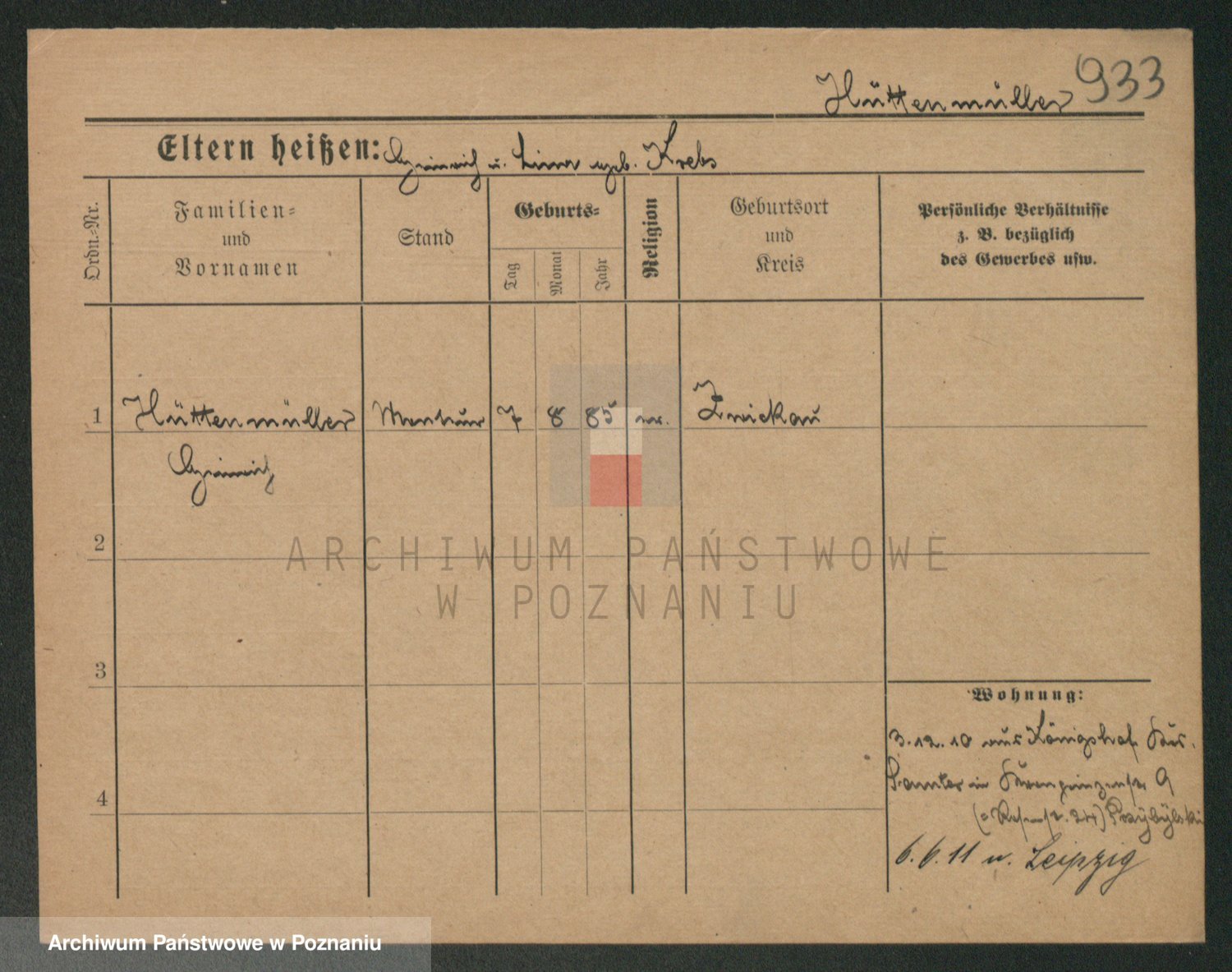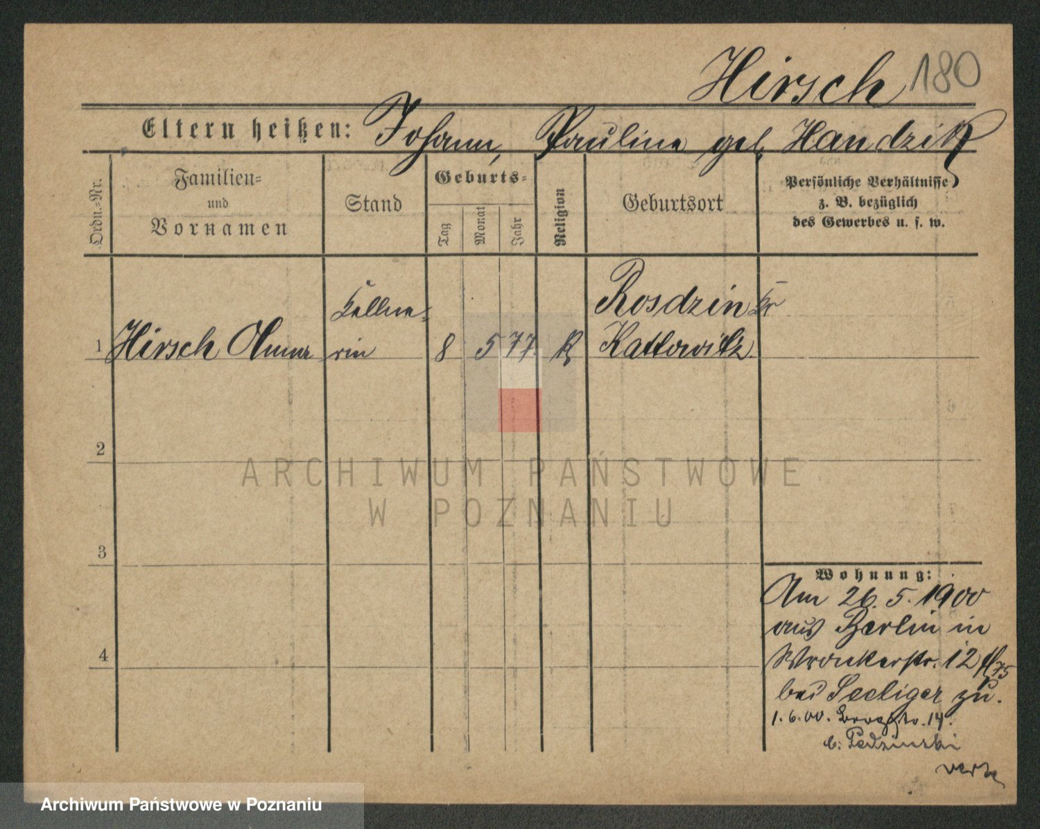 Podgląd karty osobowej dostępny jest po kliknięciu na nazwisko lub ikonkę karty. Można dokonywać powiększenia (ikony na górze) lub przechodzić między kolejnymi skanami (strzałki po bokach).
