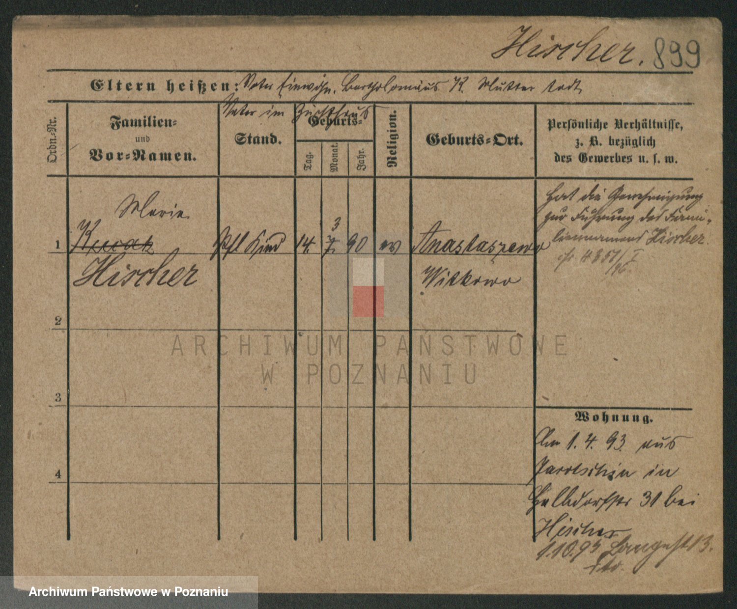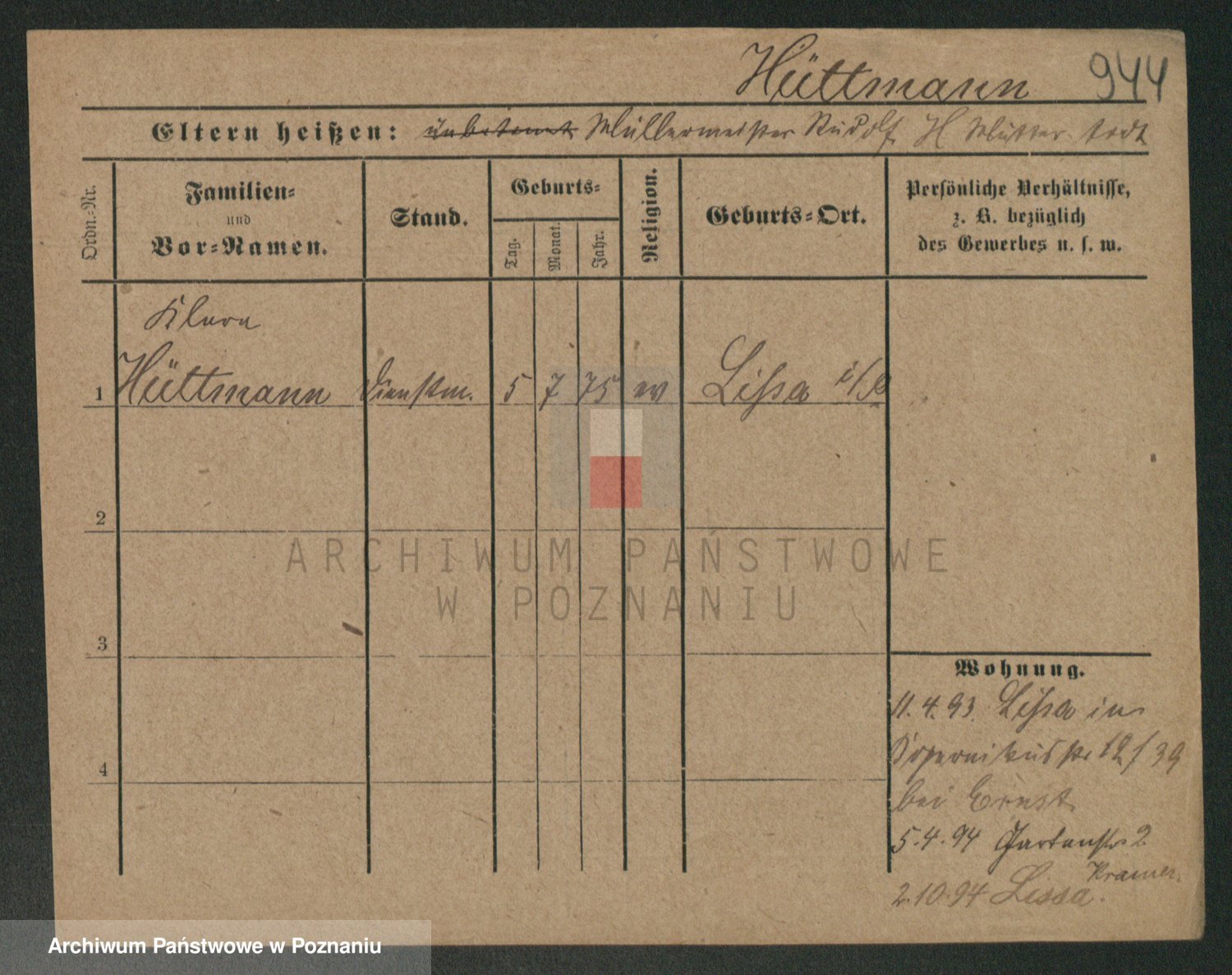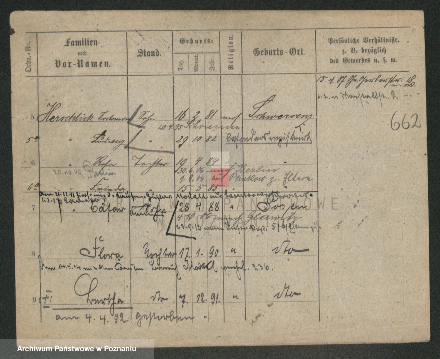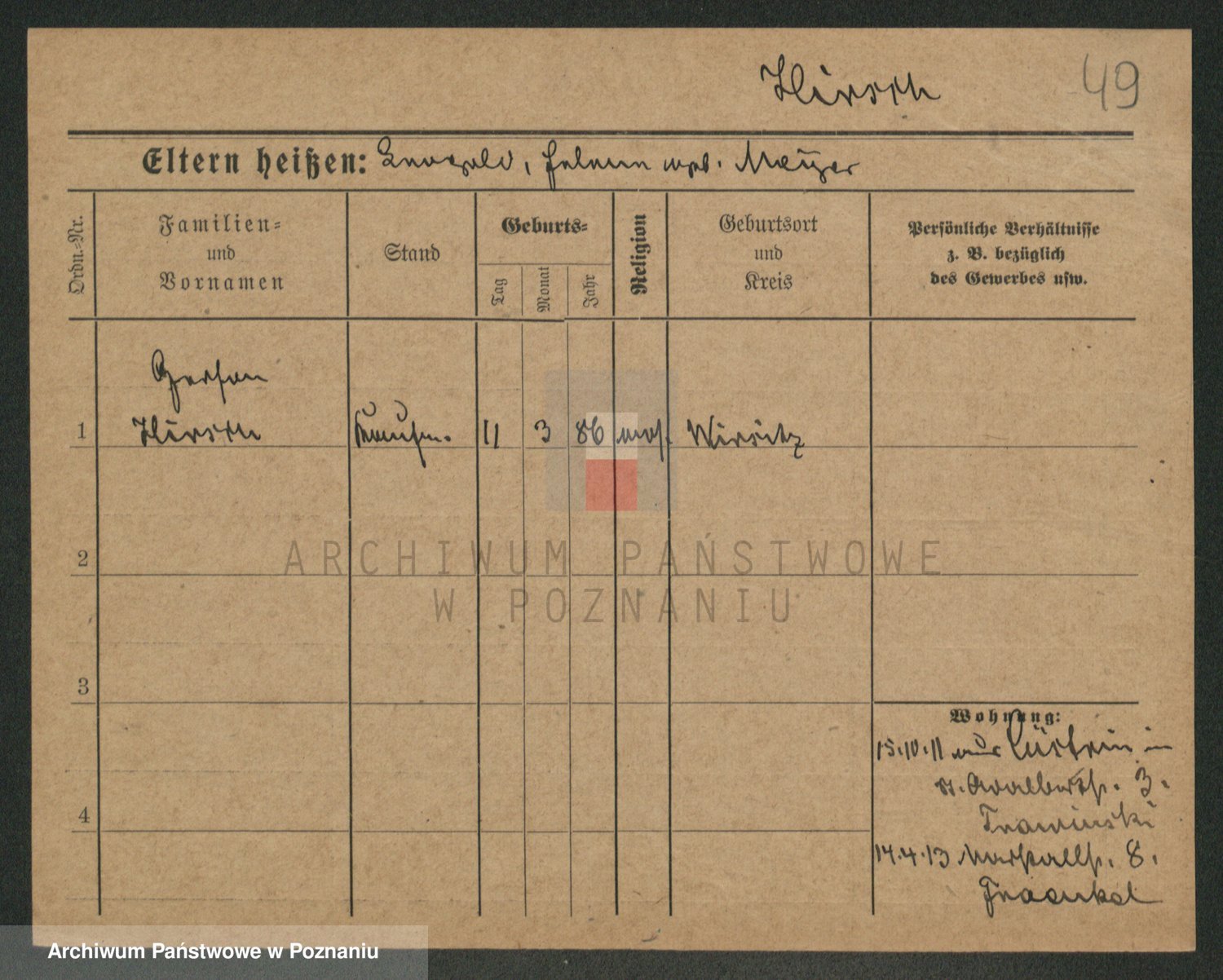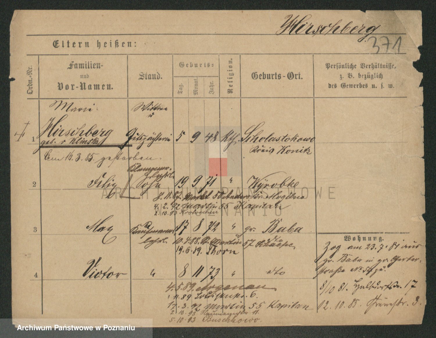 Podgląd karty osobowej dostępny jest po kliknięciu na nazwisko lub ikonkę karty. Można dokonywać powiększenia (ikony na górze) lub przechodzić między kolejnymi skanami (strzałki po bokach).