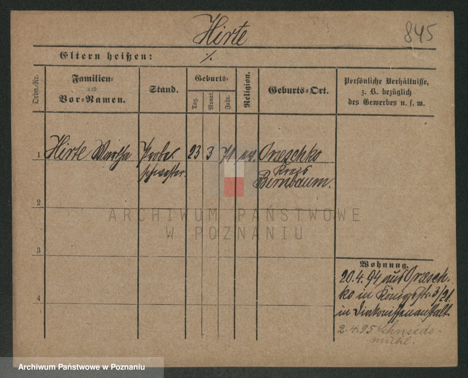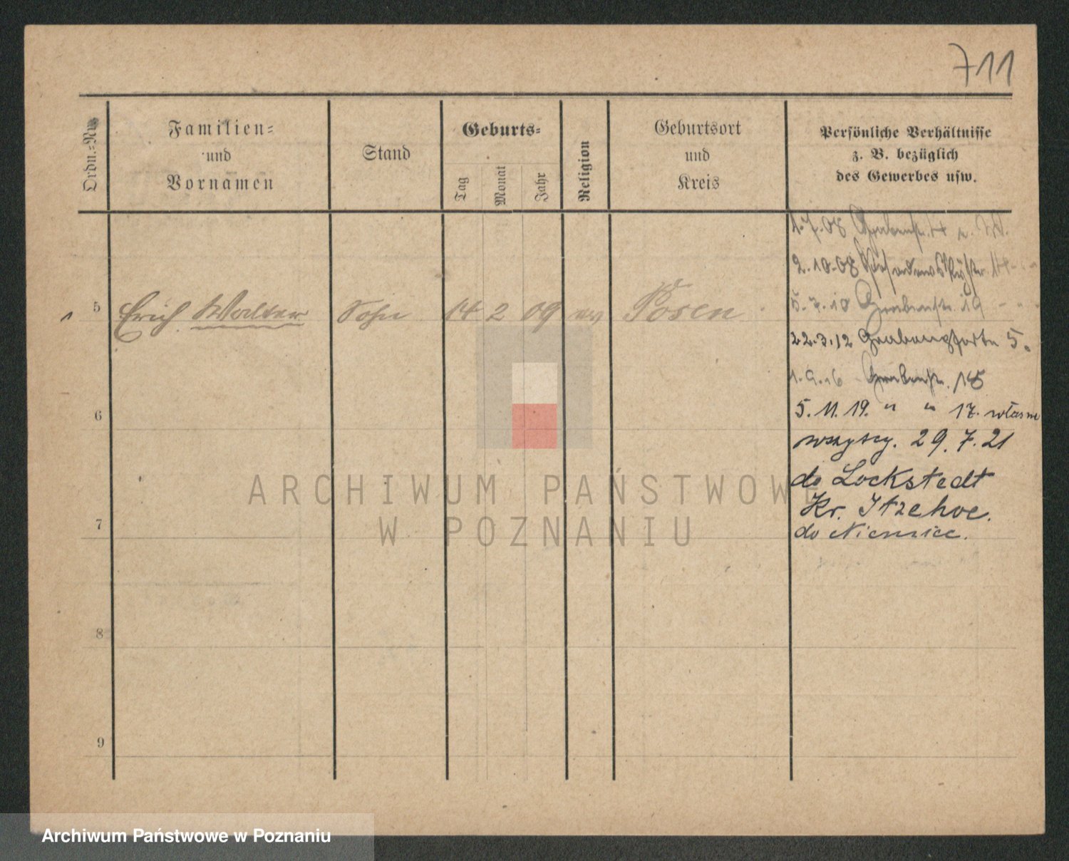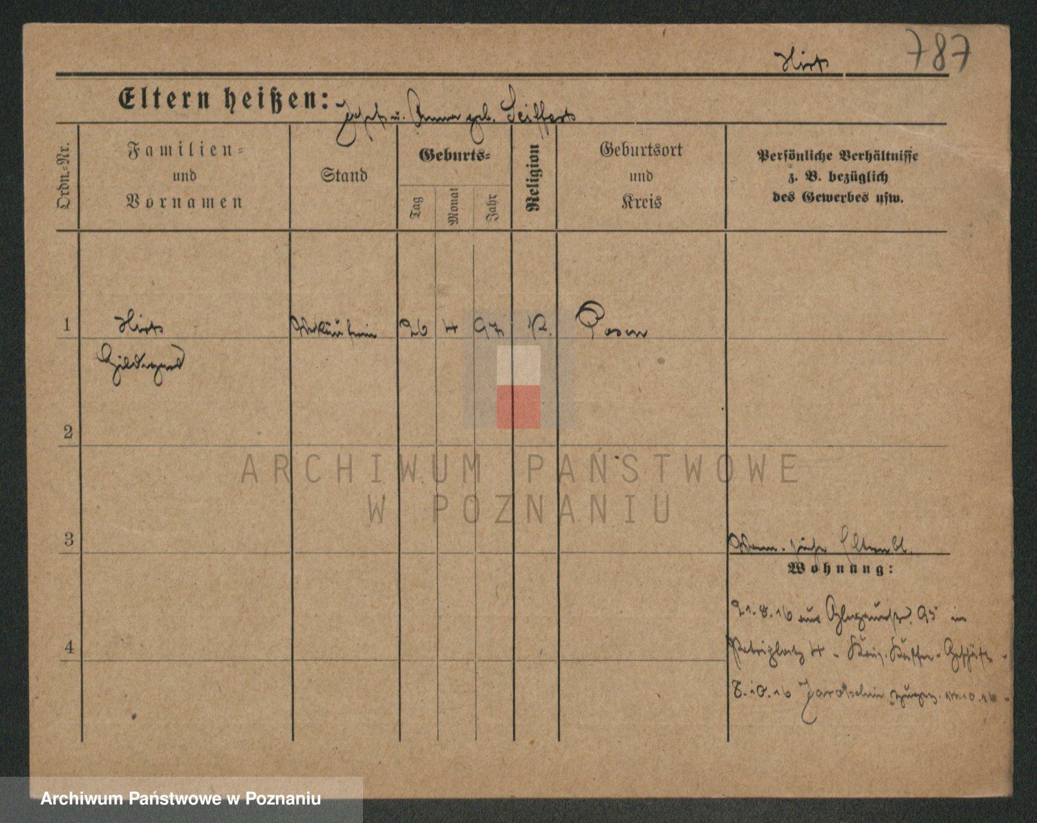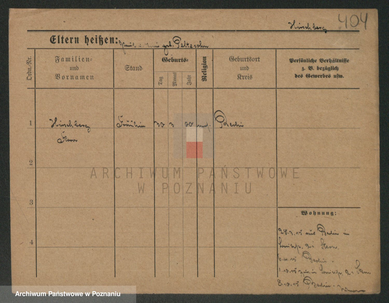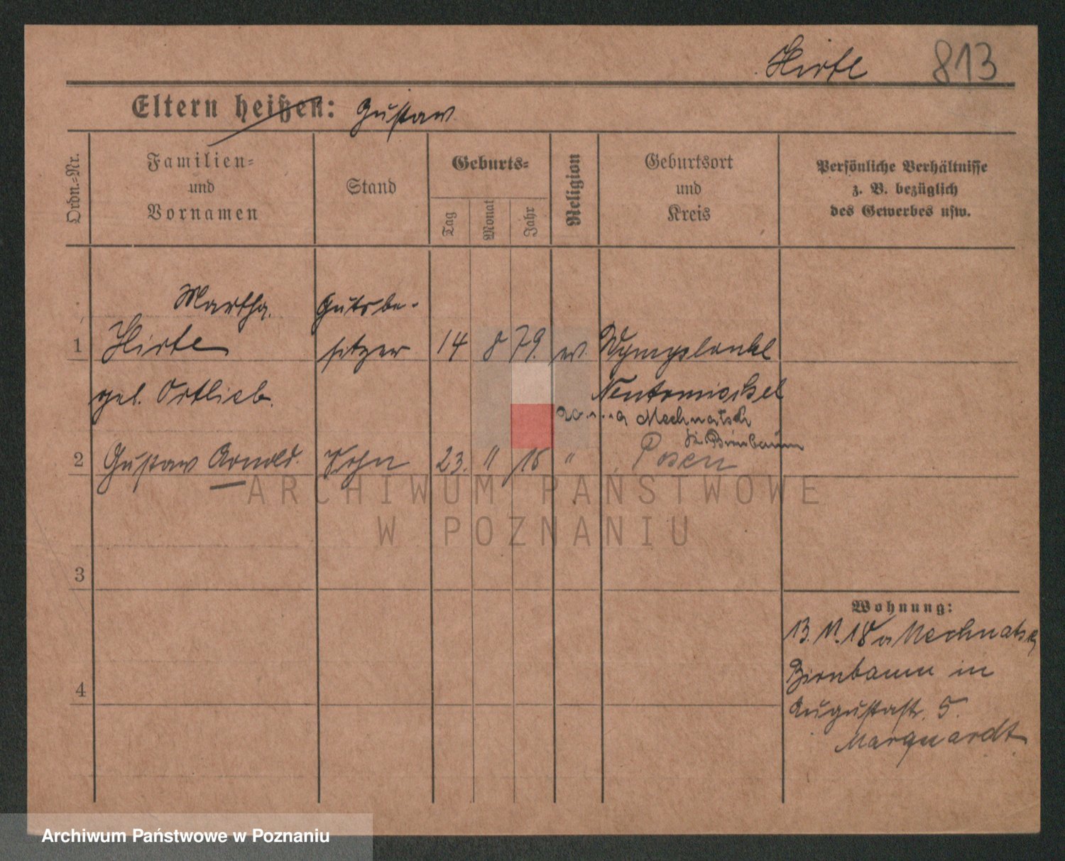 Podgląd karty osobowej dostępny jest po kliknięciu na nazwisko lub ikonkę karty. Można dokonywać powiększenia (ikony na górze) lub przechodzić między kolejnymi skanami (strzałki po bokach).