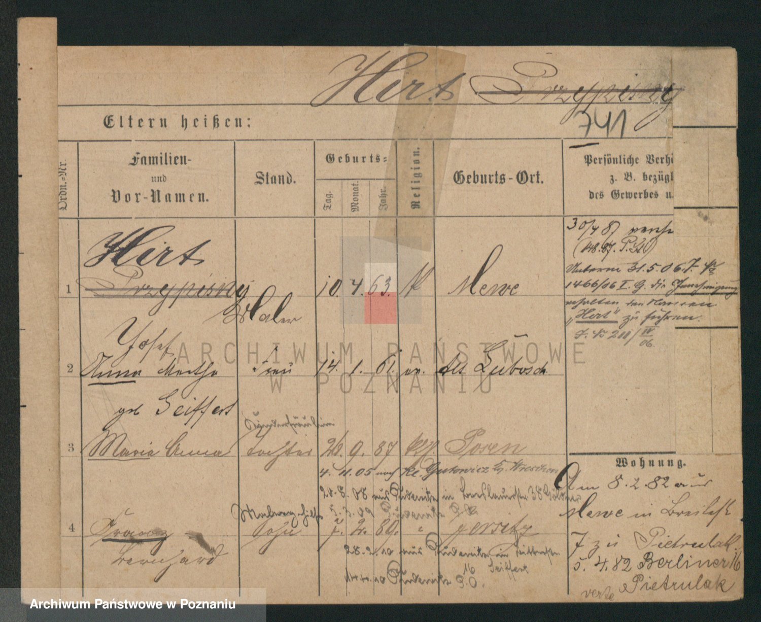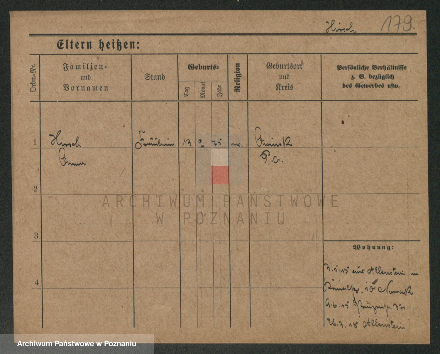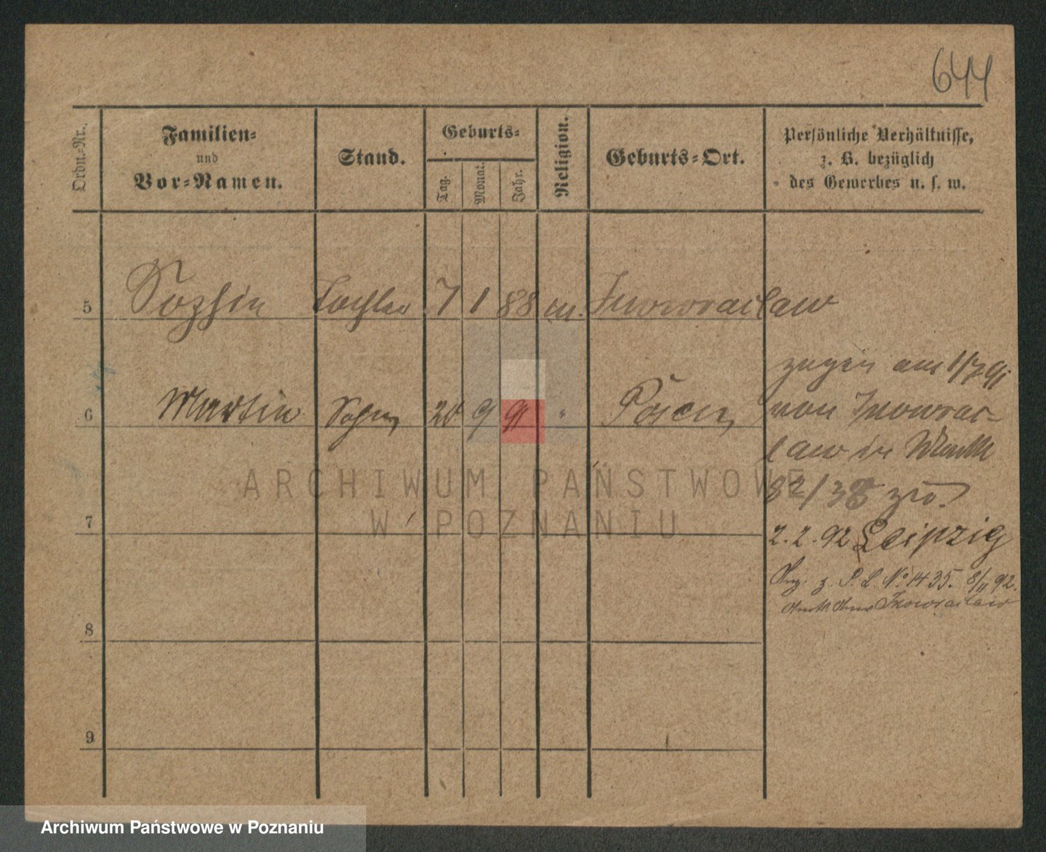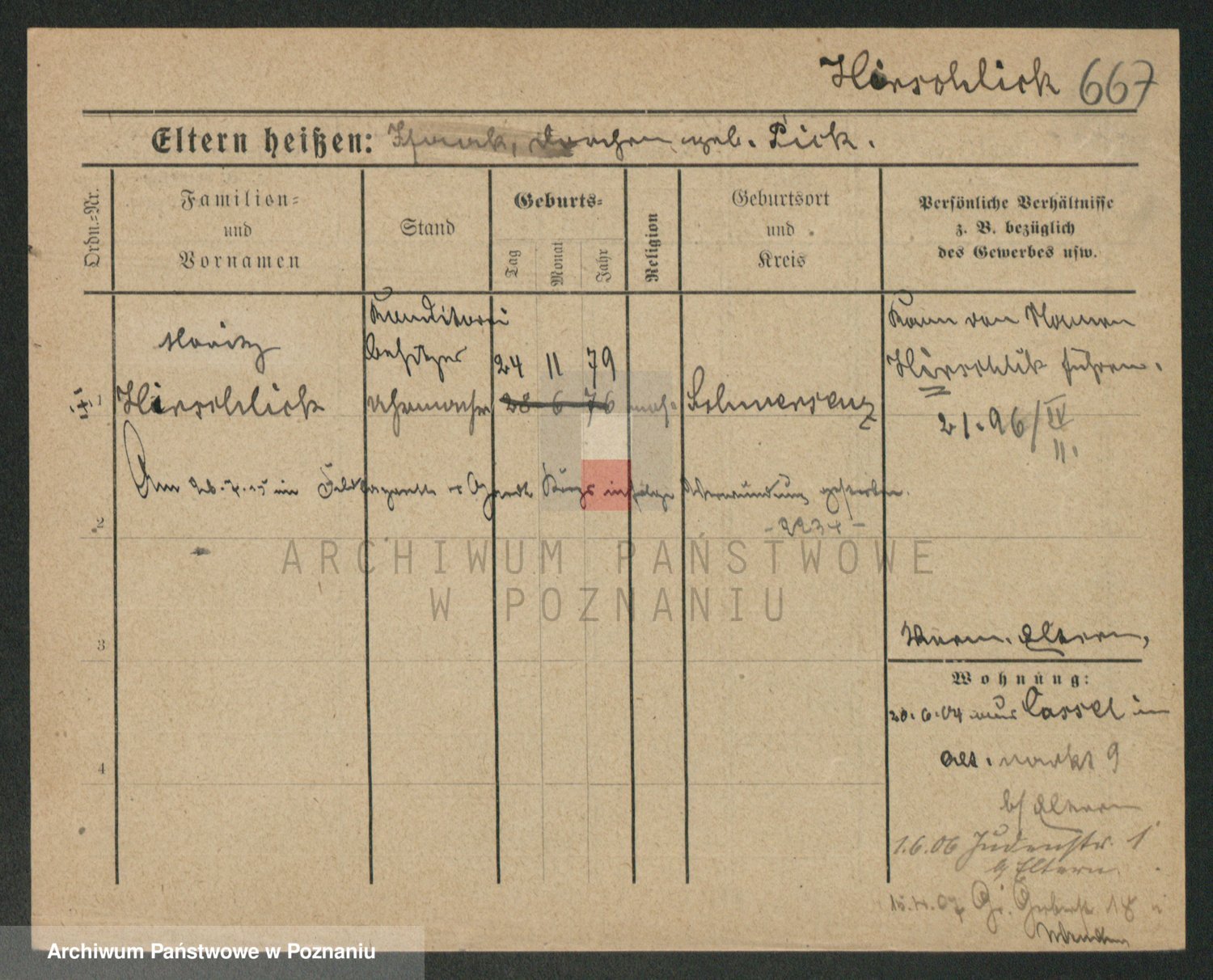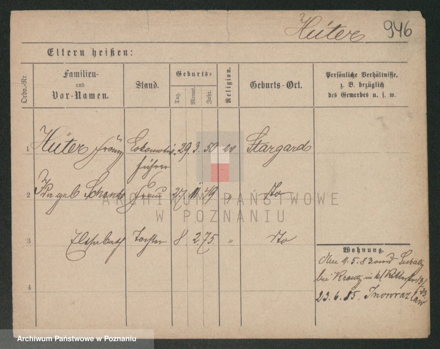 Podgląd karty osobowej dostępny jest po kliknięciu na nazwisko lub ikonkę karty. Można dokonywać powiększenia (ikony na górze) lub przechodzić między kolejnymi skanami (strzałki po bokach).