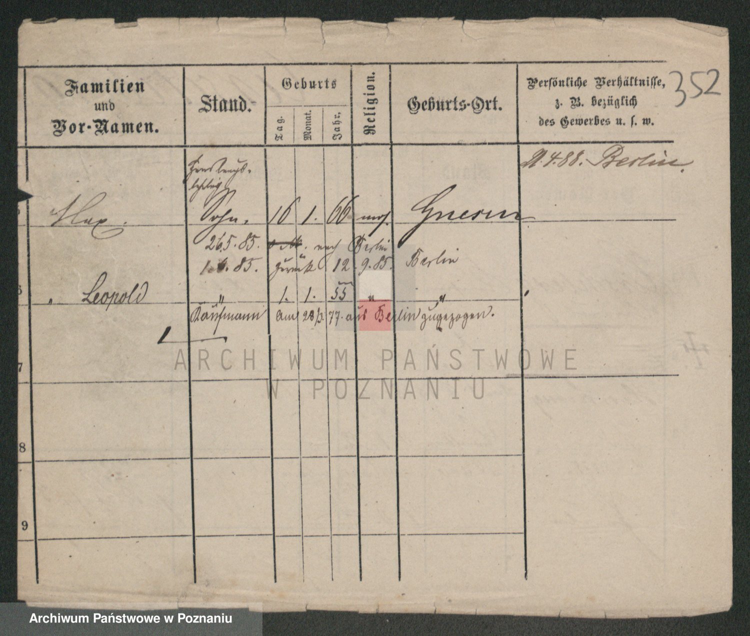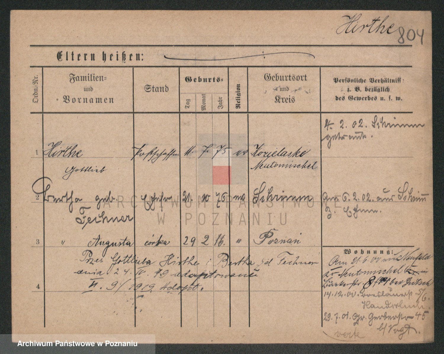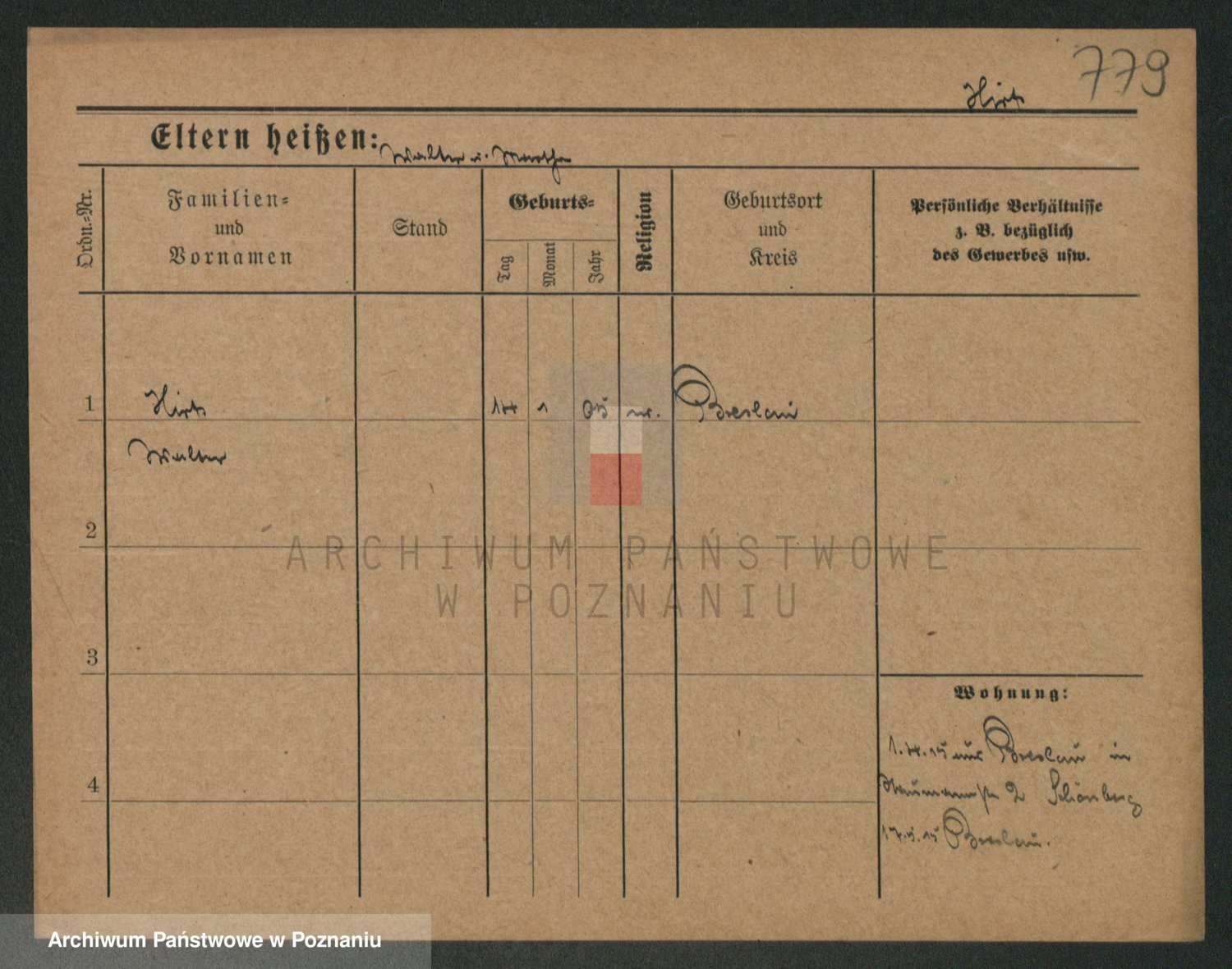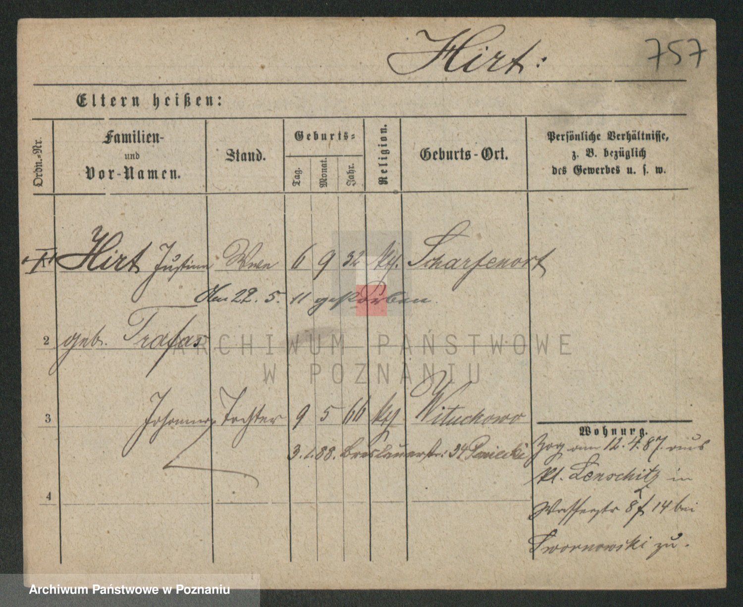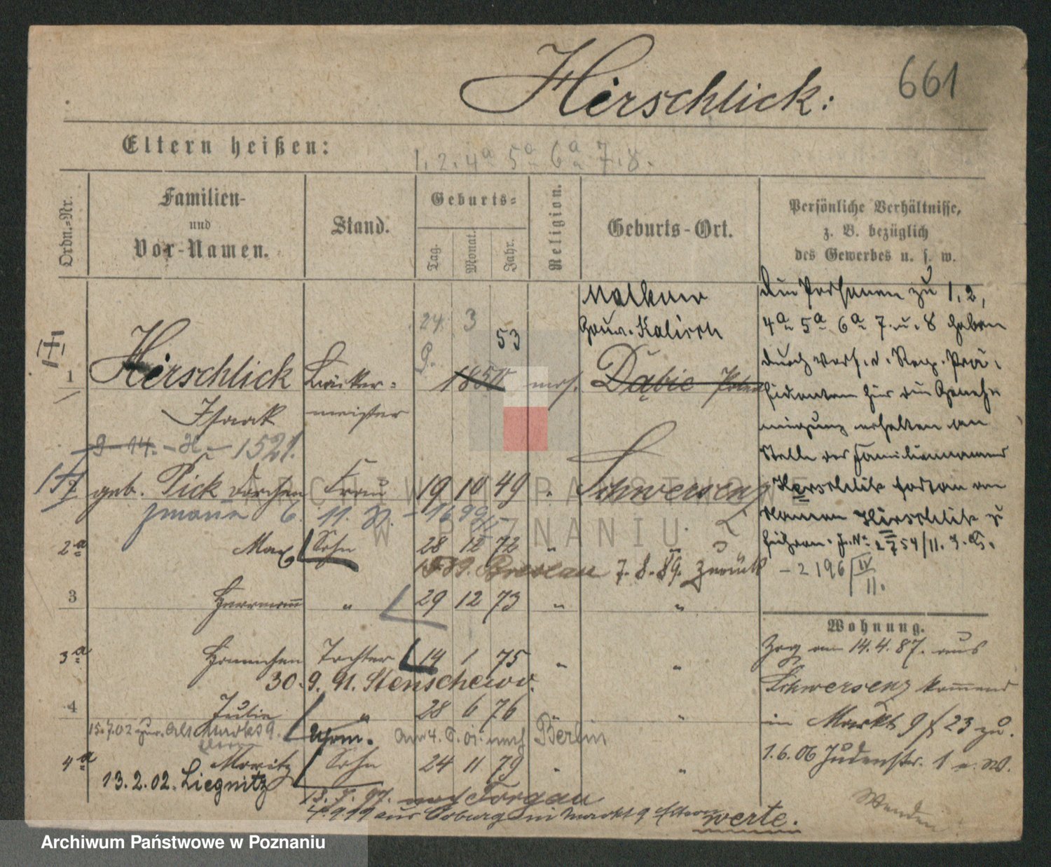 Podgląd karty osobowej dostępny jest po kliknięciu na nazwisko lub ikonkę karty. Można dokonywać powiększenia (ikony na górze) lub przechodzić między kolejnymi skanami (strzałki po bokach).