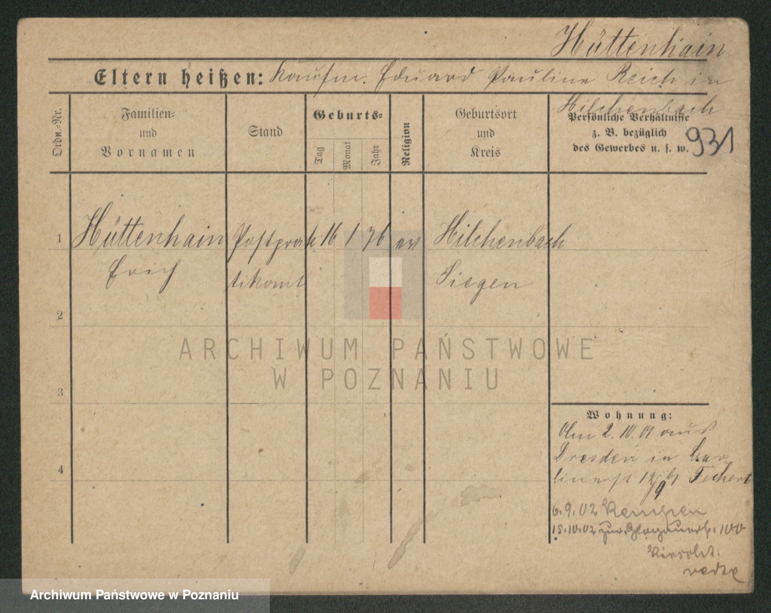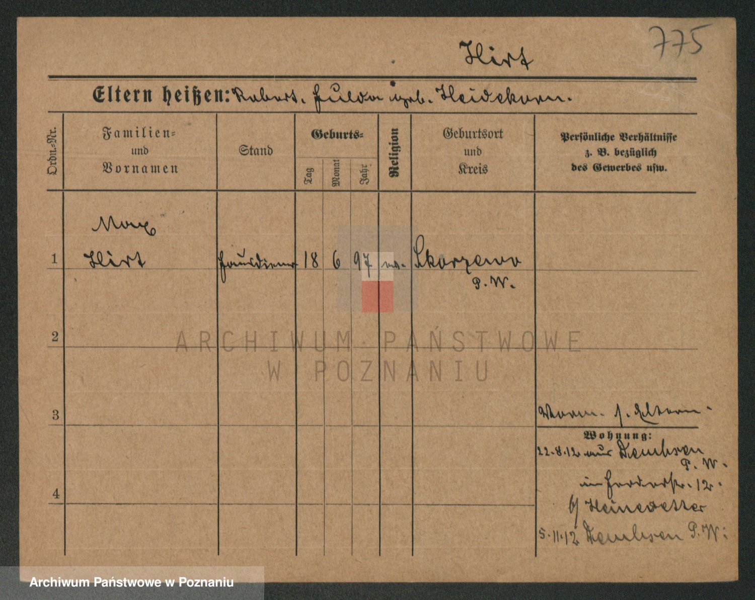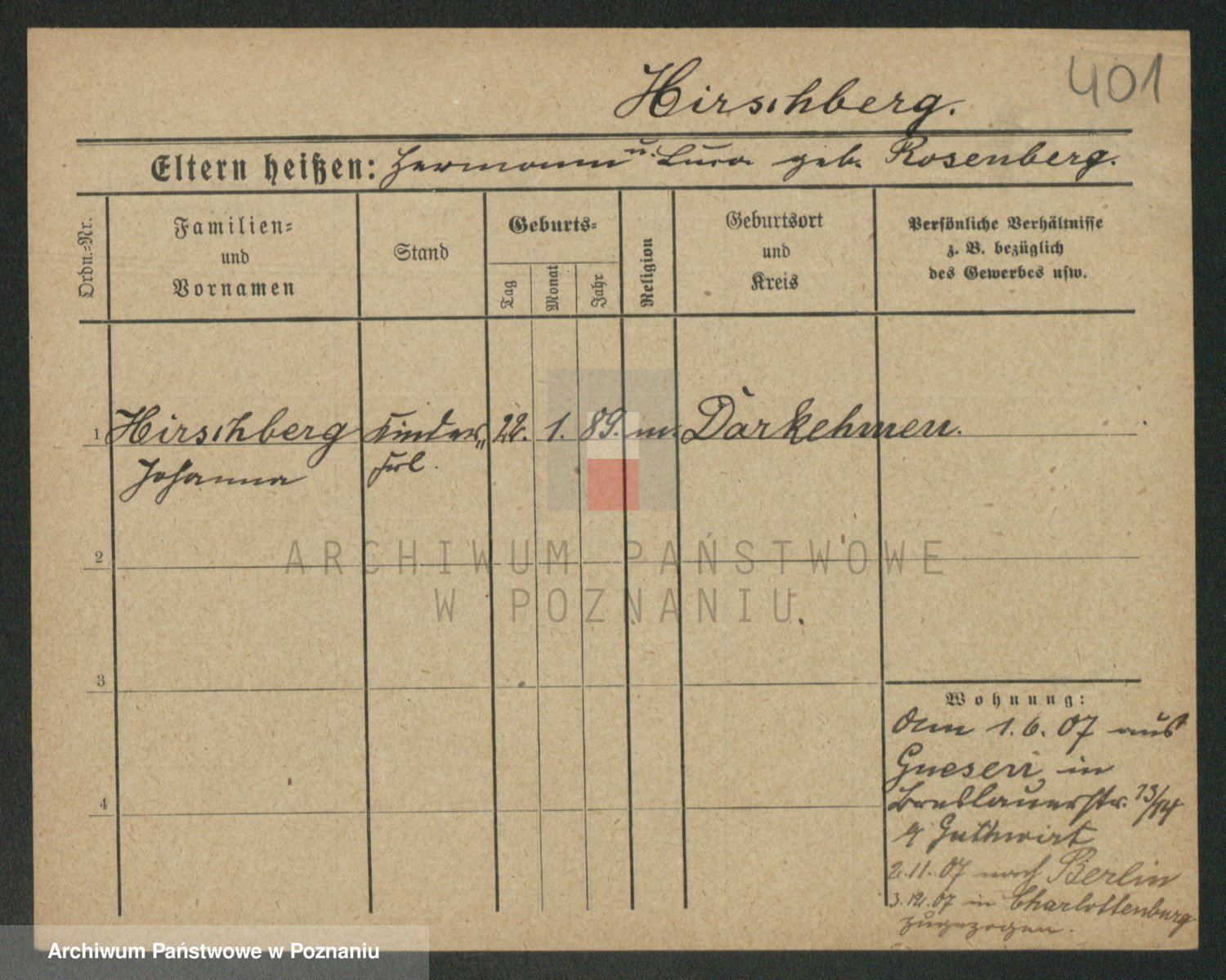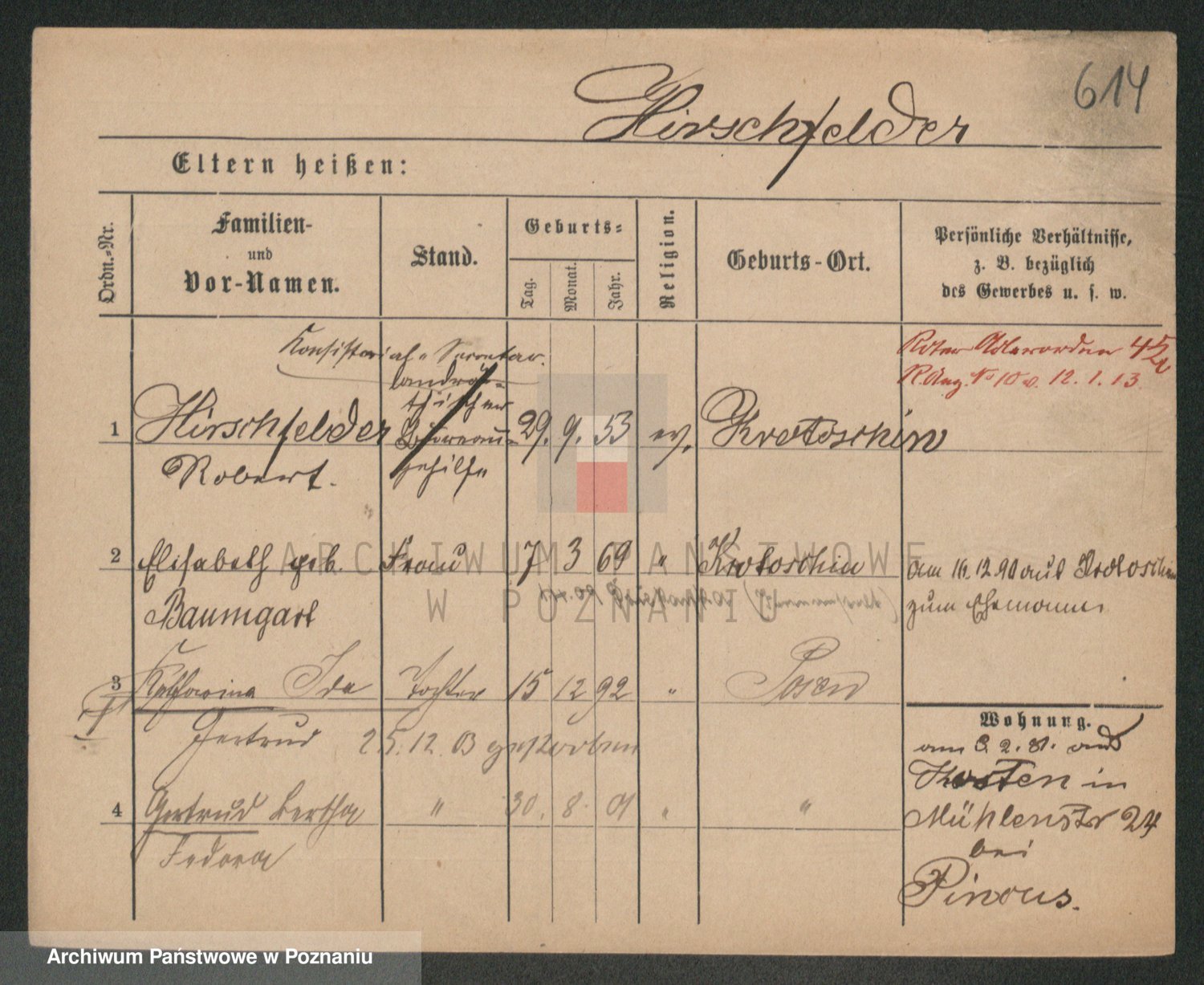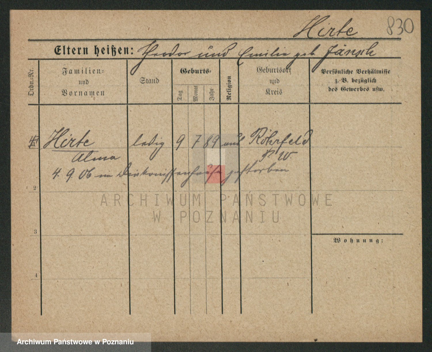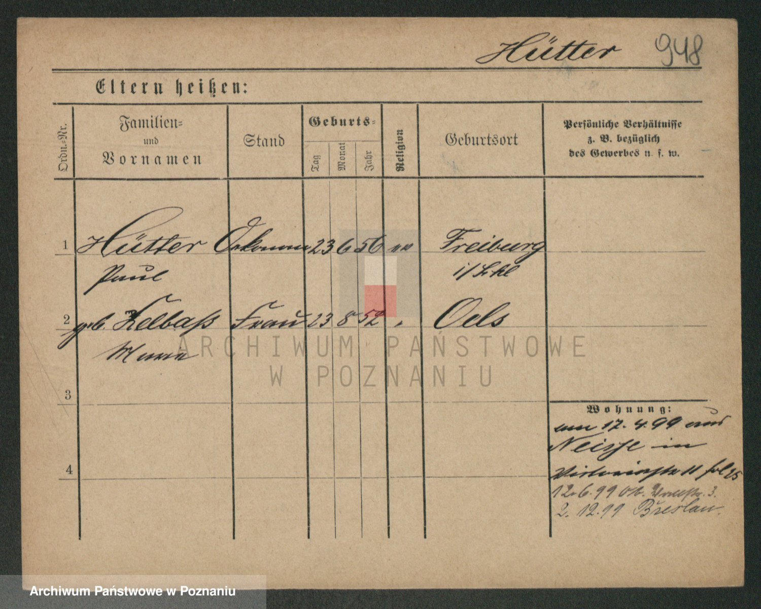 Podgląd karty osobowej dostępny jest po kliknięciu na nazwisko lub ikonkę karty. Można dokonywać powiększenia (ikony na górze) lub przechodzić między kolejnymi skanami (strzałki po bokach).