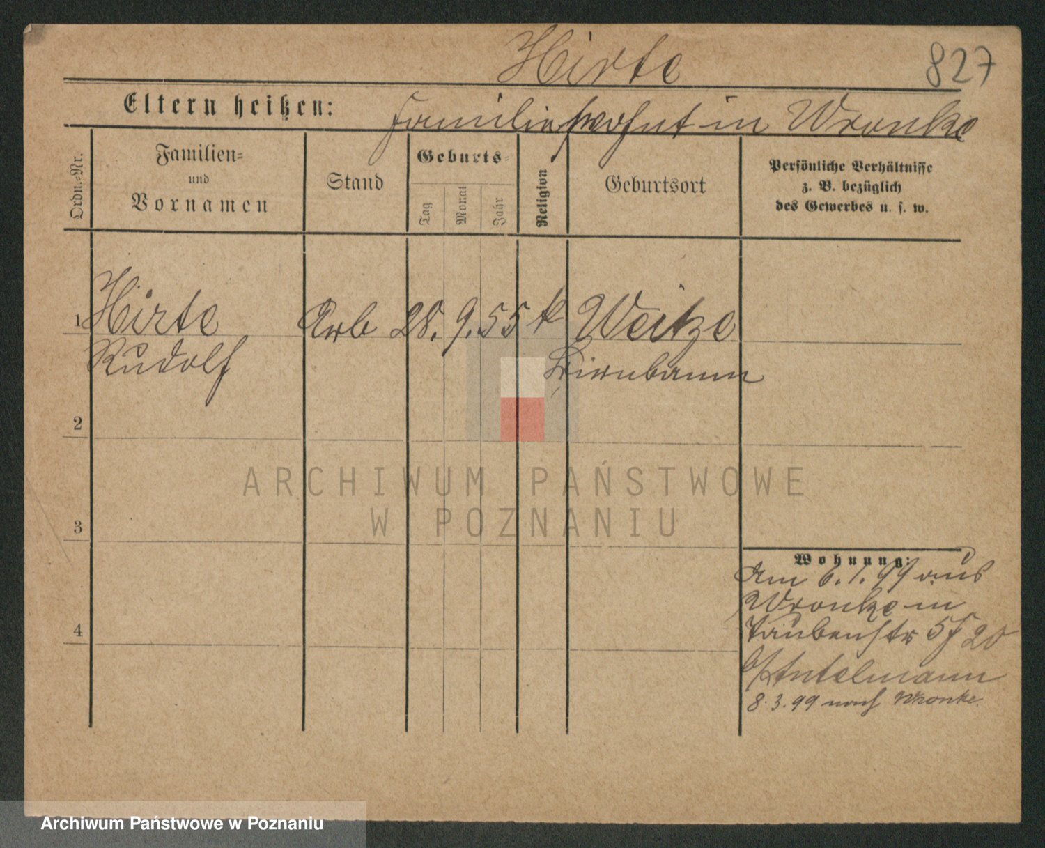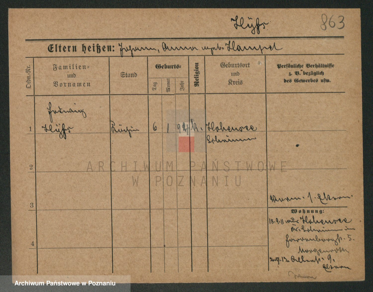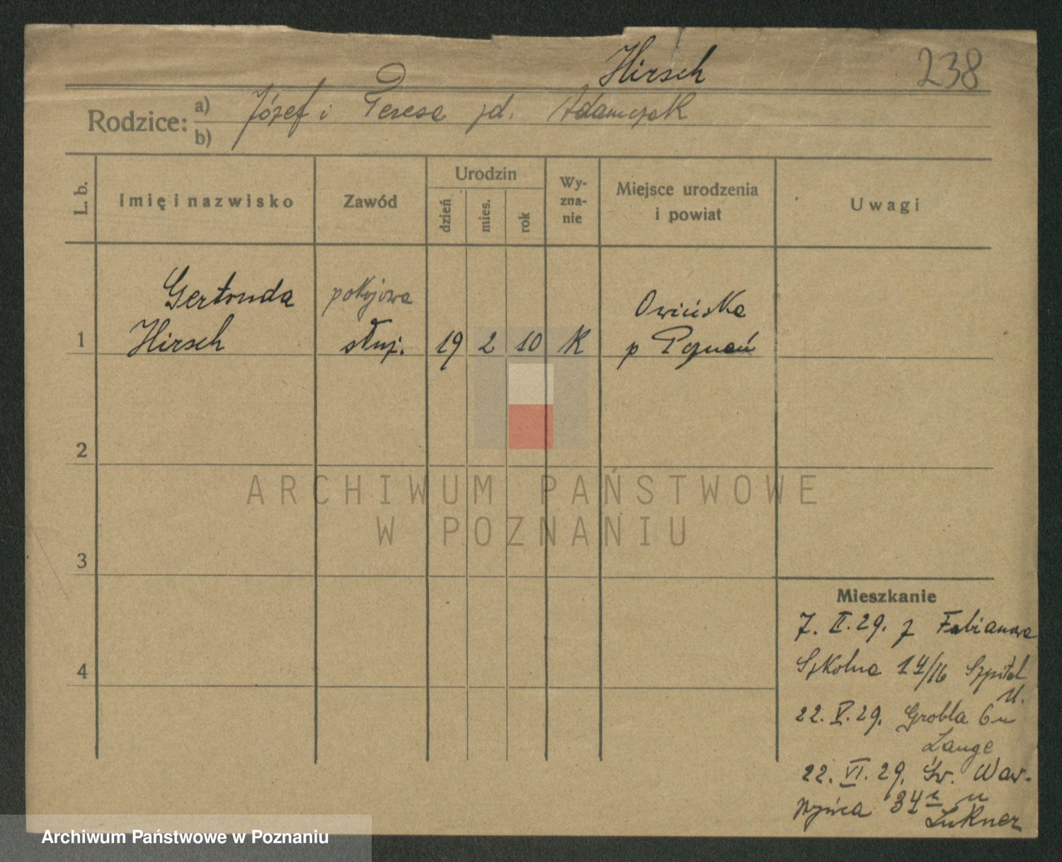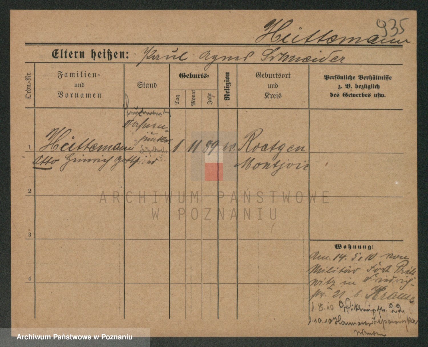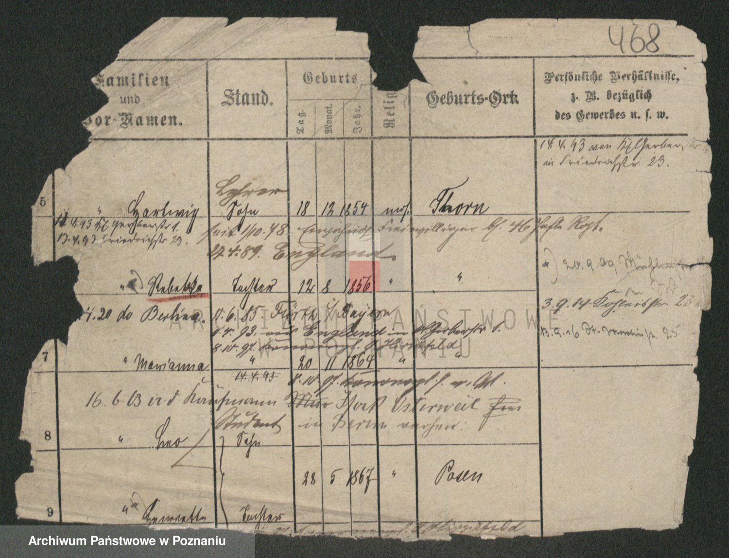 Podgląd karty osobowej dostępny jest po kliknięciu na nazwisko lub ikonkę karty. Można dokonywać powiększenia (ikony na górze) lub przechodzić między kolejnymi skanami (strzałki po bokach).