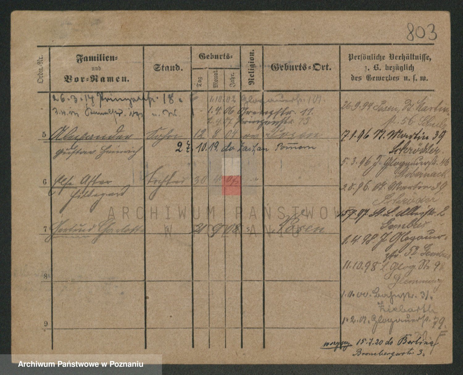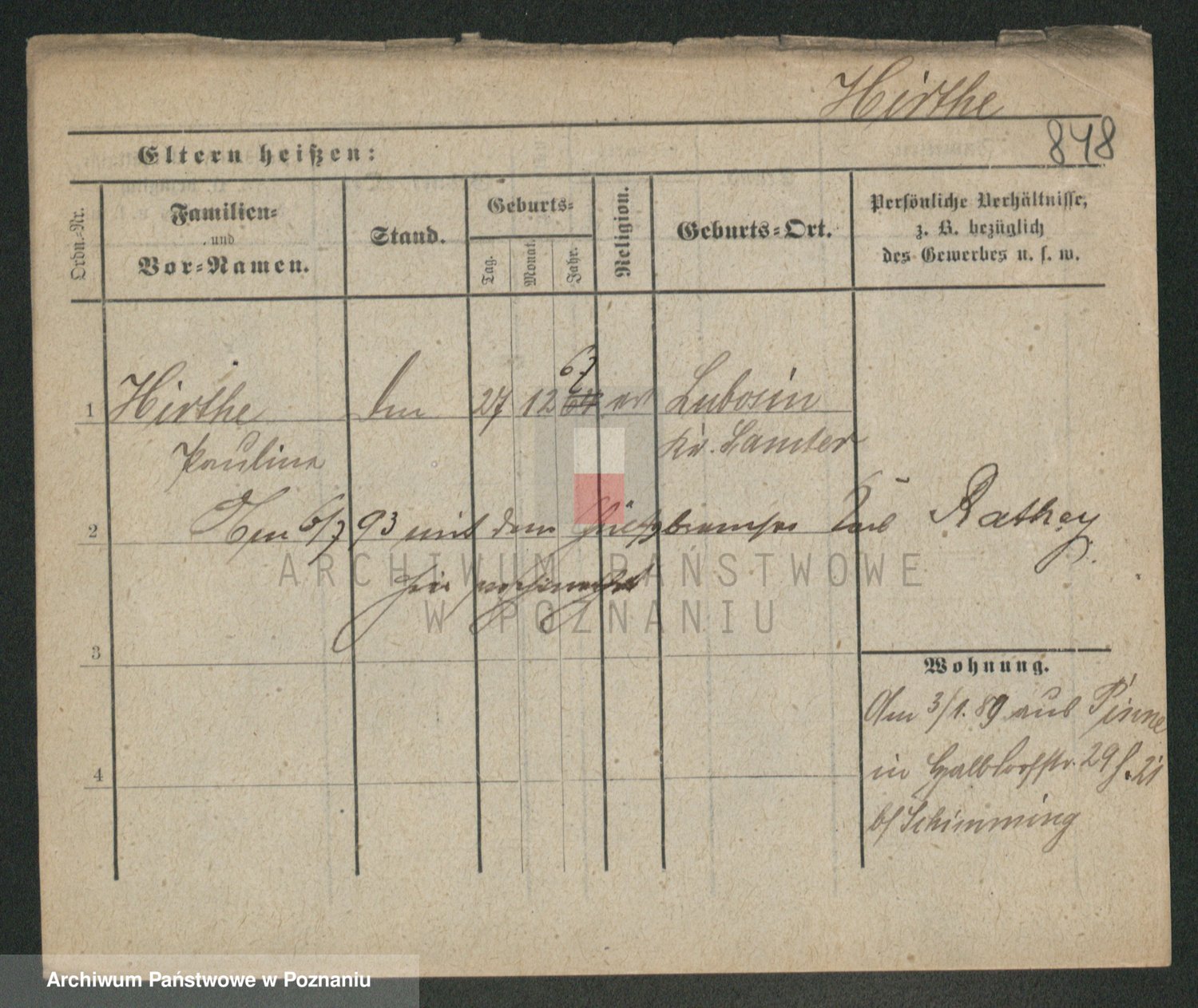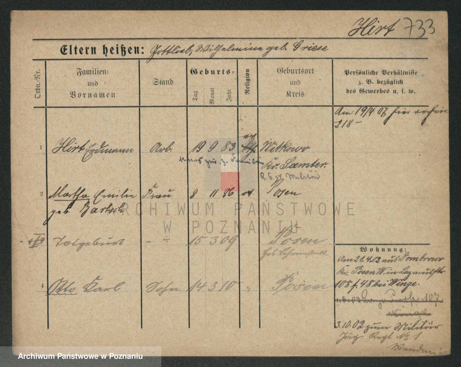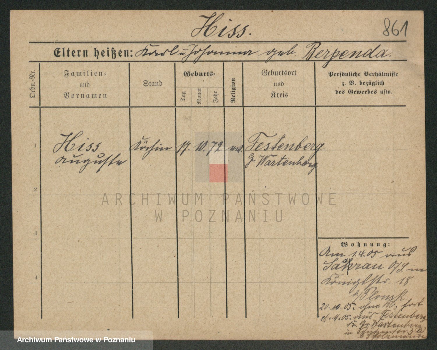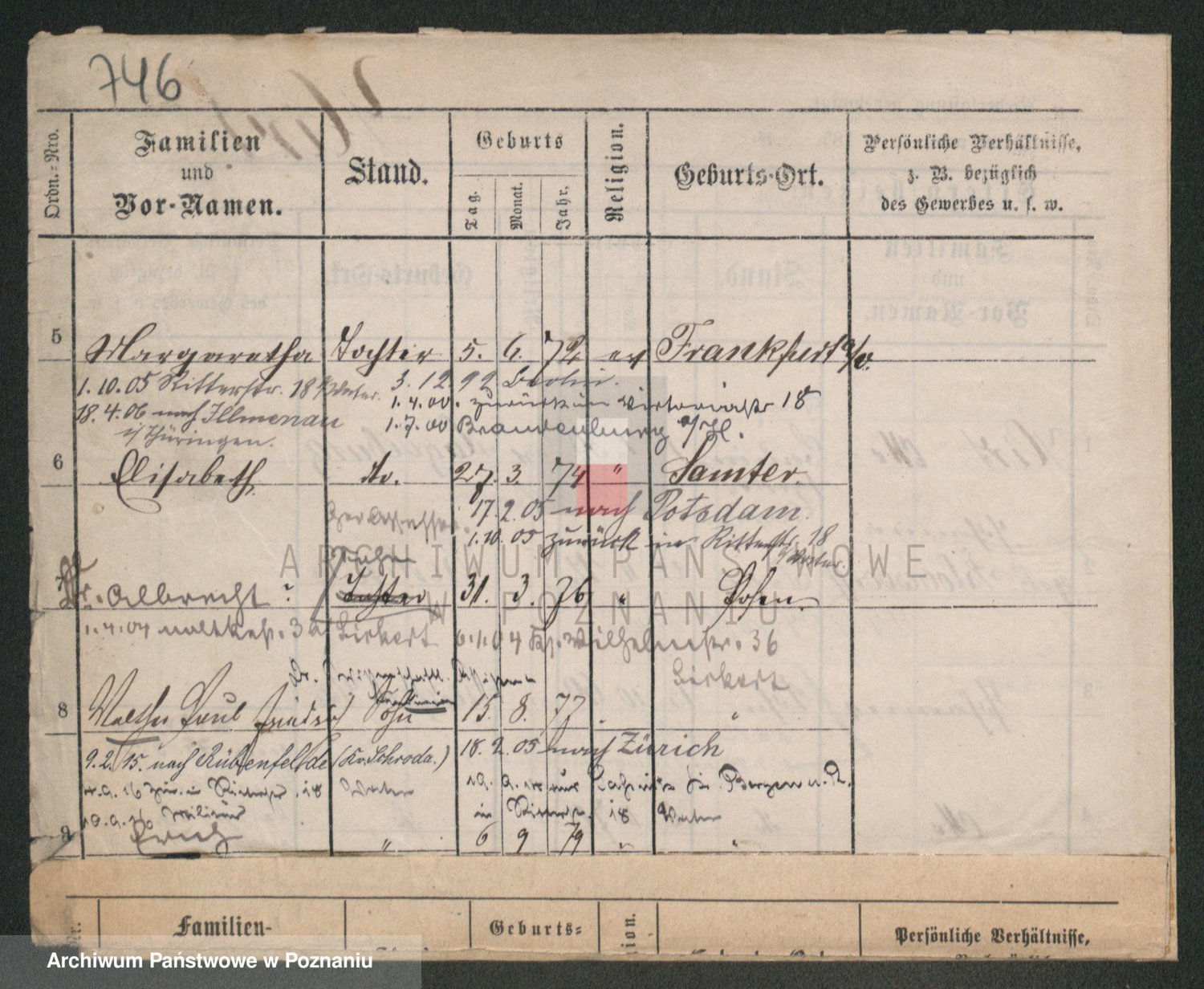 Podgląd karty osobowej dostępny jest po kliknięciu na nazwisko lub ikonkę karty. Można dokonywać powiększenia (ikony na górze) lub przechodzić między kolejnymi skanami (strzałki po bokach).