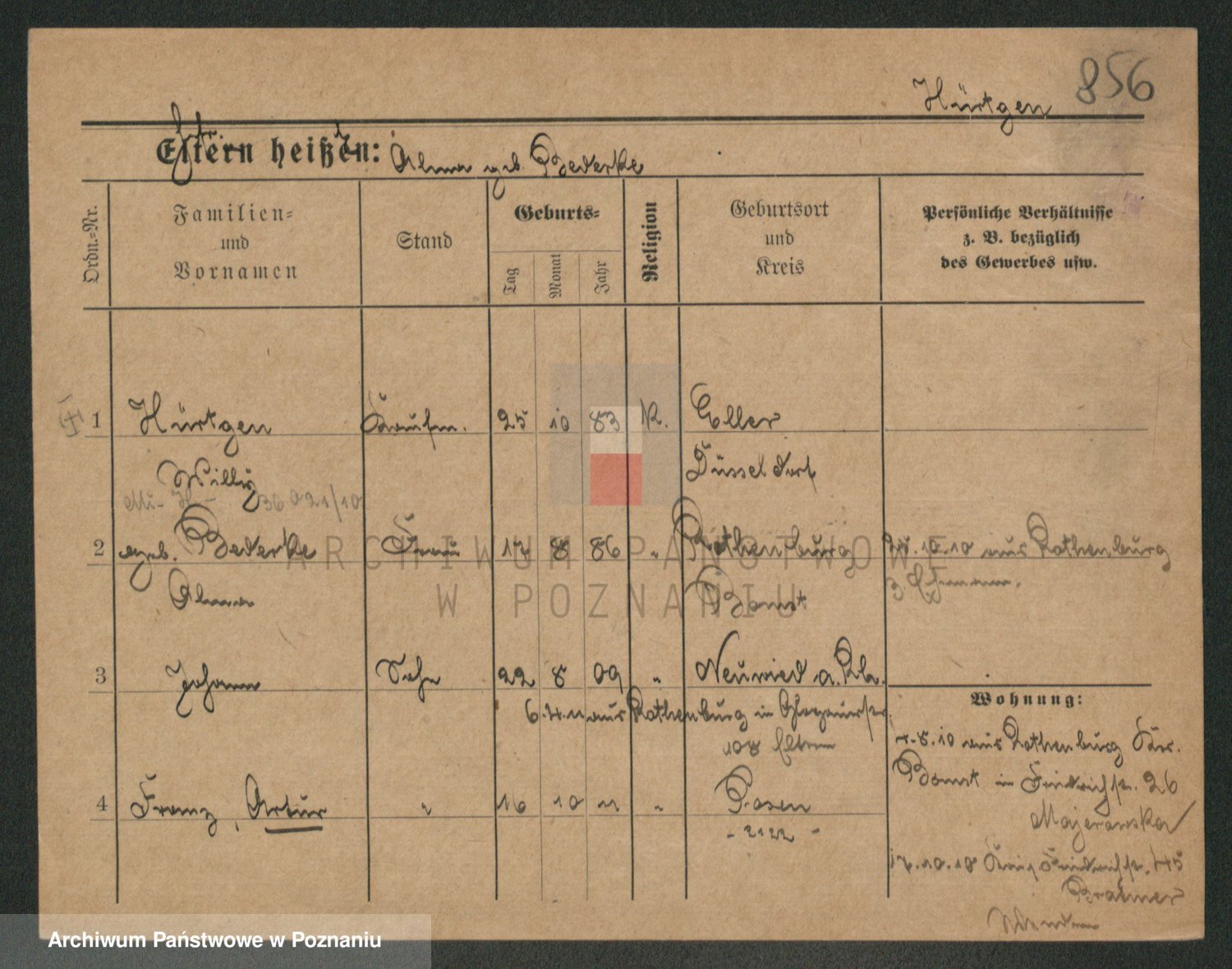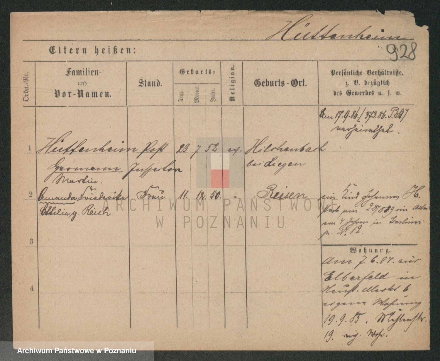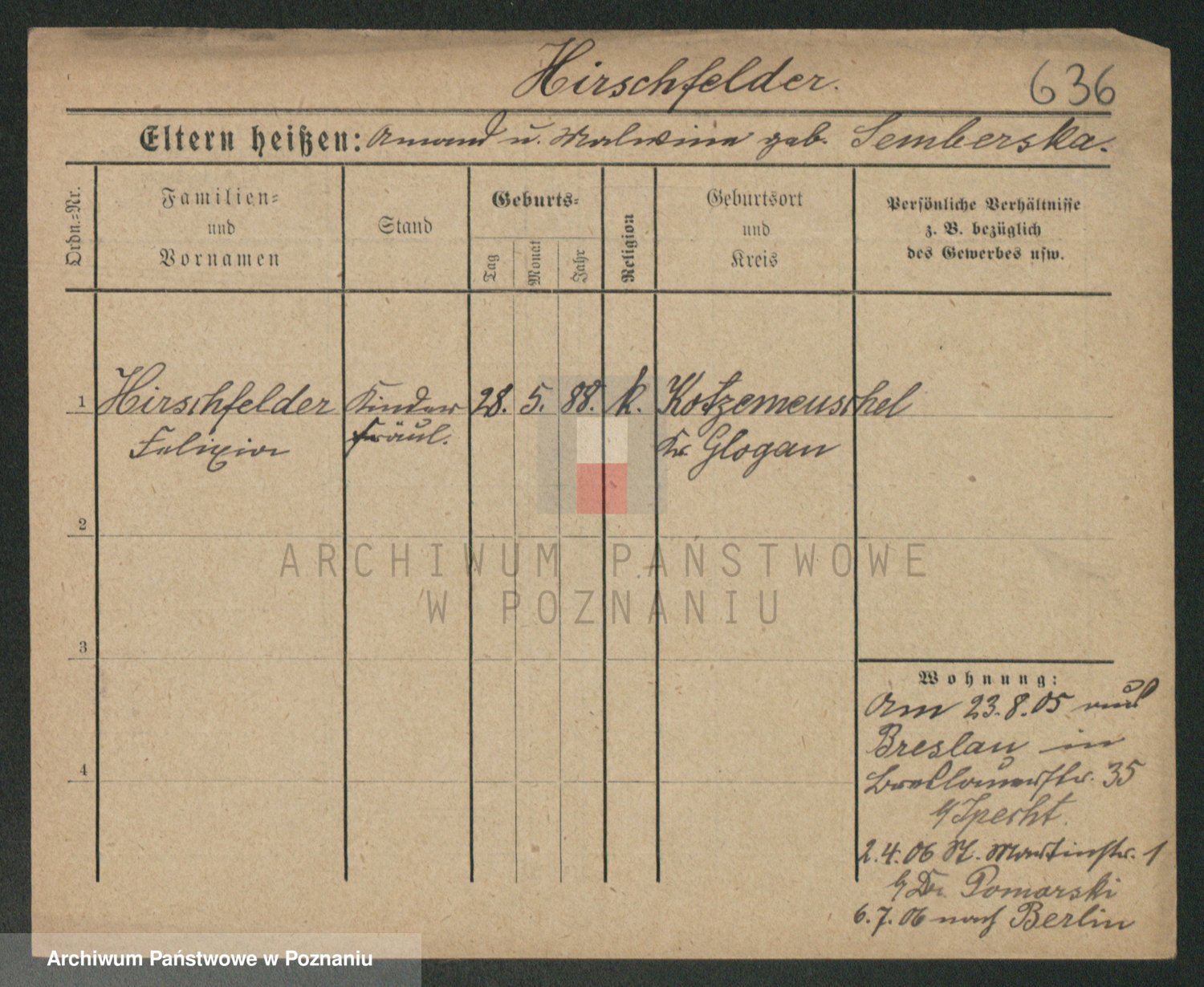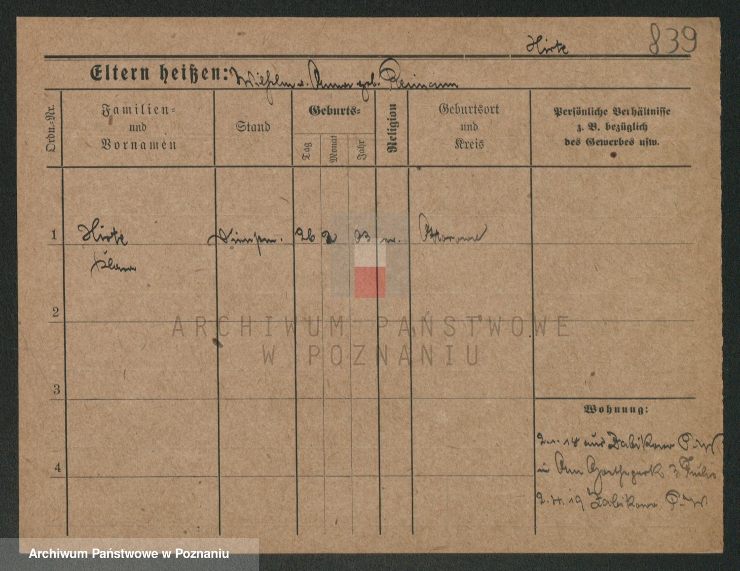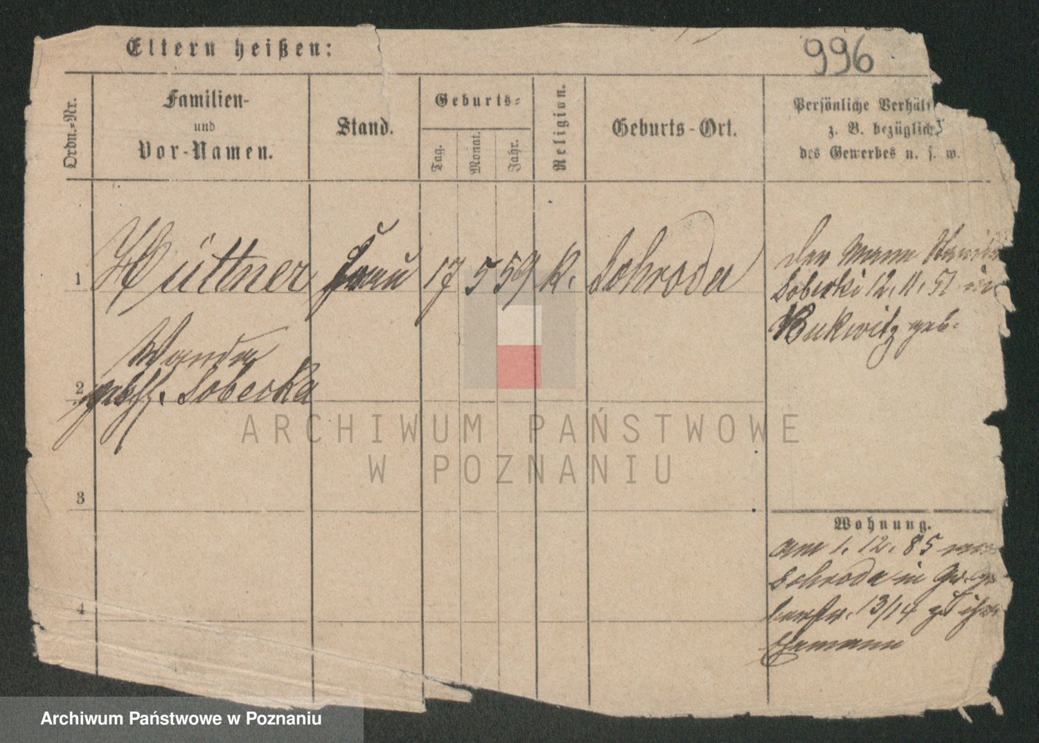 Podgląd karty osobowej dostępny jest po kliknięciu na nazwisko lub ikonkę karty. Można dokonywać powiększenia (ikony na górze) lub przechodzić między kolejnymi skanami (strzałki po bokach).