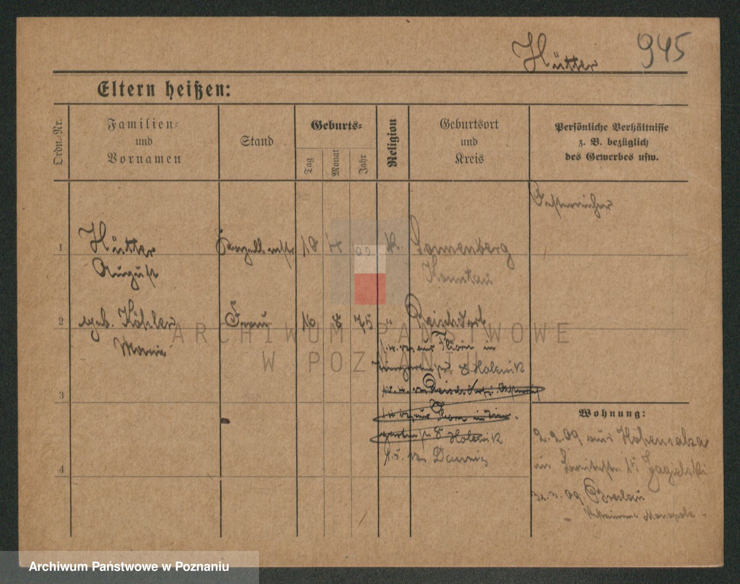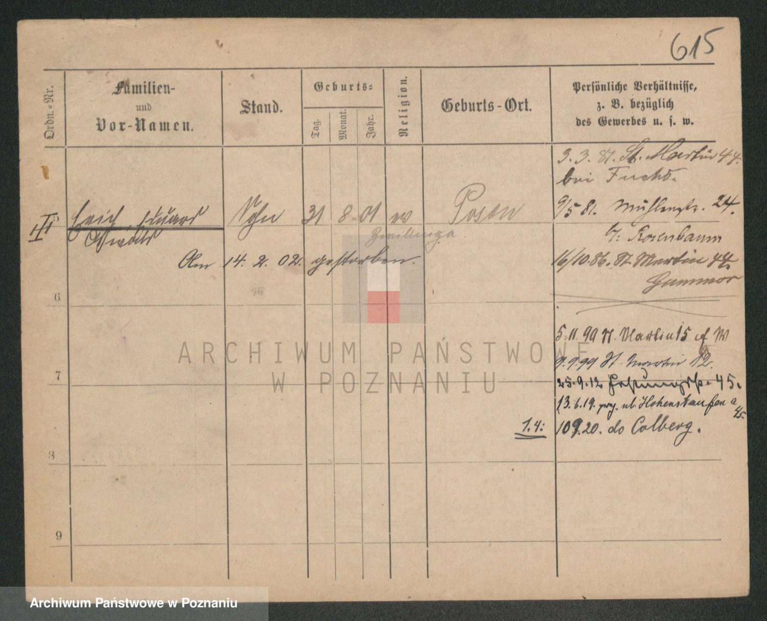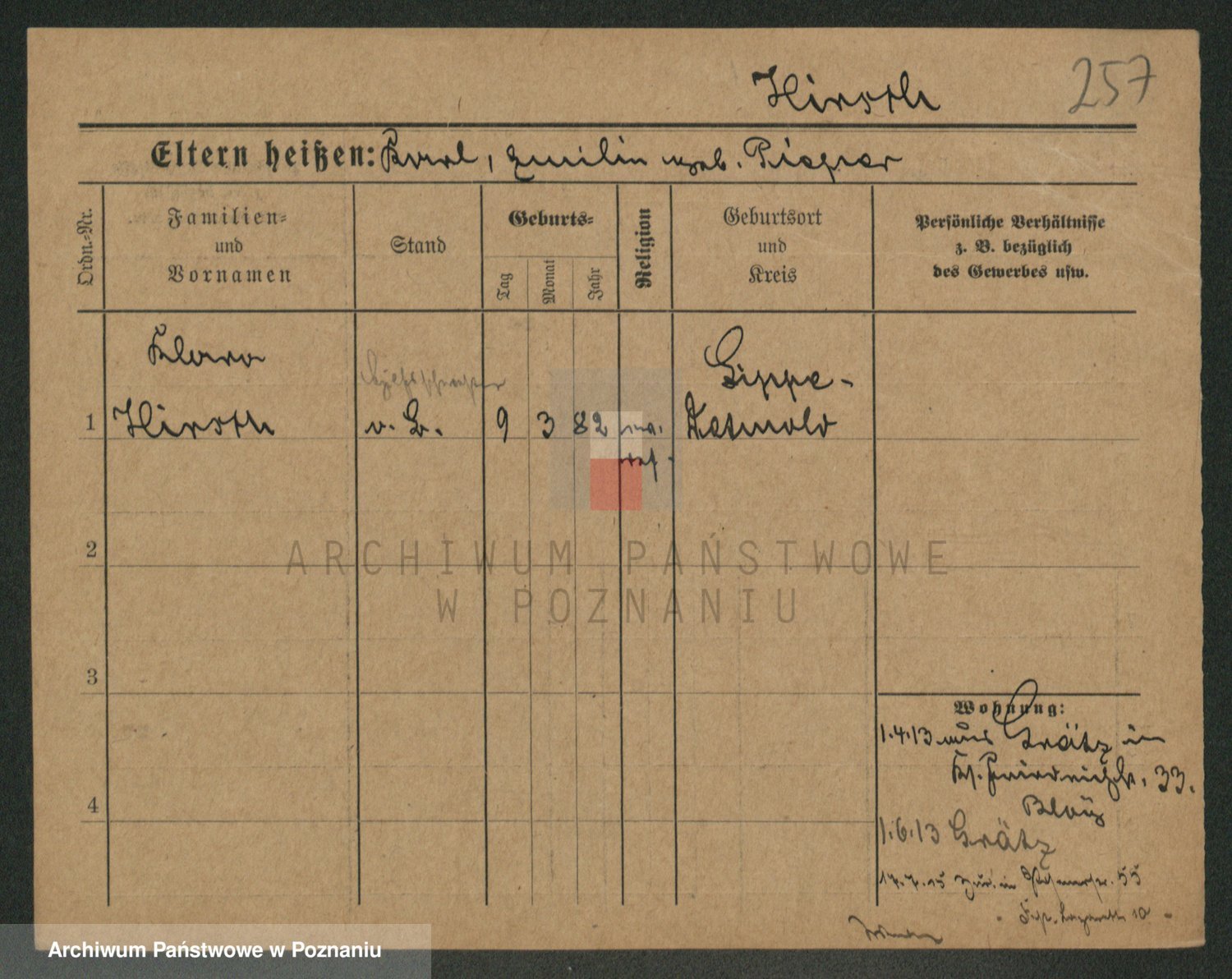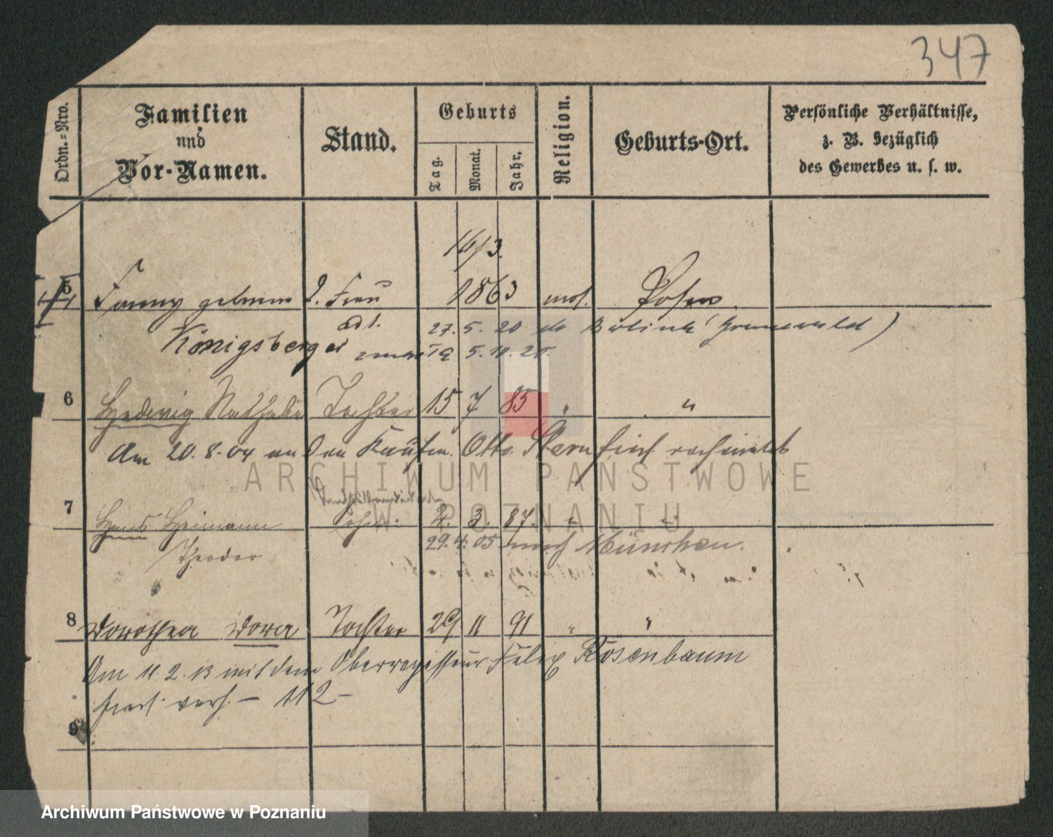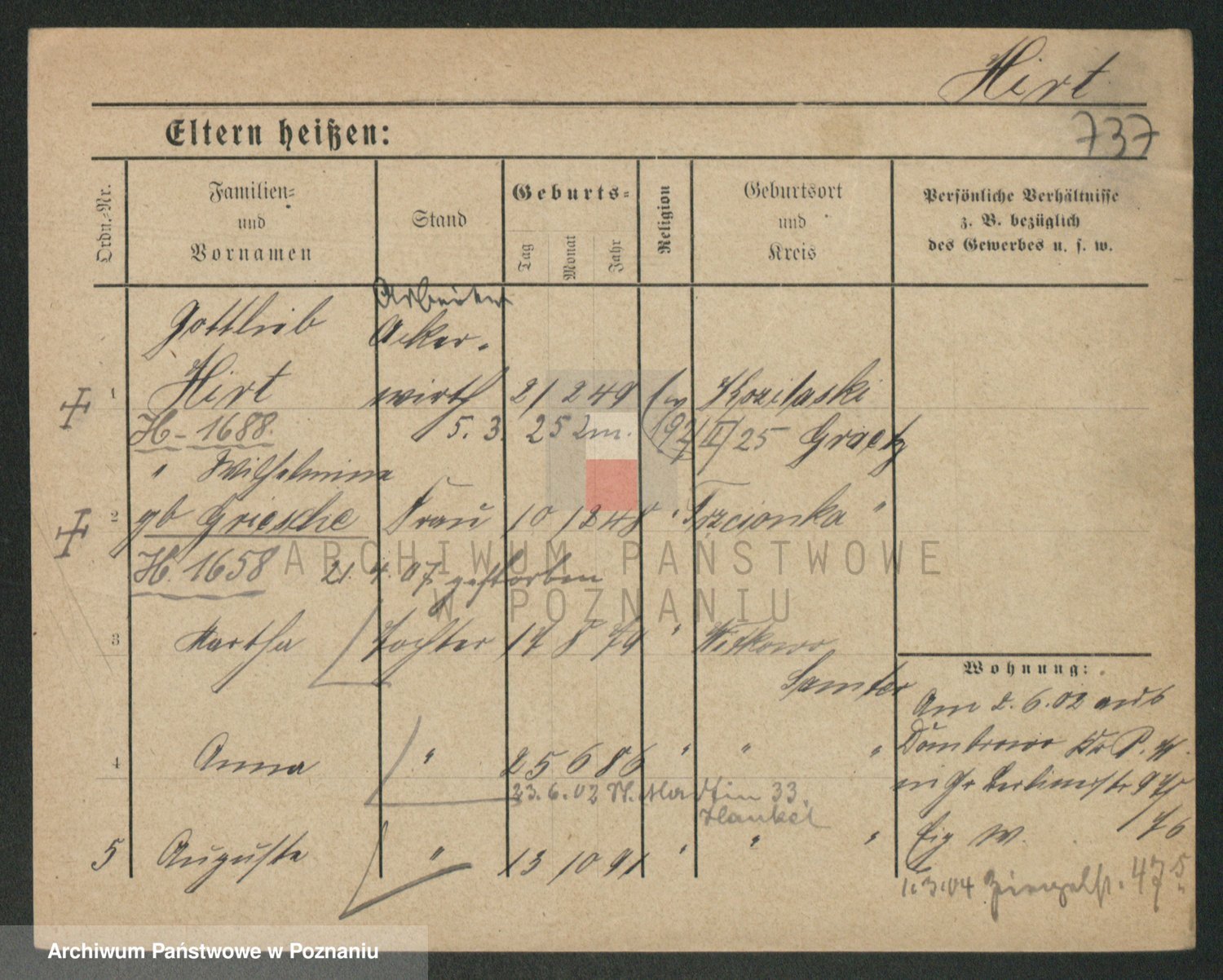 Podgląd karty osobowej dostępny jest po kliknięciu na nazwisko lub ikonkę karty. Można dokonywać powiększenia (ikony na górze) lub przechodzić między kolejnymi skanami (strzałki po bokach).