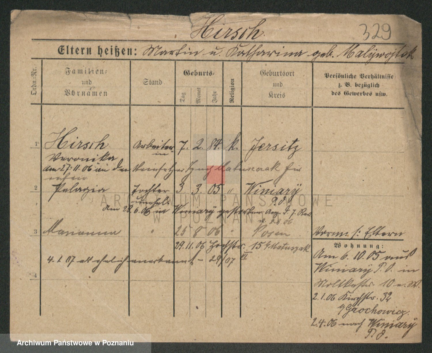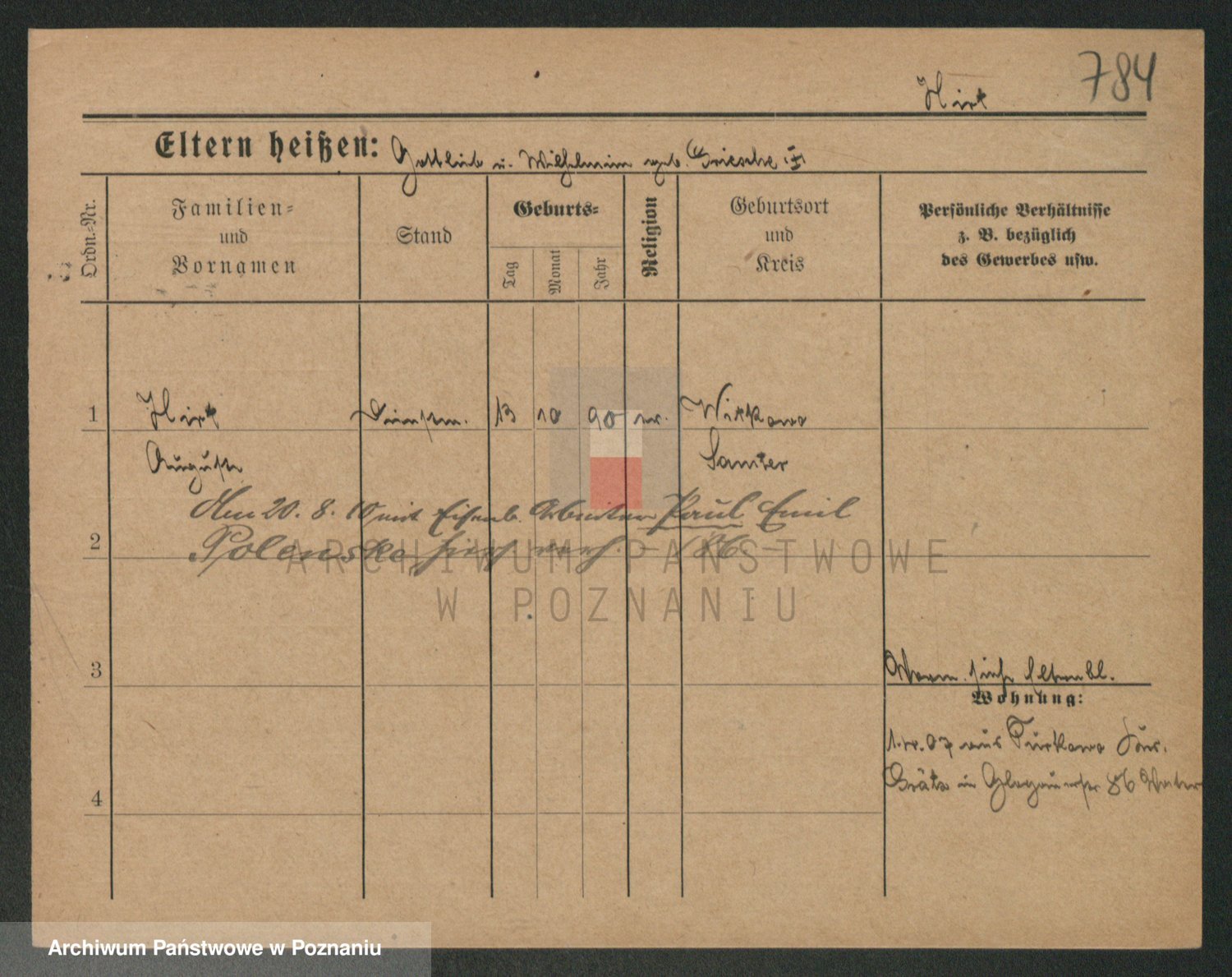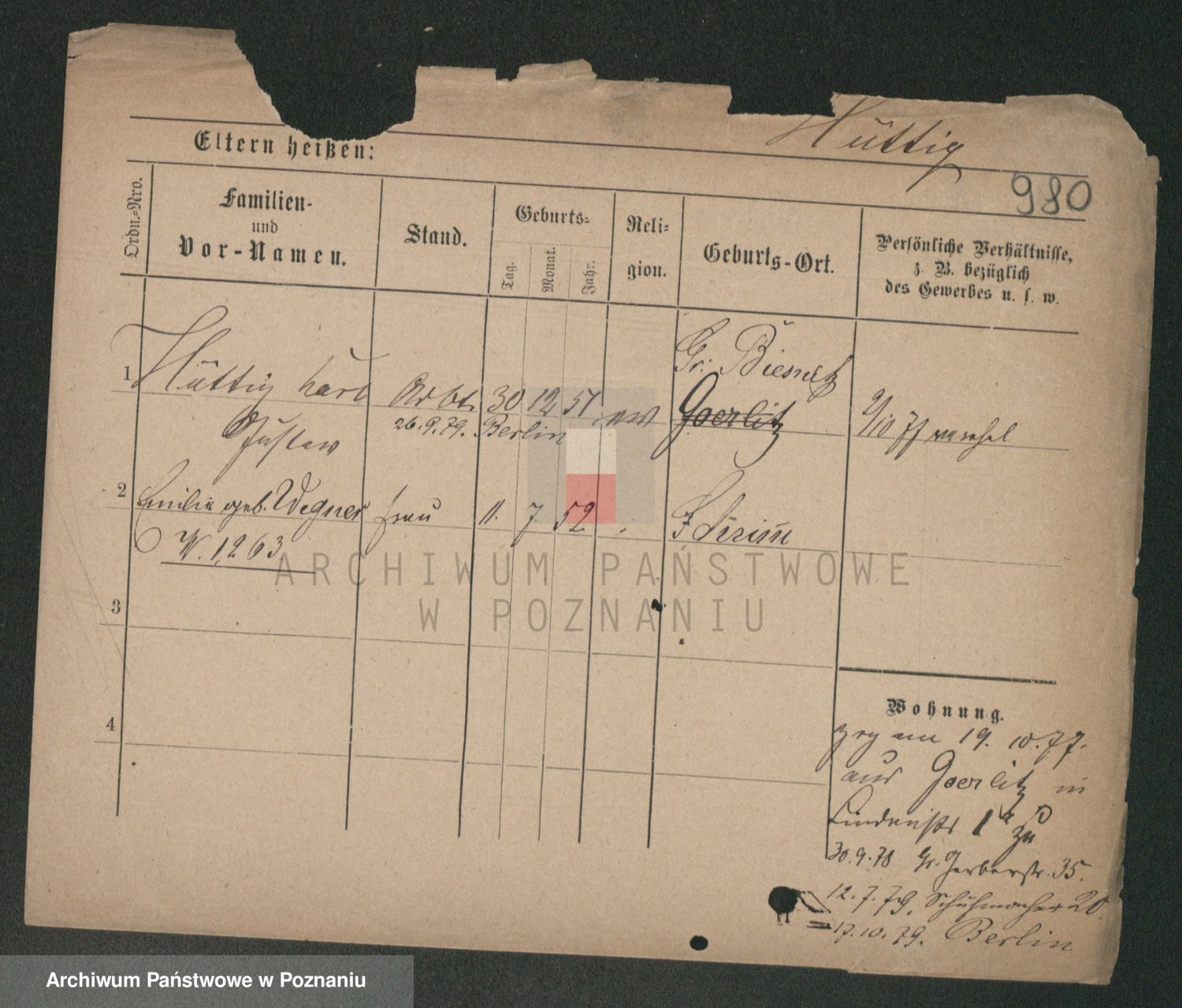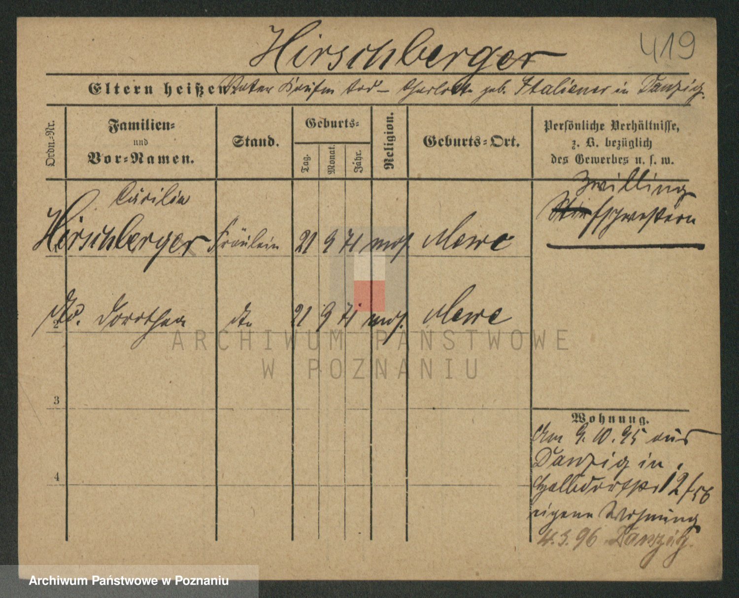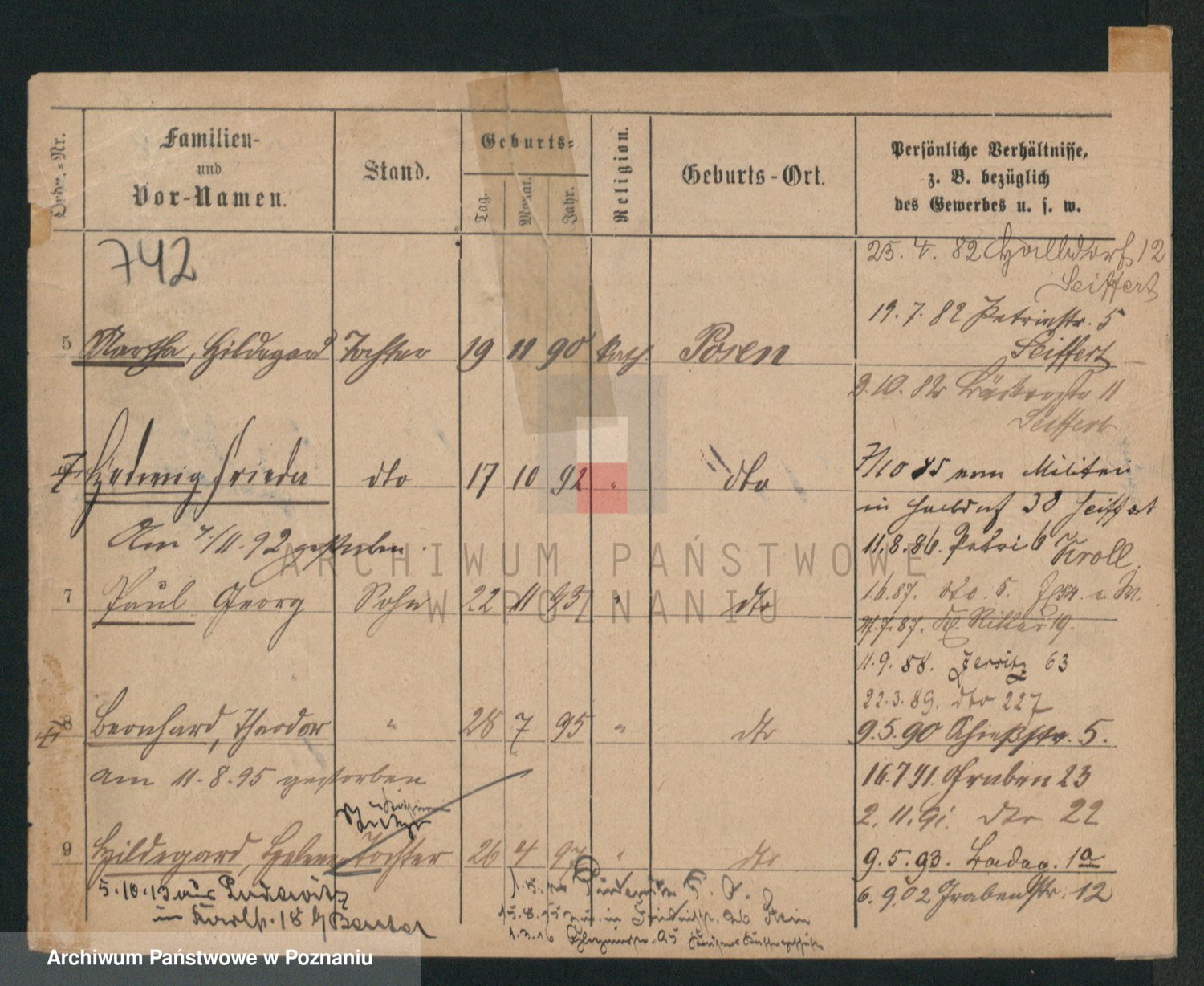 Podgląd karty osobowej dostępny jest po kliknięciu na nazwisko lub ikonkę karty. Można dokonywać powiększenia (ikony na górze) lub przechodzić między kolejnymi skanami (strzałki po bokach).