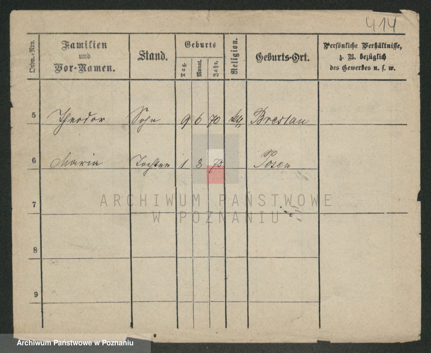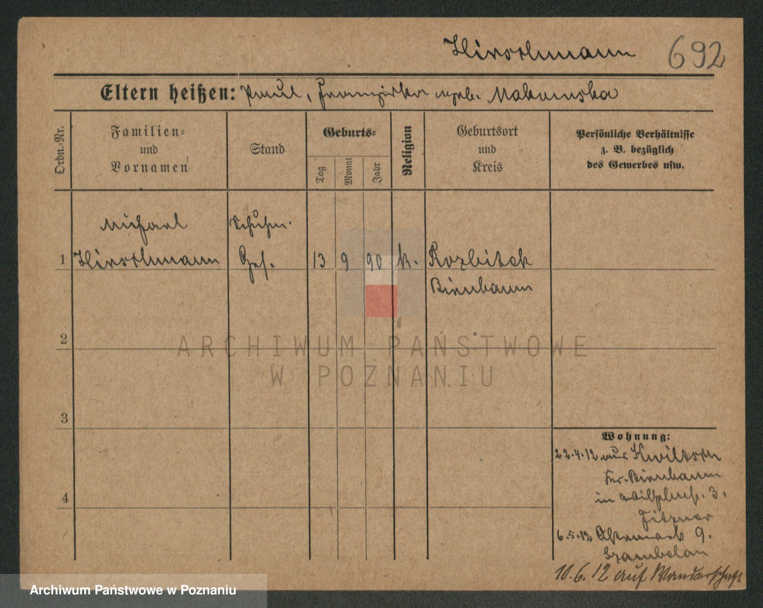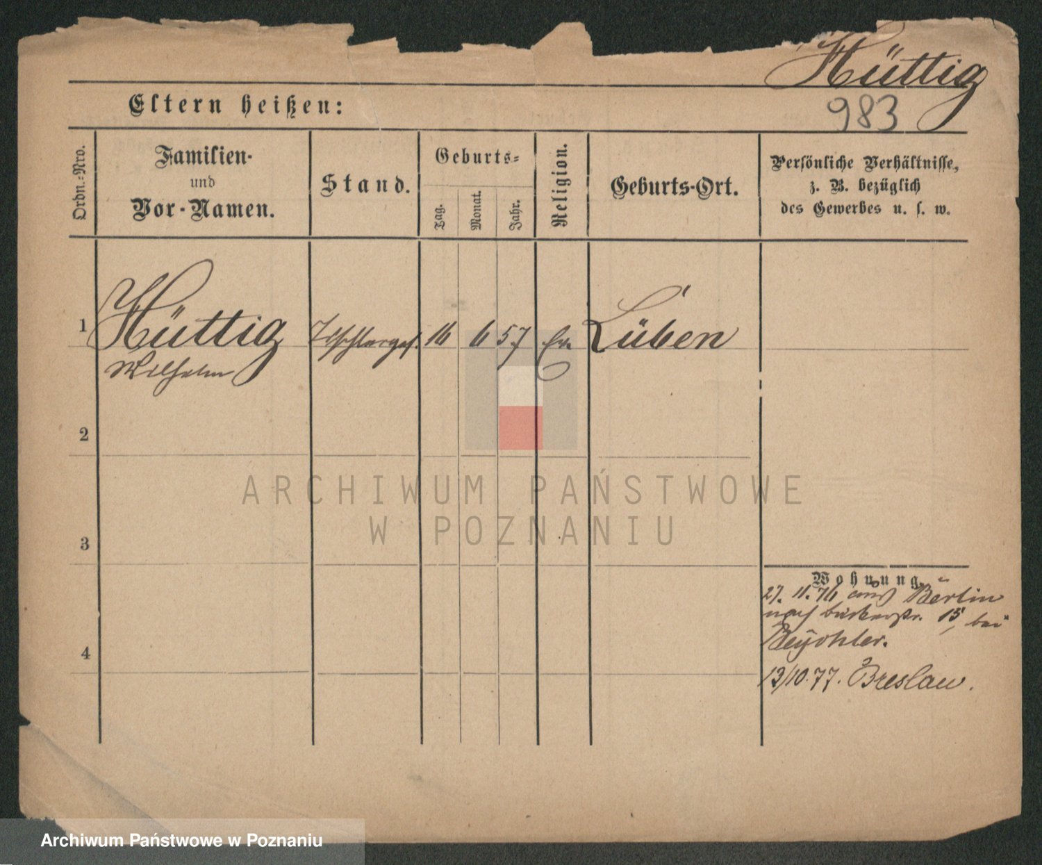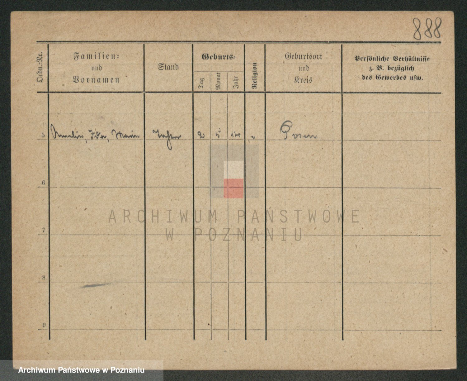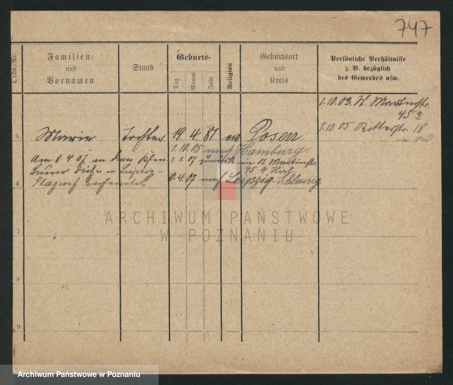 Podgląd karty osobowej dostępny jest po kliknięciu na nazwisko lub ikonkę karty. Można dokonywać powiększenia (ikony na górze) lub przechodzić między kolejnymi skanami (strzałki po bokach).