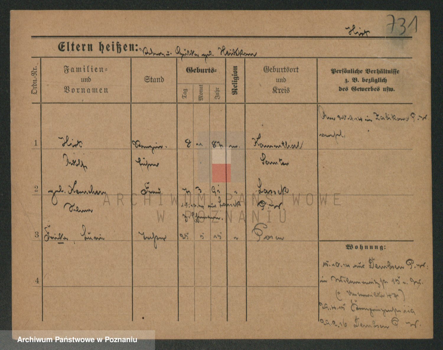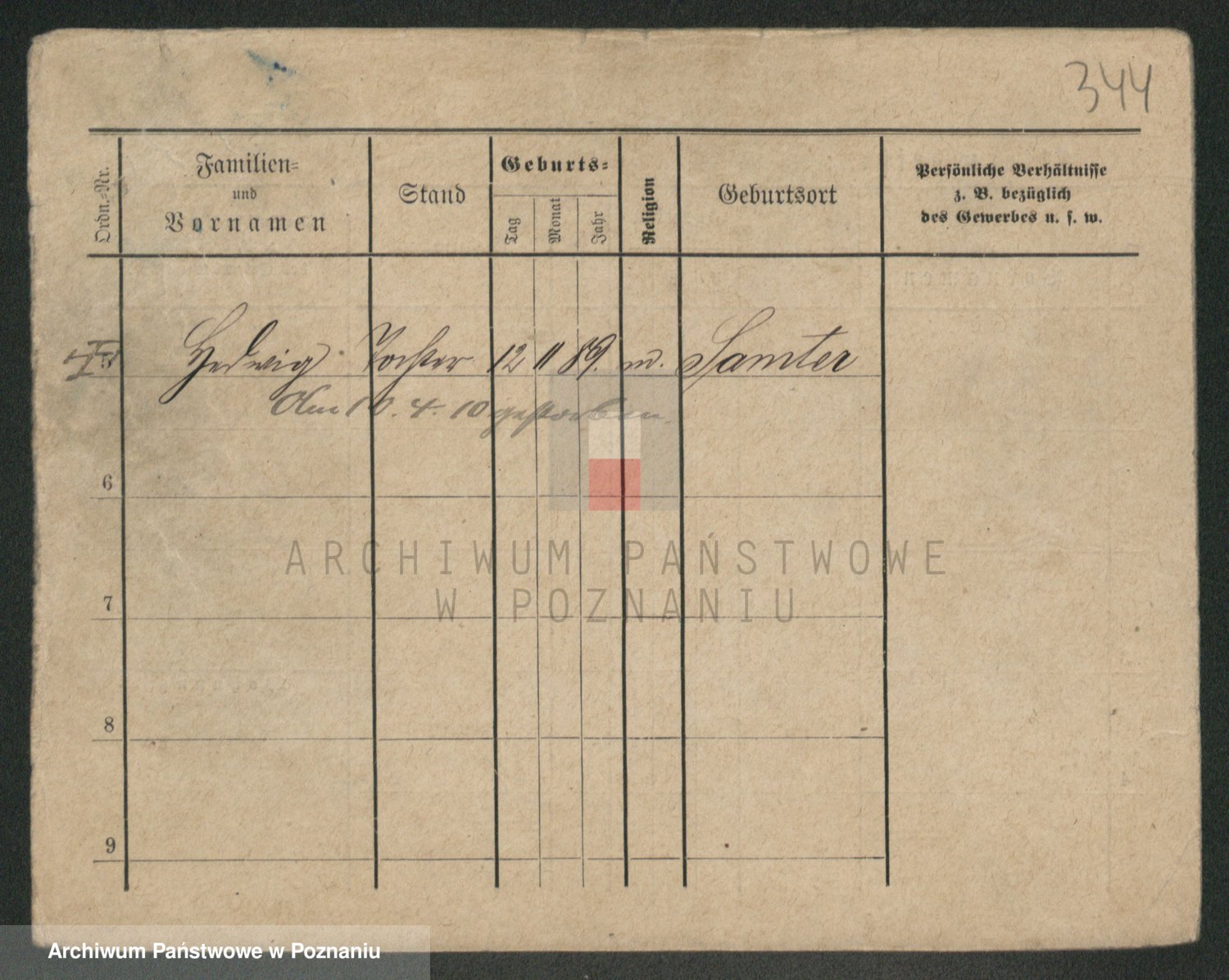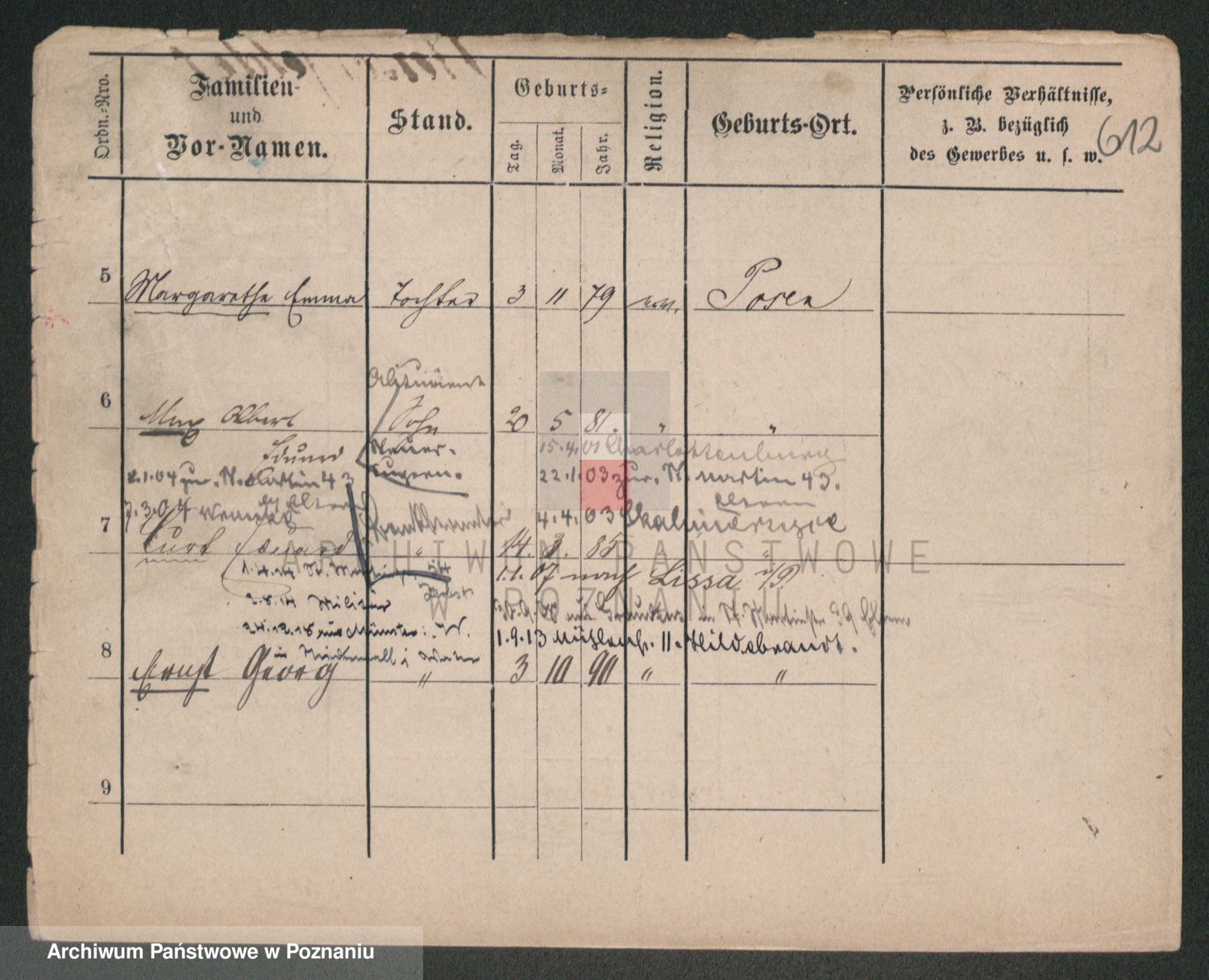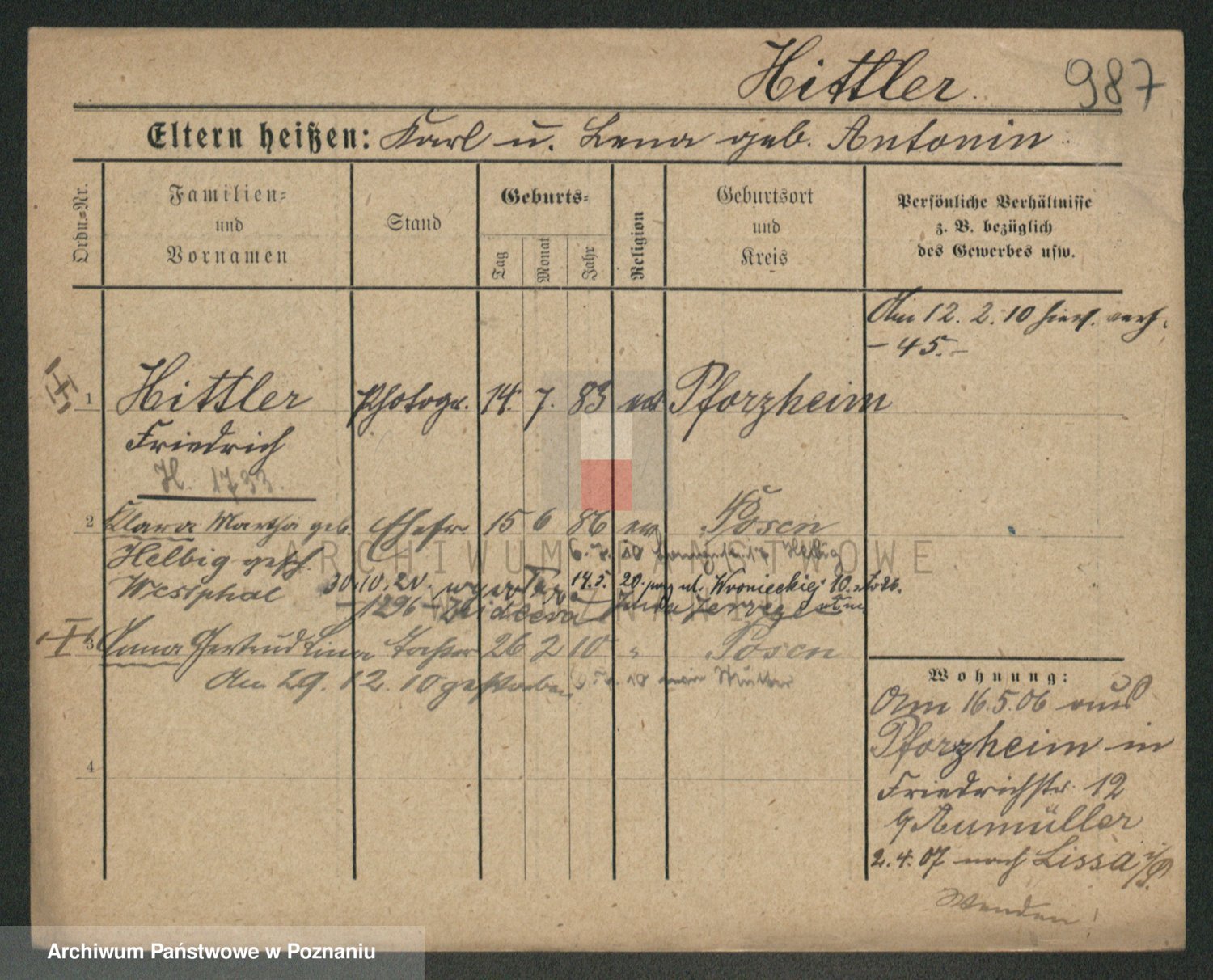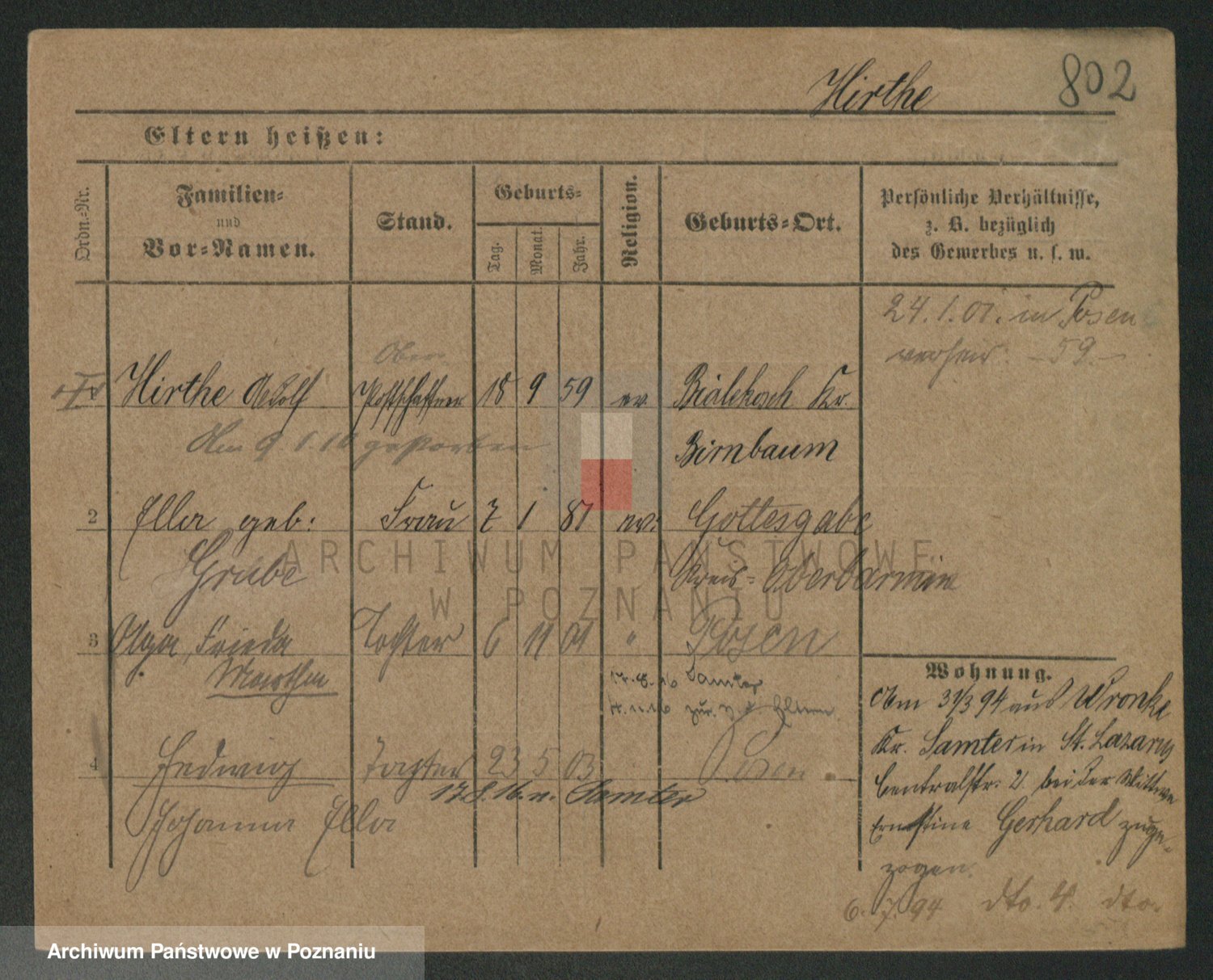 Podgląd karty osobowej dostępny jest po kliknięciu na nazwisko lub ikonkę karty. Można dokonywać powiększenia (ikony na górze) lub przechodzić między kolejnymi skanami (strzałki po bokach).
