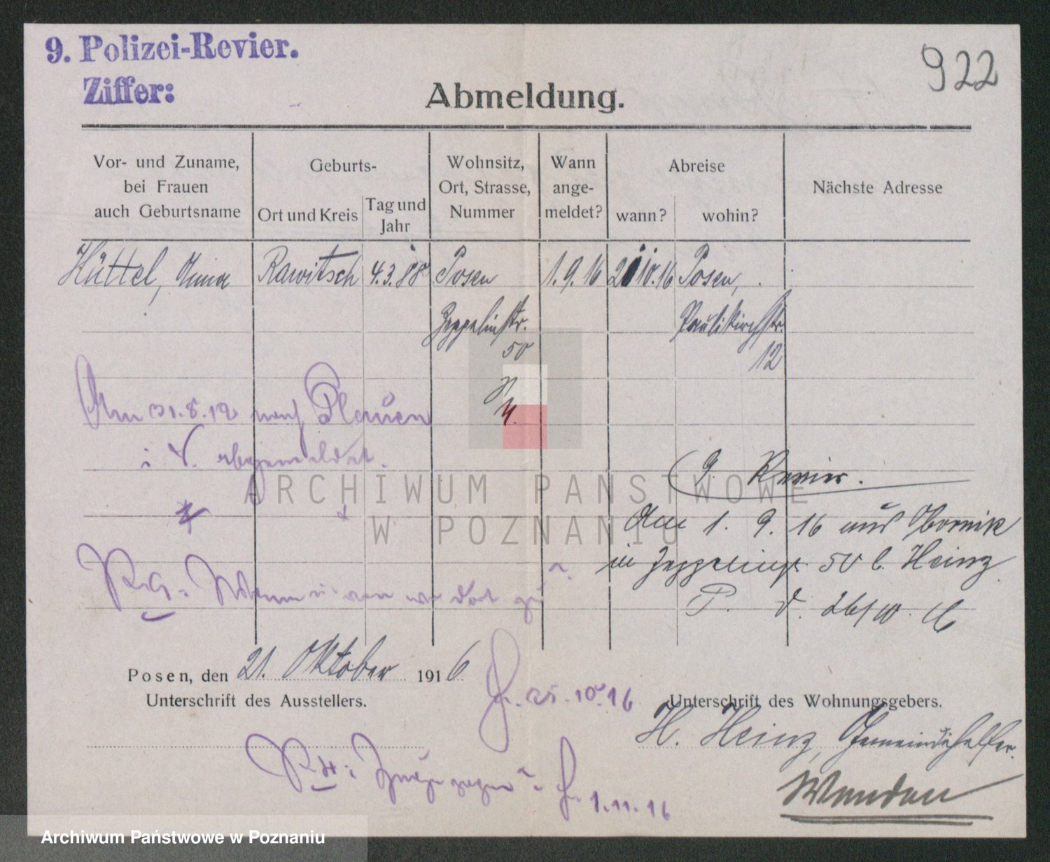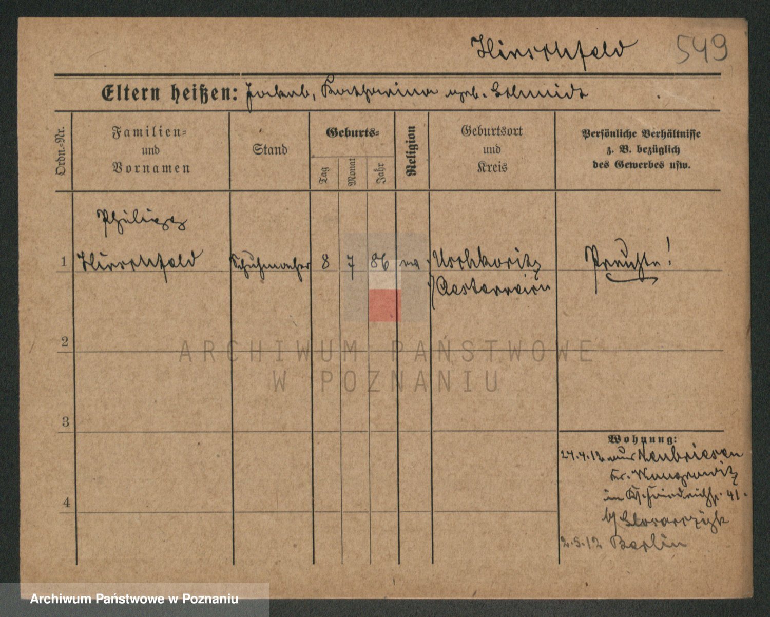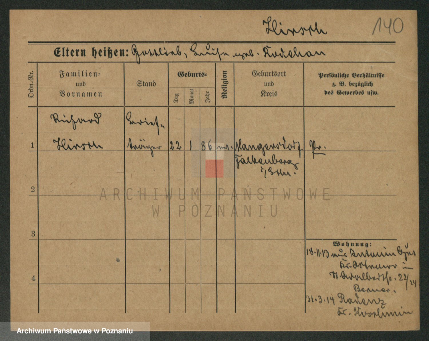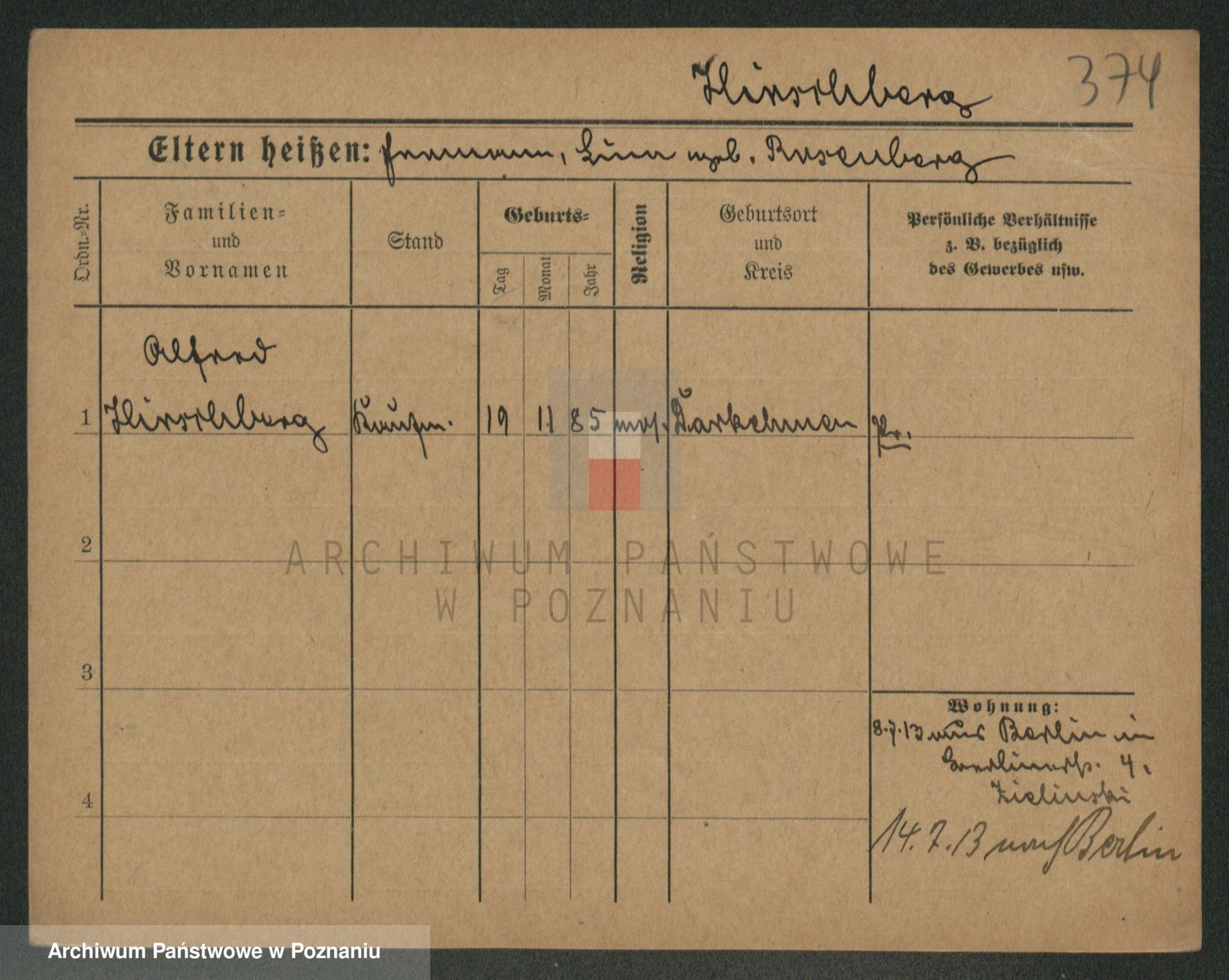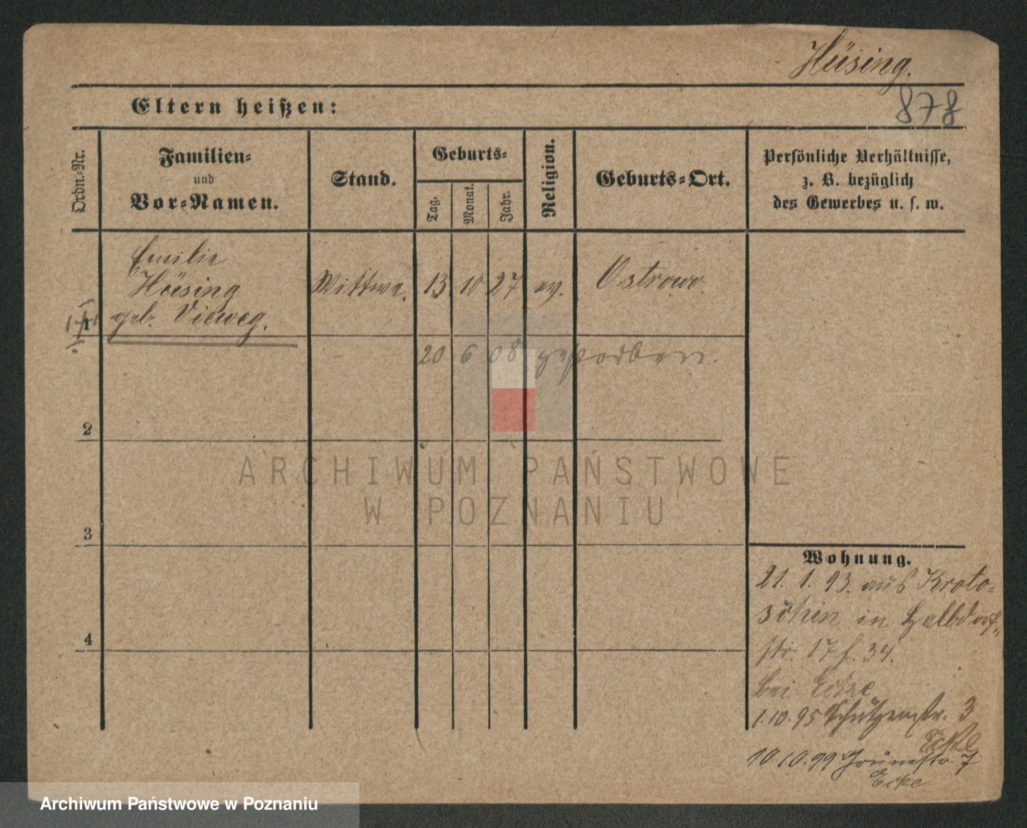 Podgląd karty osobowej dostępny jest po kliknięciu na nazwisko lub ikonkę karty. Można dokonywać powiększenia (ikony na górze) lub przechodzić między kolejnymi skanami (strzałki po bokach).