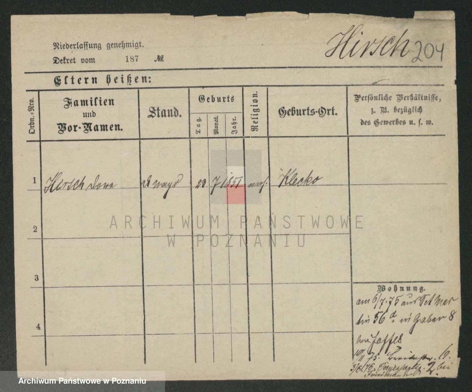 Hirsch, Cezlaw