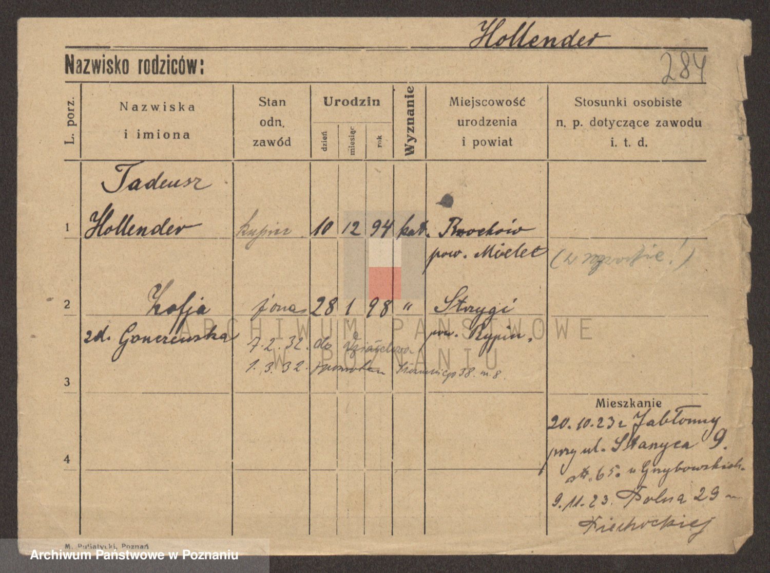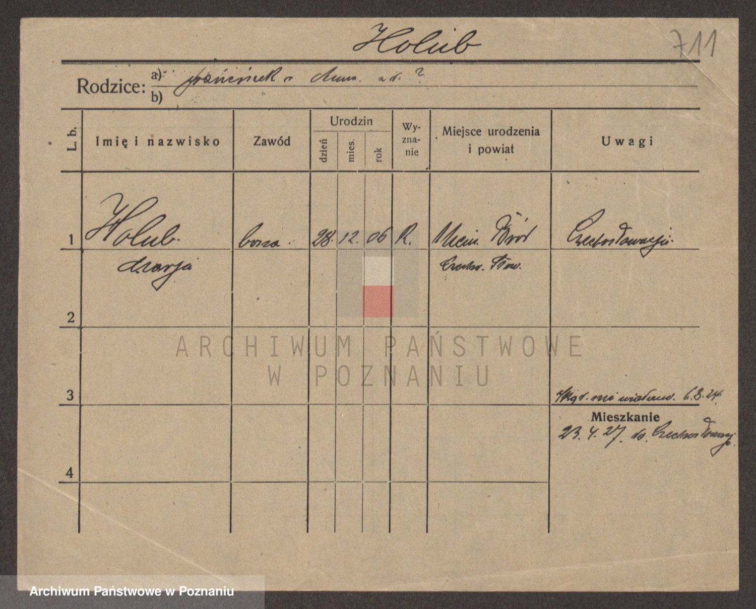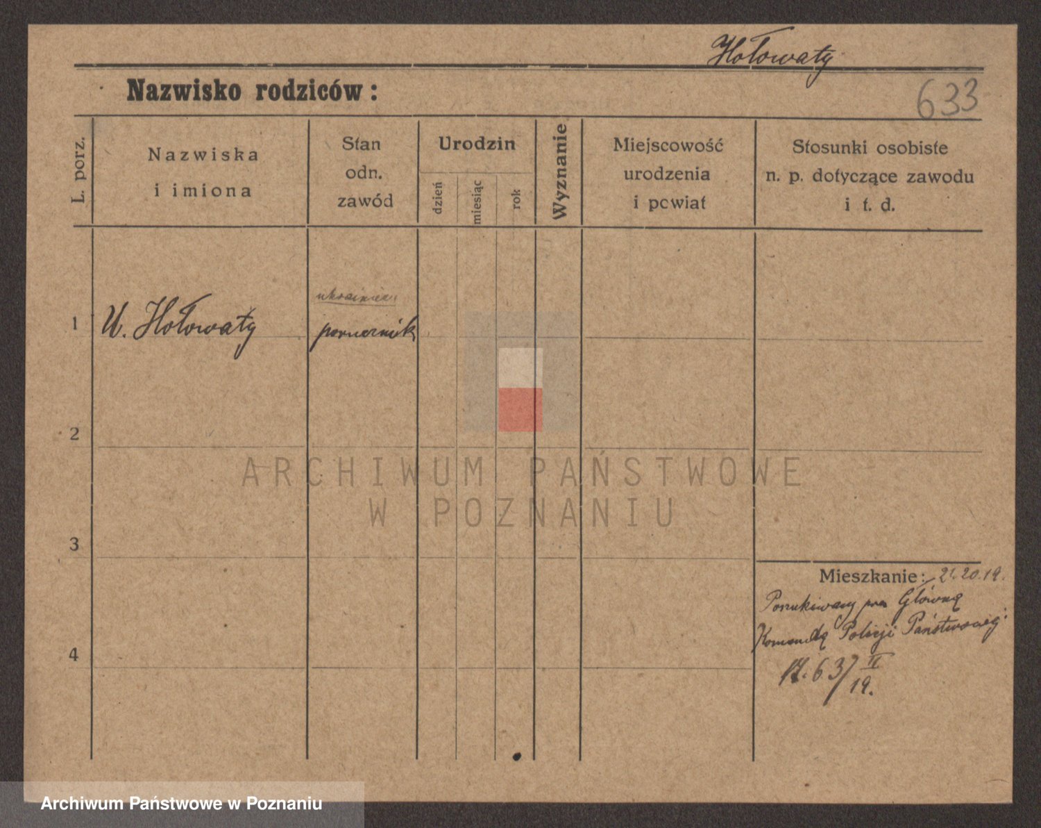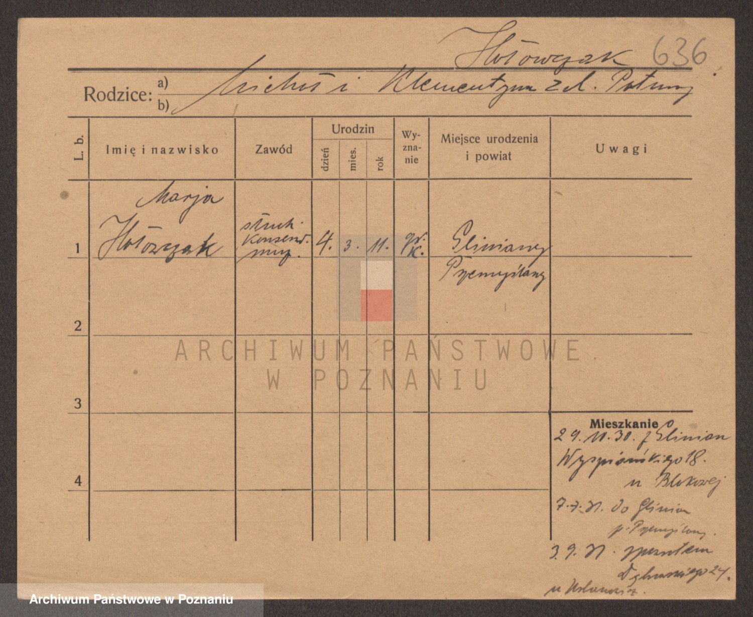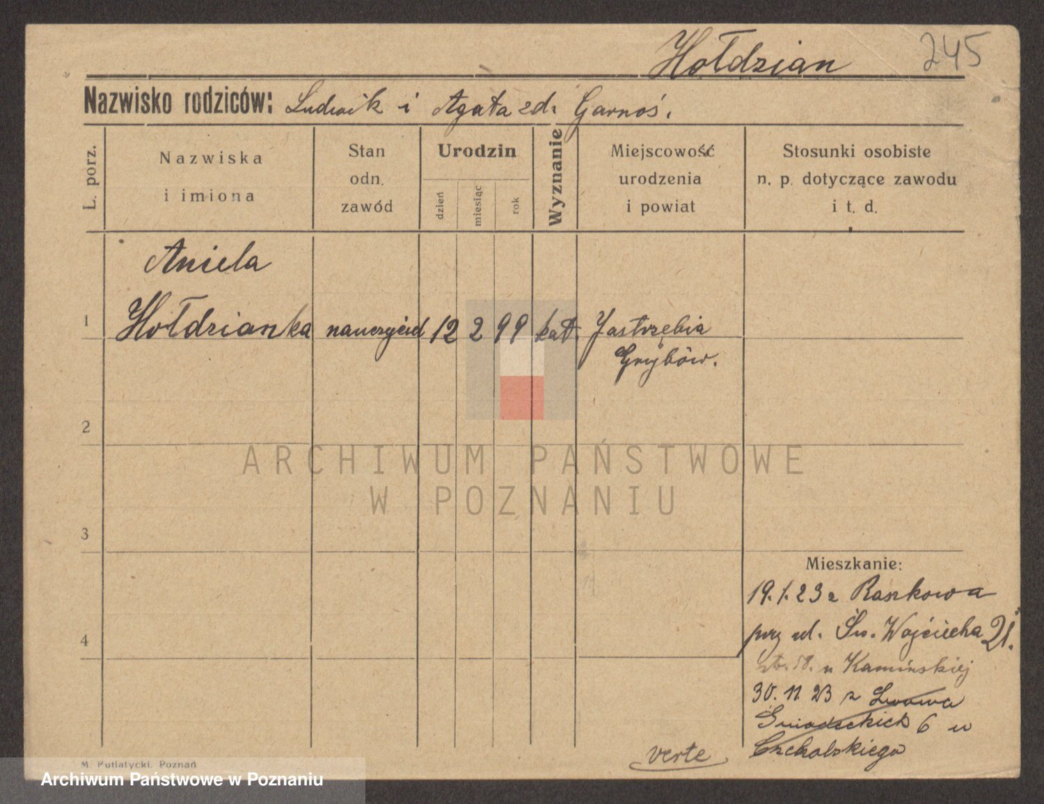Podgląd karty osobowej dostępny jest po kliknięciu na nazwisko lub ikonkę karty. Można dokonywać powiększenia (ikony na górze) lub przechodzić między kolejnymi skanami (strzałki po bokach).