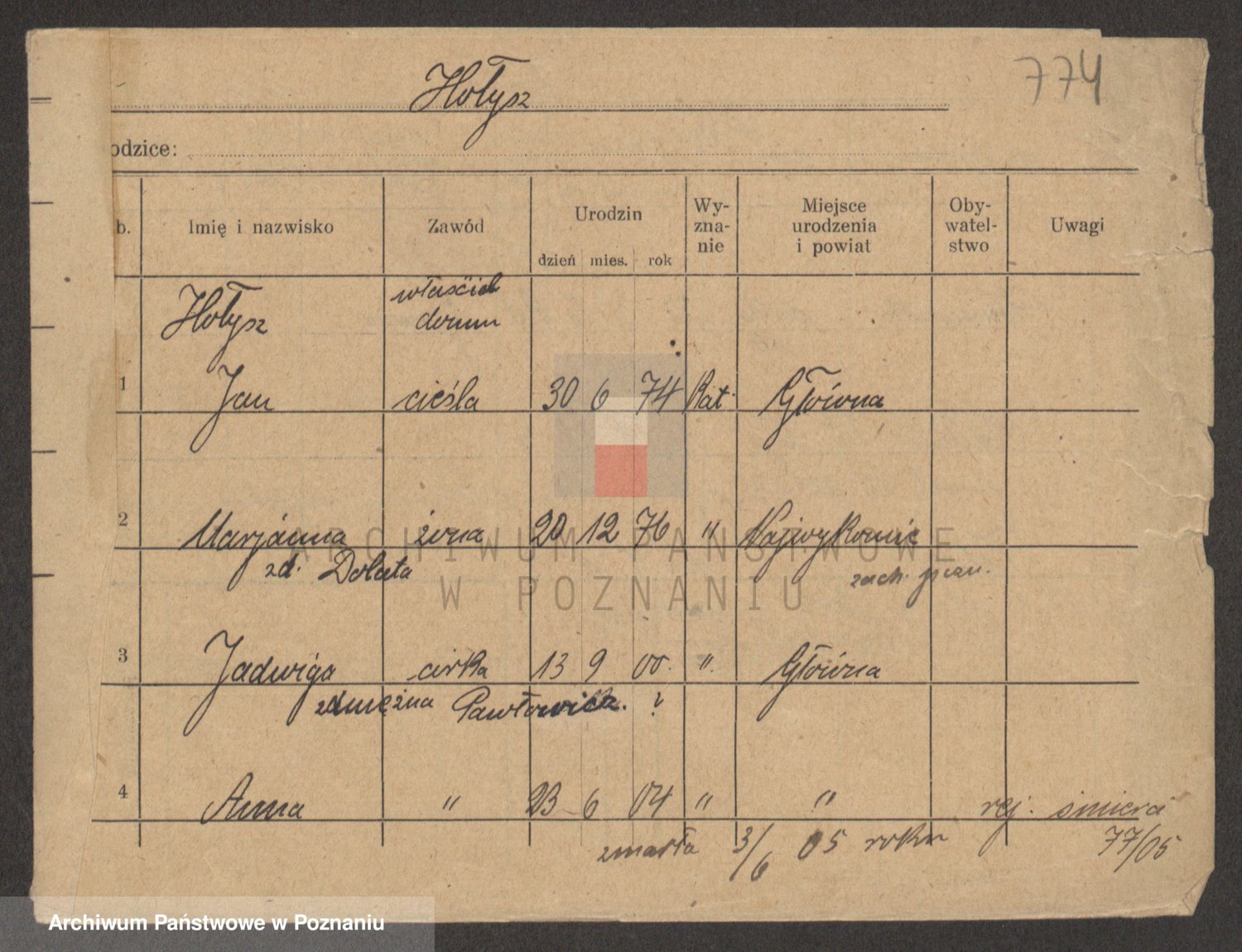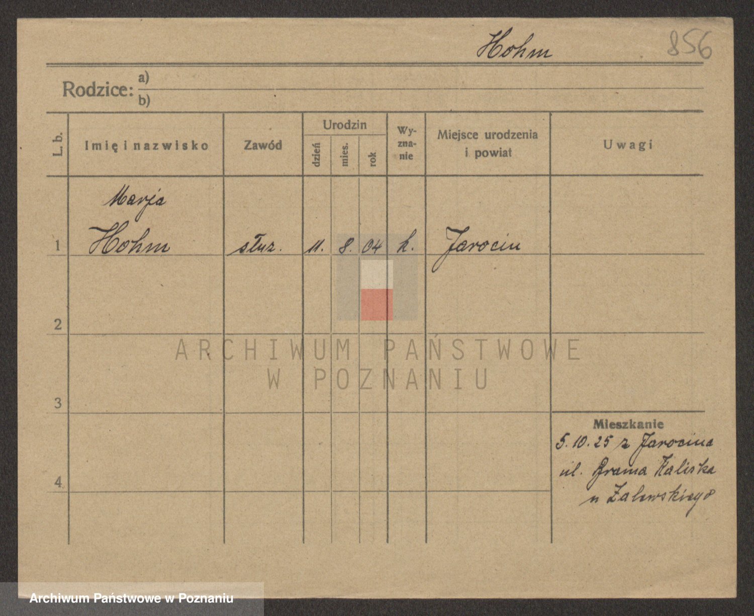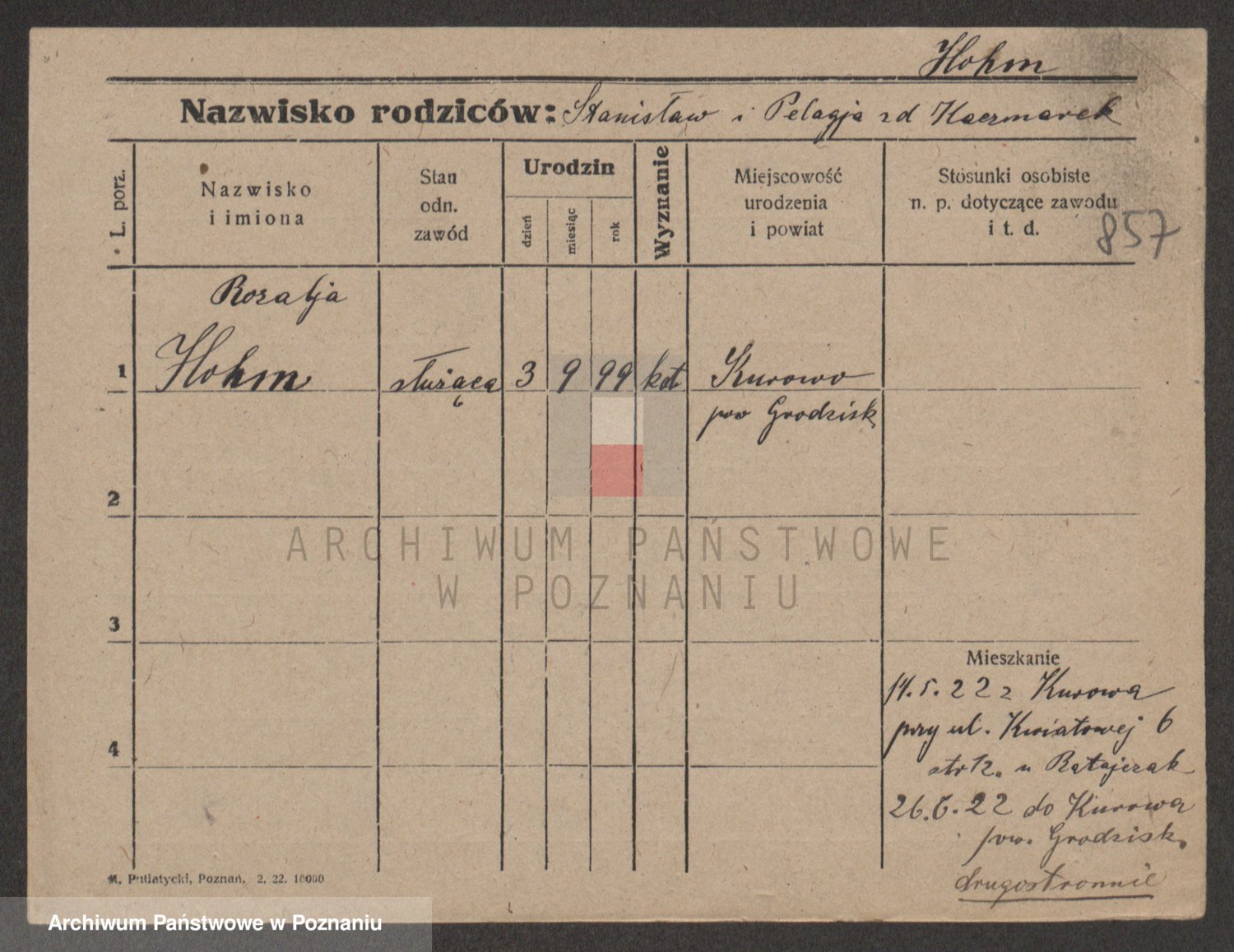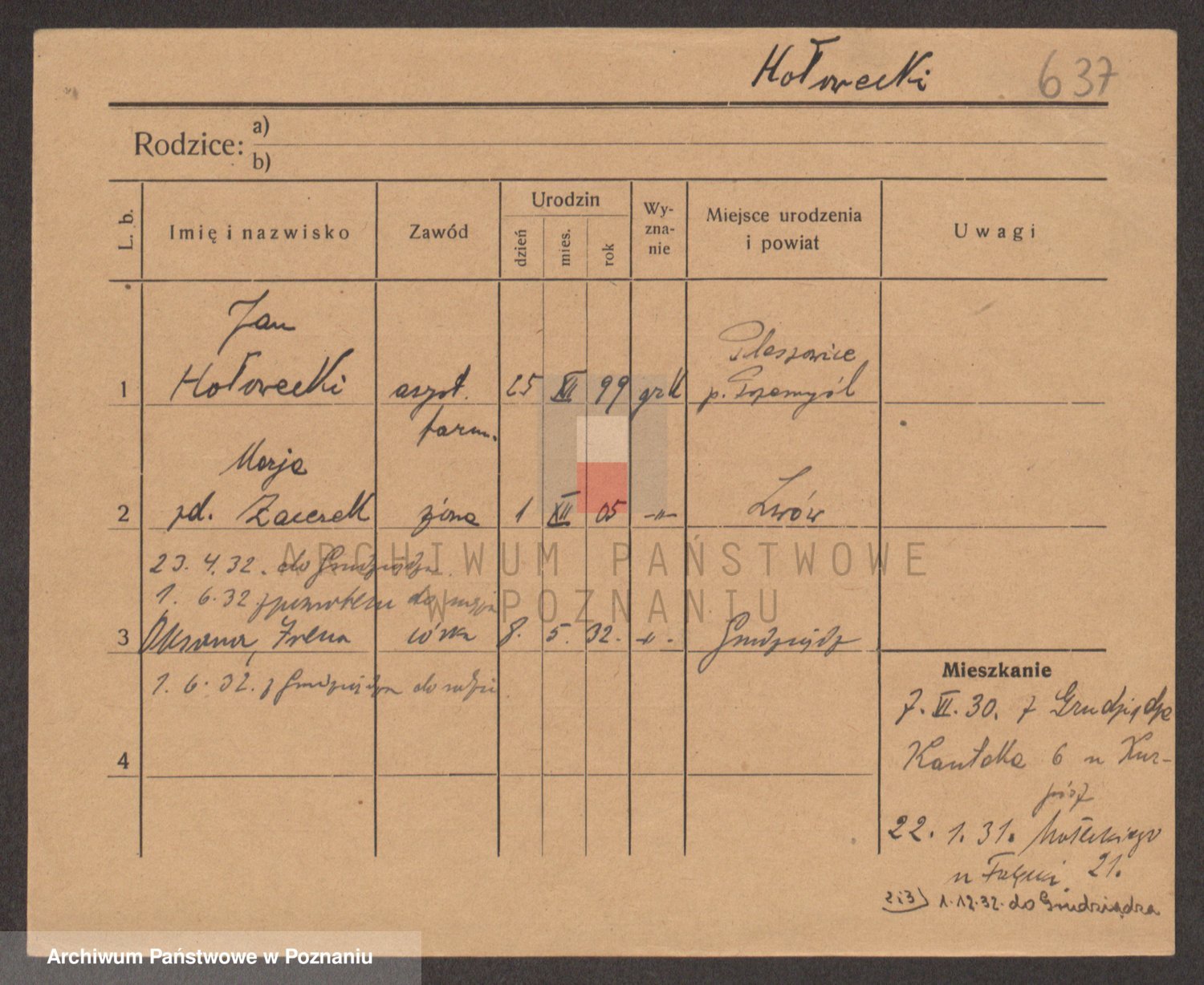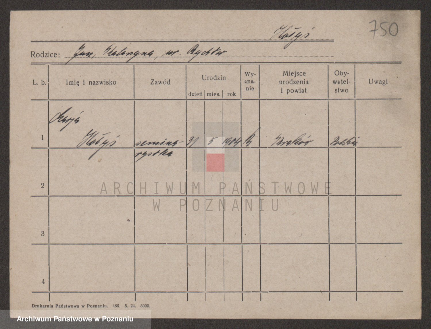 Podgląd karty osobowej dostępny jest po kliknięciu na nazwisko lub ikonkę karty. Można dokonywać powiększenia (ikony na górze) lub przechodzić między kolejnymi skanami (strzałki po bokach).