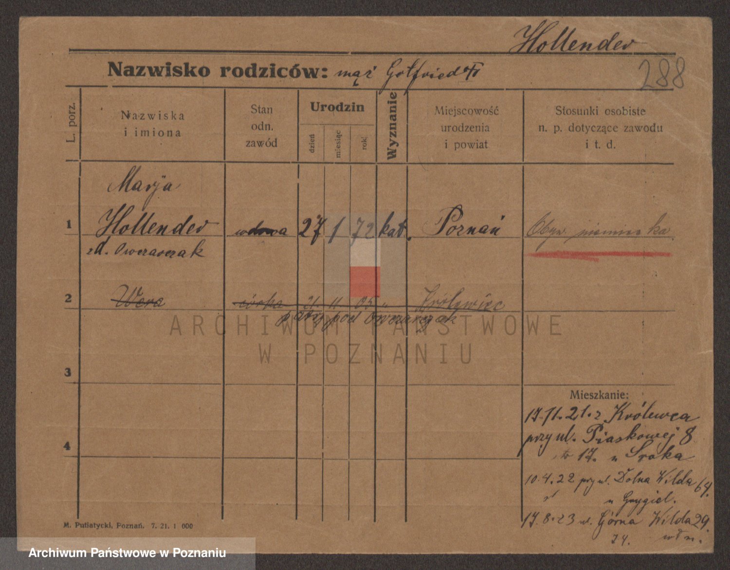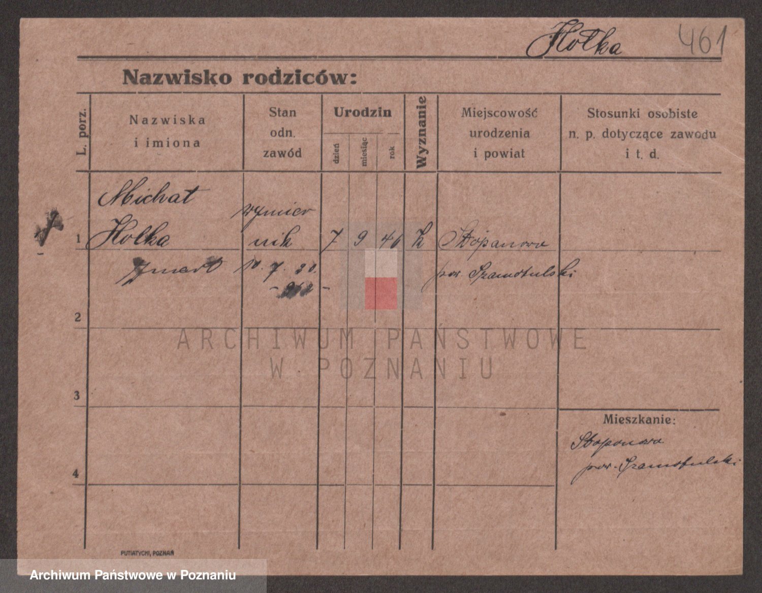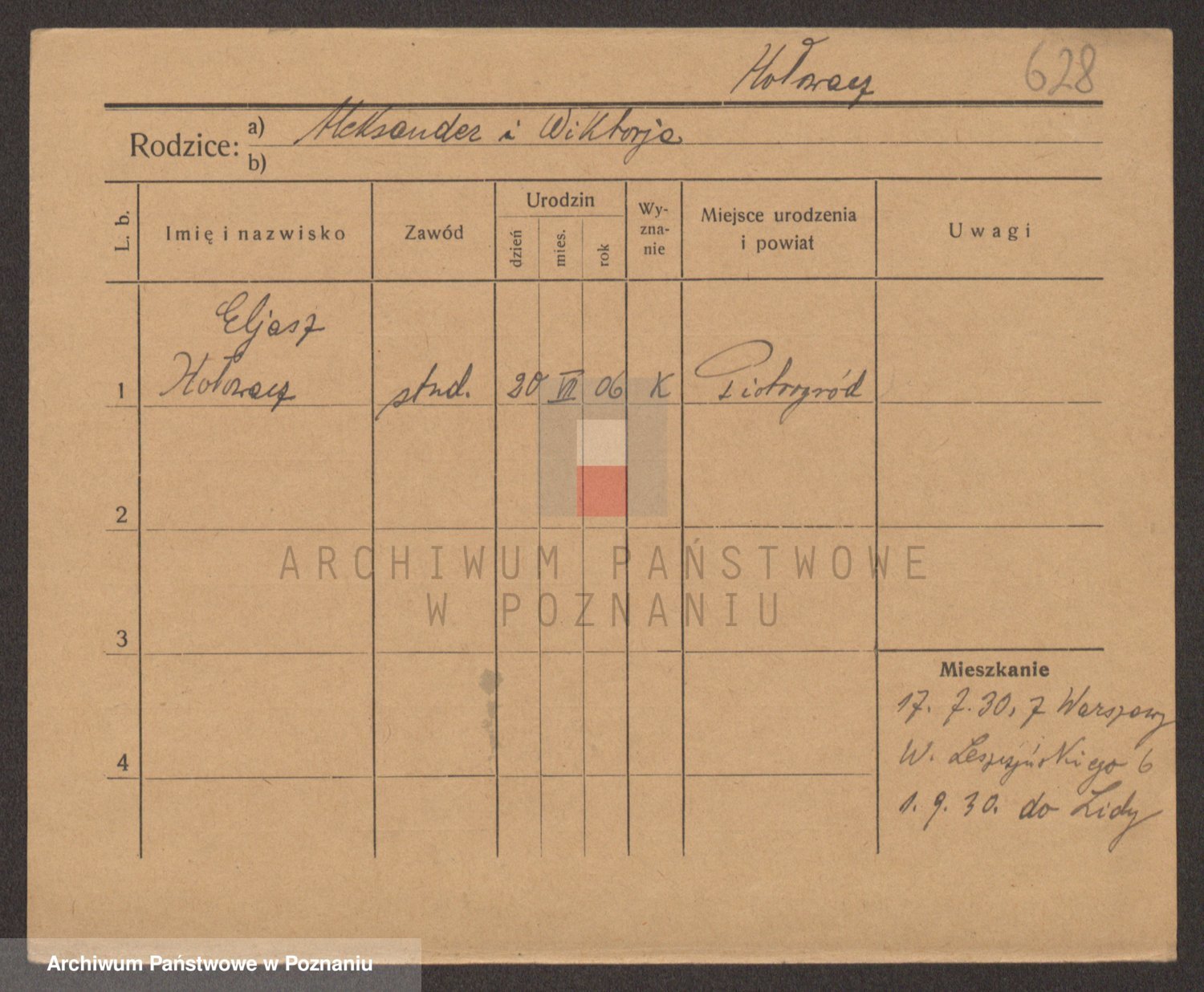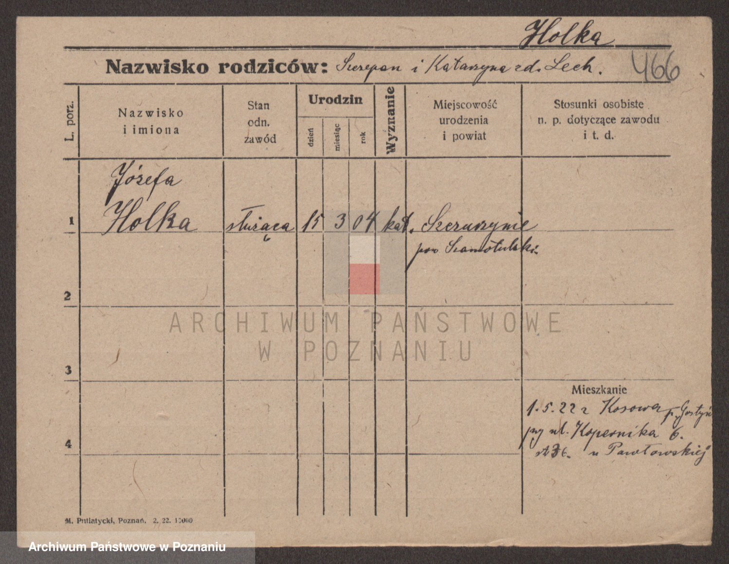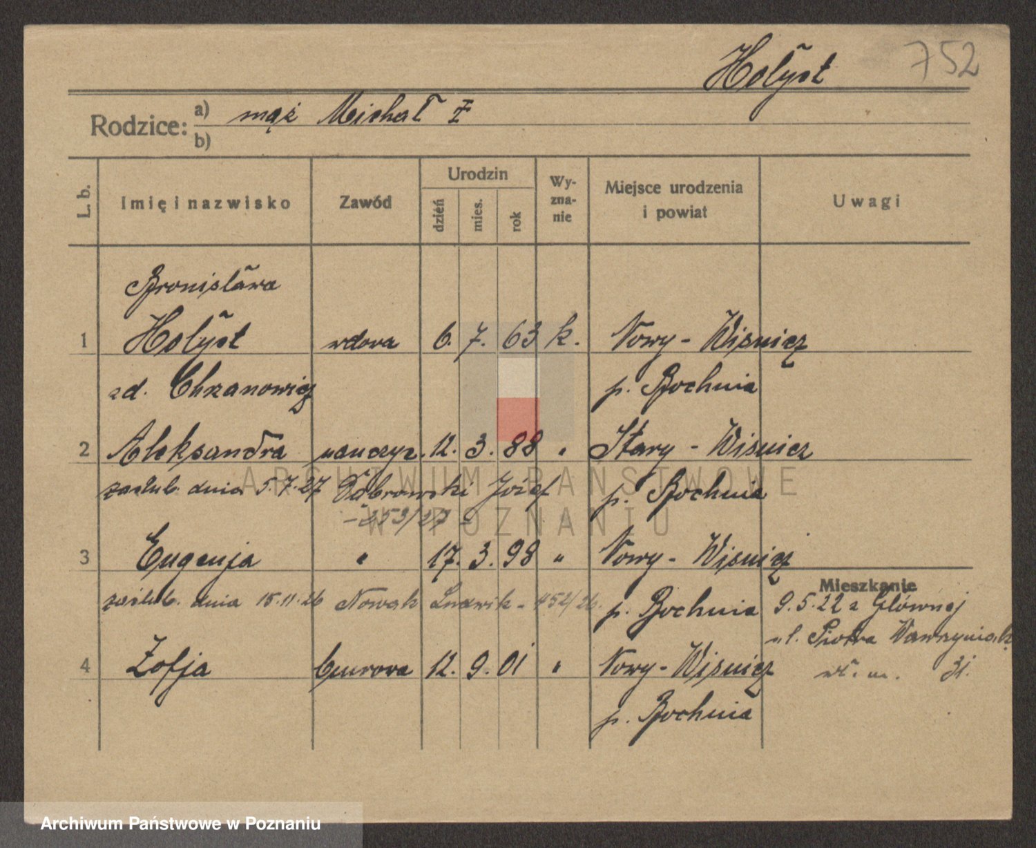 Podgląd karty osobowej dostępny jest po kliknięciu na nazwisko lub ikonkę karty. Można dokonywać powiększenia (ikony na górze) lub przechodzić między kolejnymi skanami (strzałki po bokach).