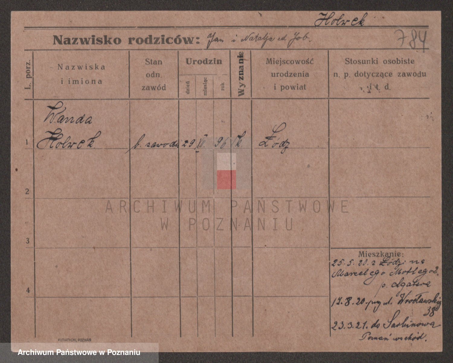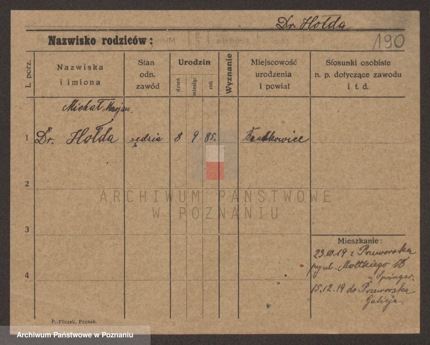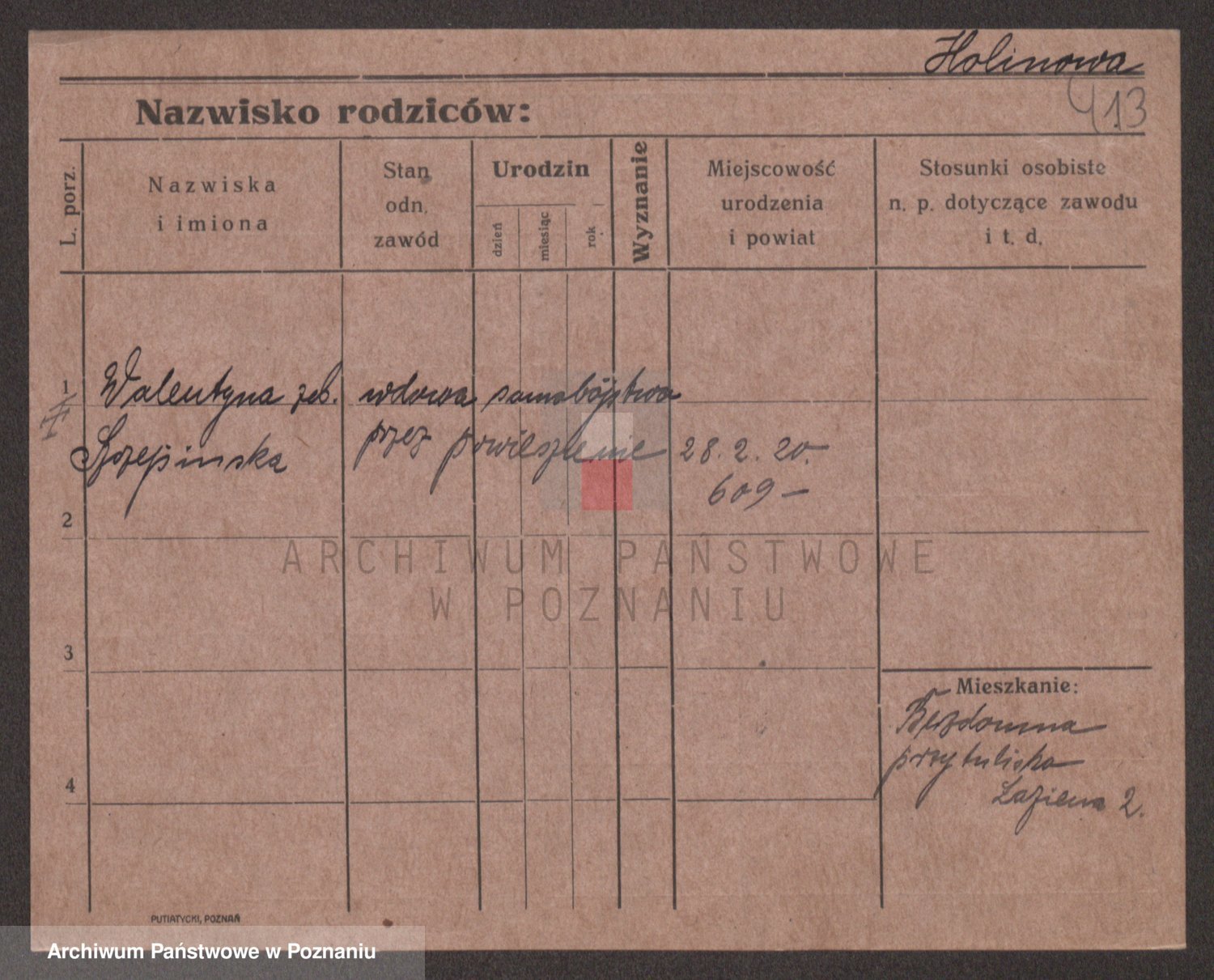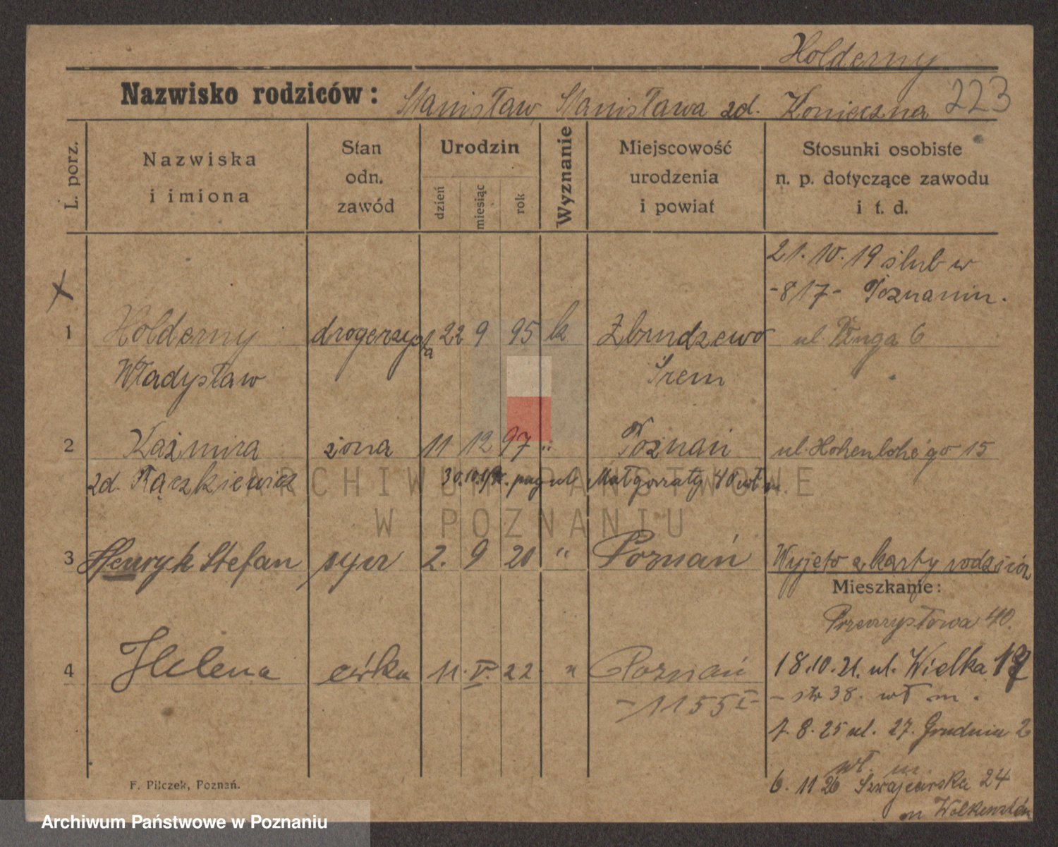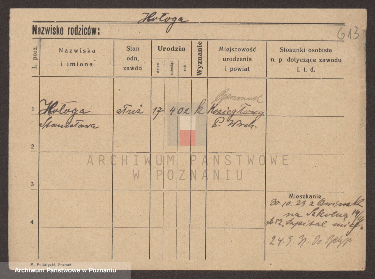 Podgląd karty osobowej dostępny jest po kliknięciu na nazwisko lub ikonkę karty. Można dokonywać powiększenia (ikony na górze) lub przechodzić między kolejnymi skanami (strzałki po bokach).