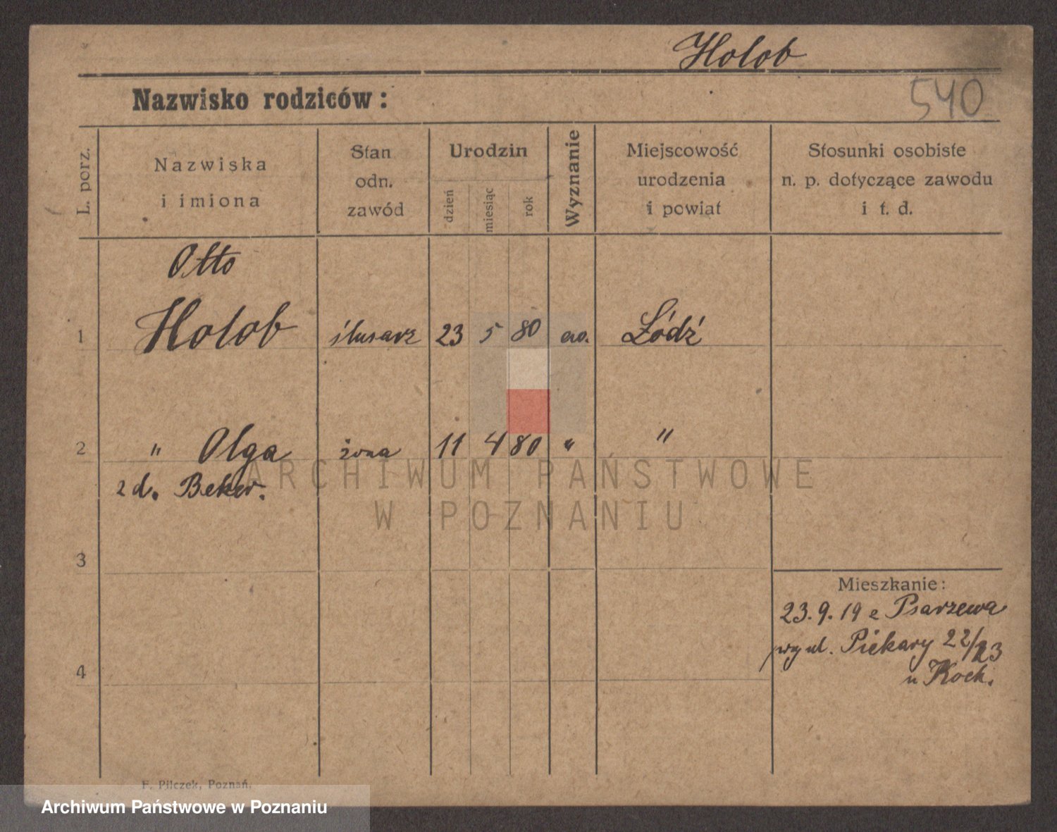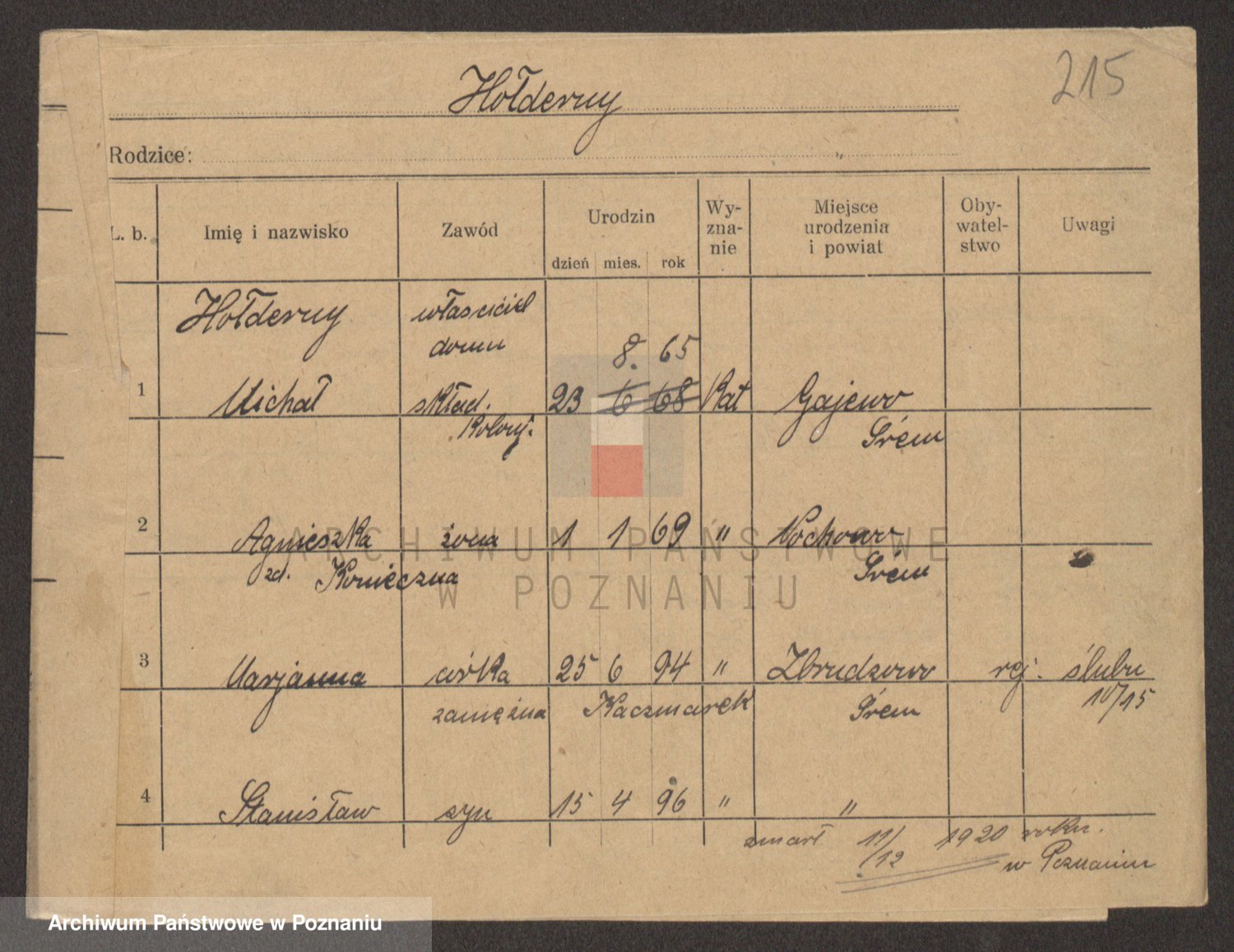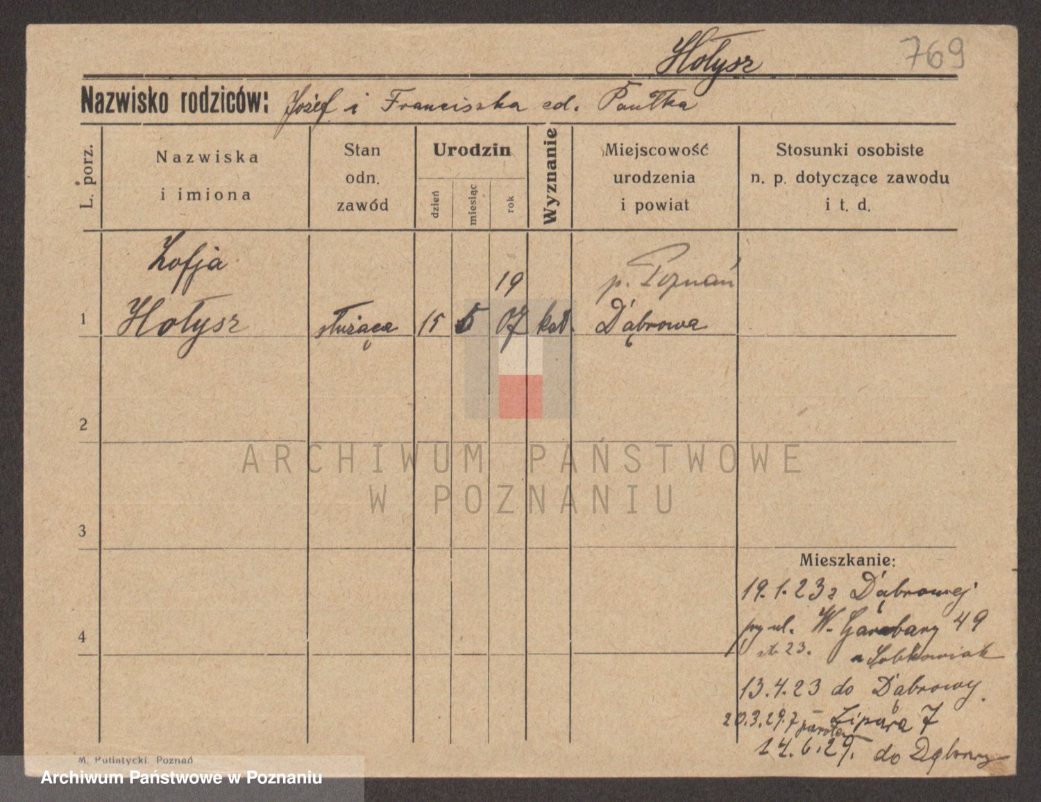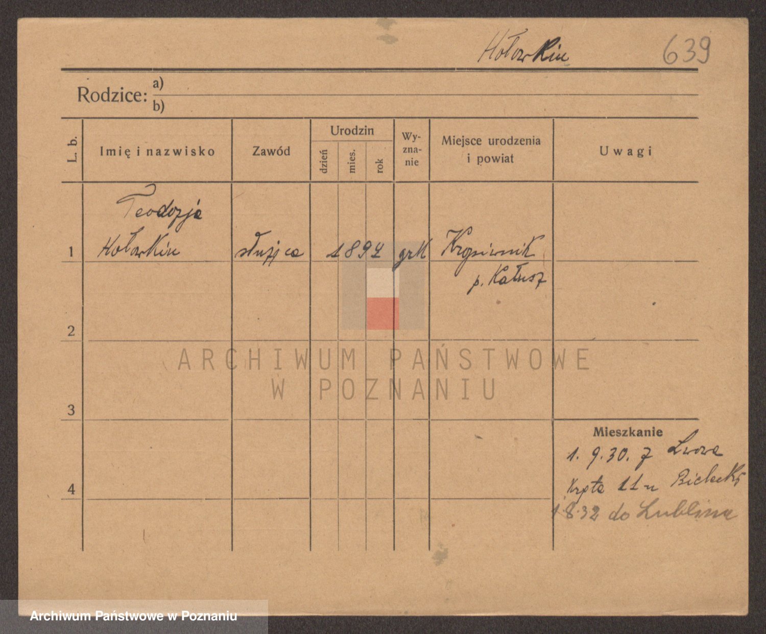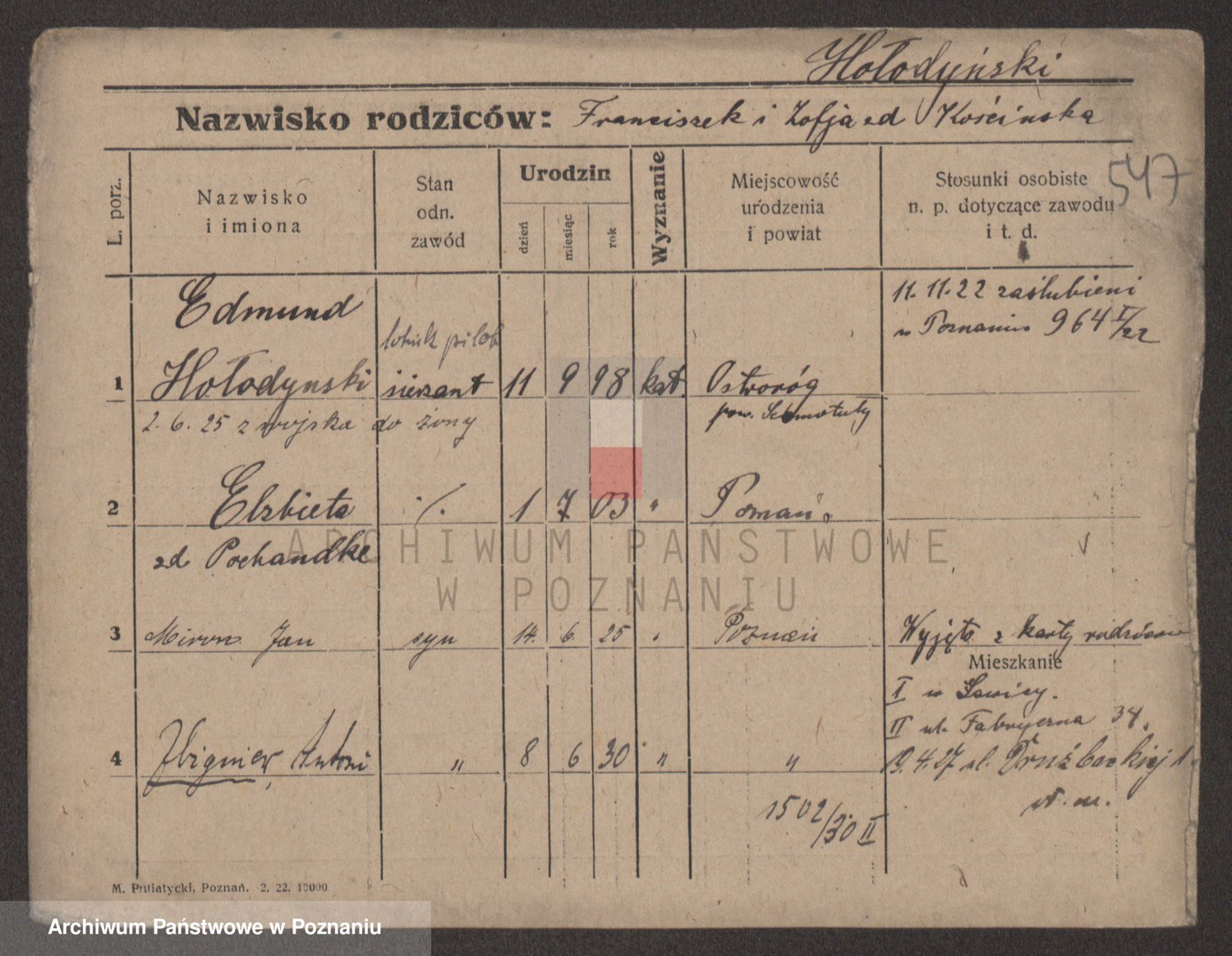 Podgląd karty osobowej dostępny jest po kliknięciu na nazwisko lub ikonkę karty. Można dokonywać powiększenia (ikony na górze) lub przechodzić między kolejnymi skanami (strzałki po bokach).