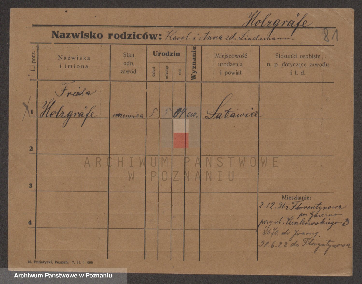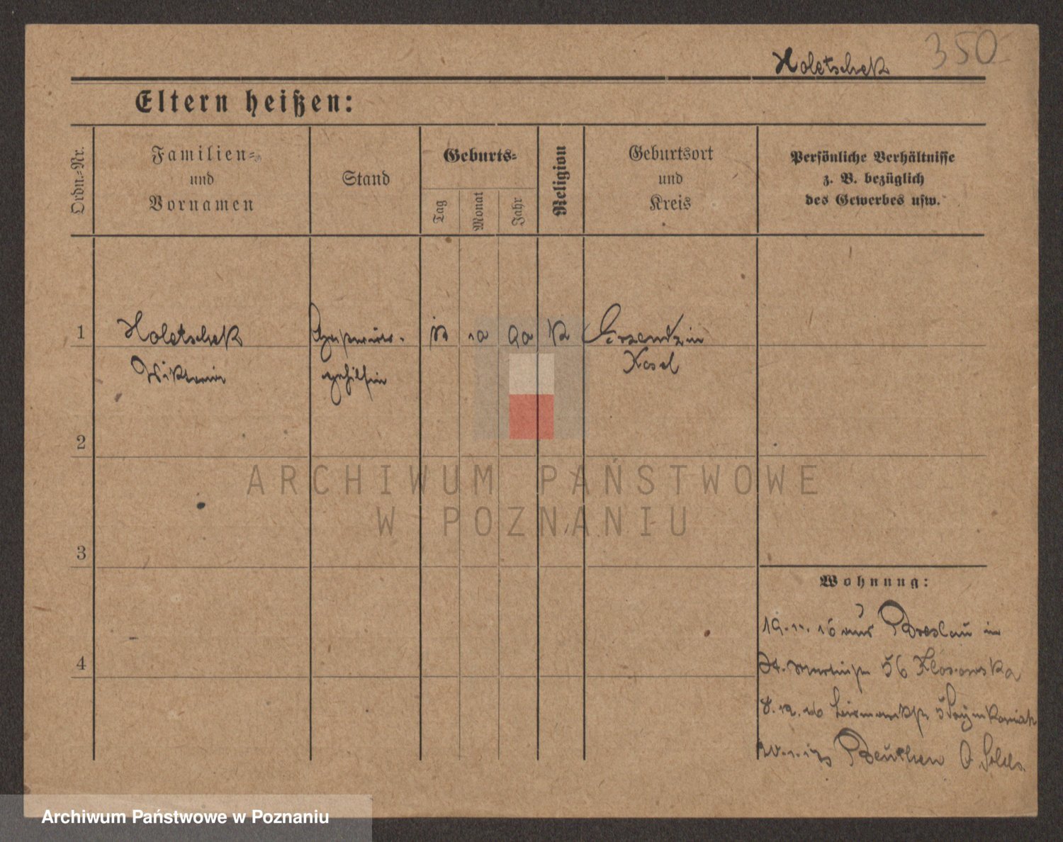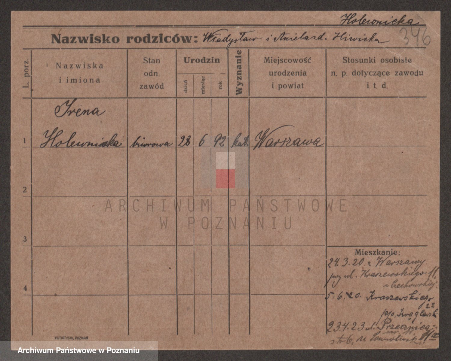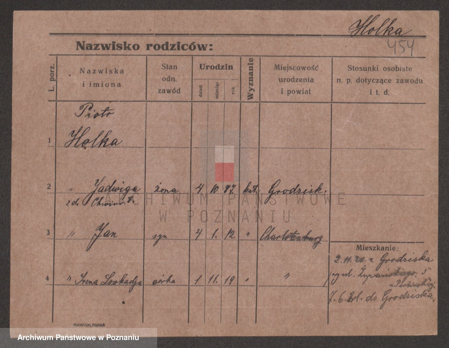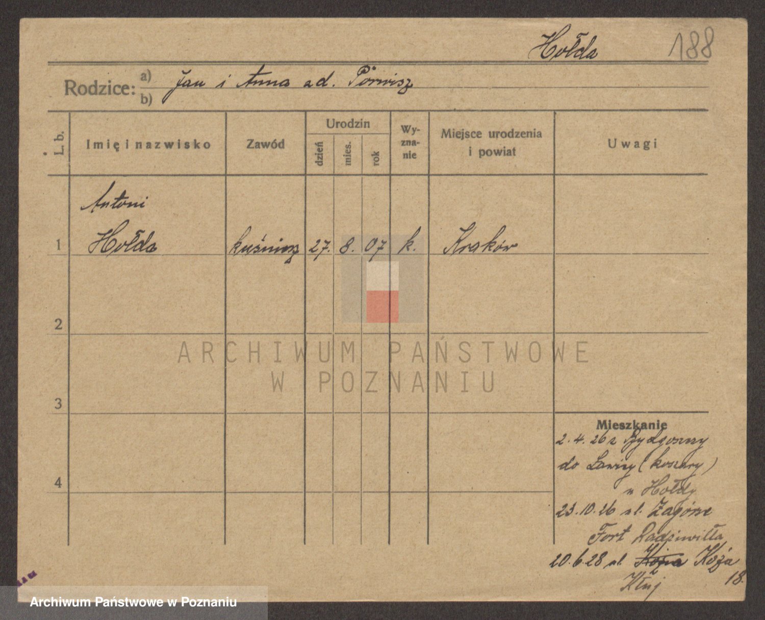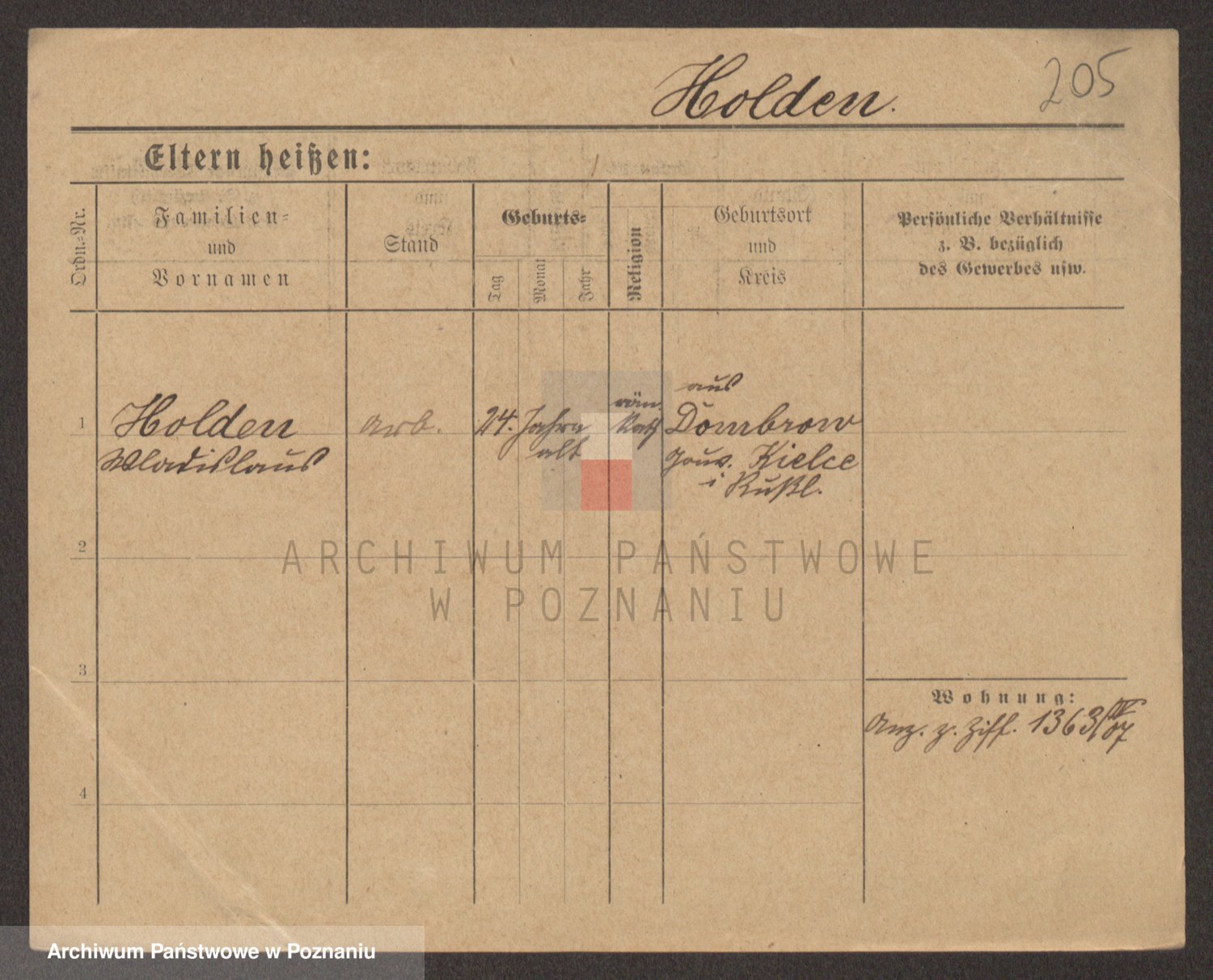 Podgląd karty osobowej dostępny jest po kliknięciu na nazwisko lub ikonkę karty. Można dokonywać powiększenia (ikony na górze) lub przechodzić między kolejnymi skanami (strzałki po bokach).