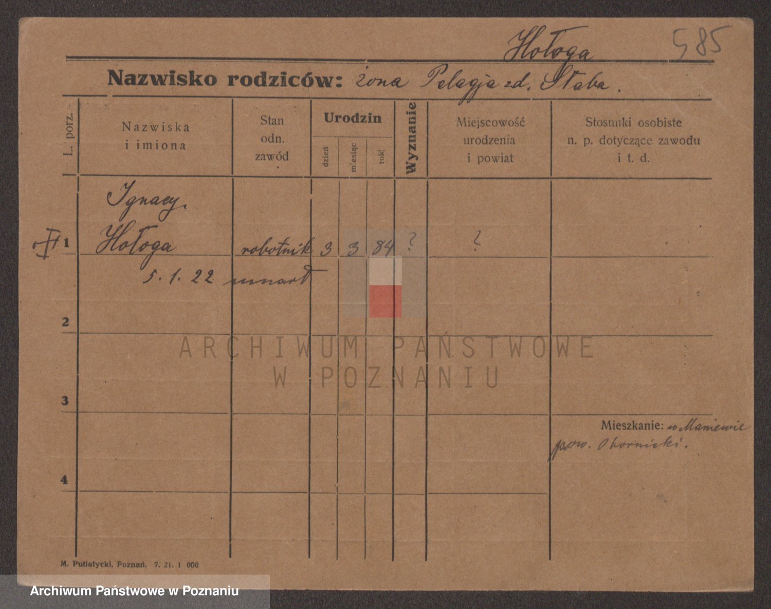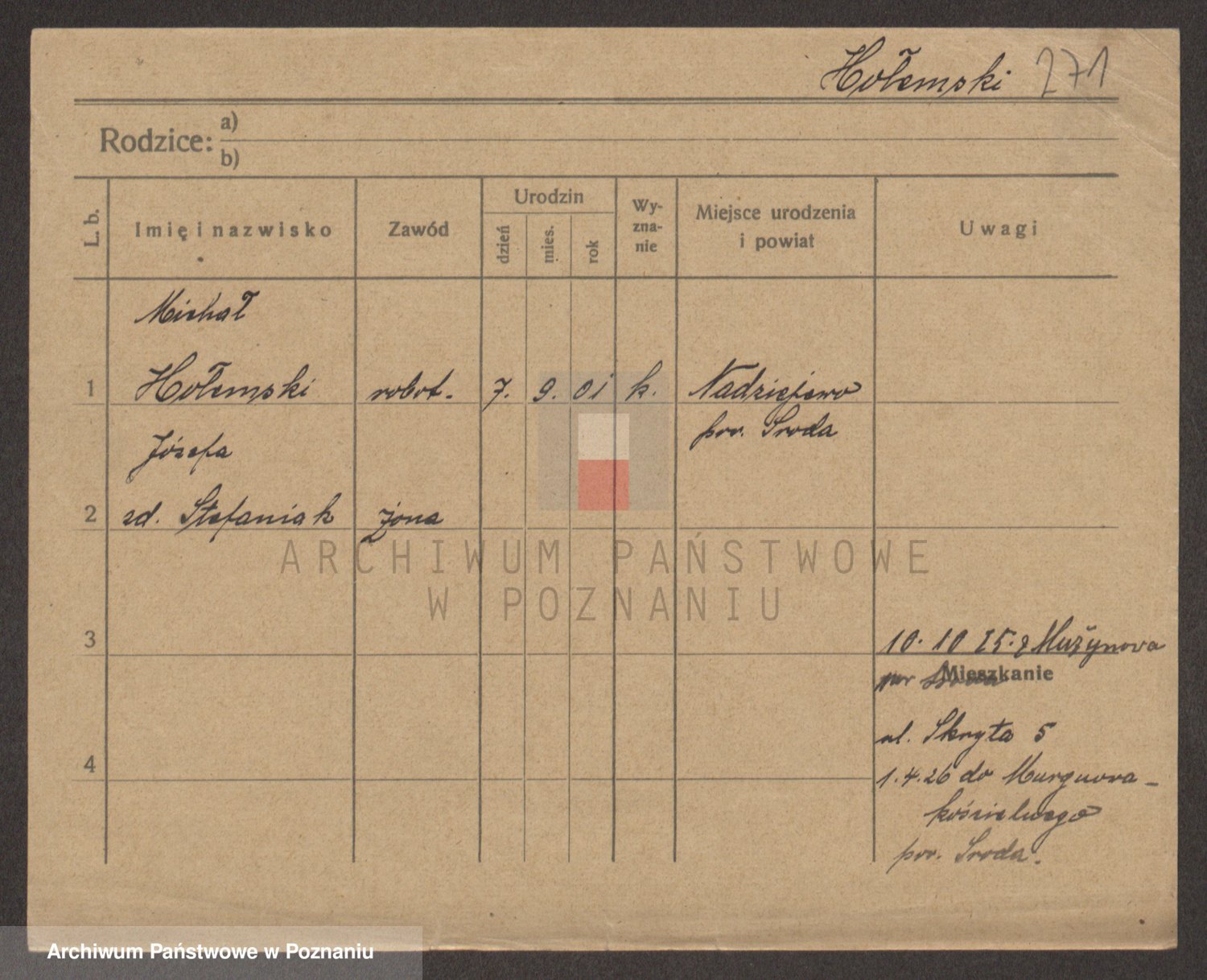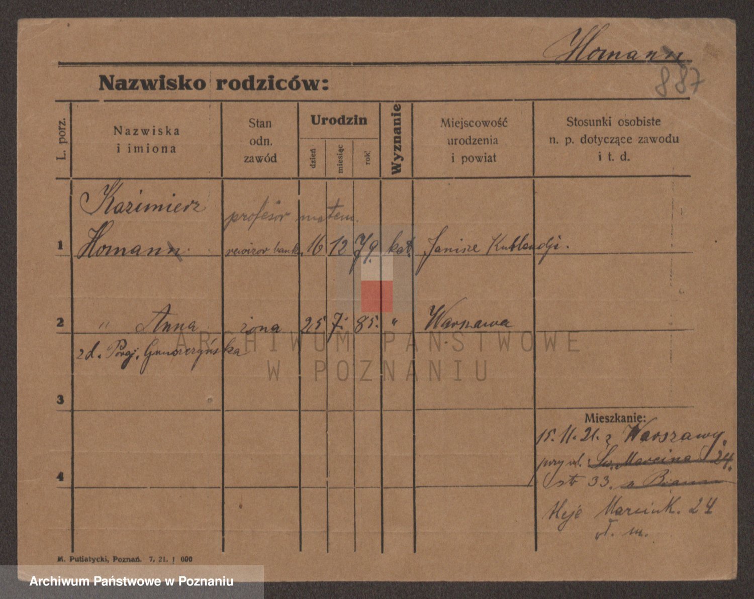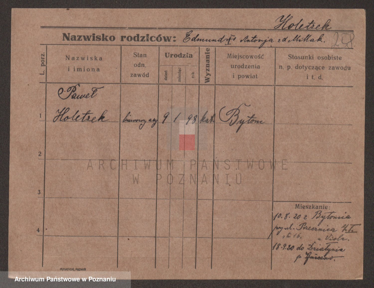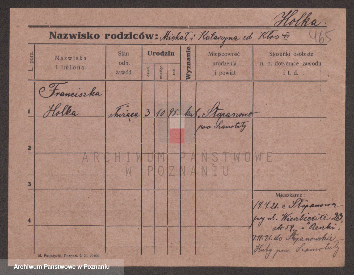 Podgląd karty osobowej dostępny jest po kliknięciu na nazwisko lub ikonkę karty. Można dokonywać powiększenia (ikony na górze) lub przechodzić między kolejnymi skanami (strzałki po bokach).