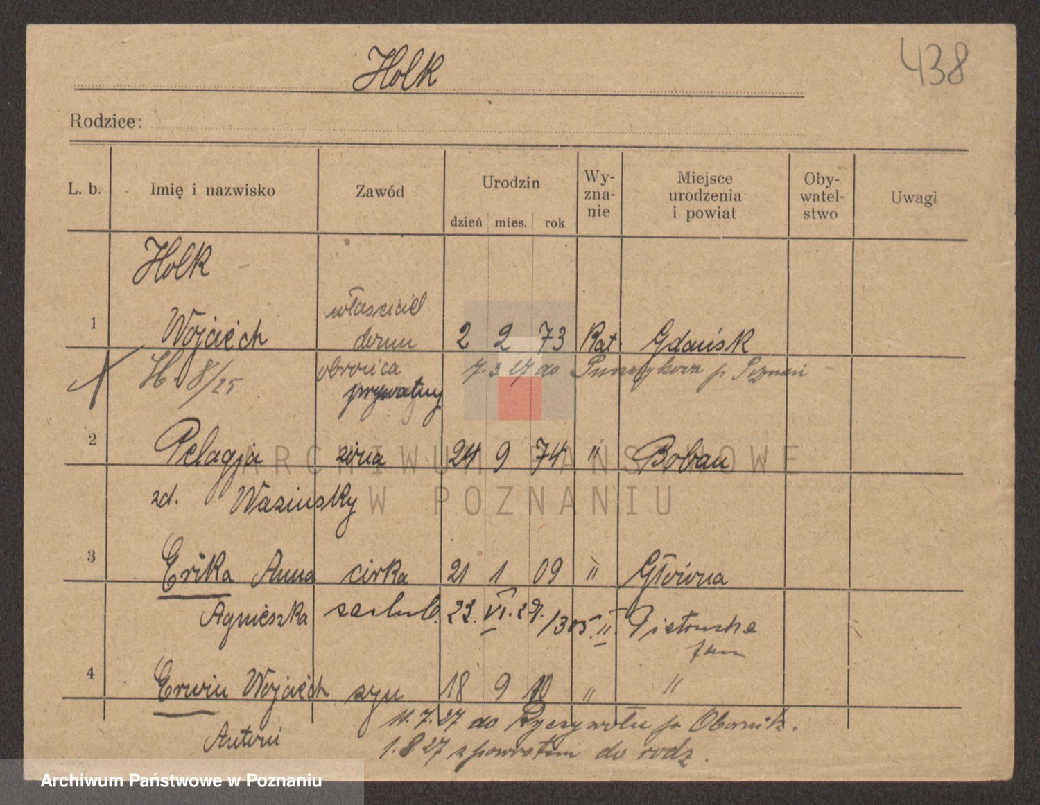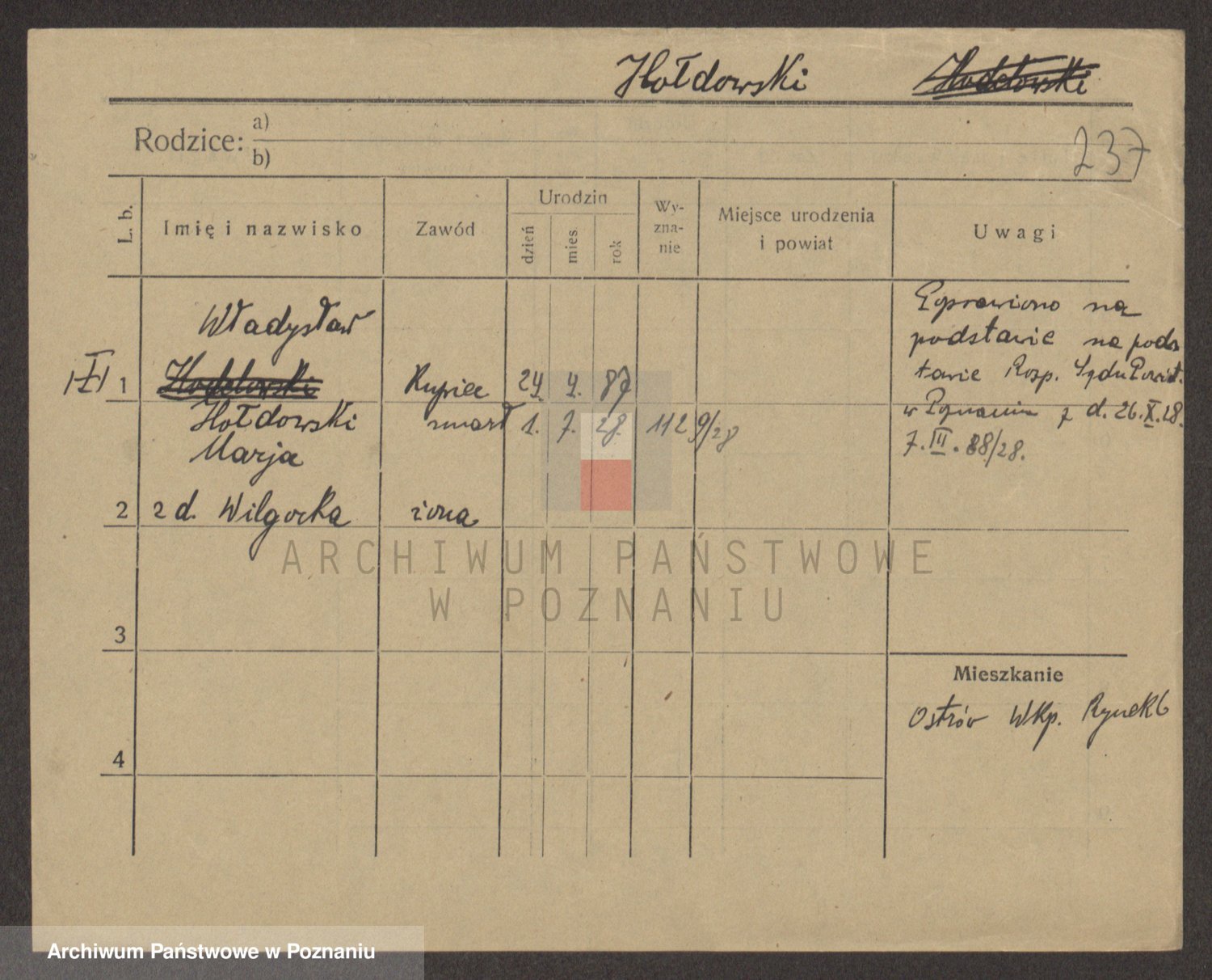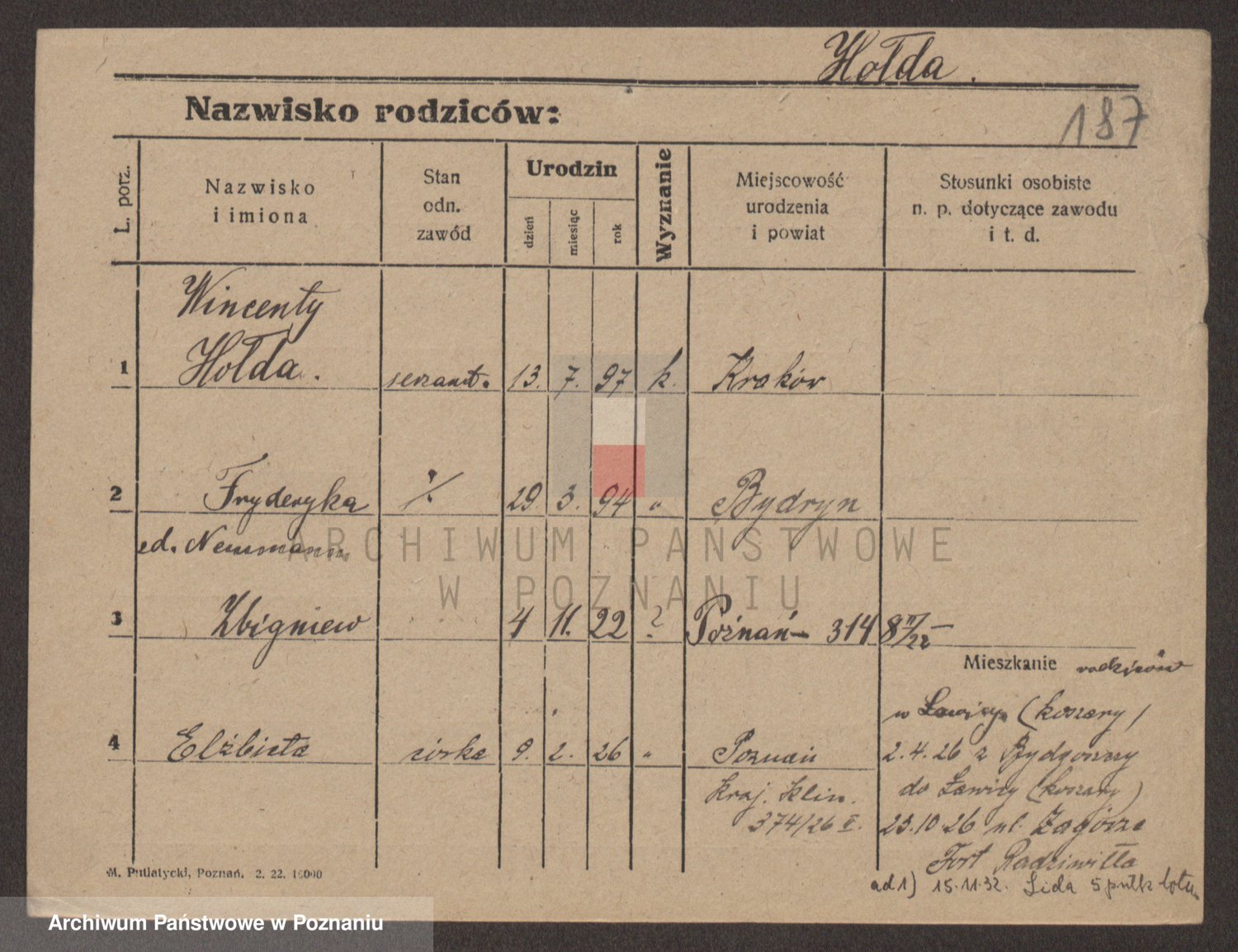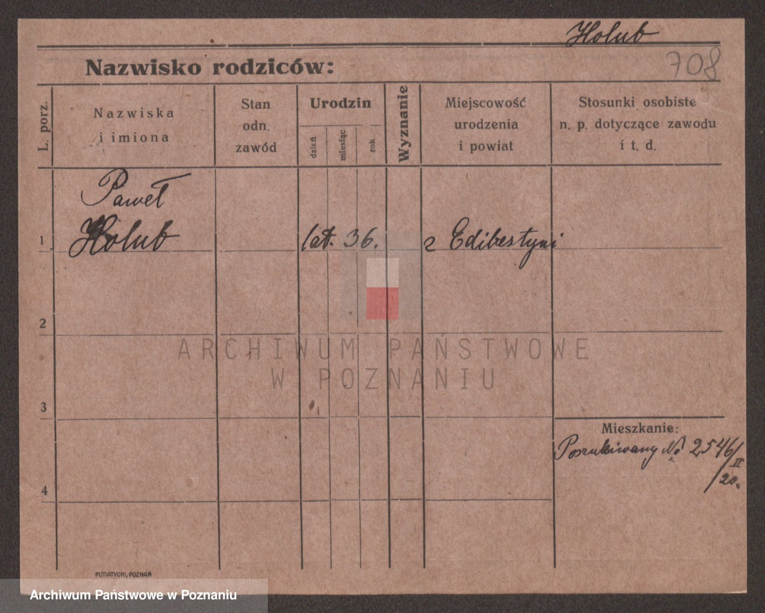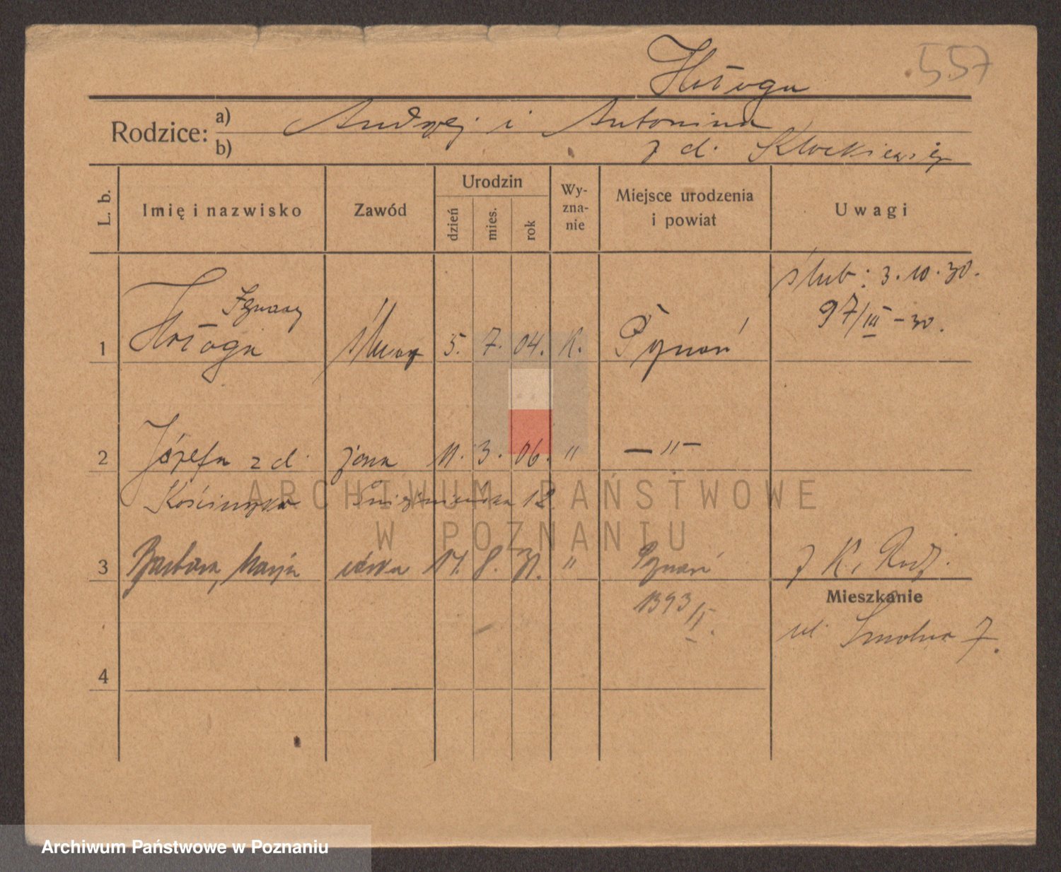 Podgląd karty osobowej dostępny jest po kliknięciu na nazwisko lub ikonkę karty. Można dokonywać powiększenia (ikony na górze) lub przechodzić między kolejnymi skanami (strzałki po bokach).