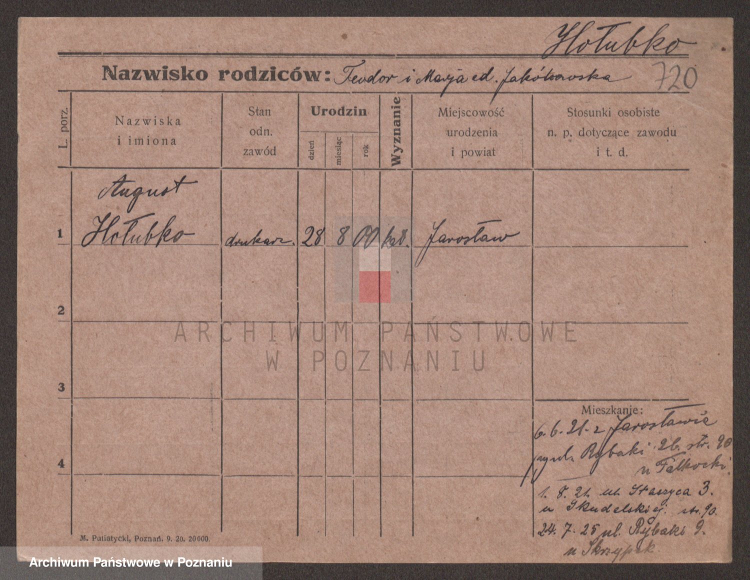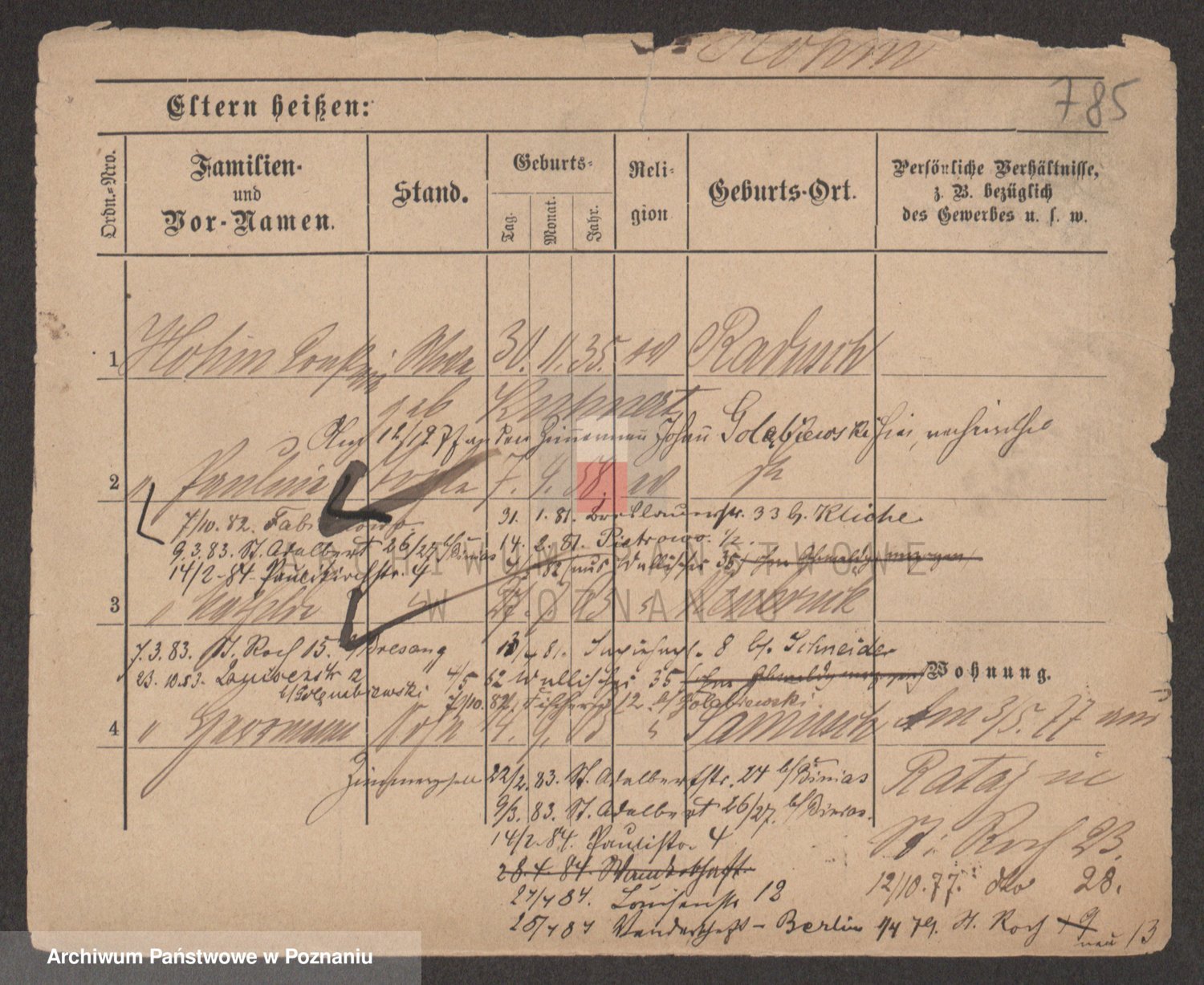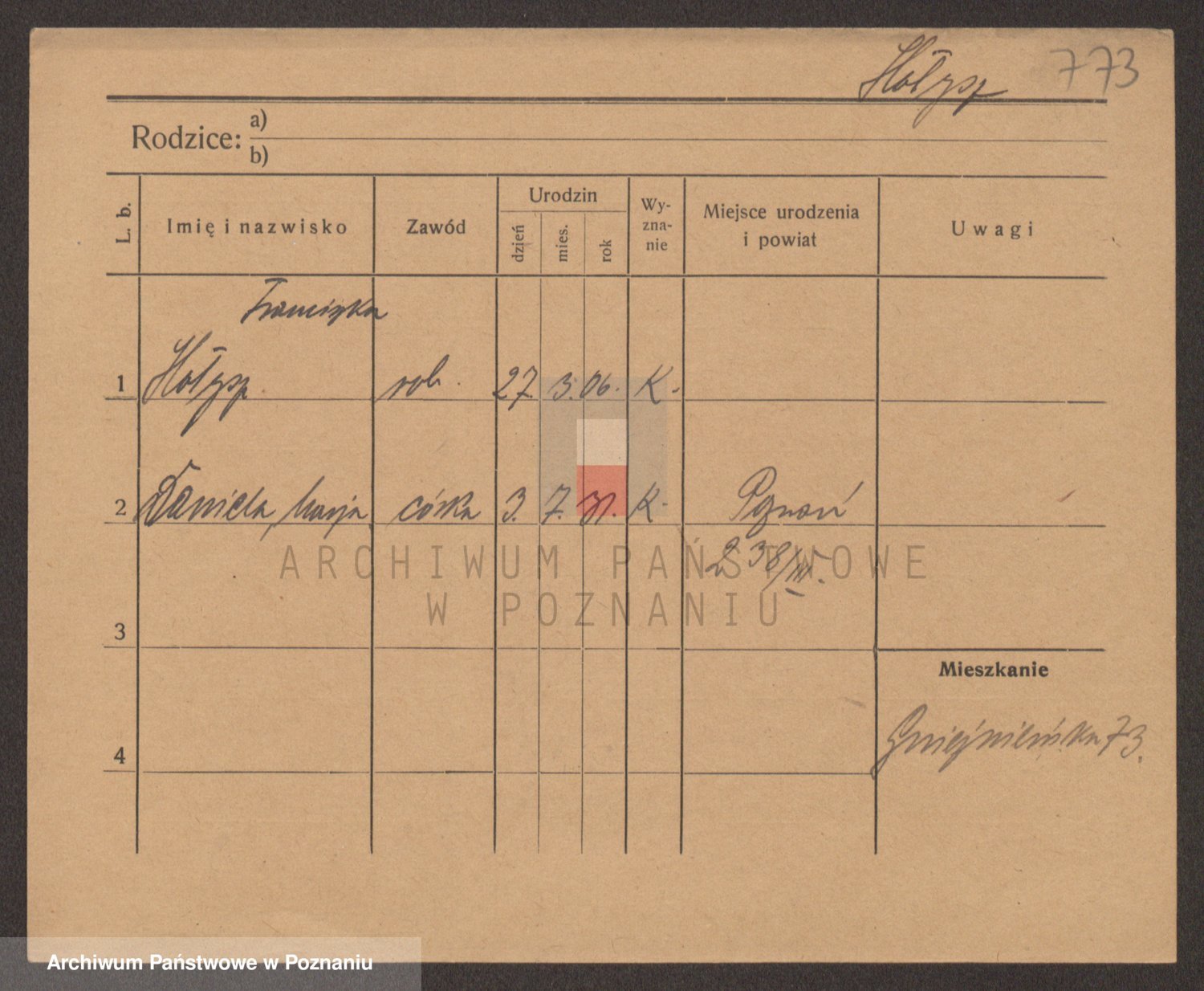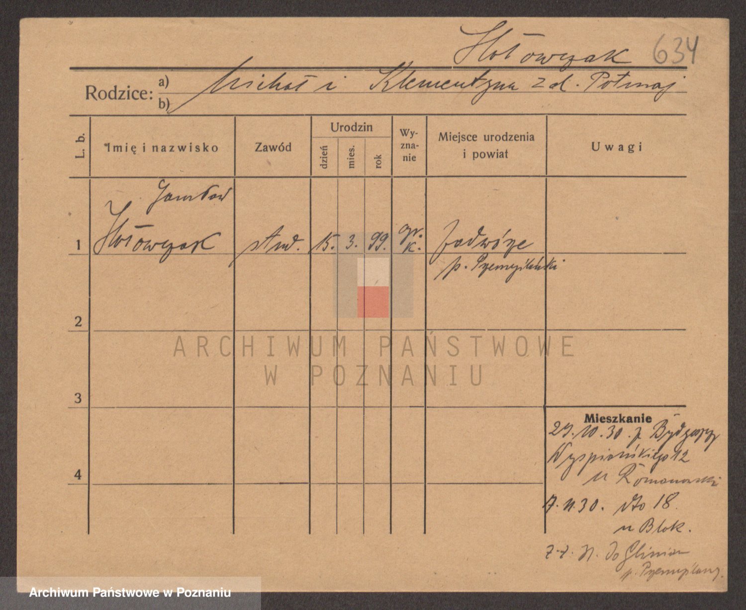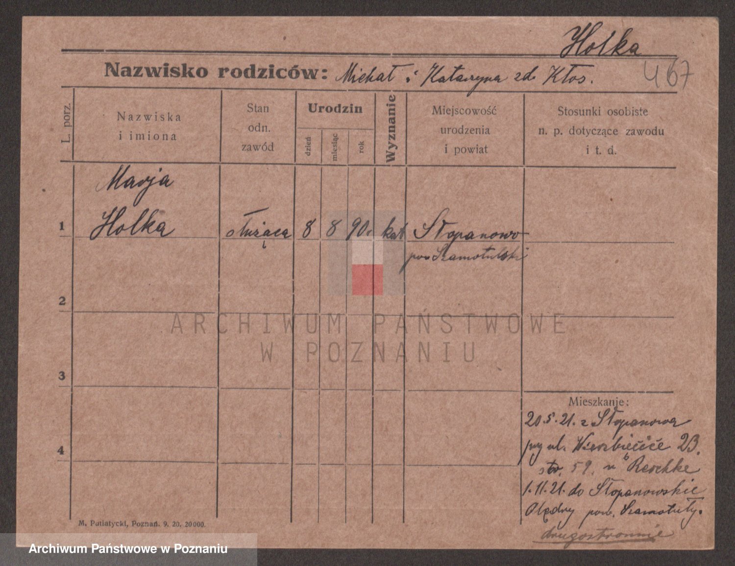Podgląd karty osobowej dostępny jest po kliknięciu na nazwisko lub ikonkę karty. Można dokonywać powiększenia (ikony na górze) lub przechodzić między kolejnymi skanami (strzałki po bokach).